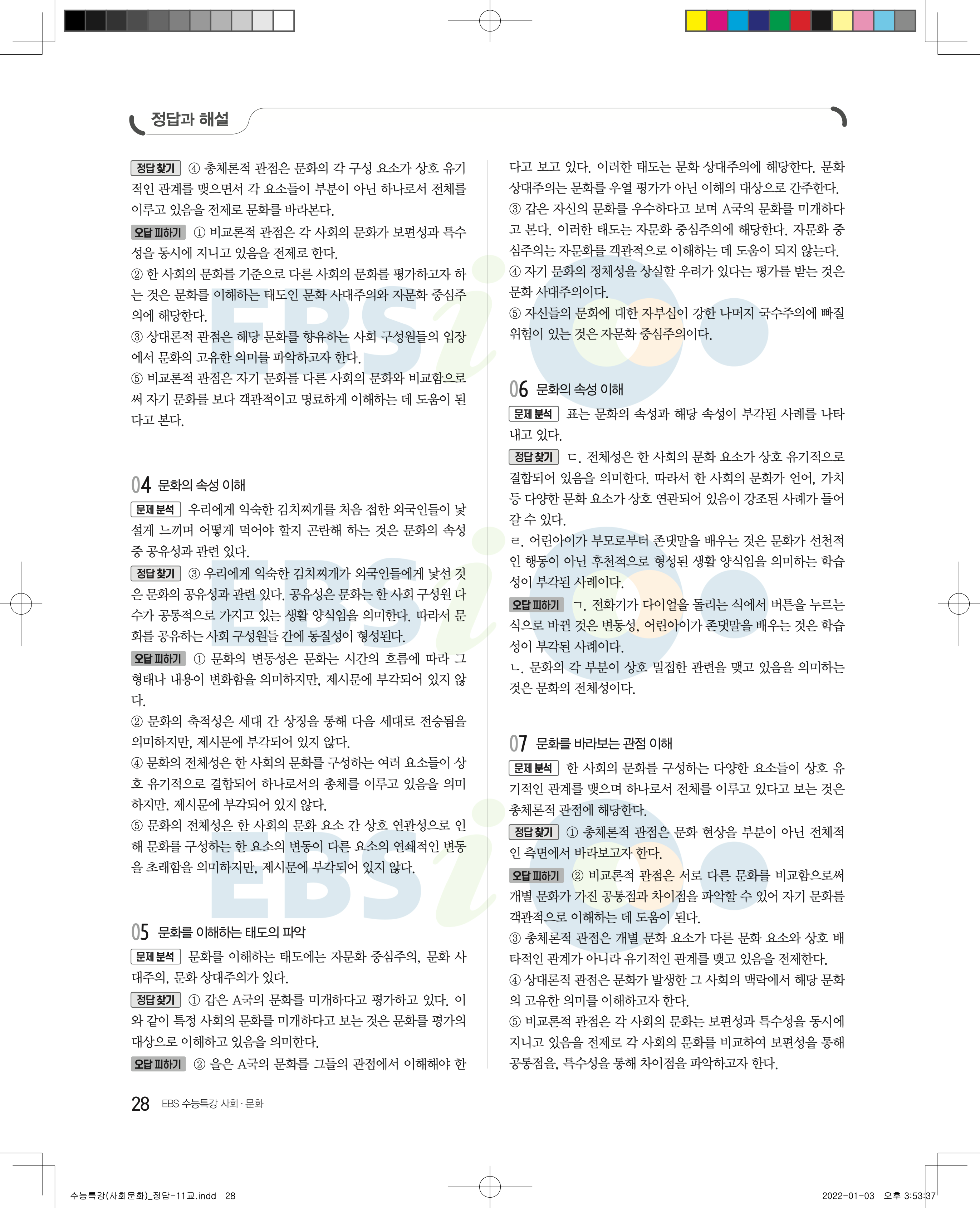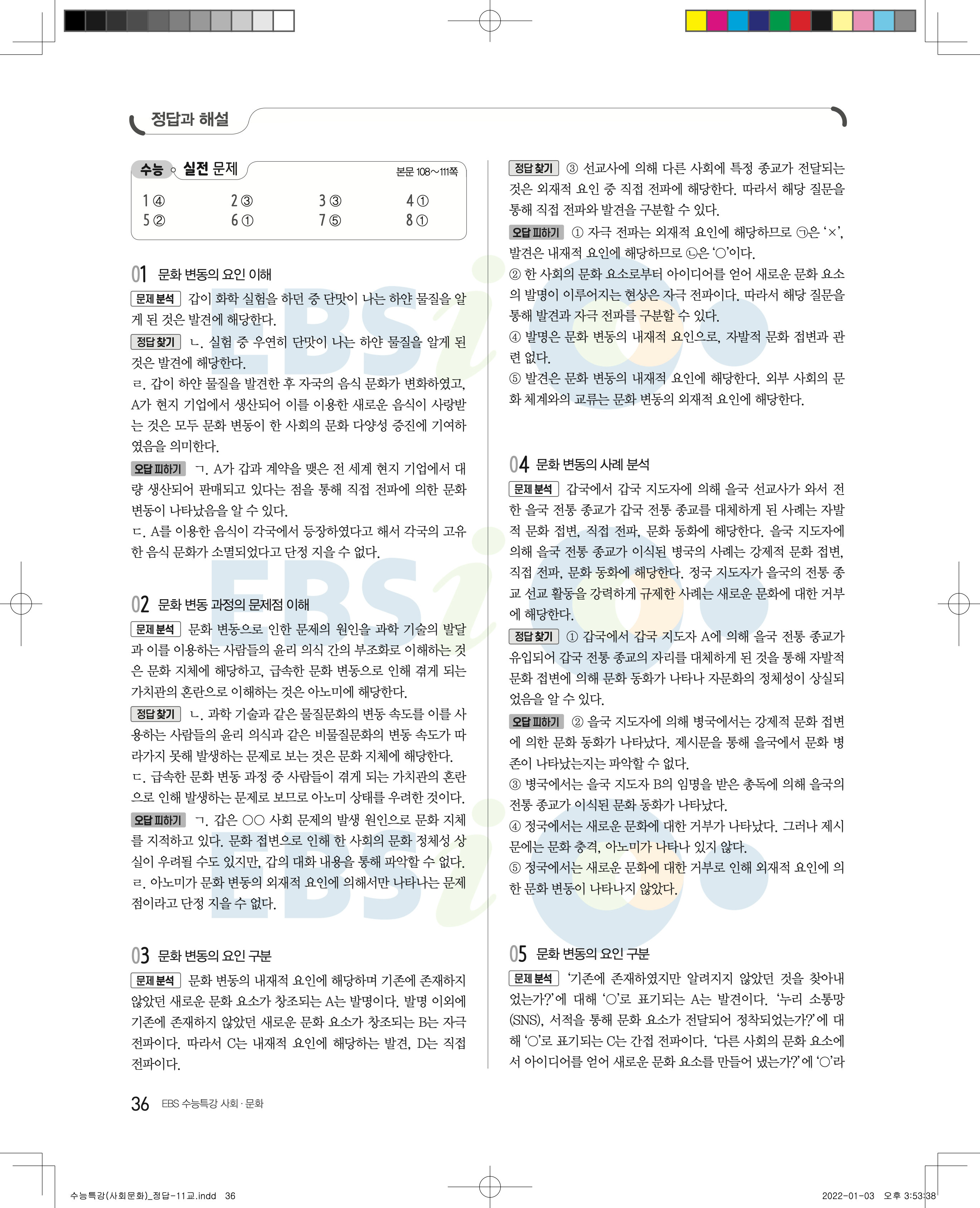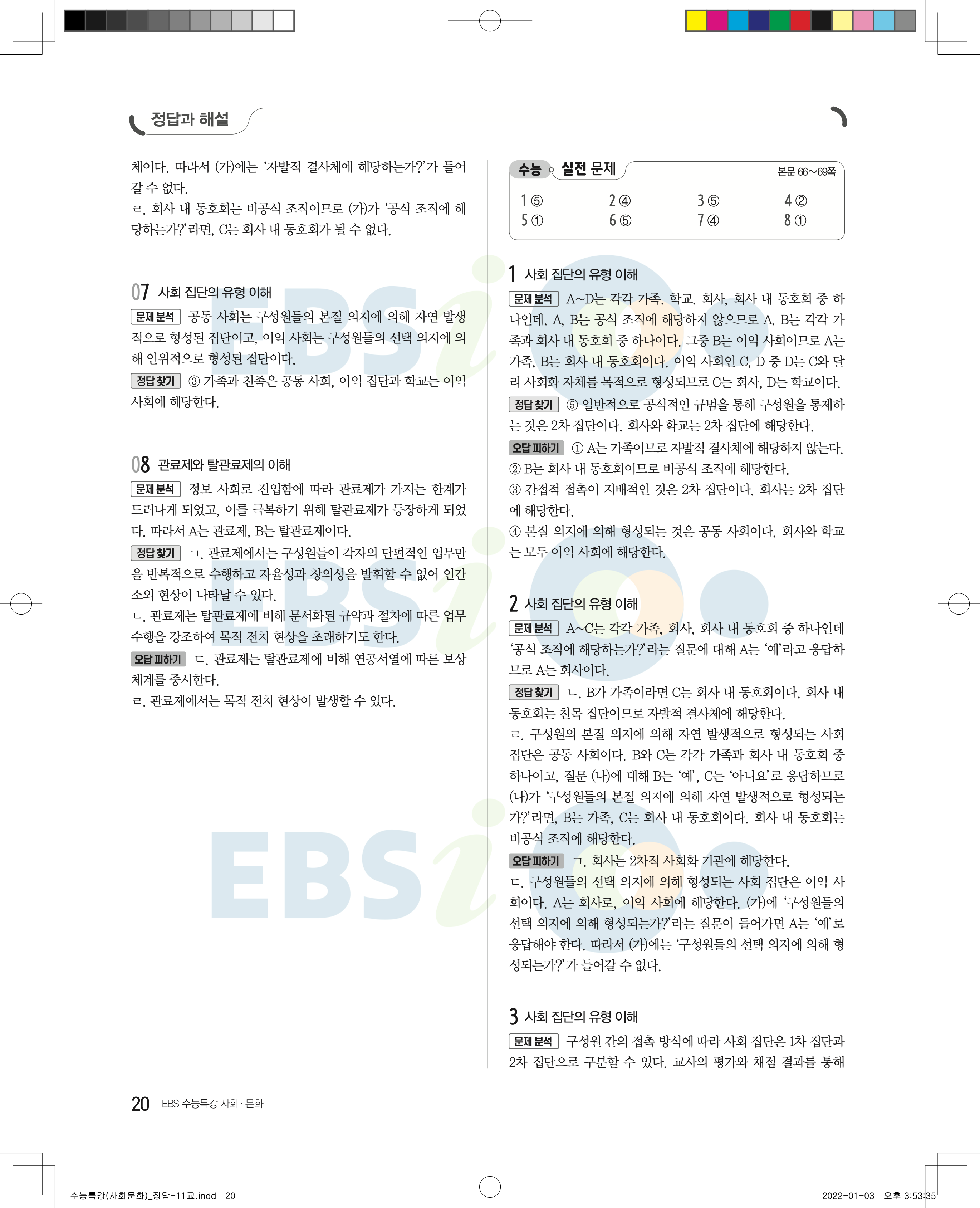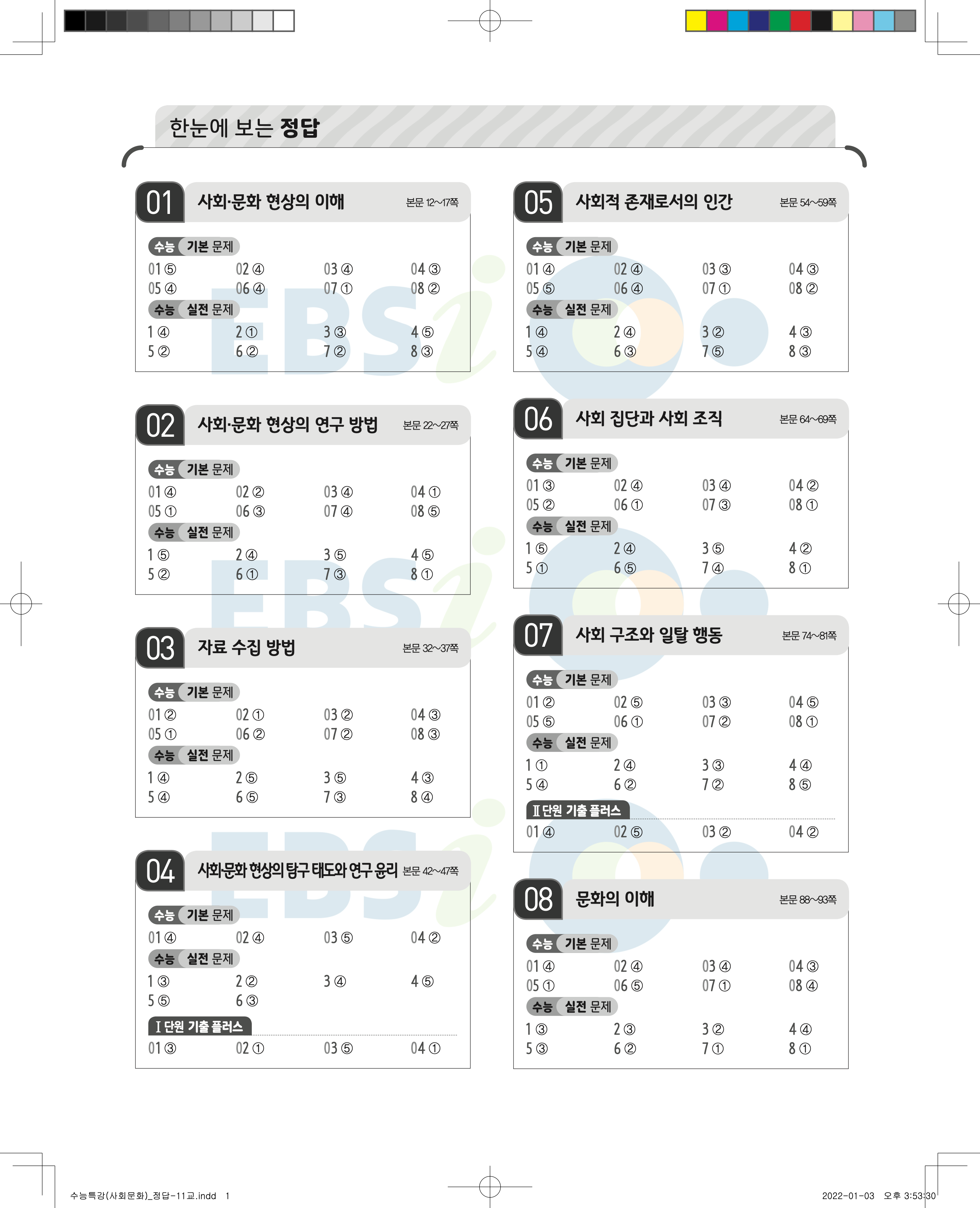 2023 수능특강 사회문화 답지 수특사문답지 바로보는 사진답지 모바일최적화