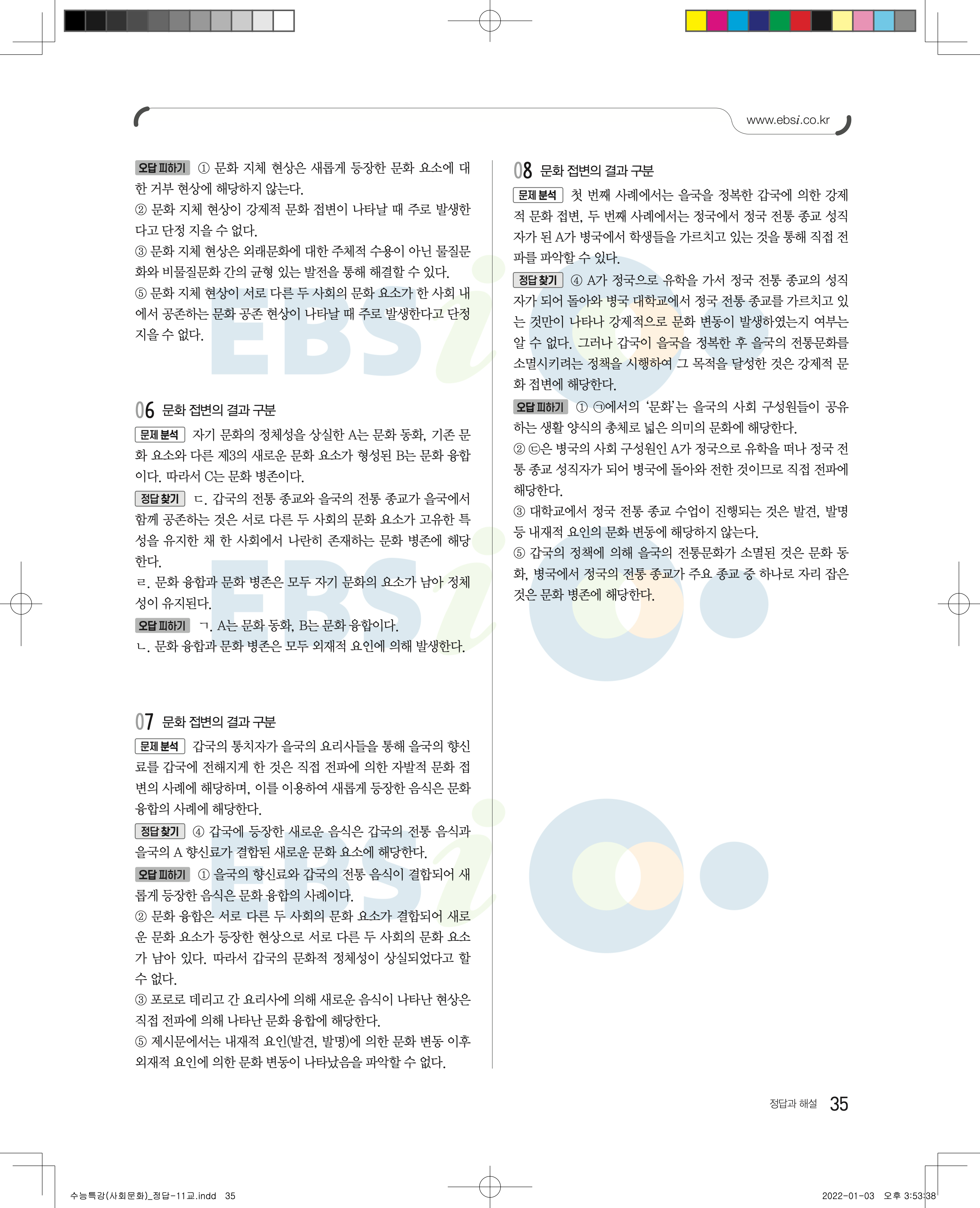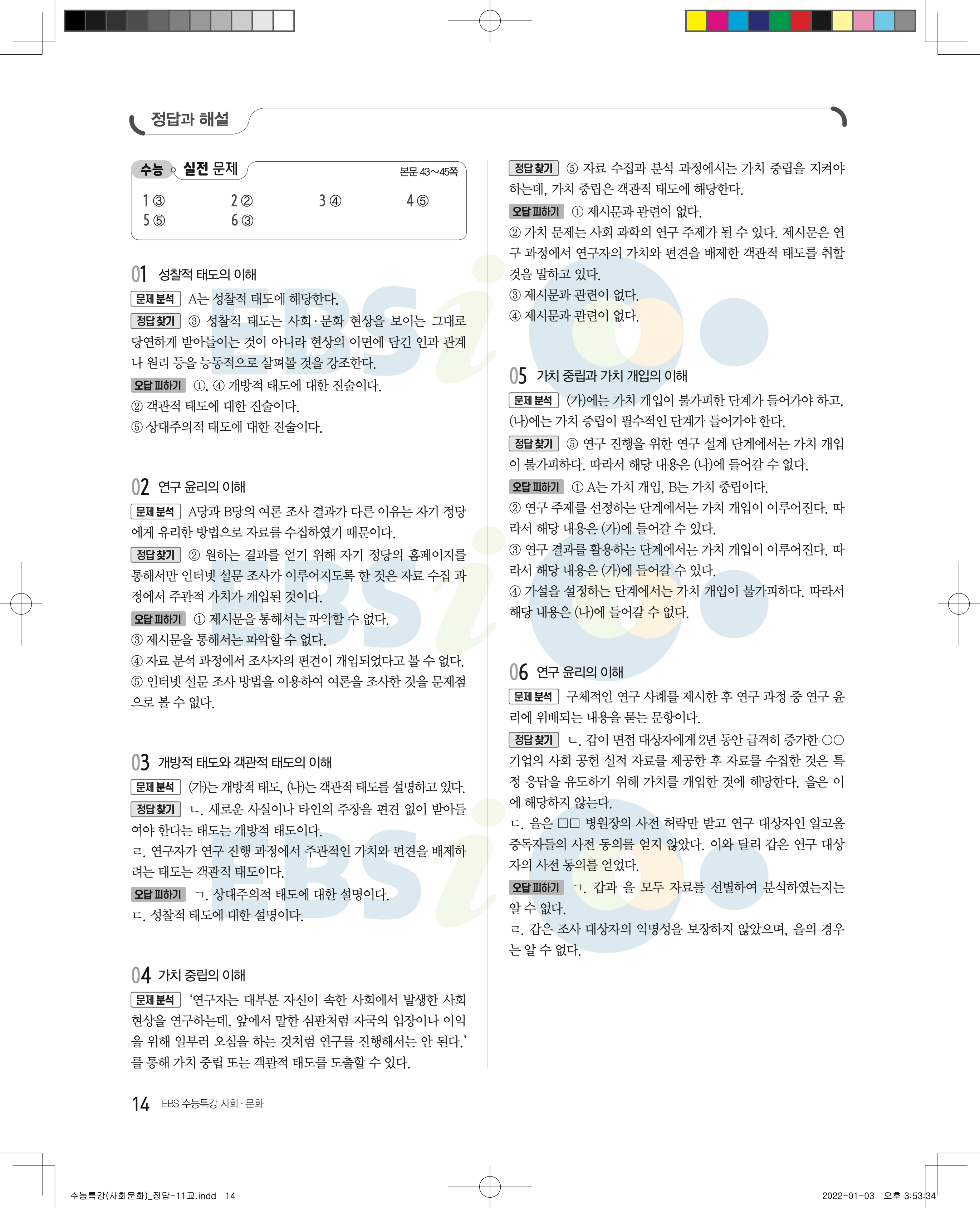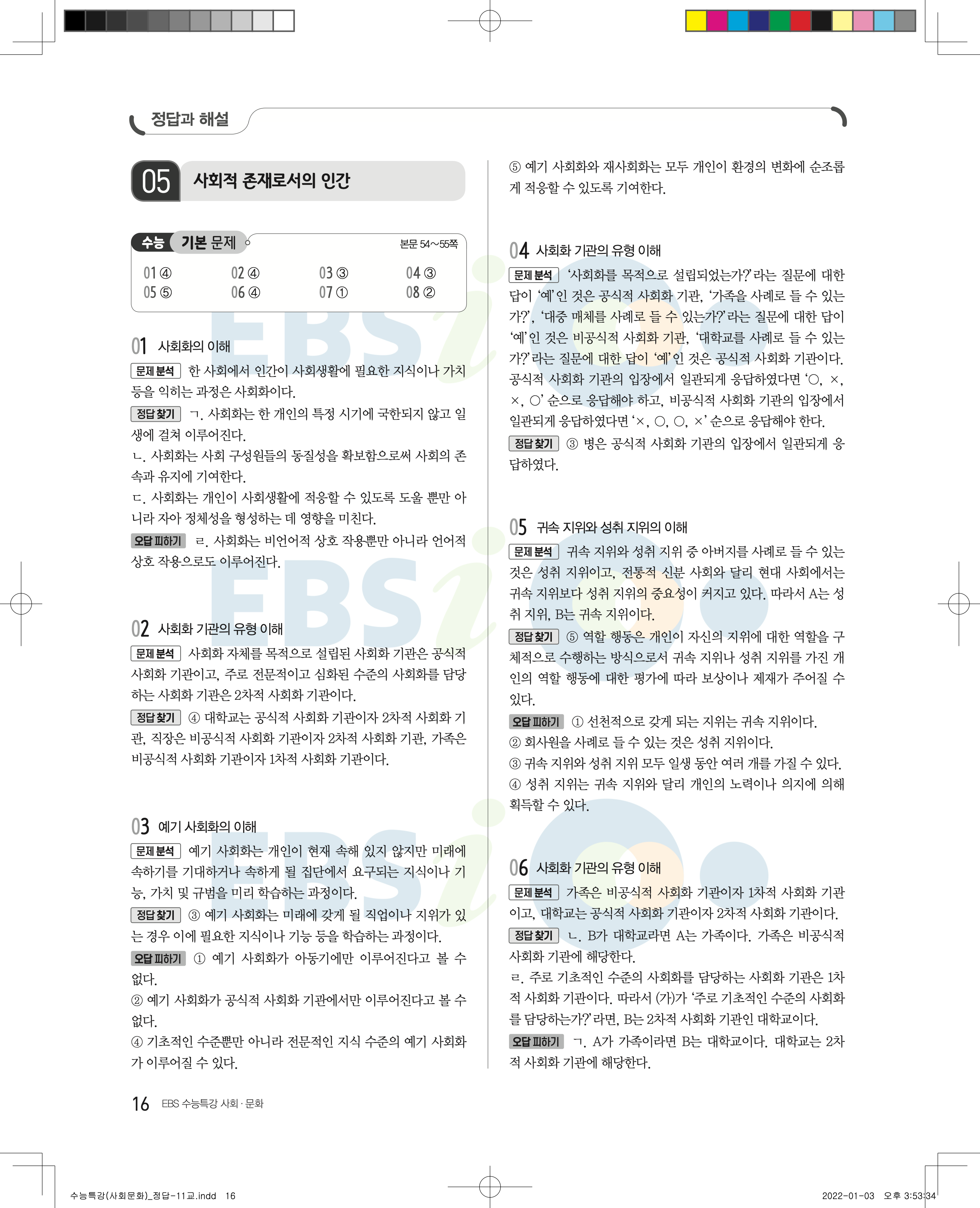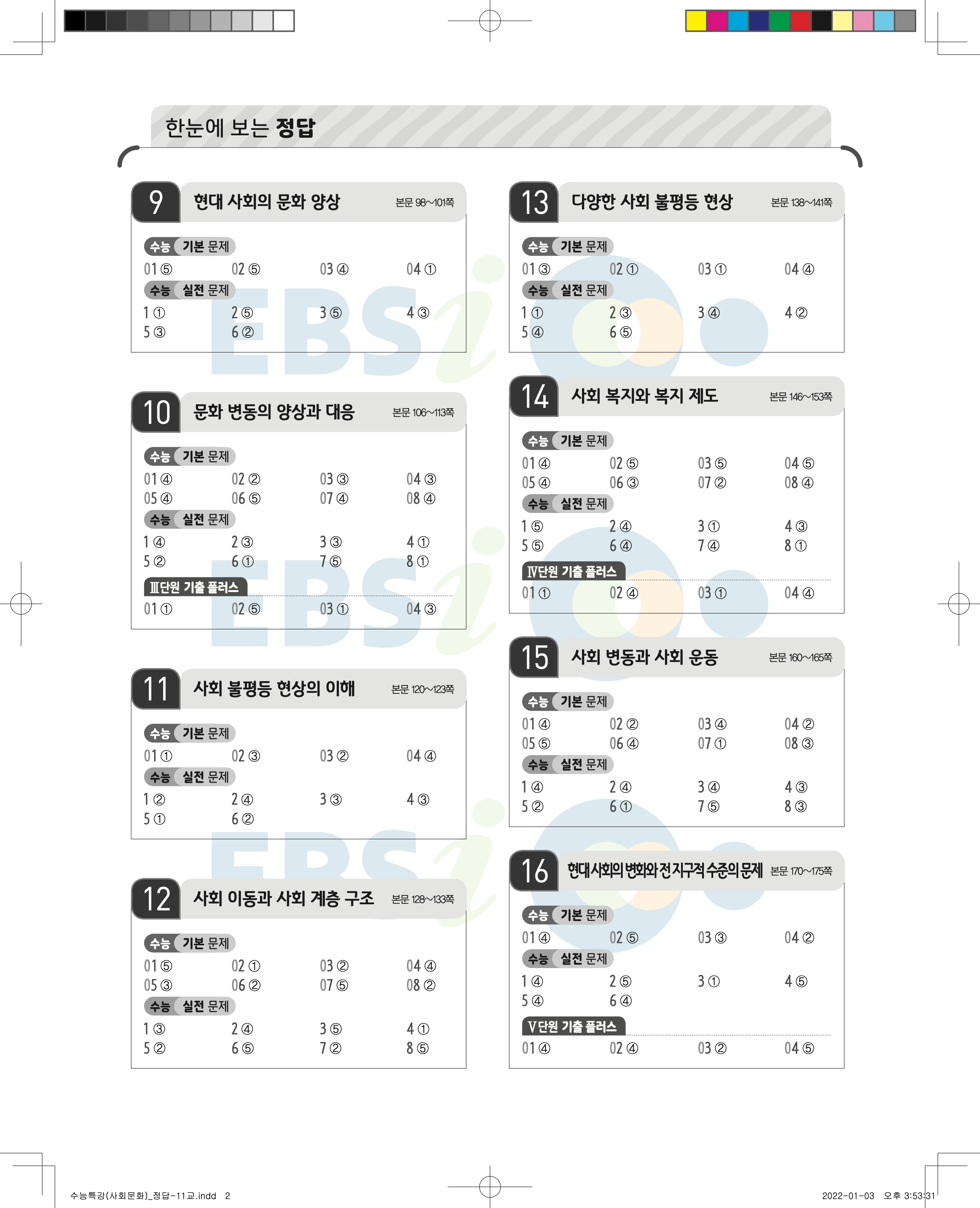 2023 수능특강 사회문화 답지 수특사문답지 바로보는 사진답지 모바일최적화
