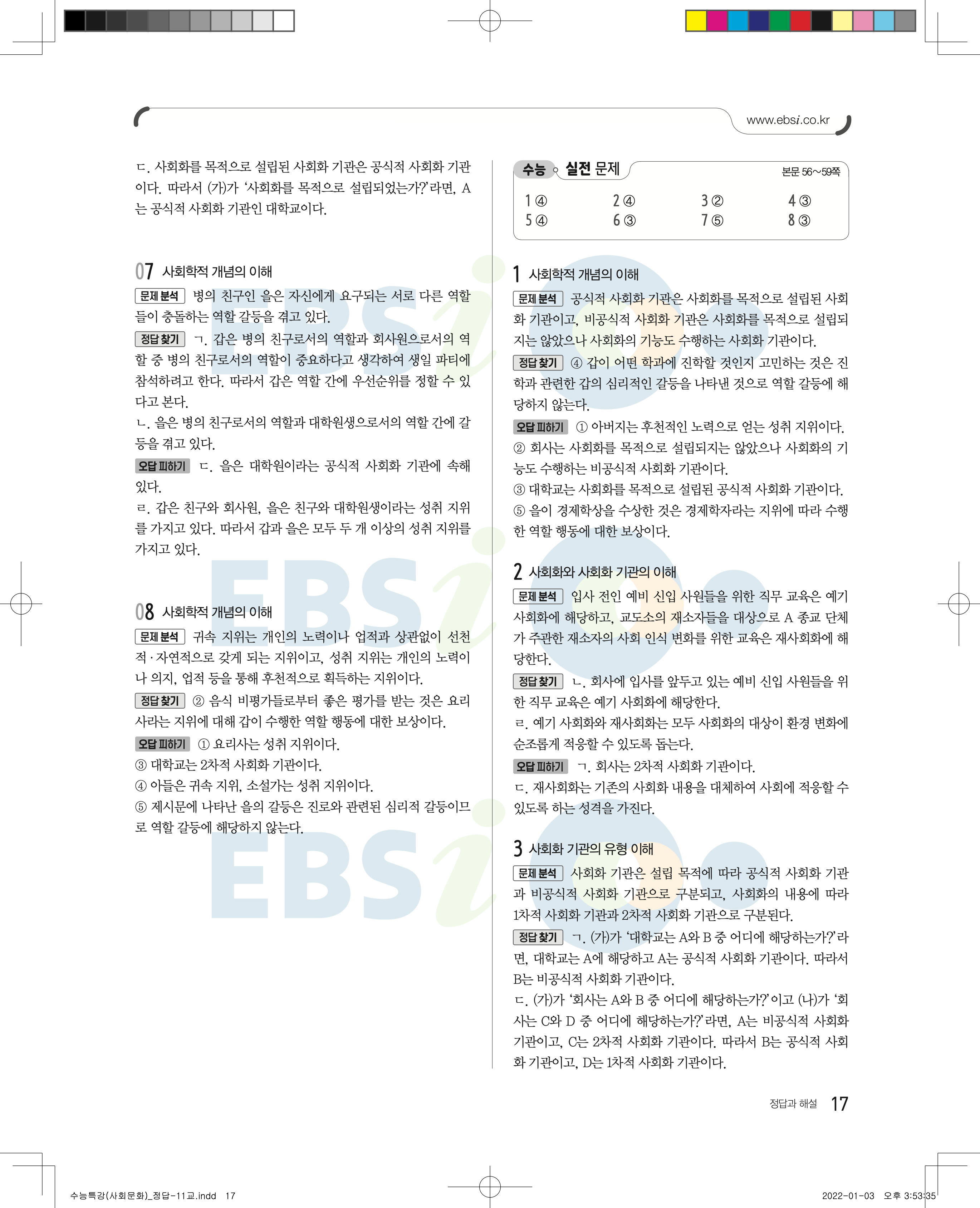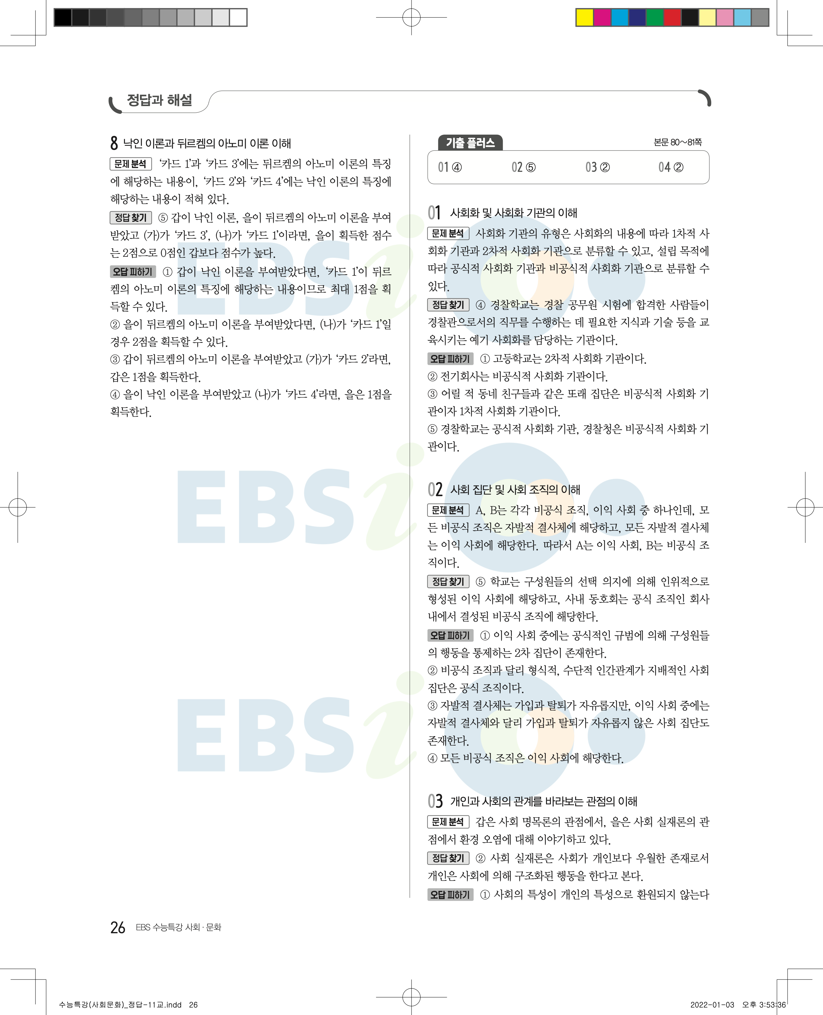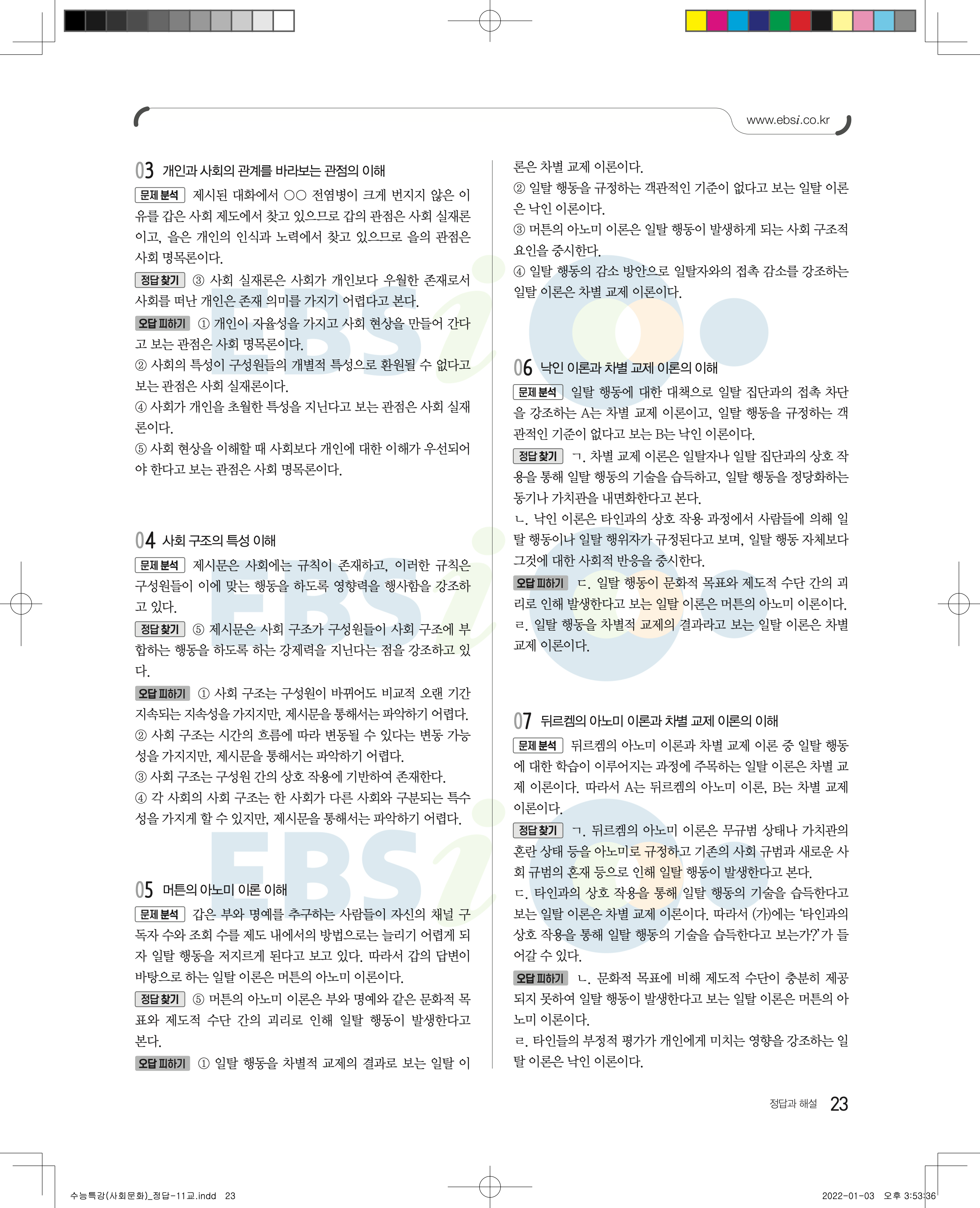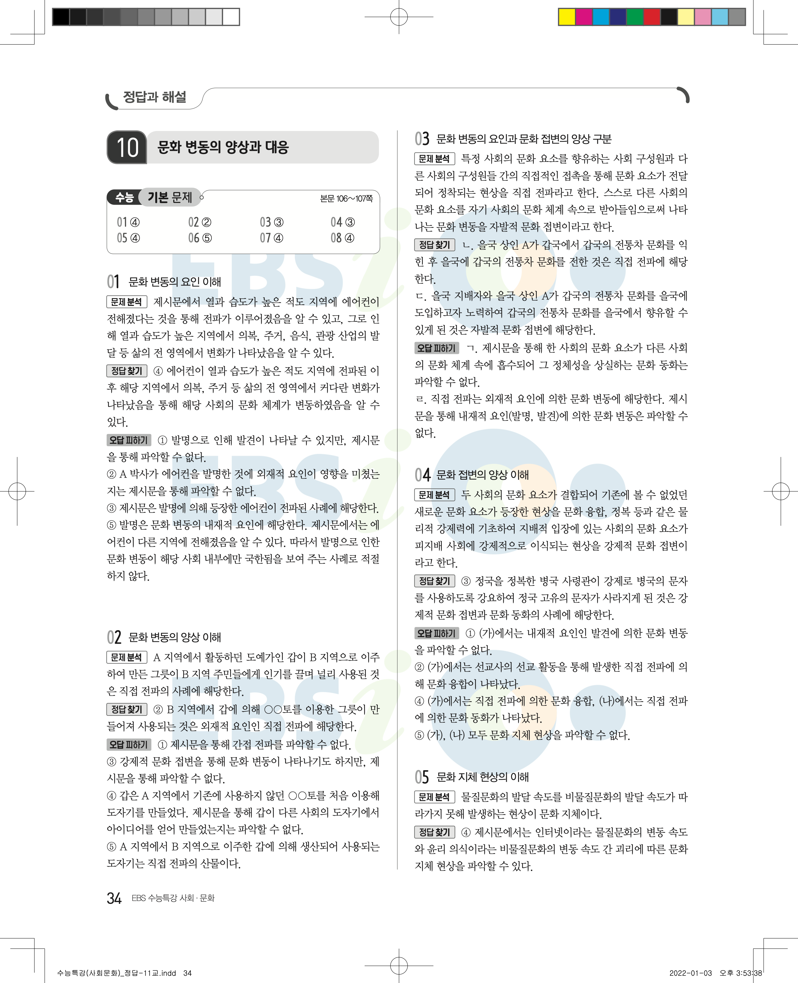 2023 수능특강 사회문화 답지 수특사문답지 바로보는 사진답지 모바일최적화