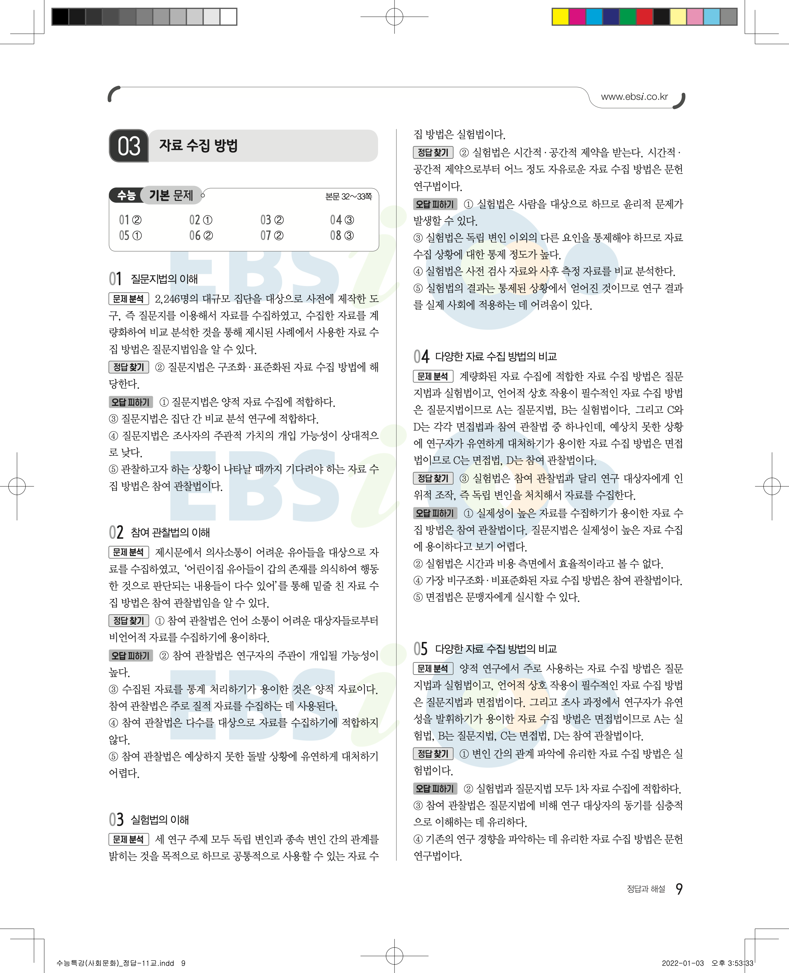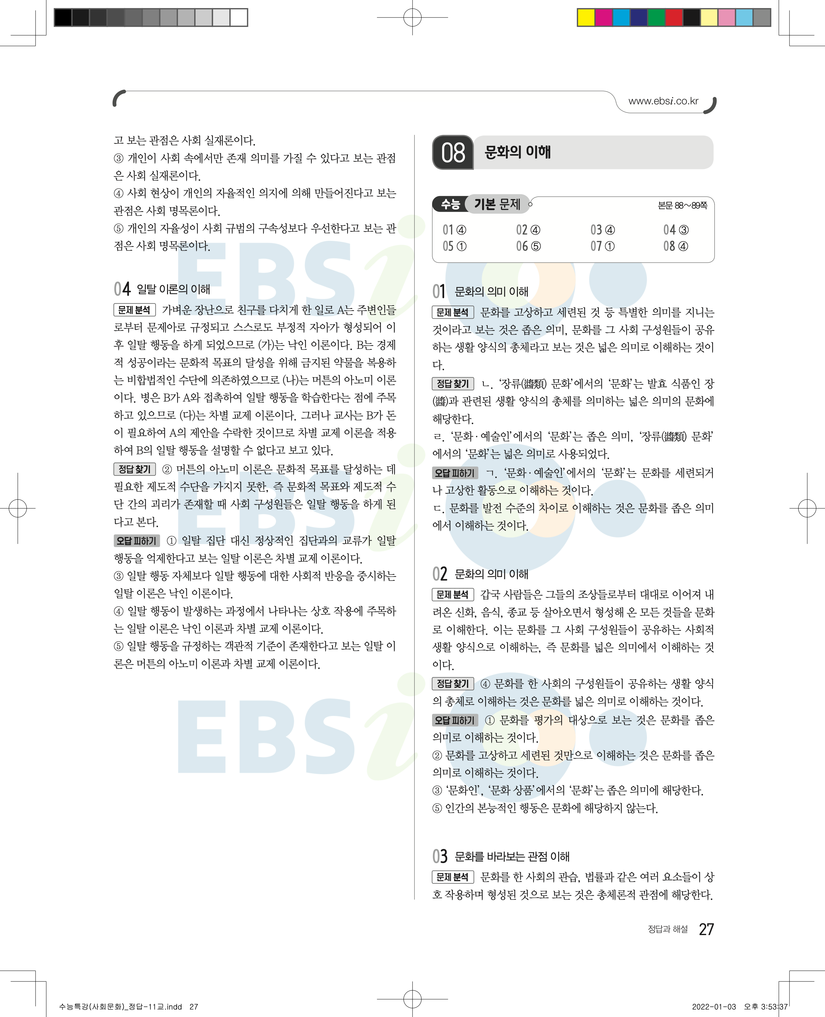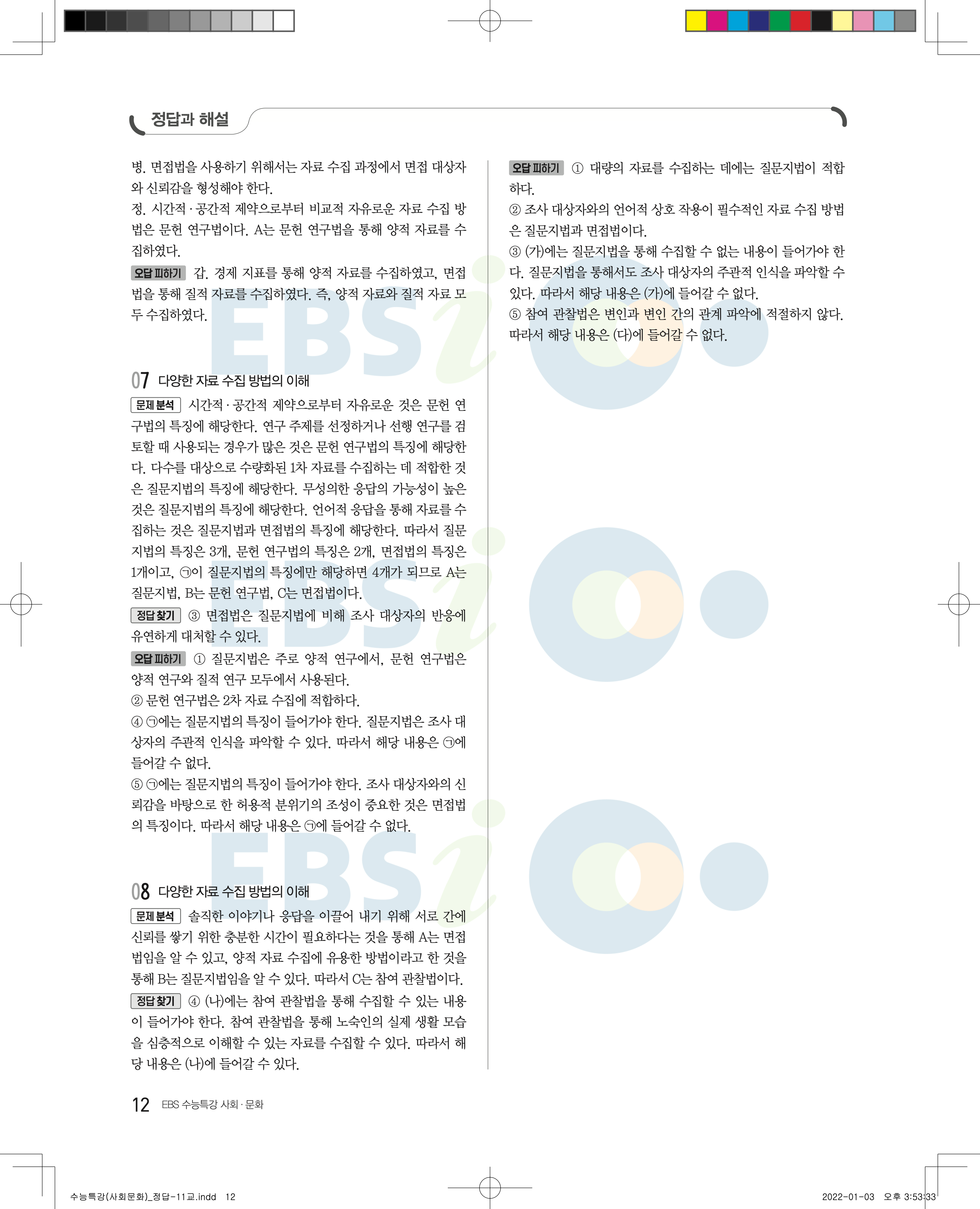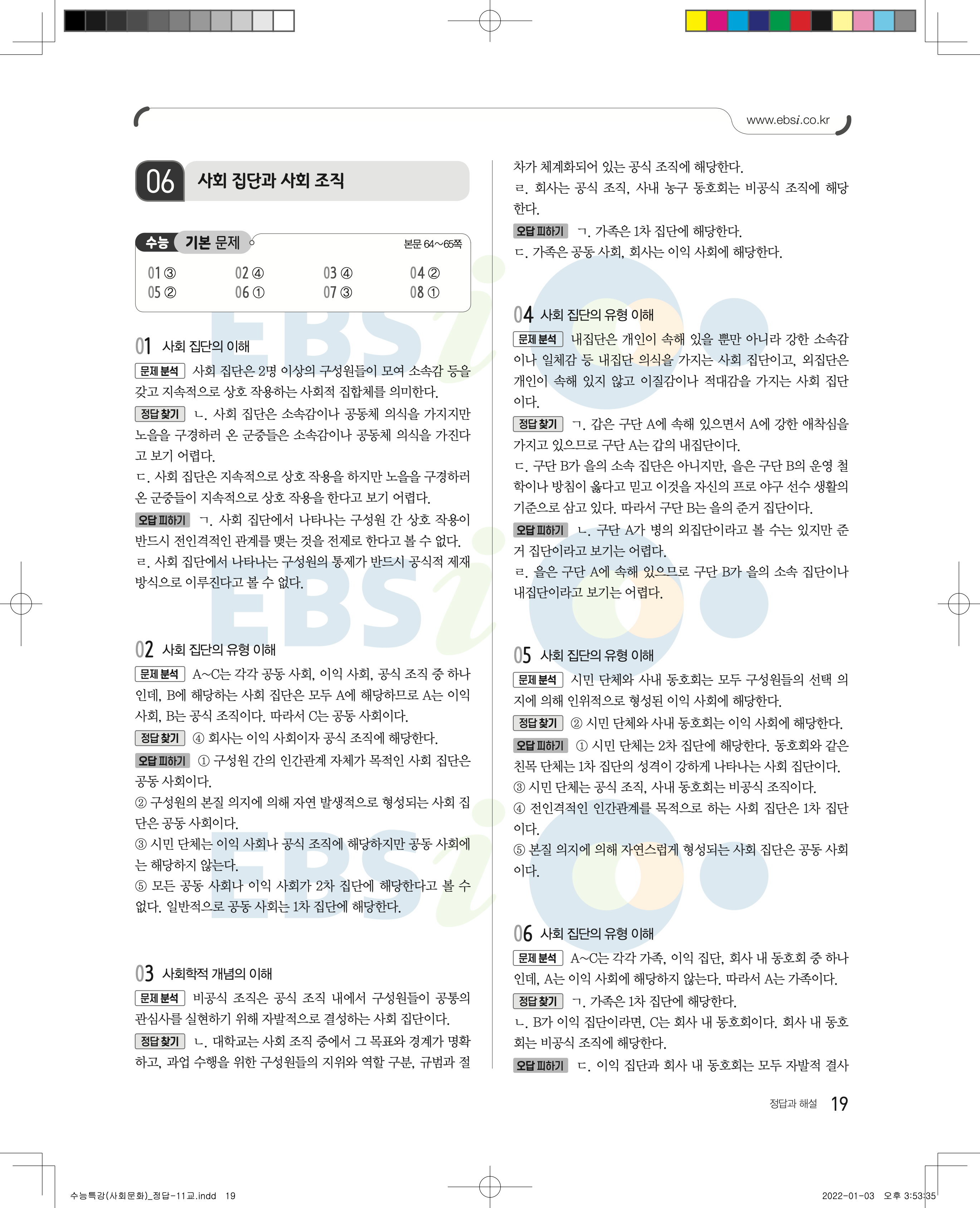 2023 수능특강 사회문화 답지 수특사문답지 바로보는 사진답지 모바일최적화