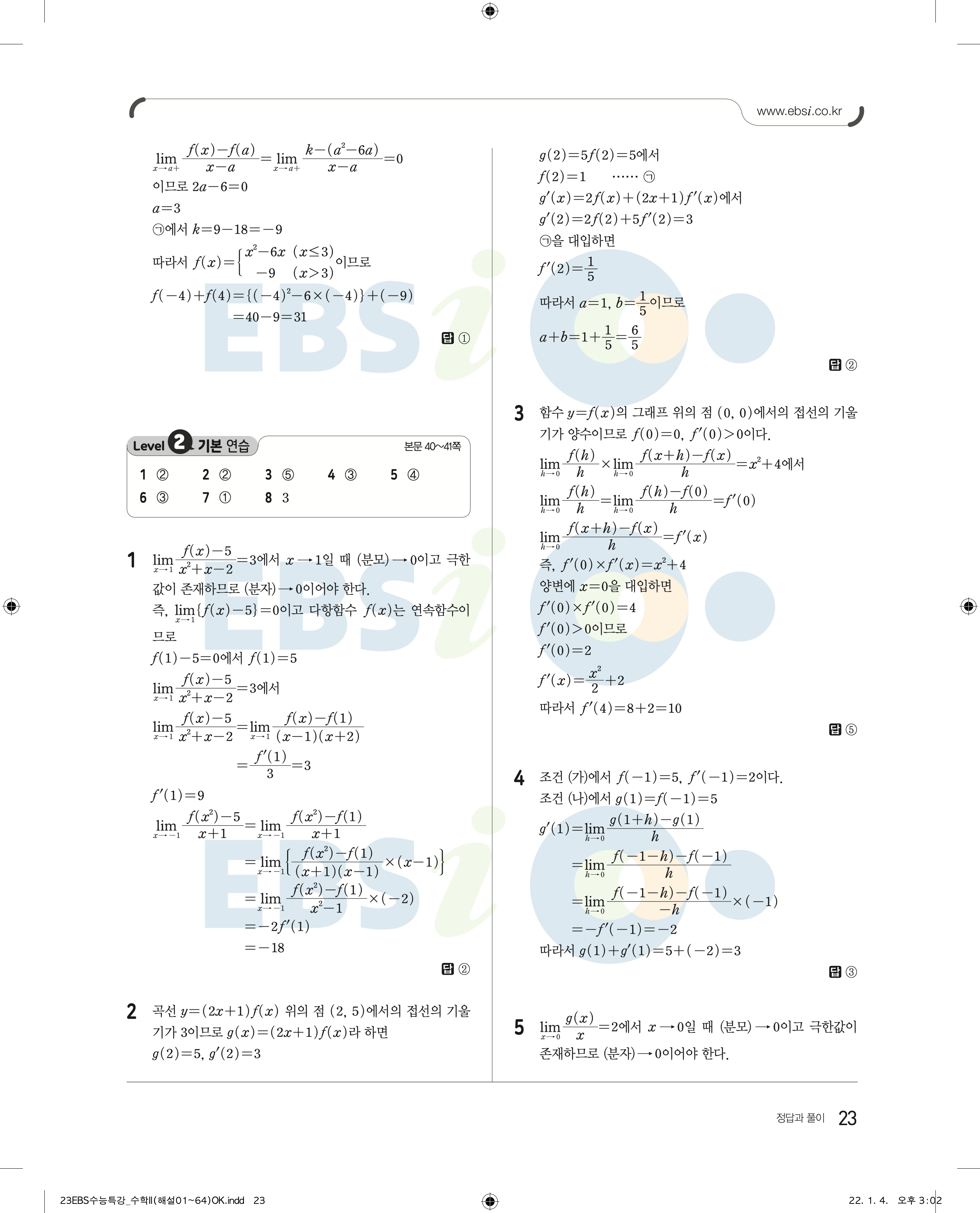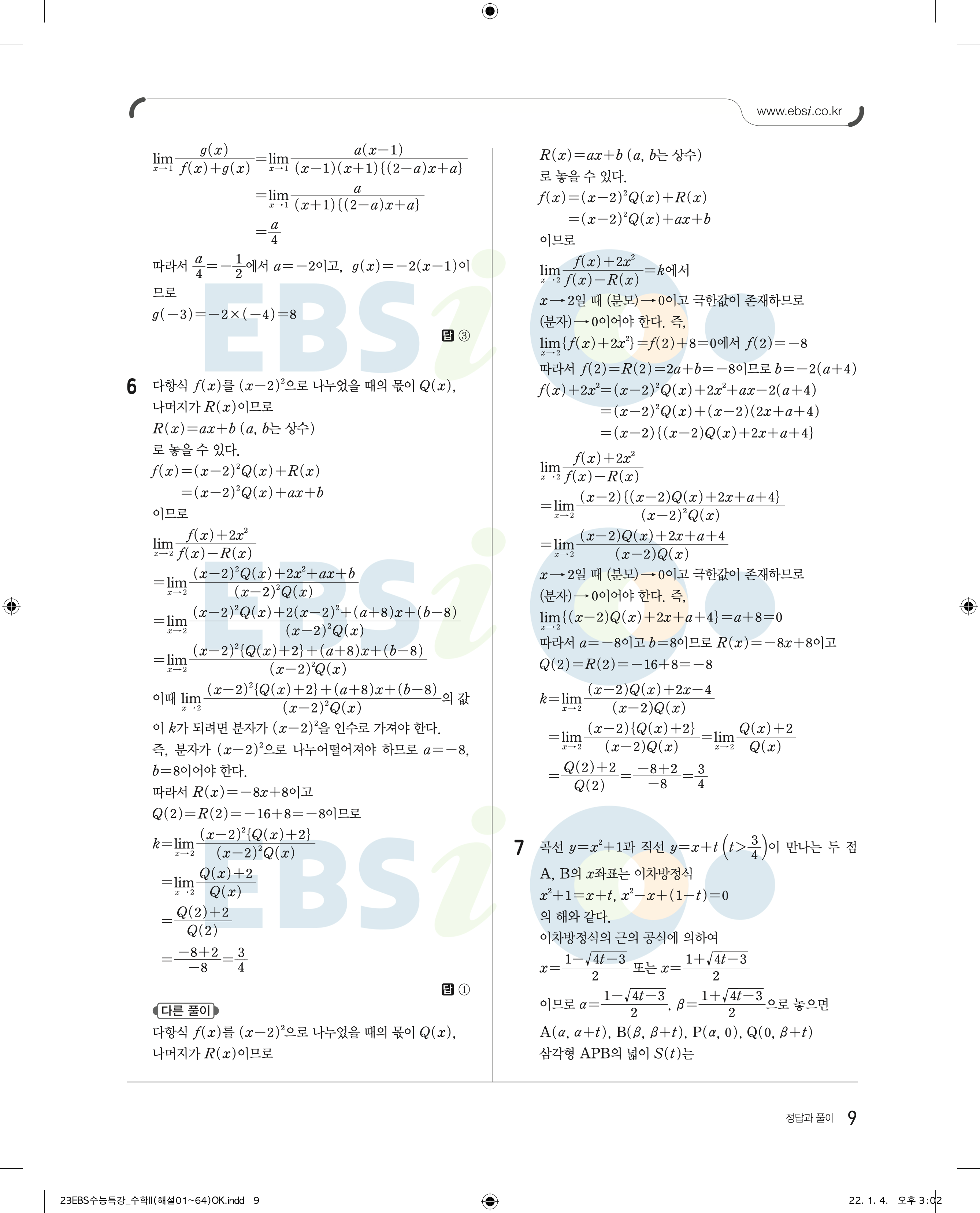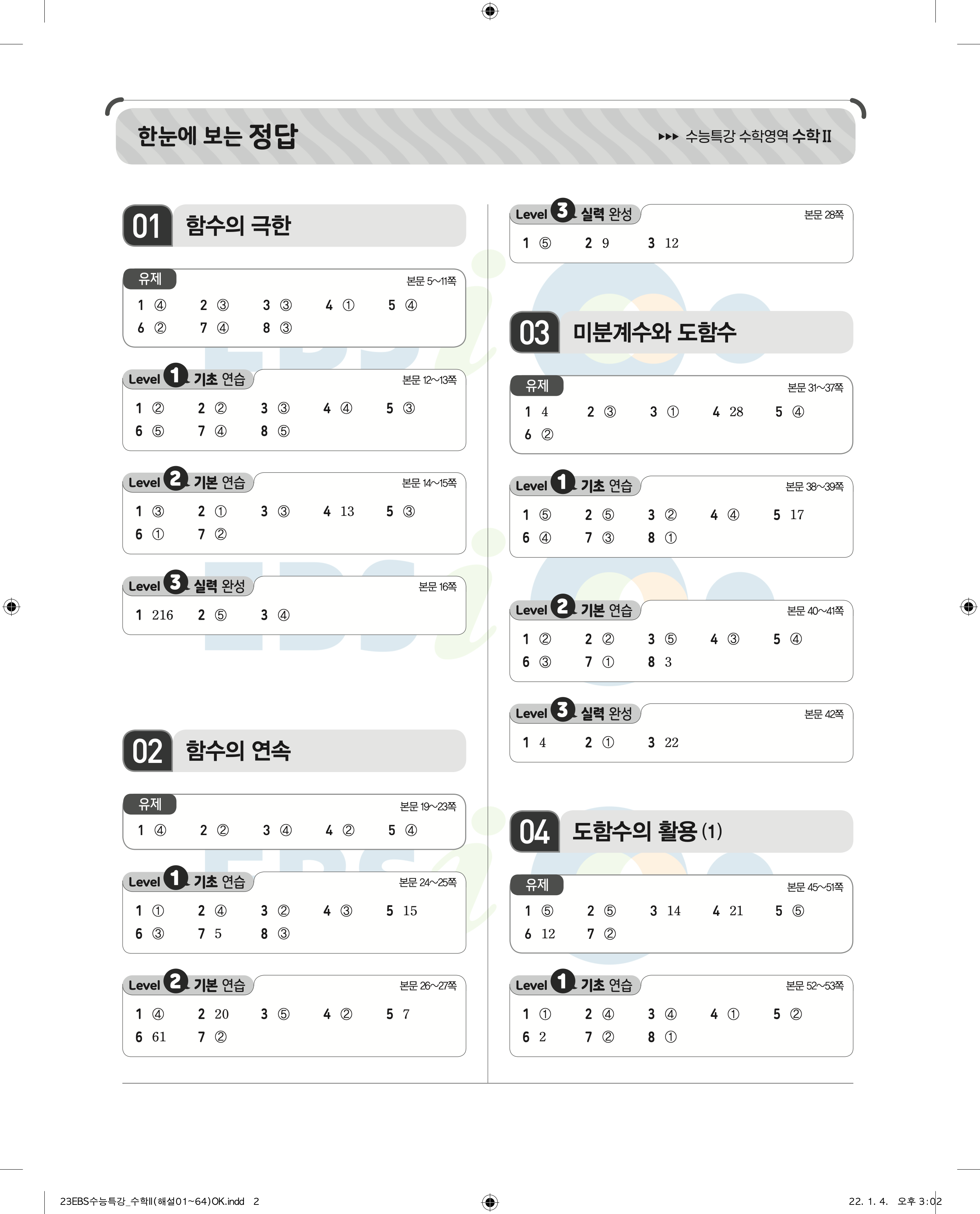 2023 수능특강 수학2 답지 수특2답지 바로보는 사진답지 모바일최적화
