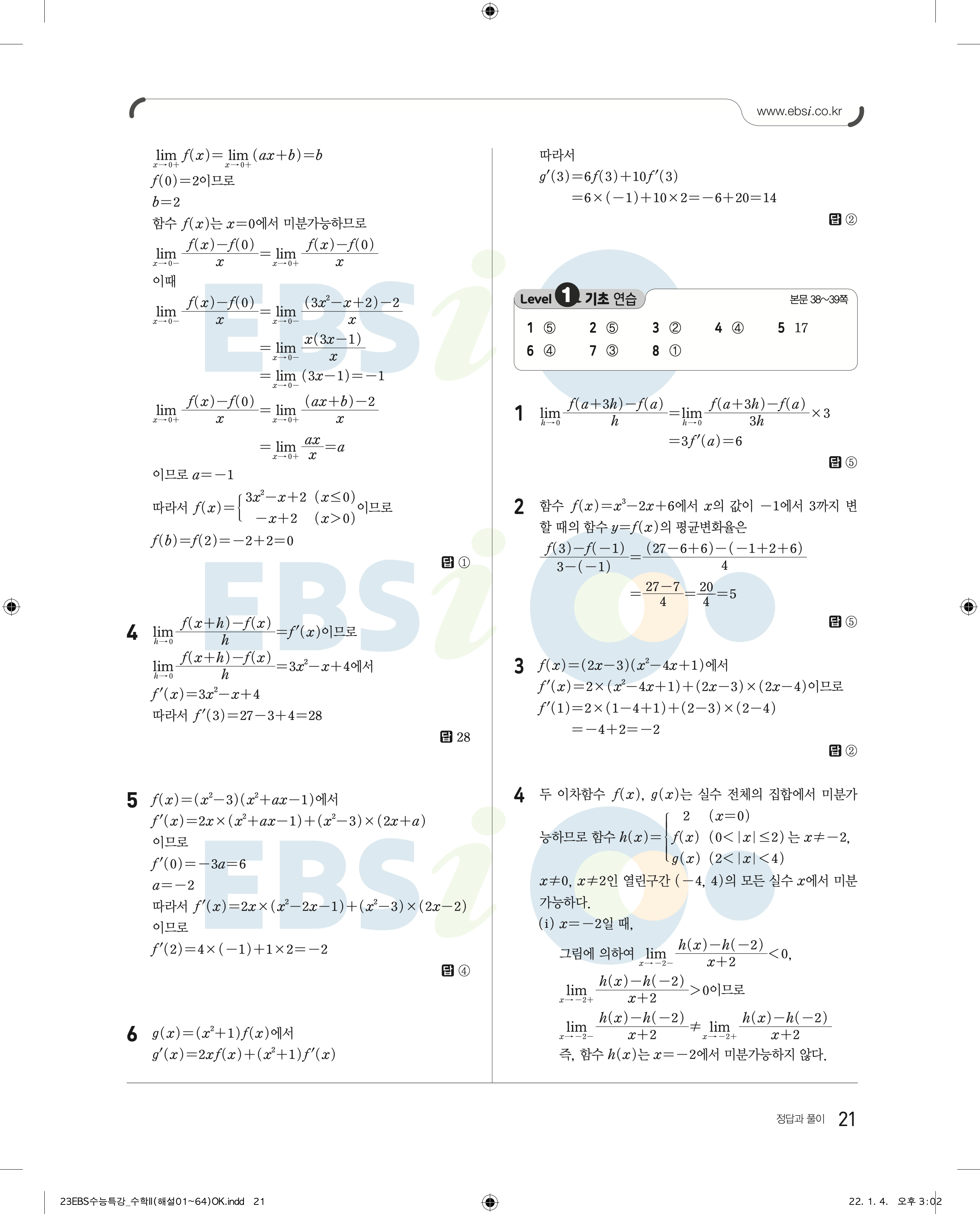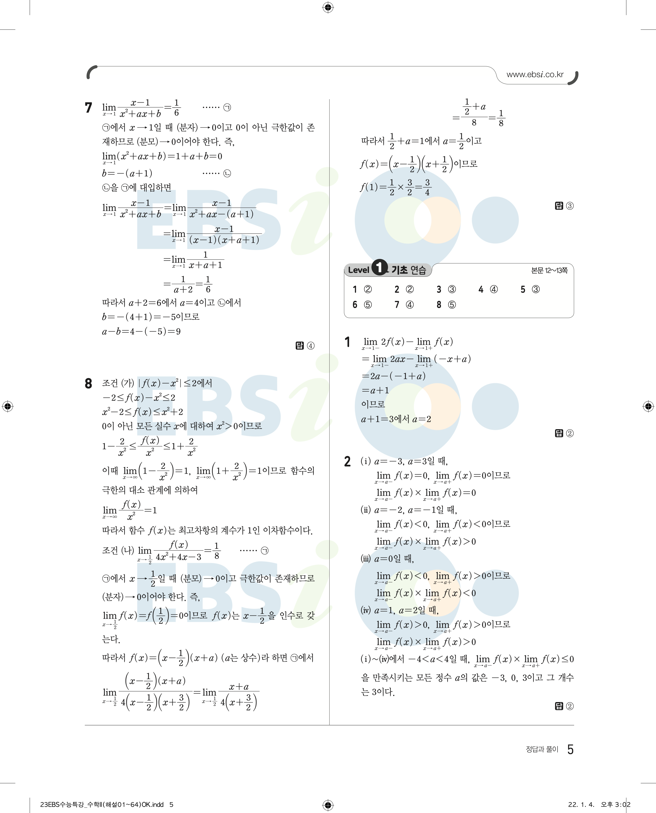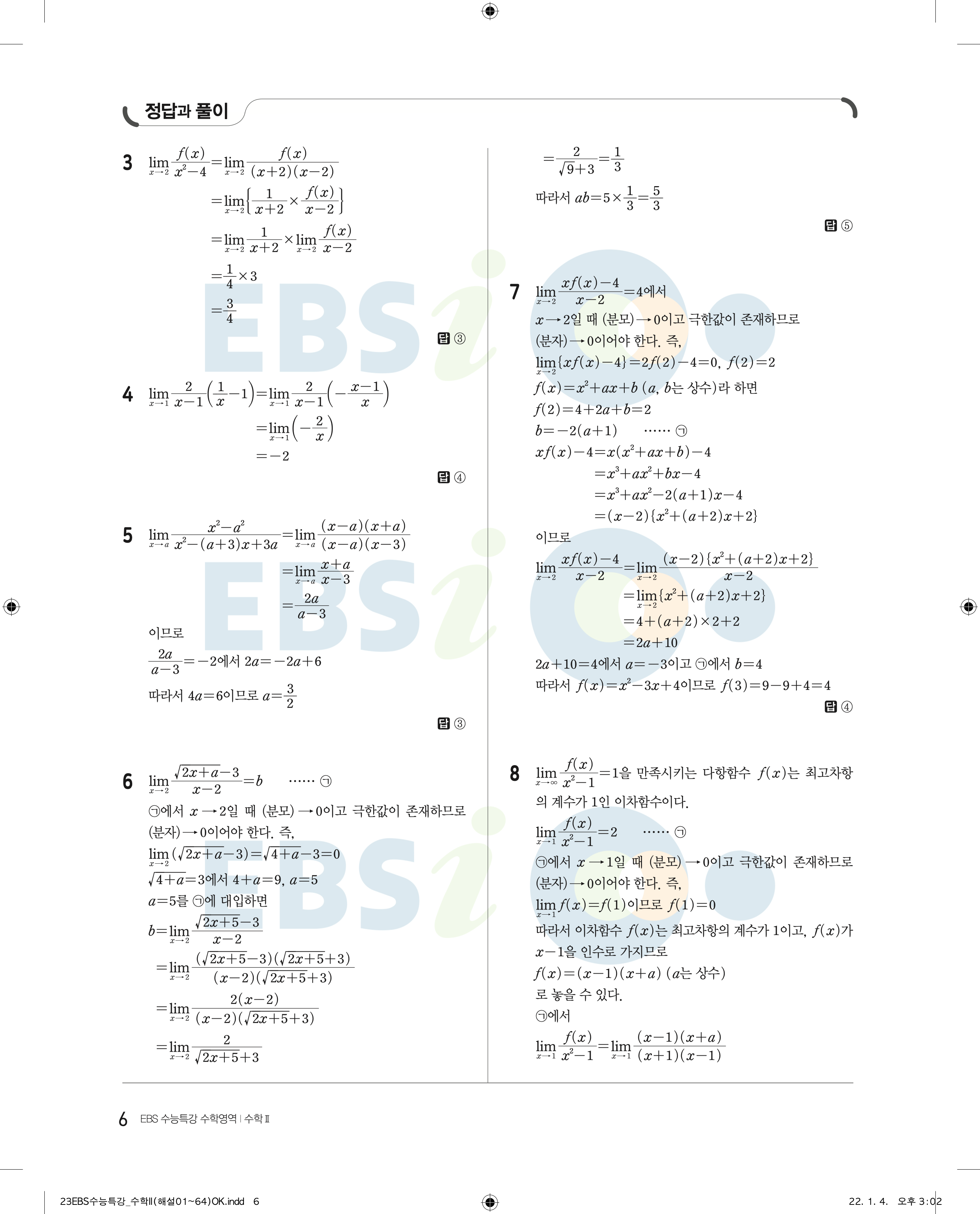 2023 수능특강 수학2 답지 수특2답지 바로보는 사진답지 모바일최적화