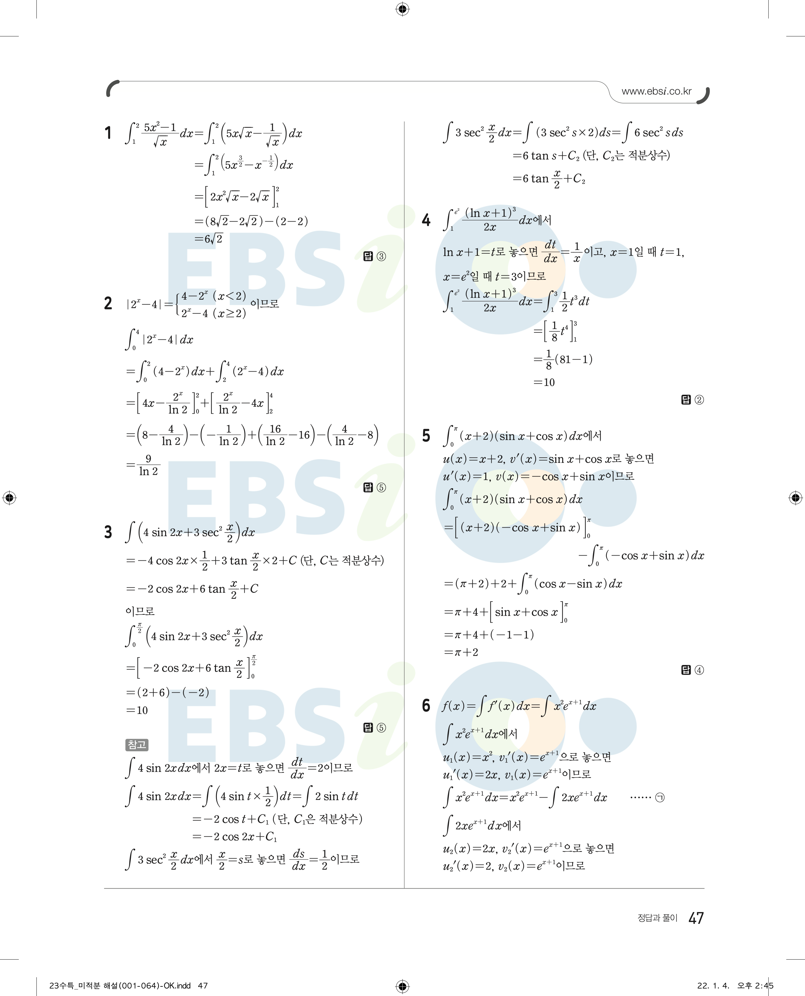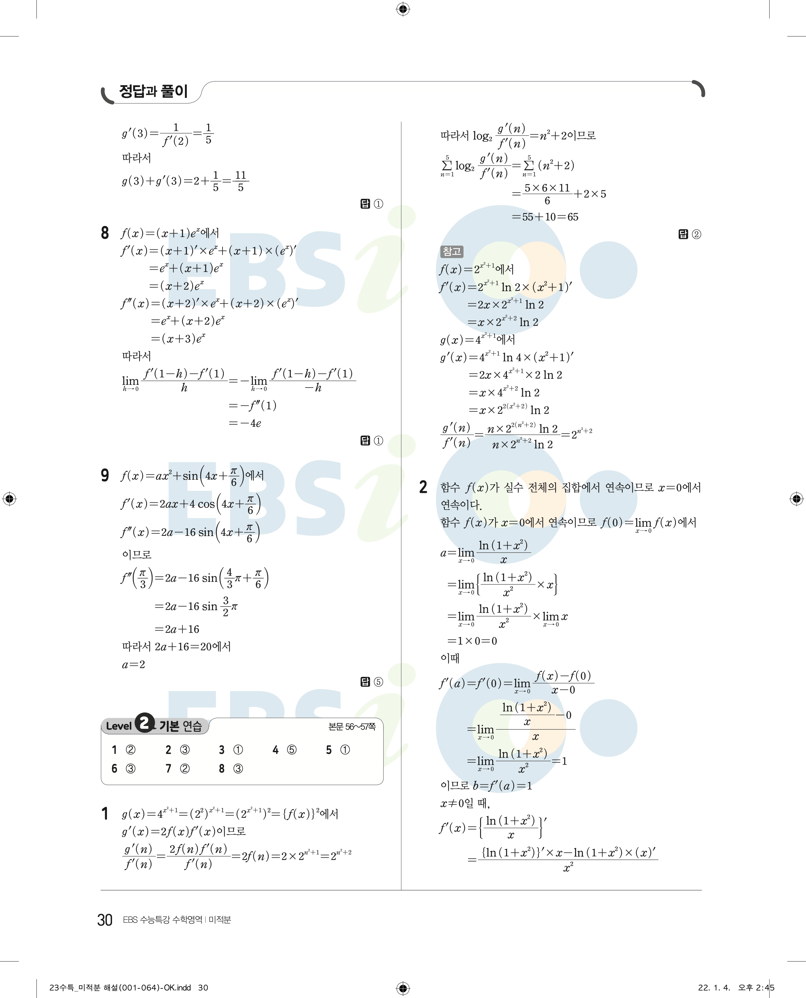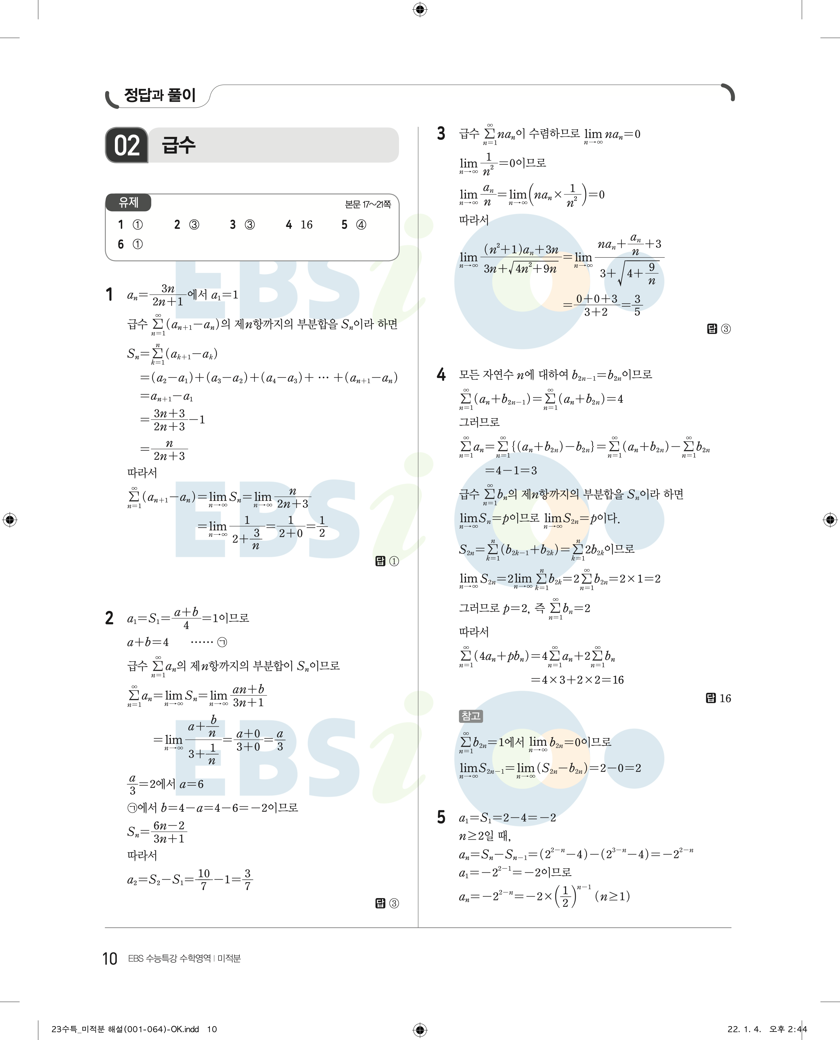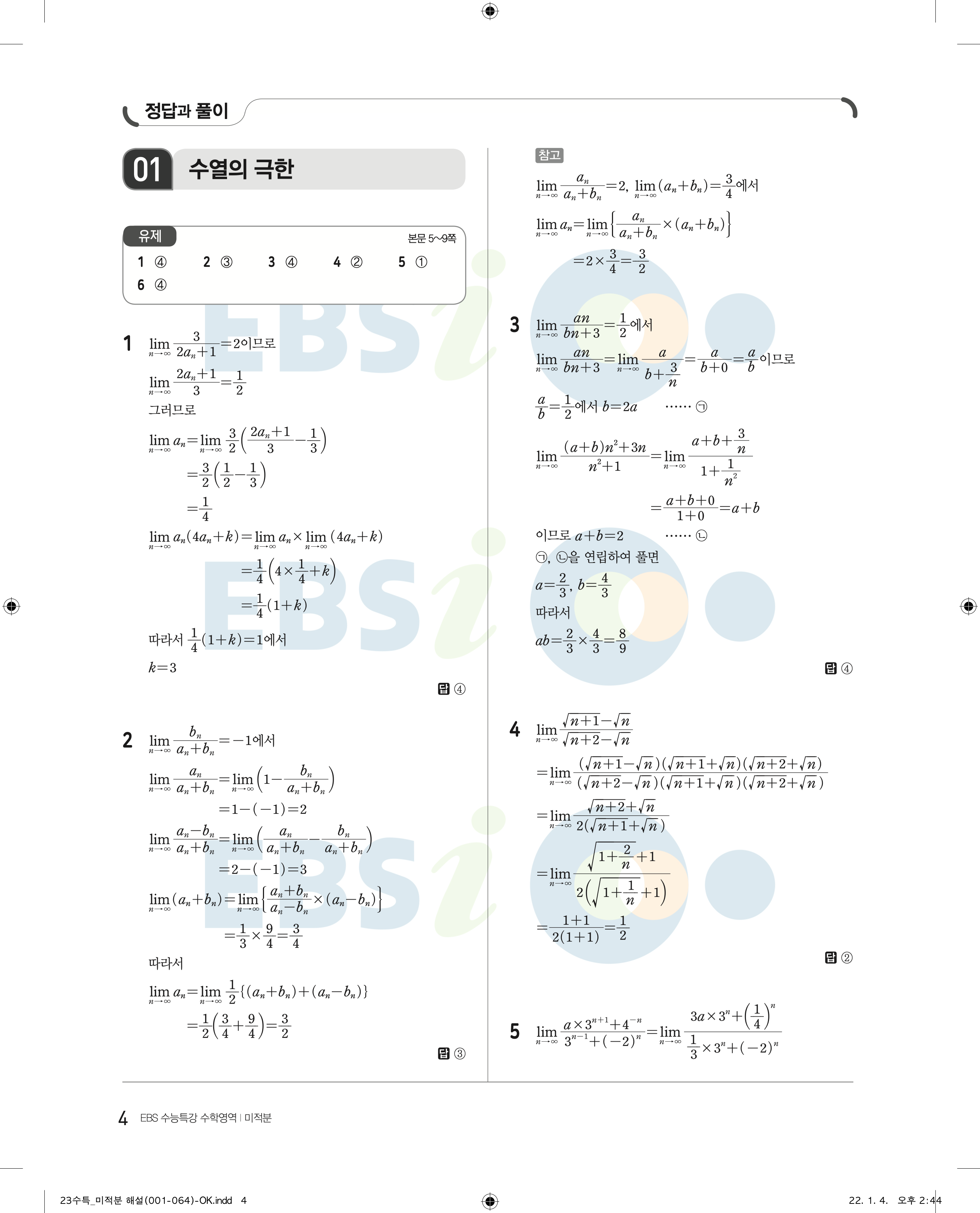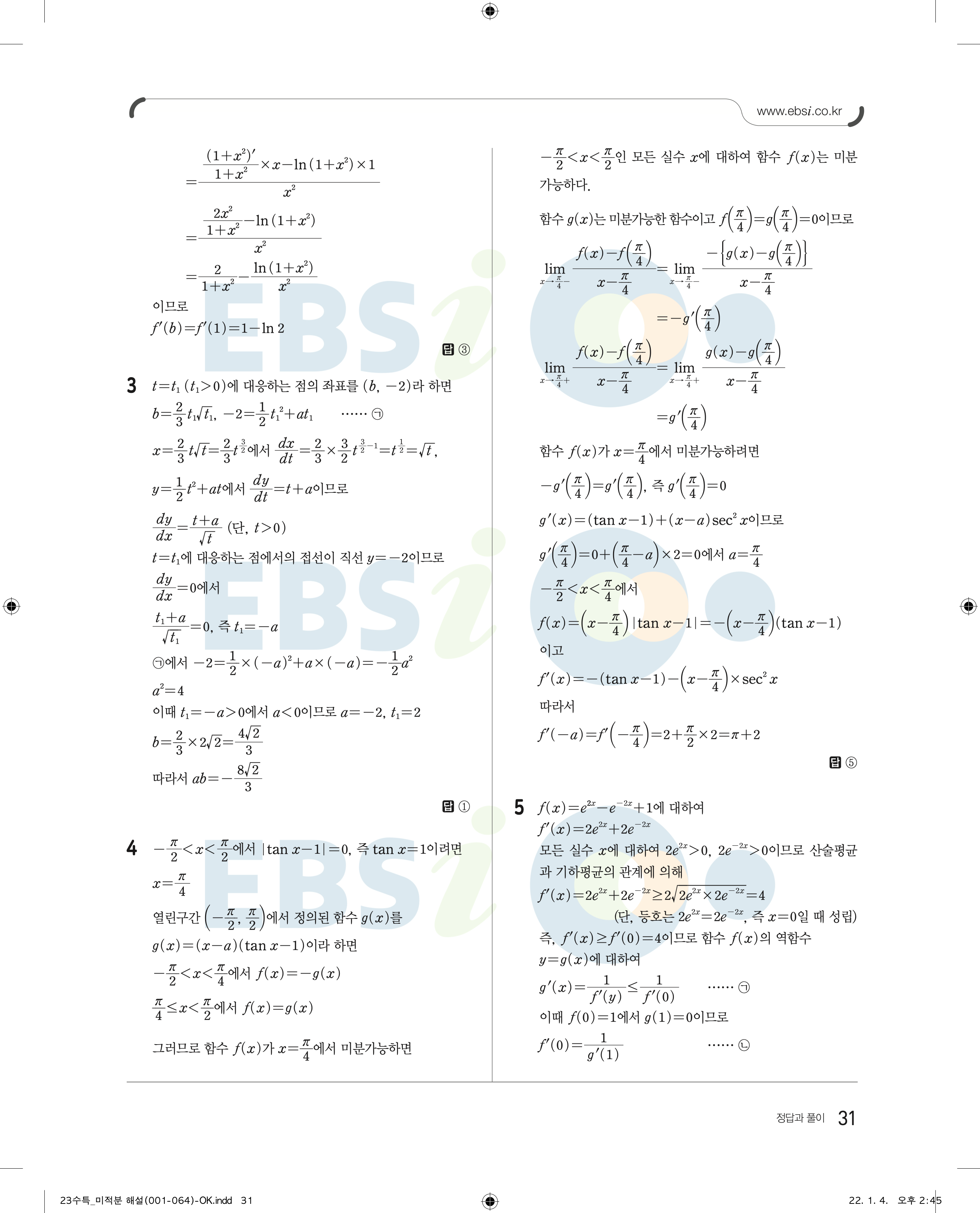 2023 수능특강 미적분 답지 수특미적답지 바로보는 사진답지 모바일최적화