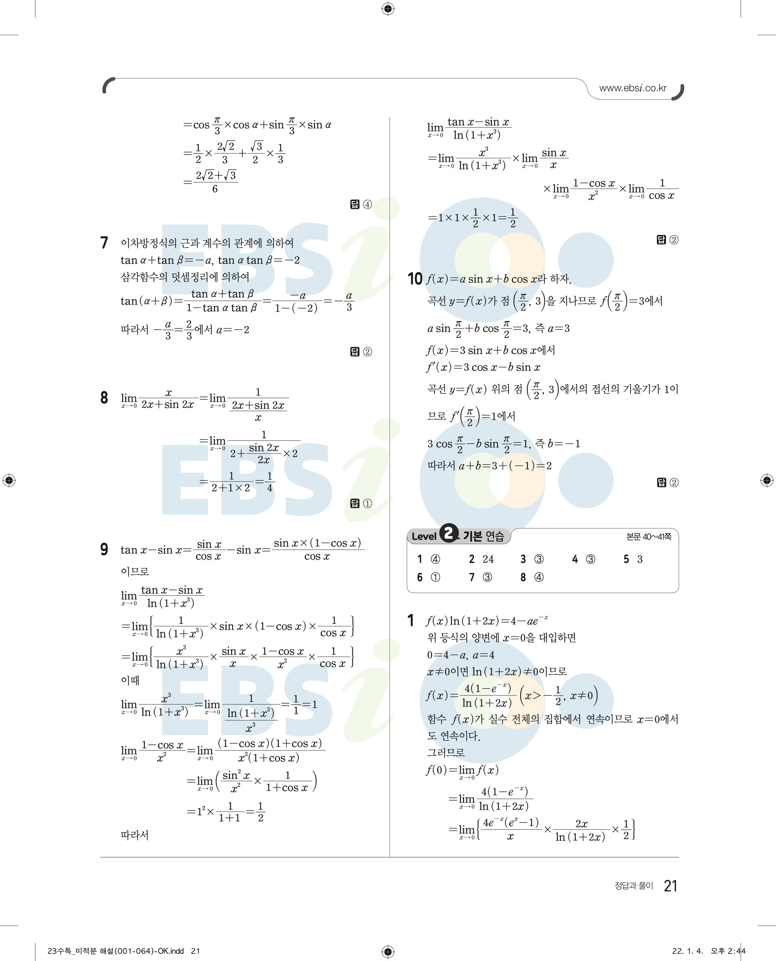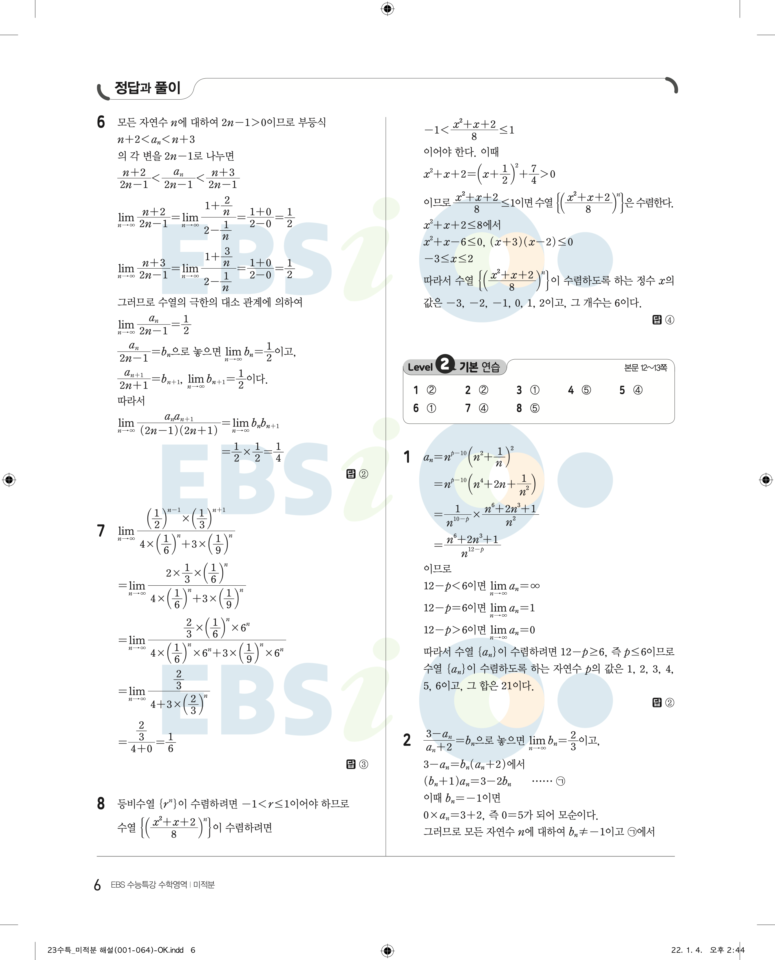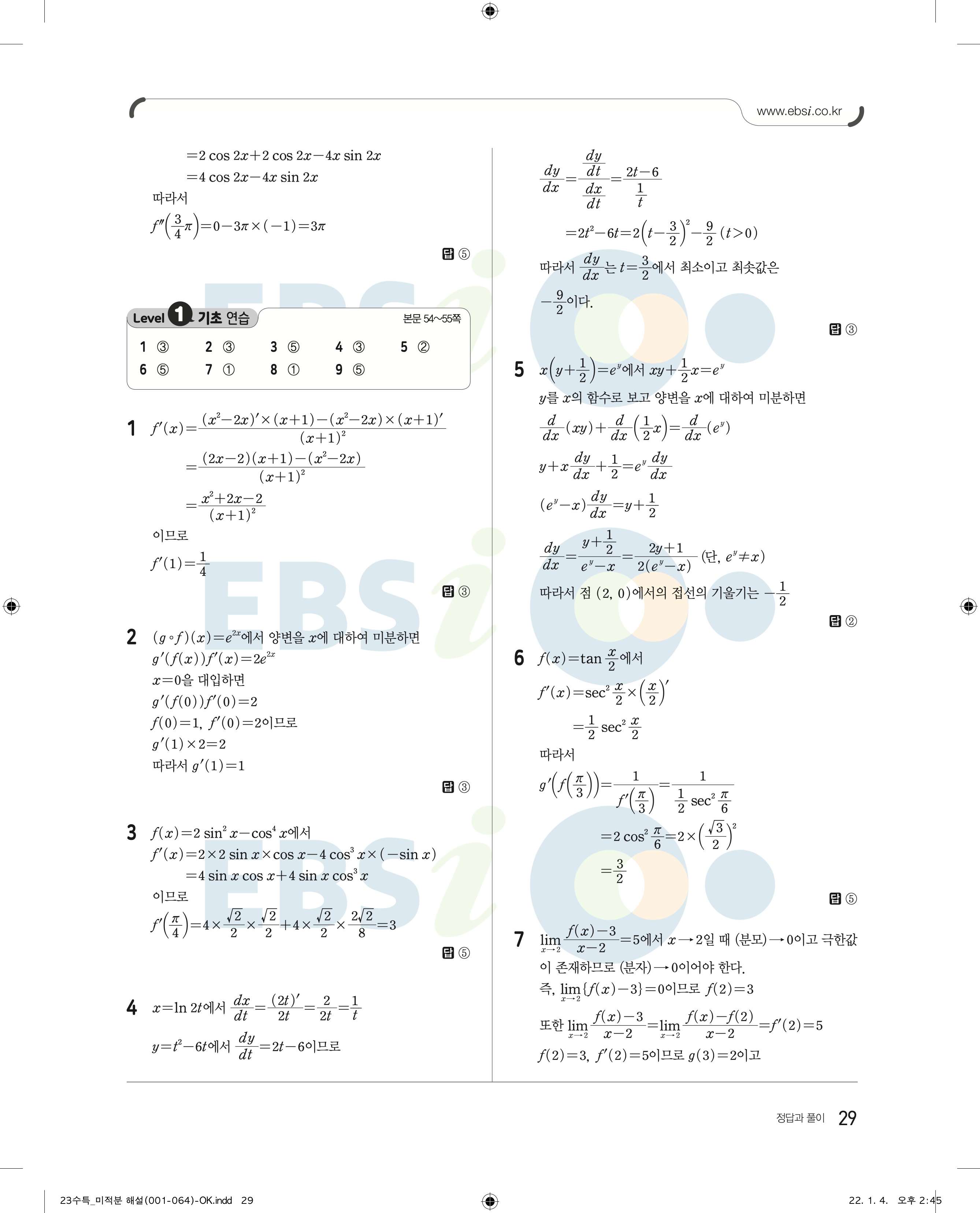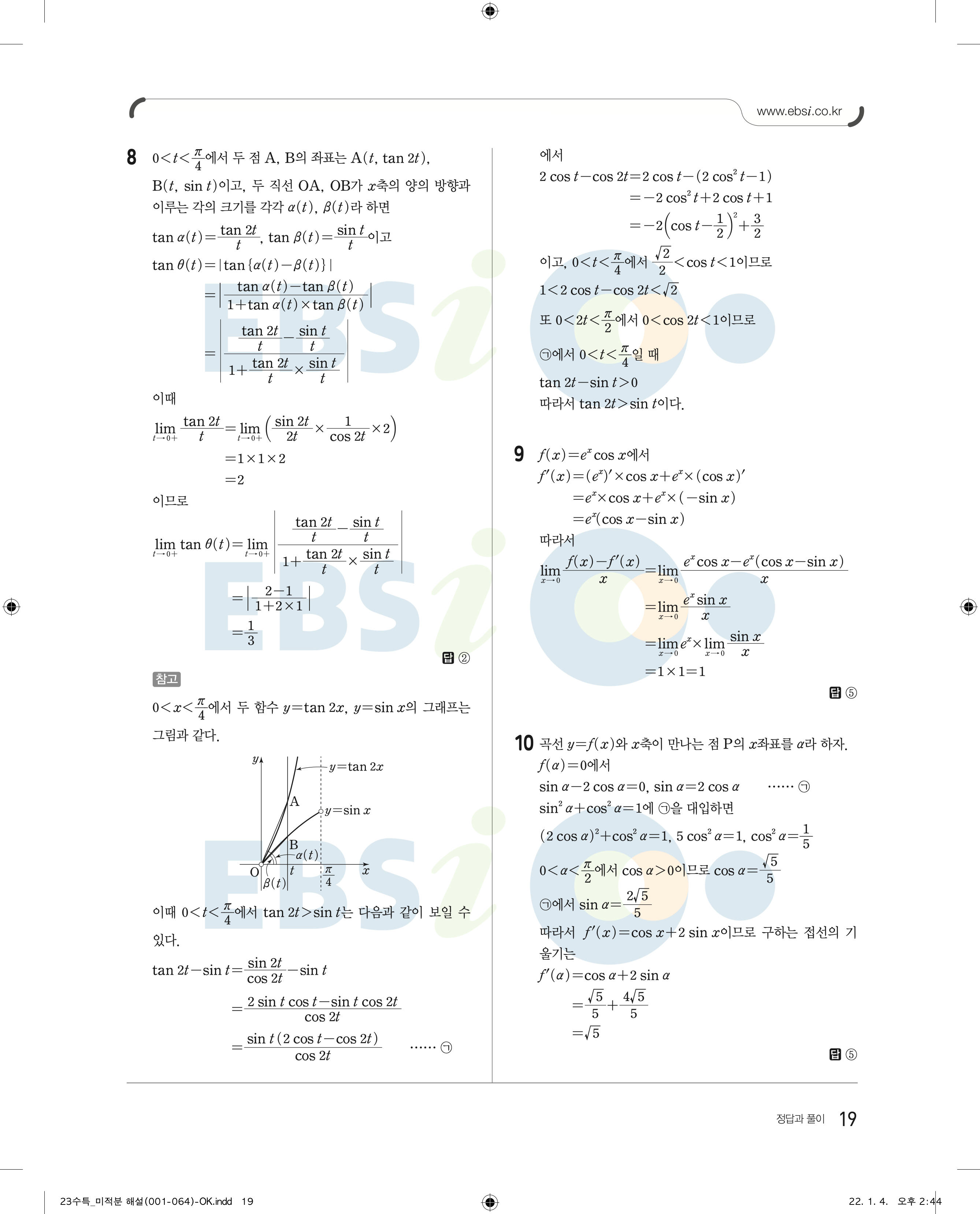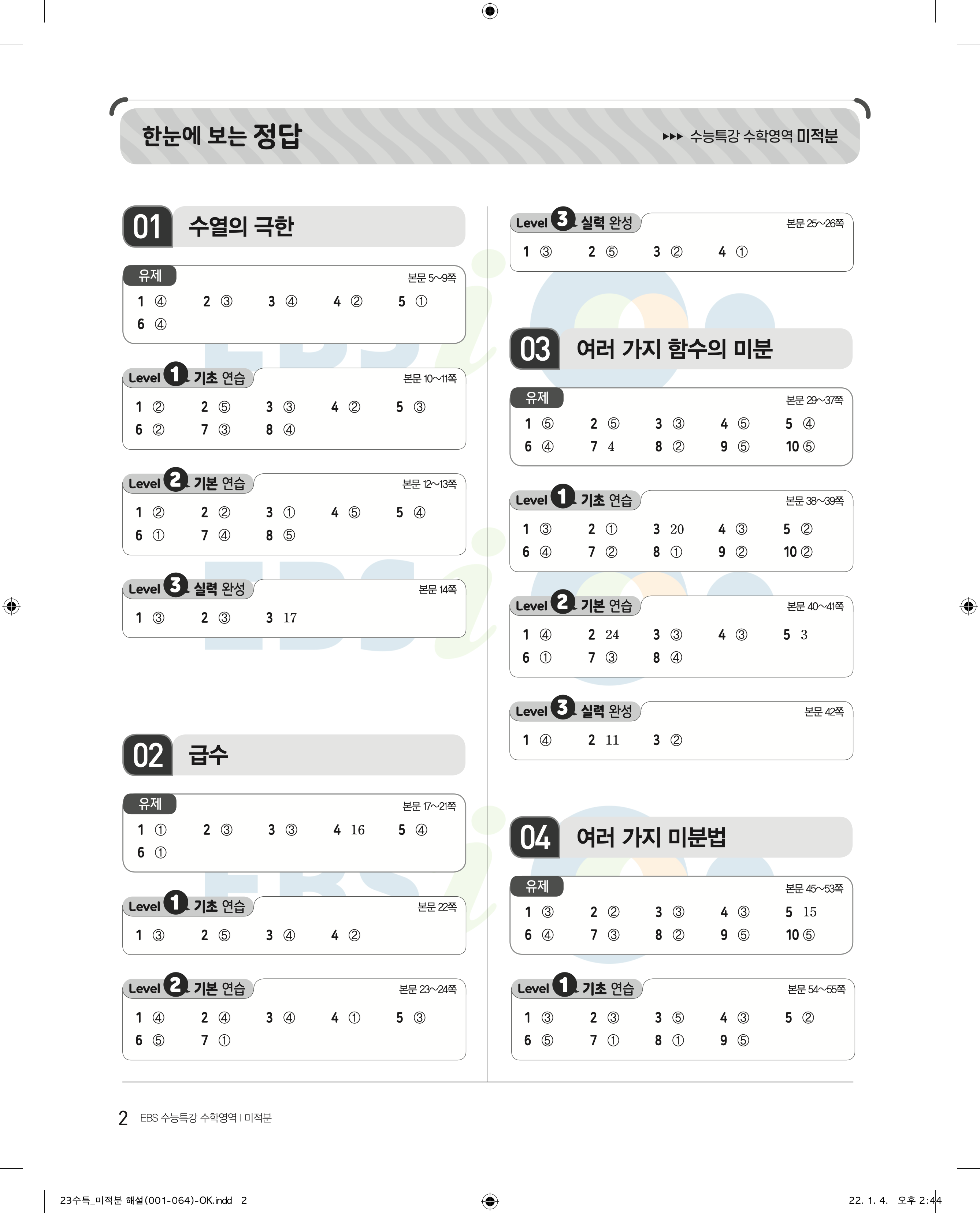2023 수능특강 미적분 답지 수특미적답지 바로보는 사진답지 모바일최적화