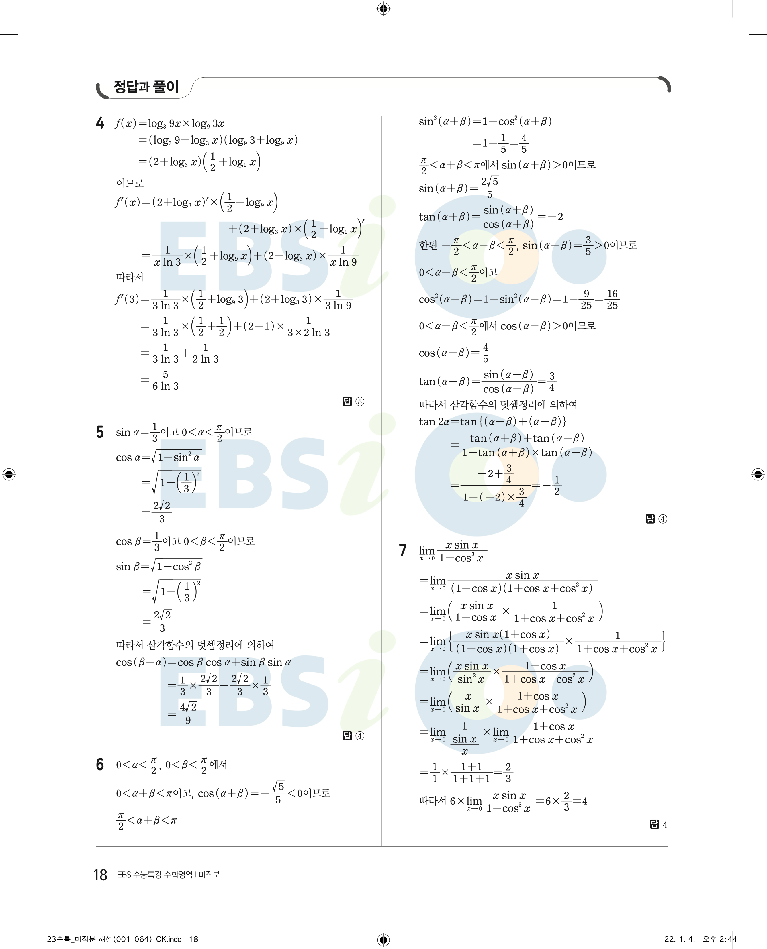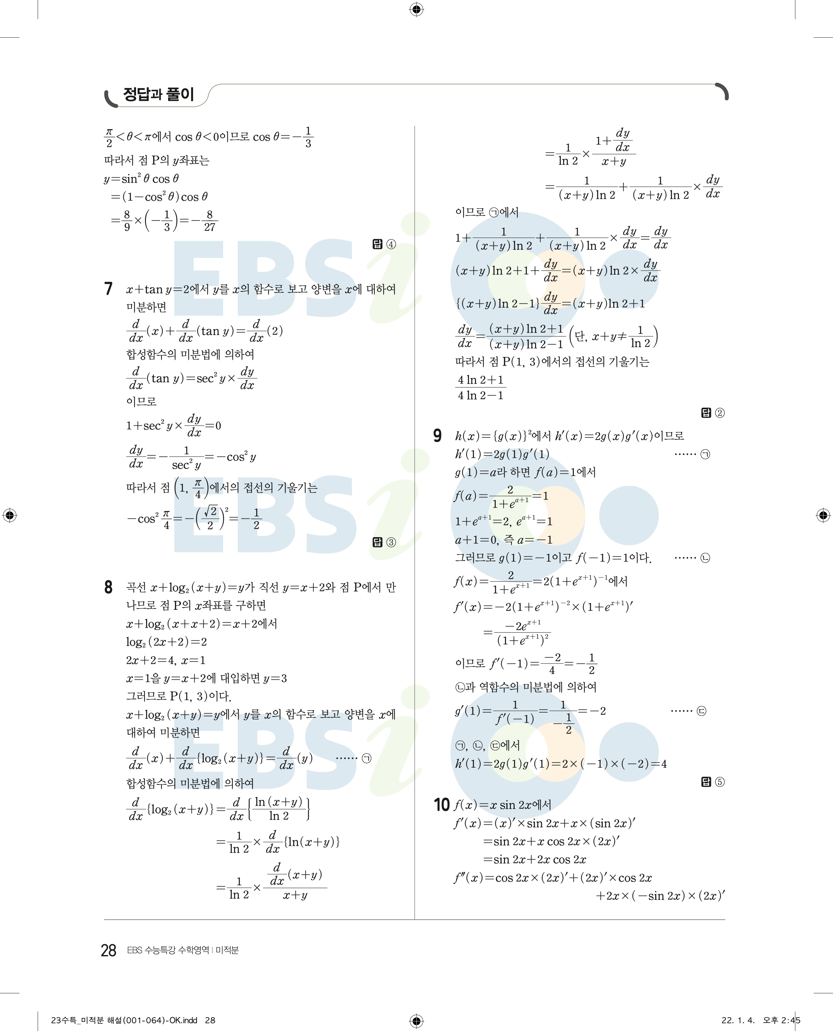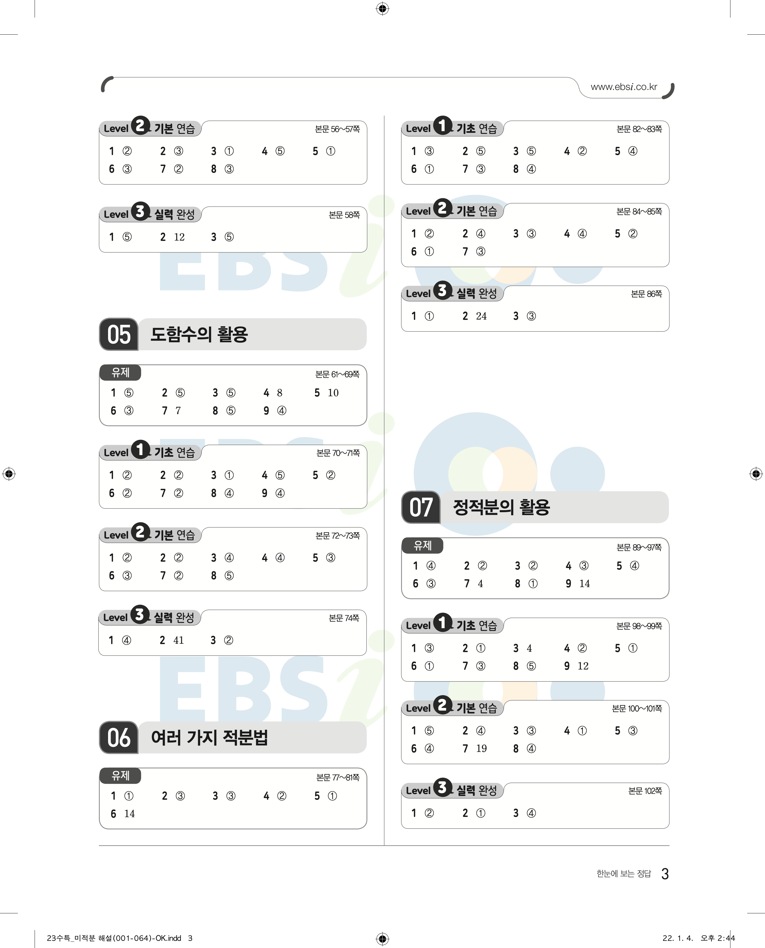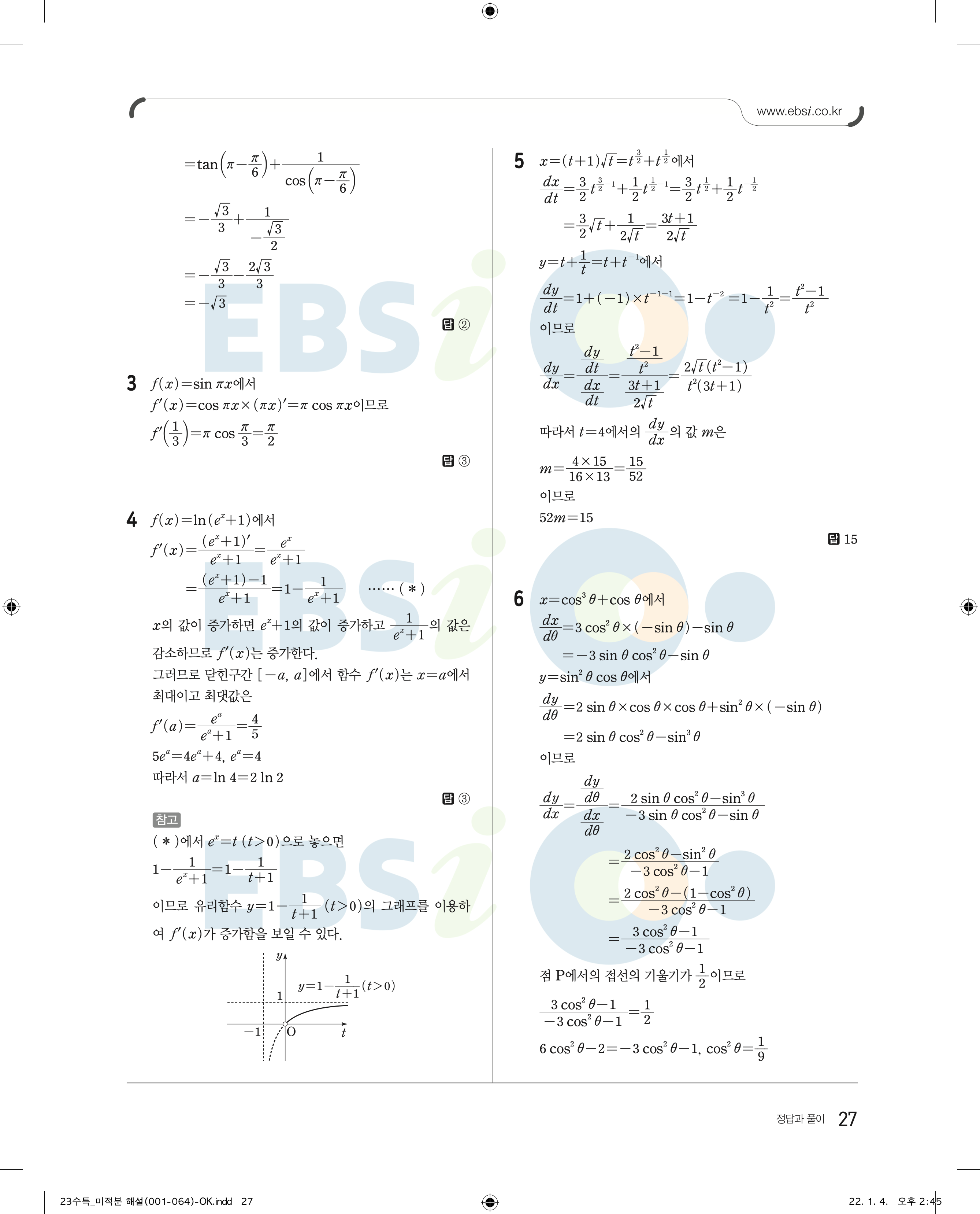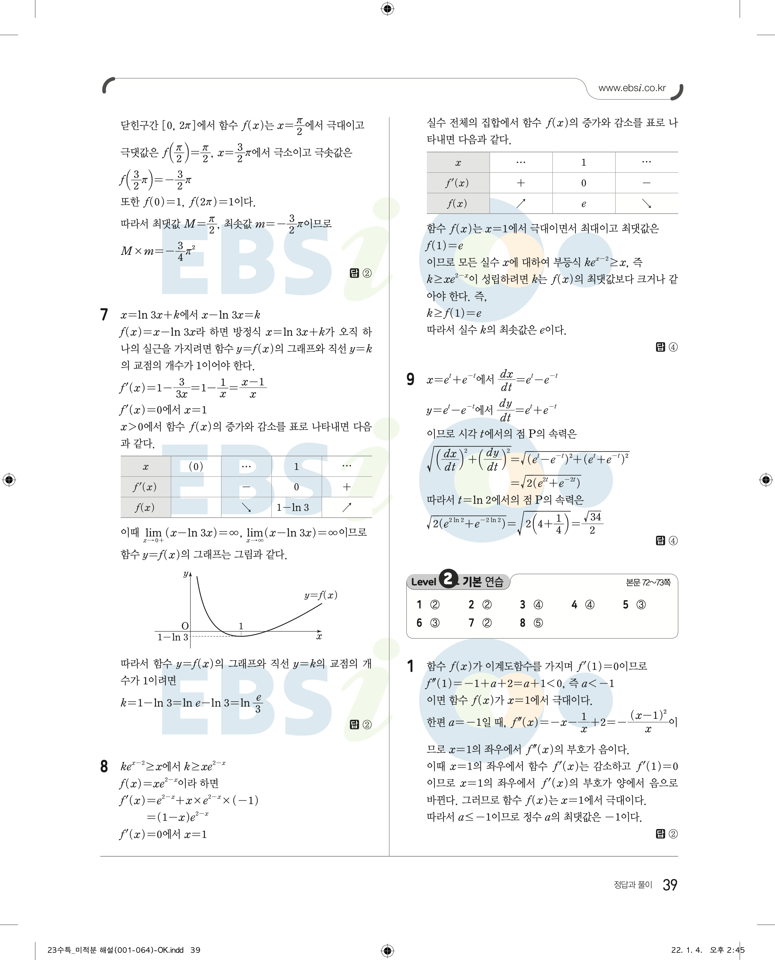 2023 수능특강 미적분 답지 수특미적답지 바로보는 사진답지 모바일최적화