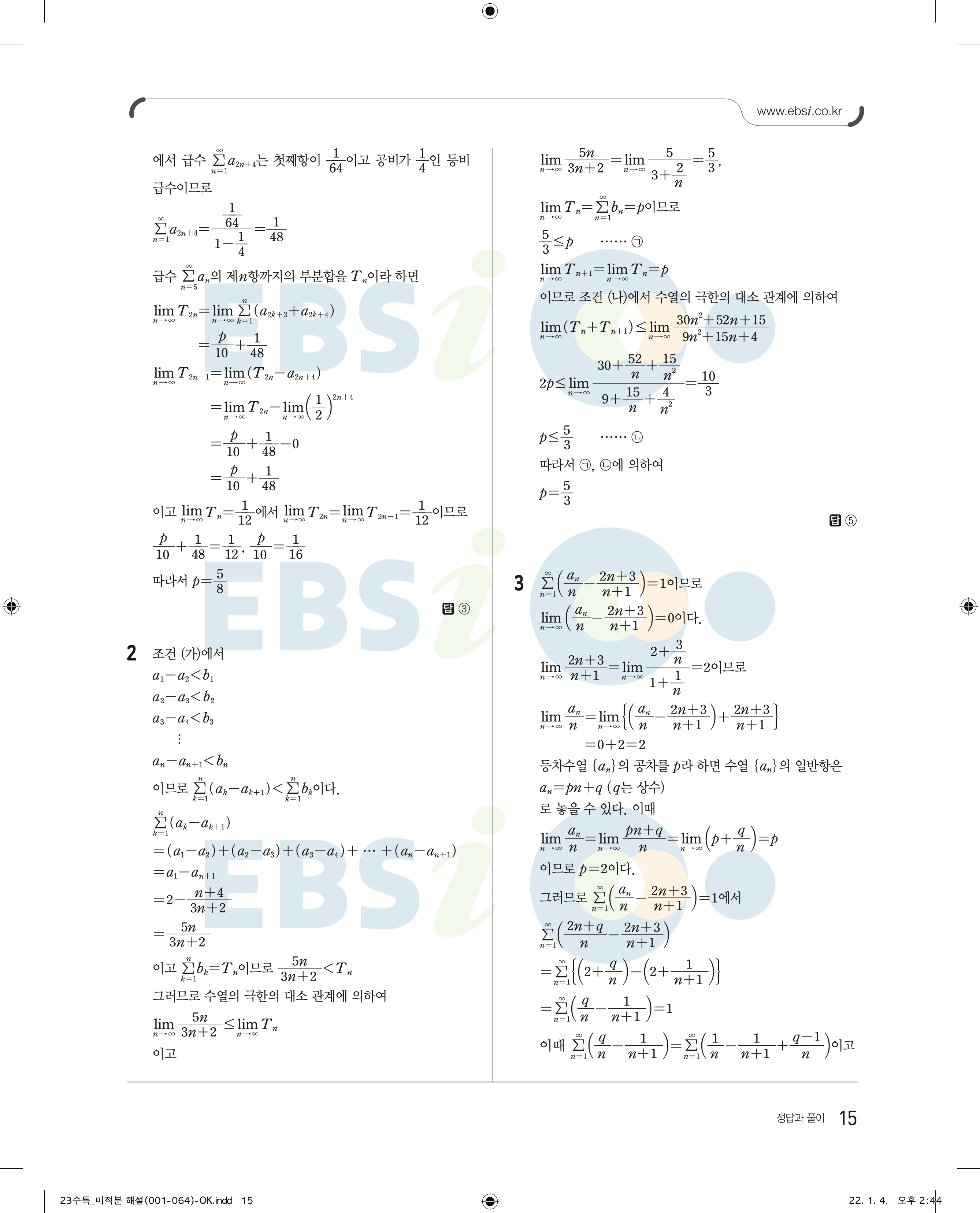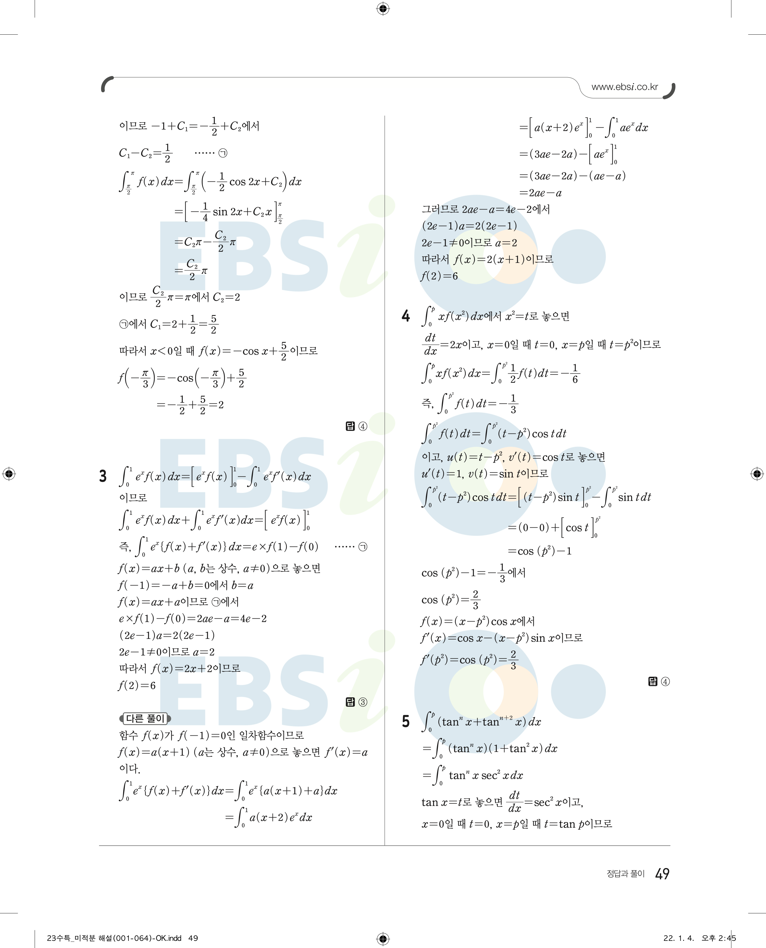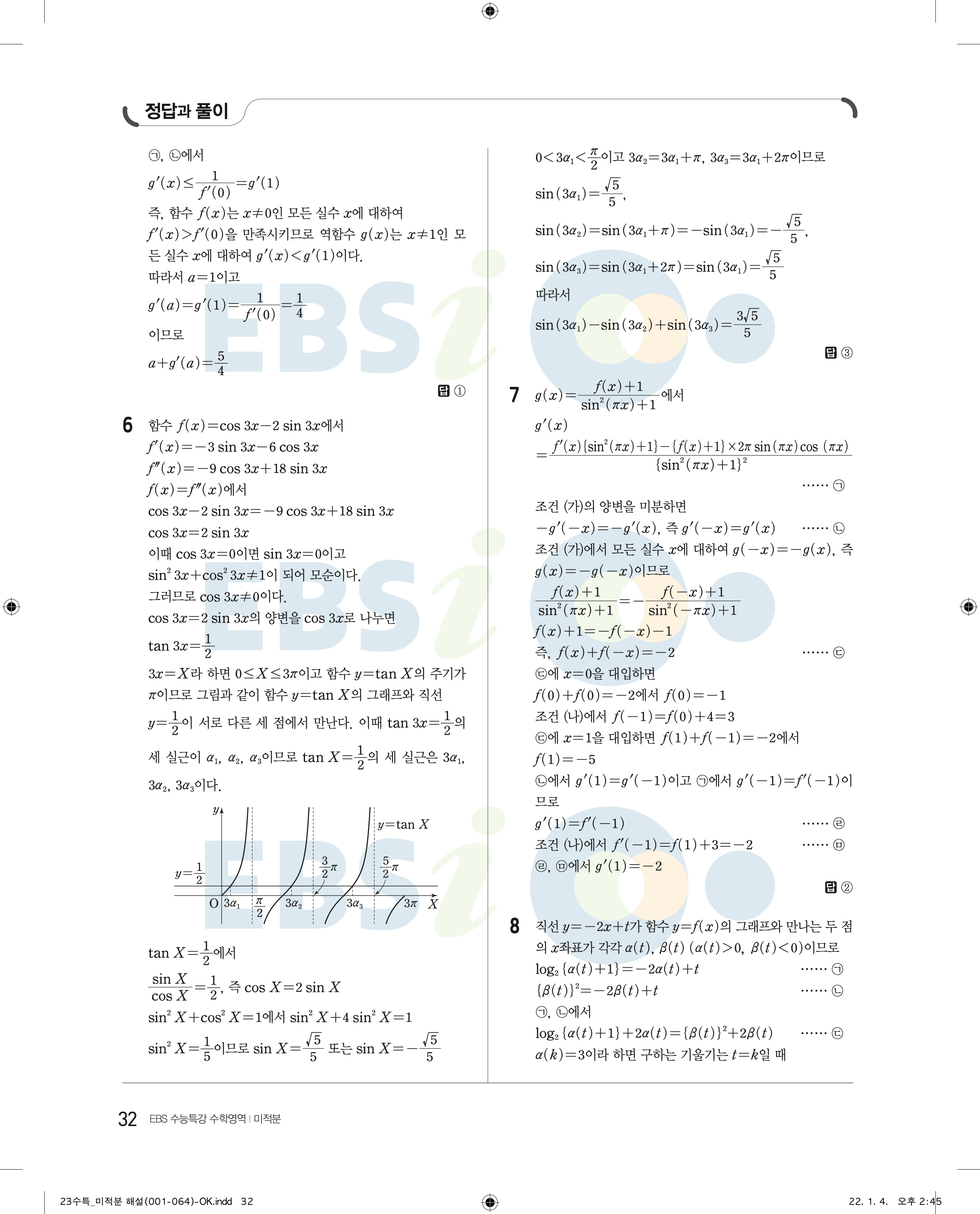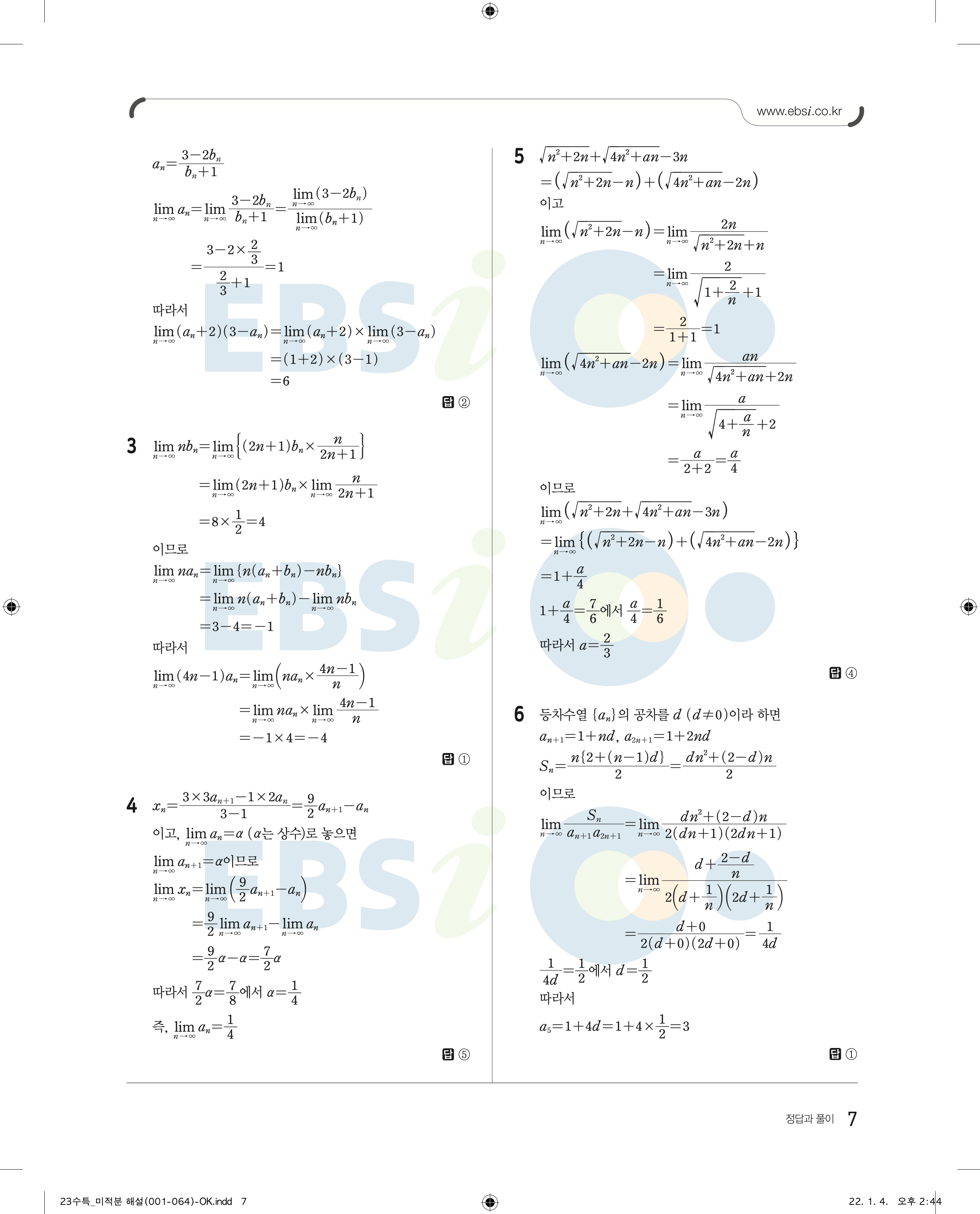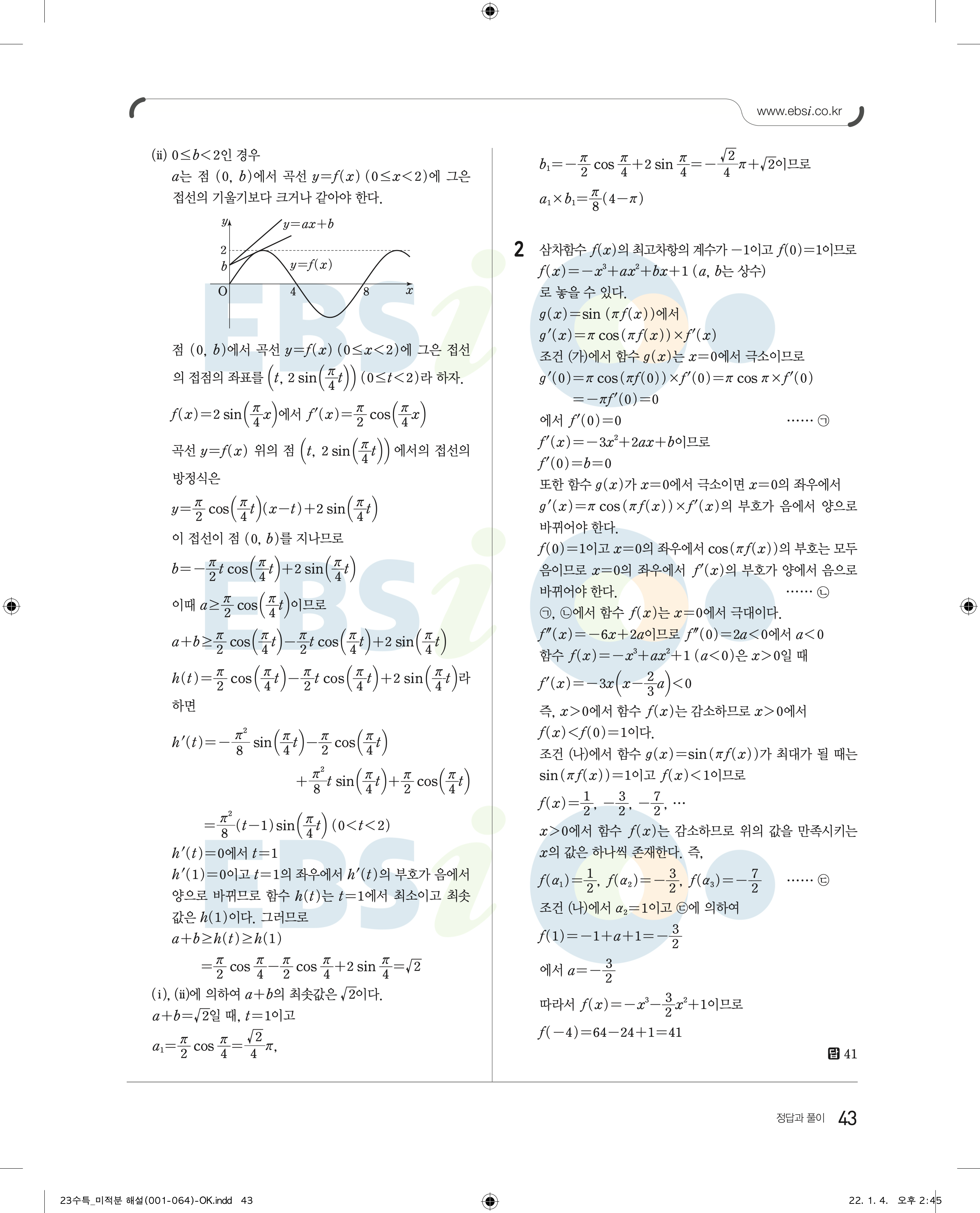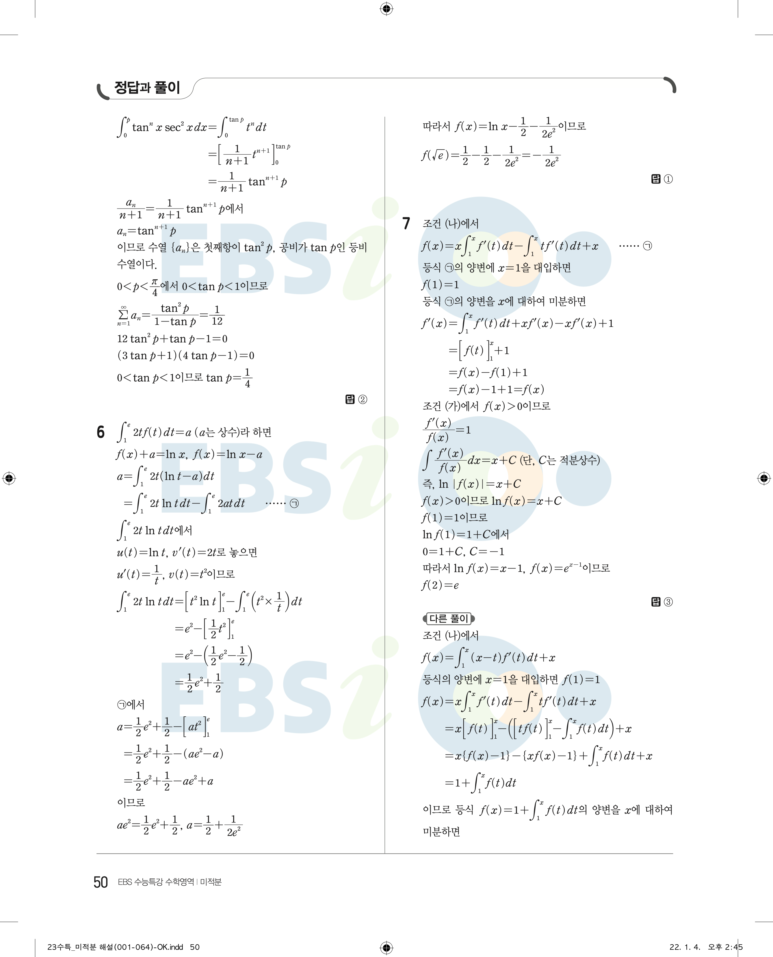 2023 수능특강 미적분 답지 수특미적답지 바로보는 사진답지 모바일최적화