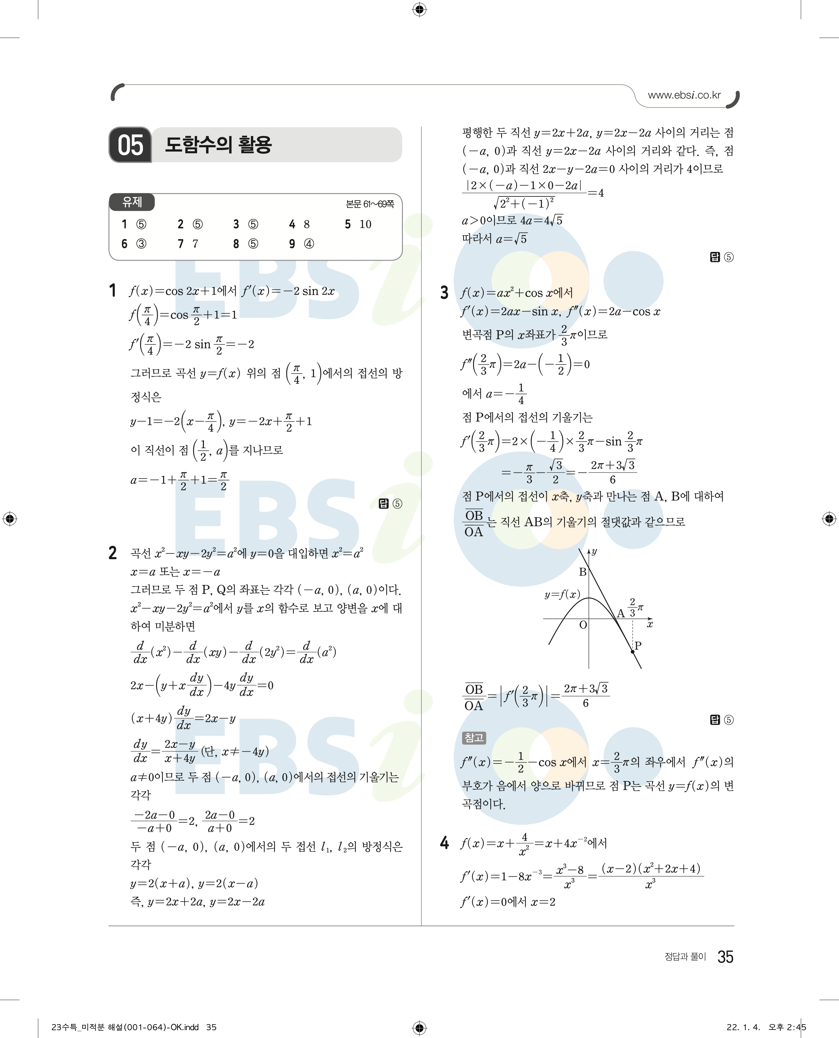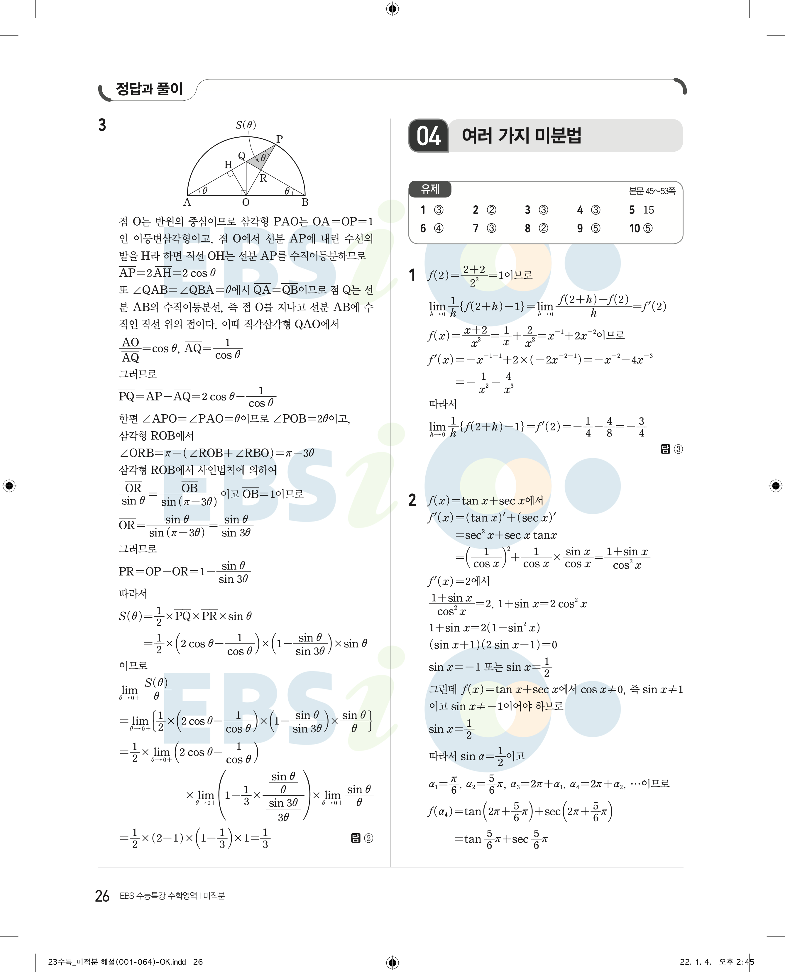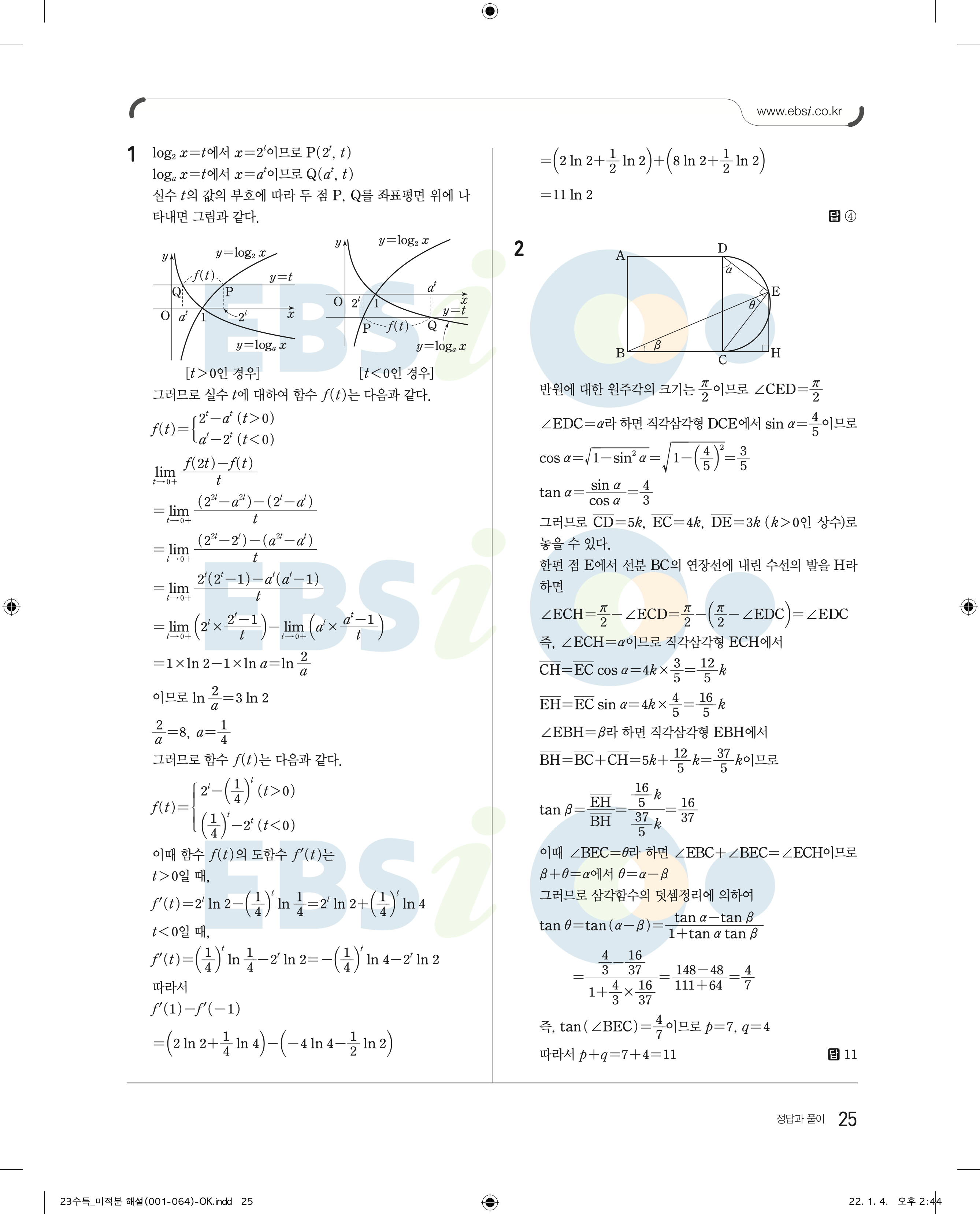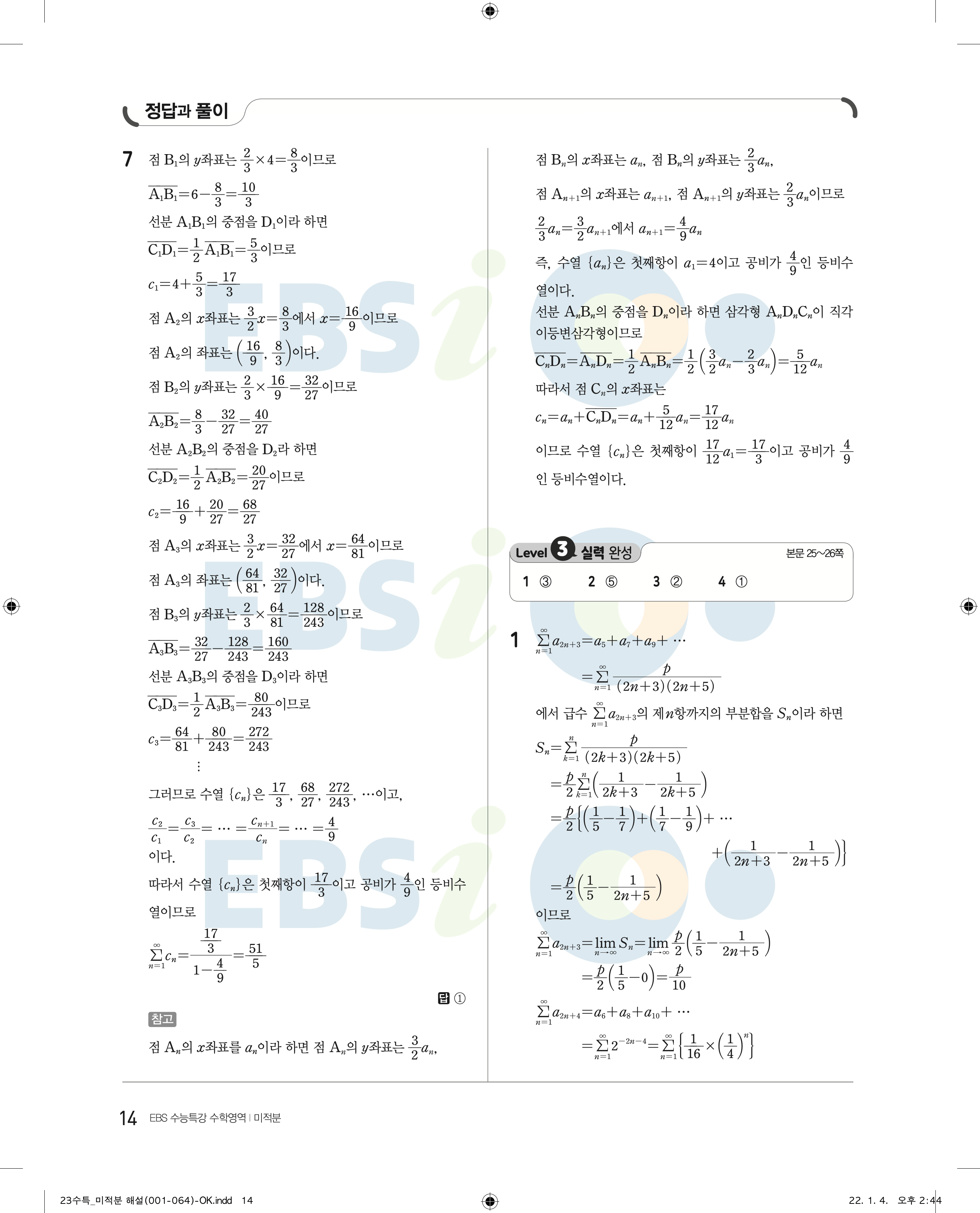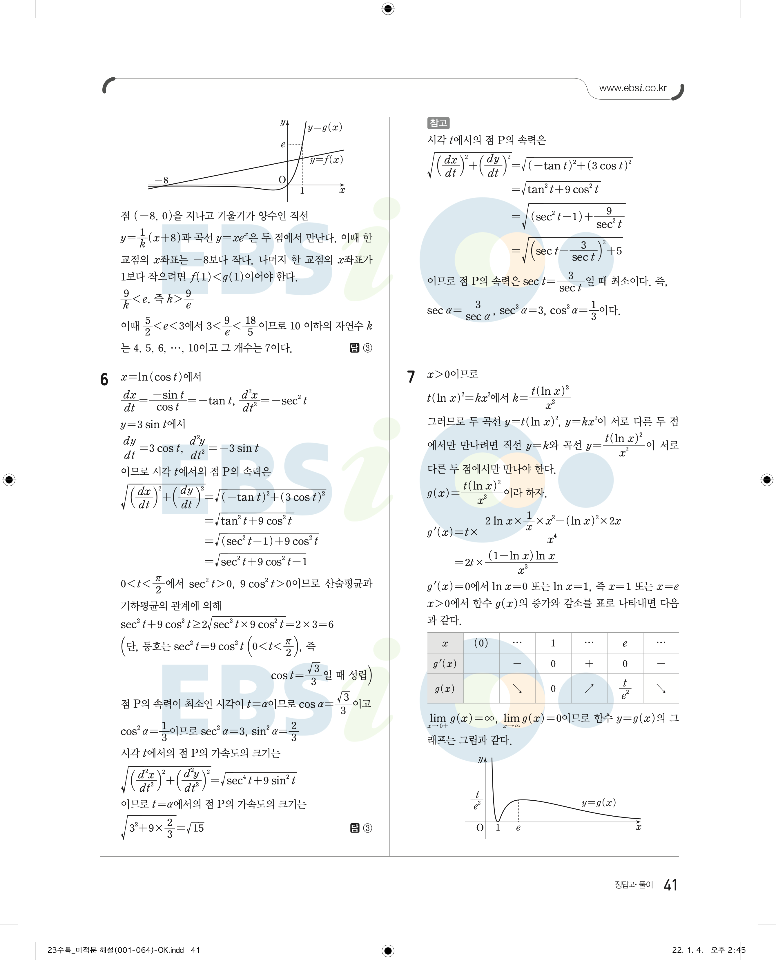 2023 수능특강 미적분 답지 수특미적답지 바로보는 사진답지 모바일최적화
