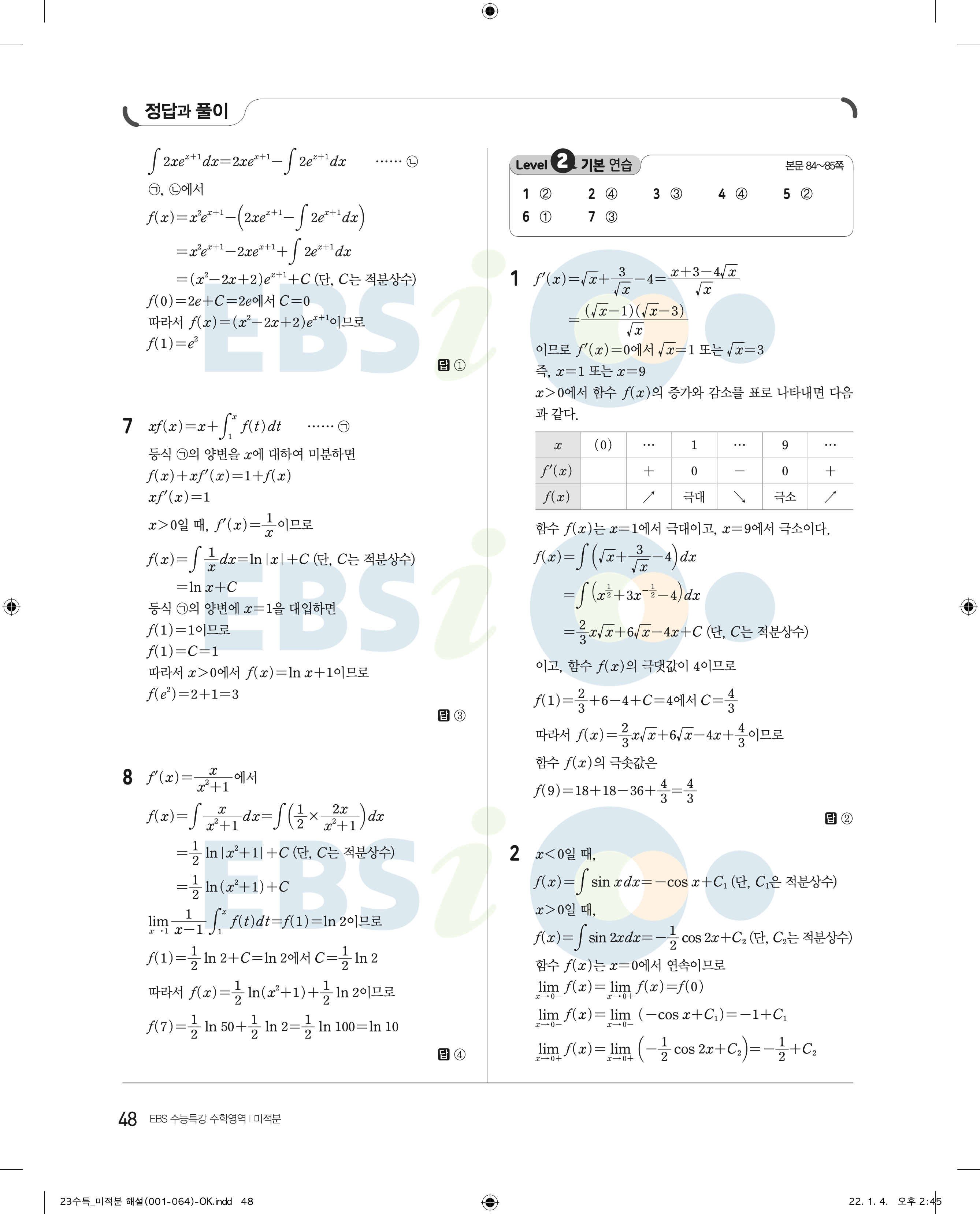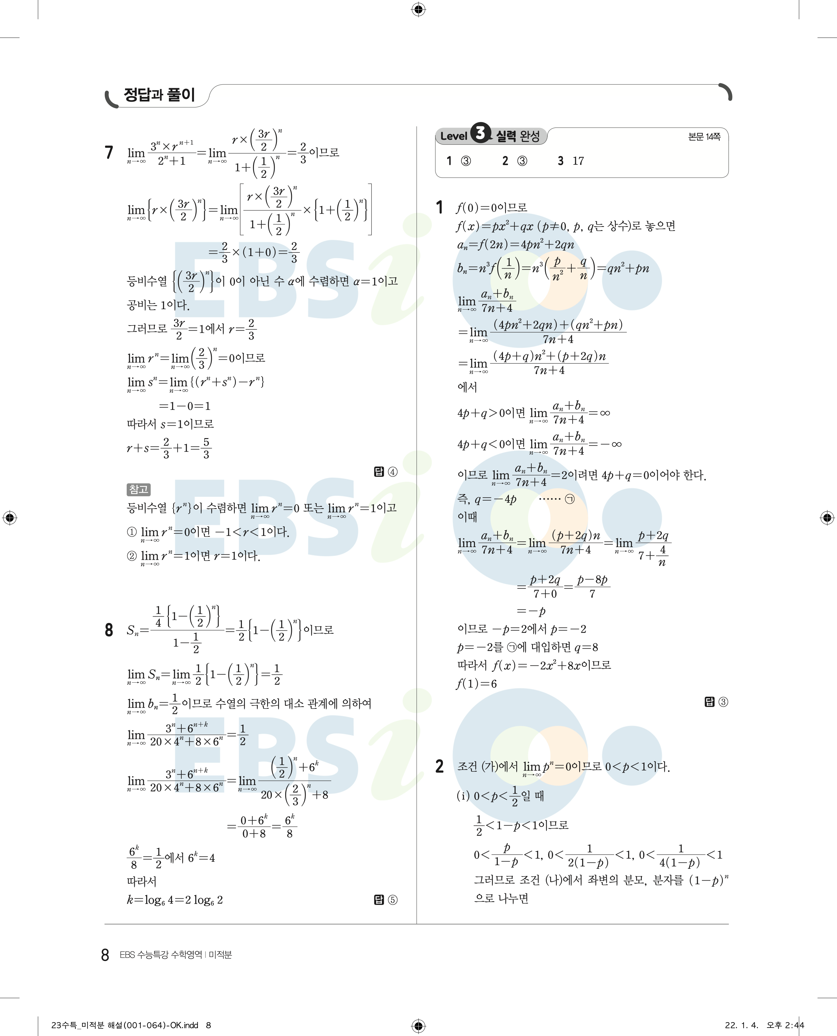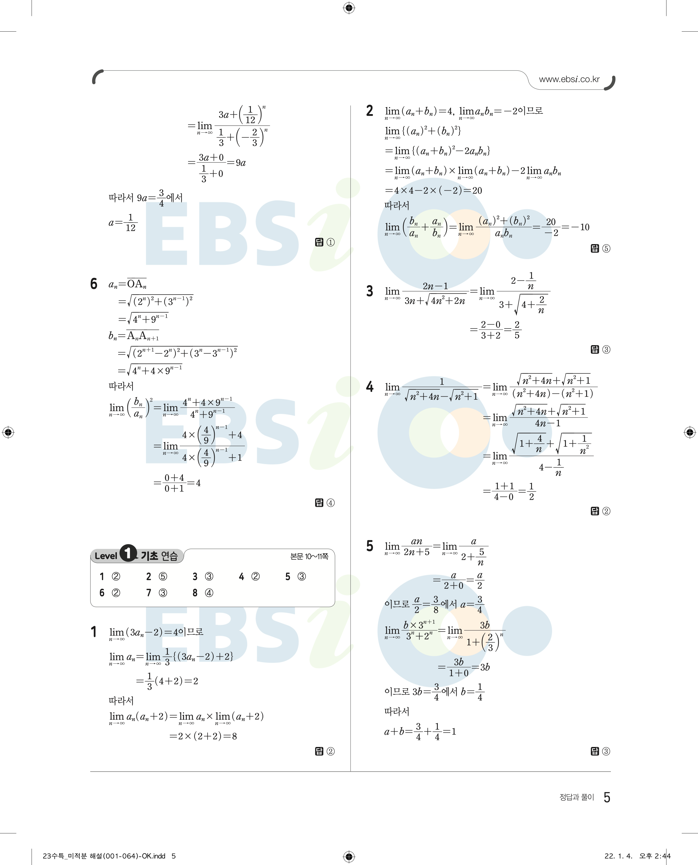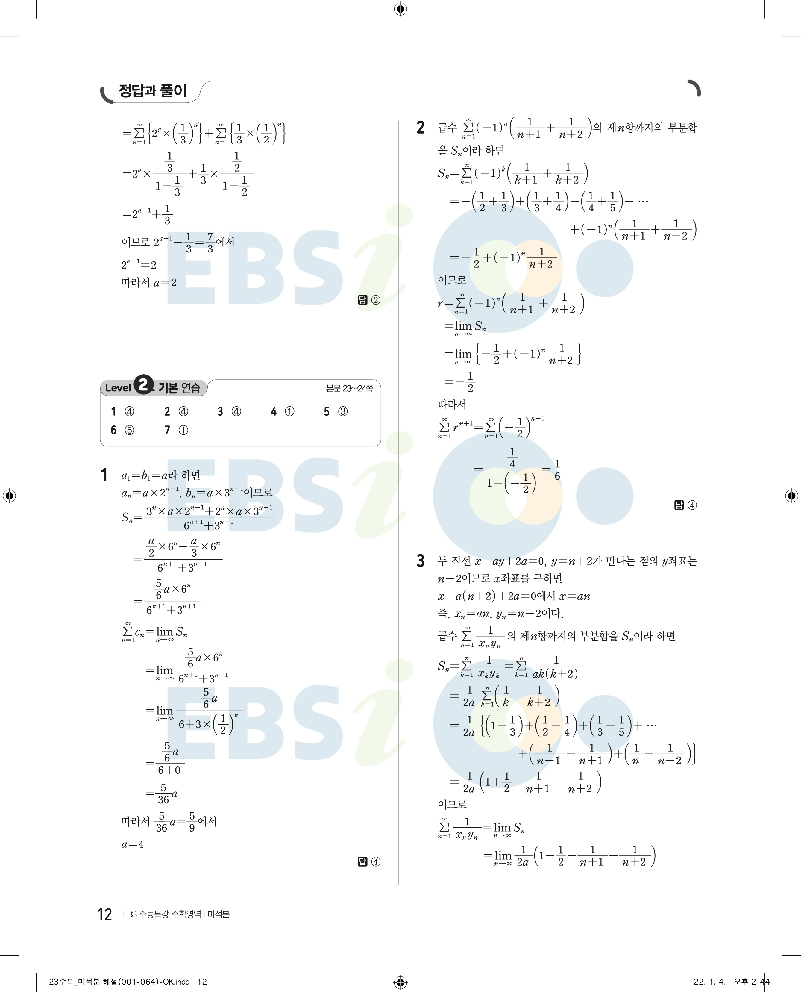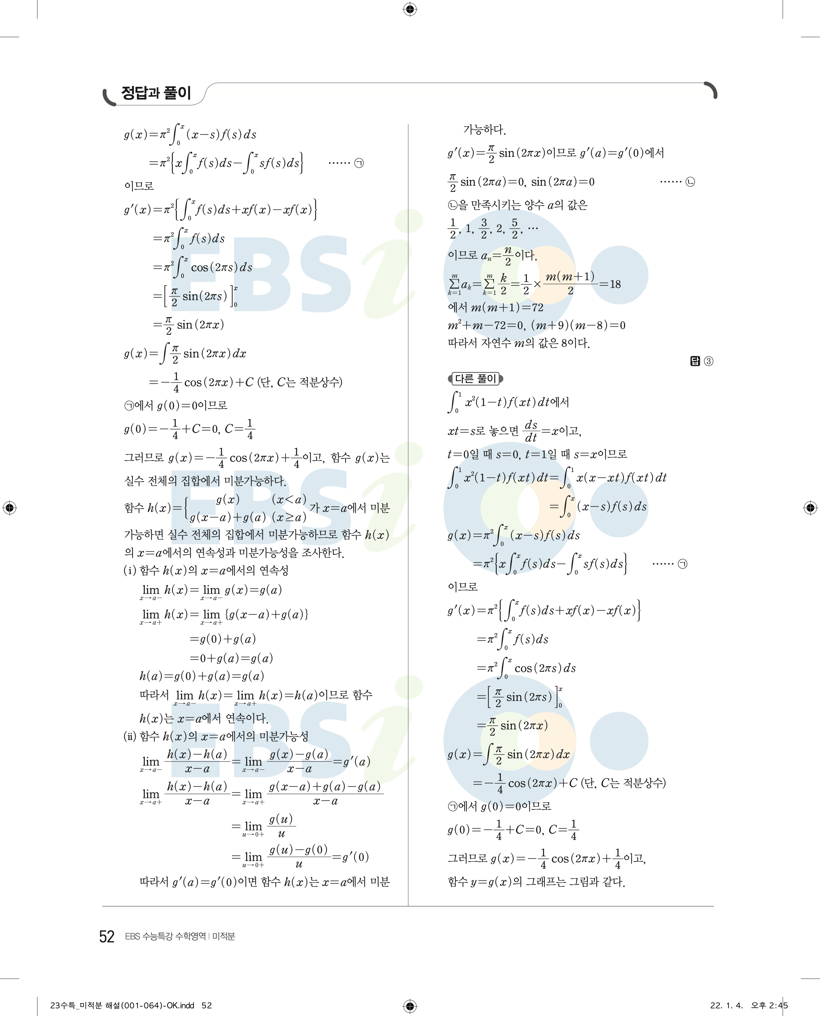 2023 수능특강 미적분 답지 수특미적답지 바로보는 사진답지 모바일최적화