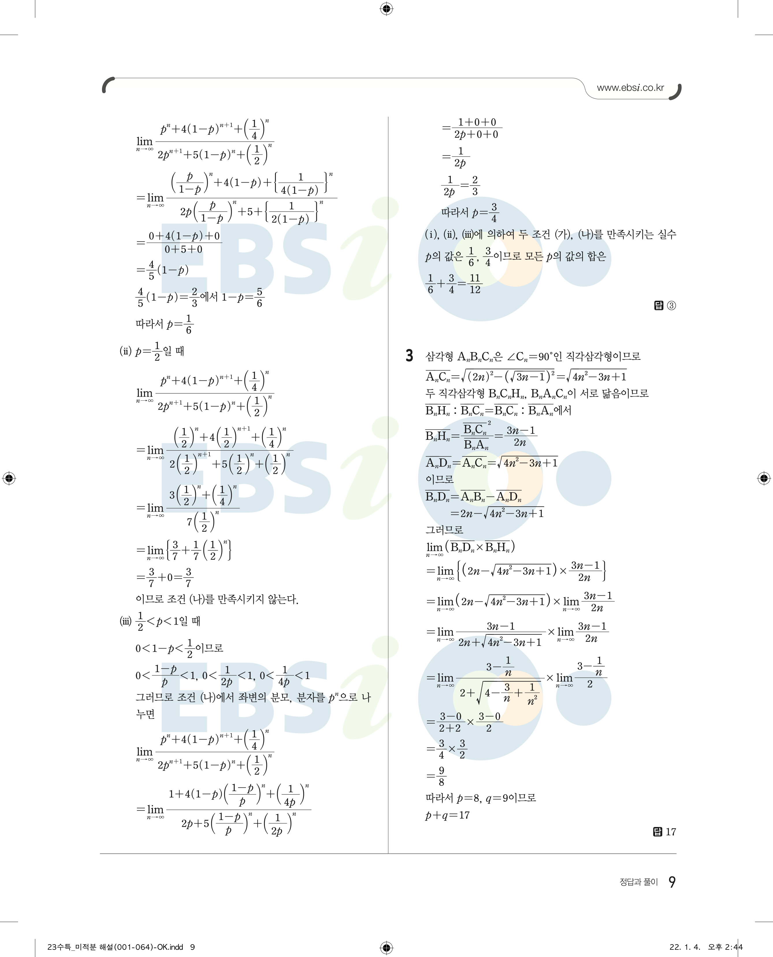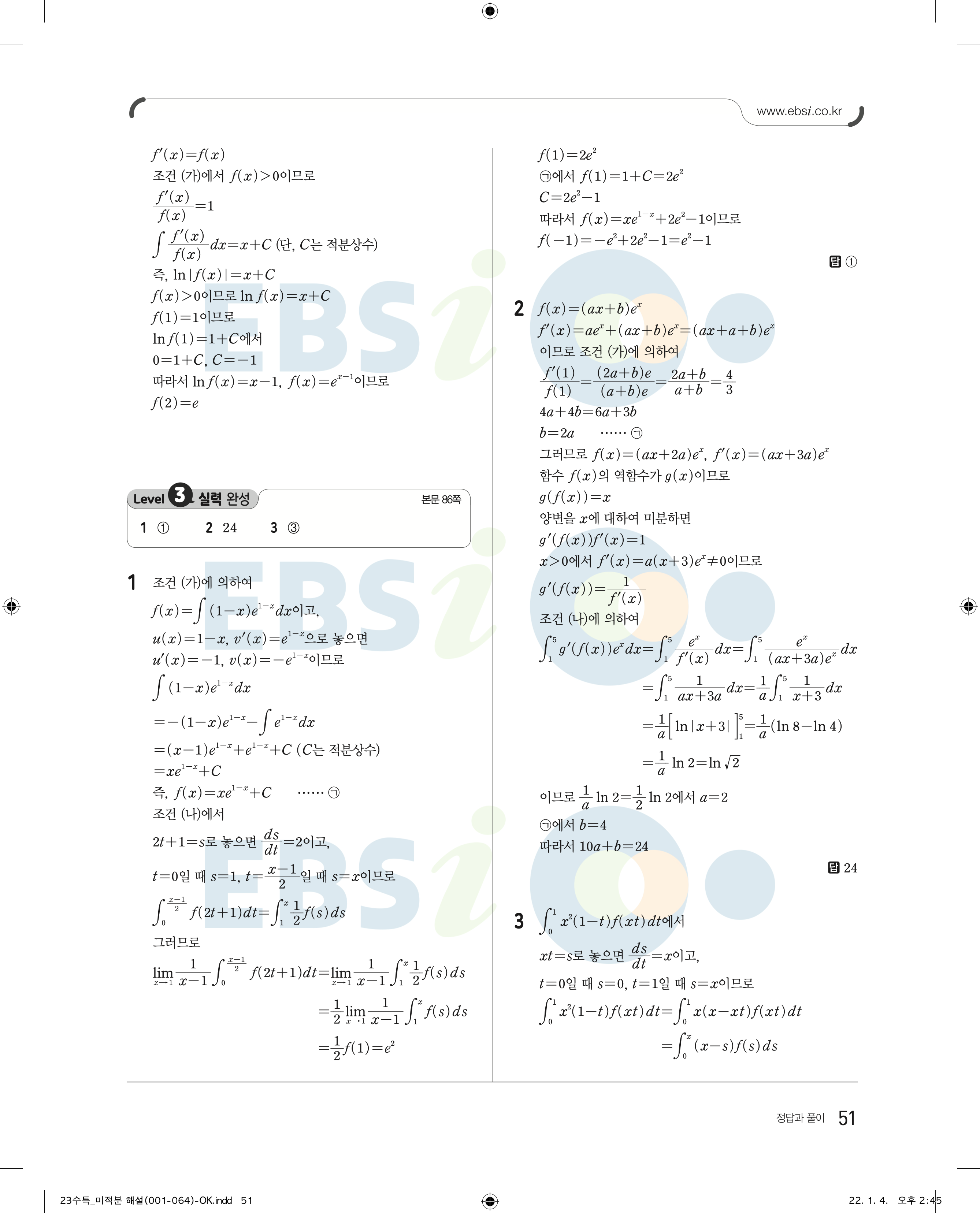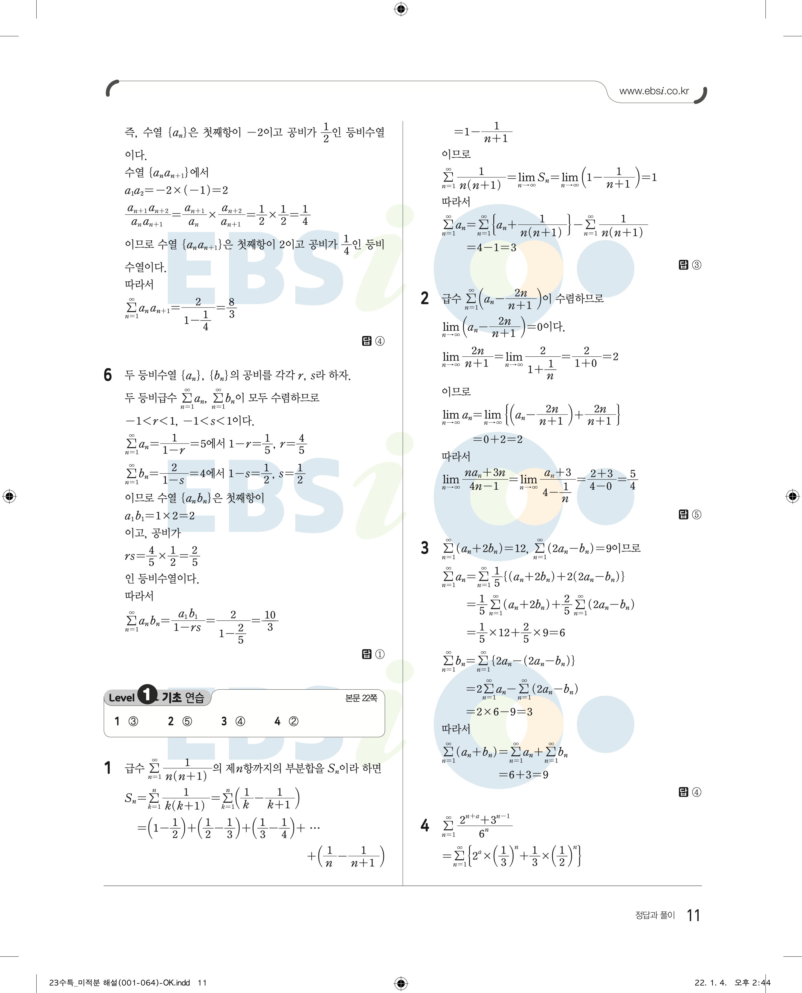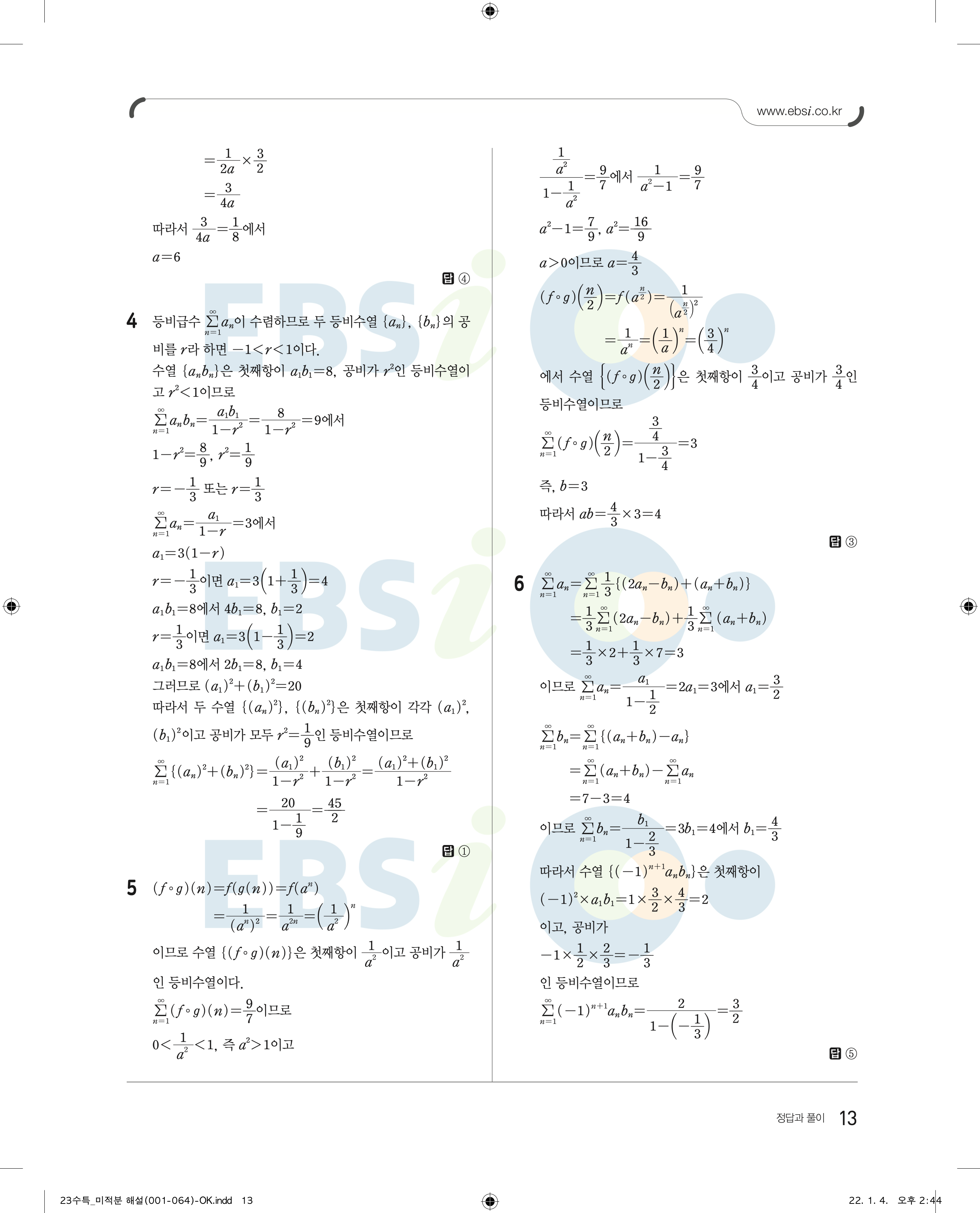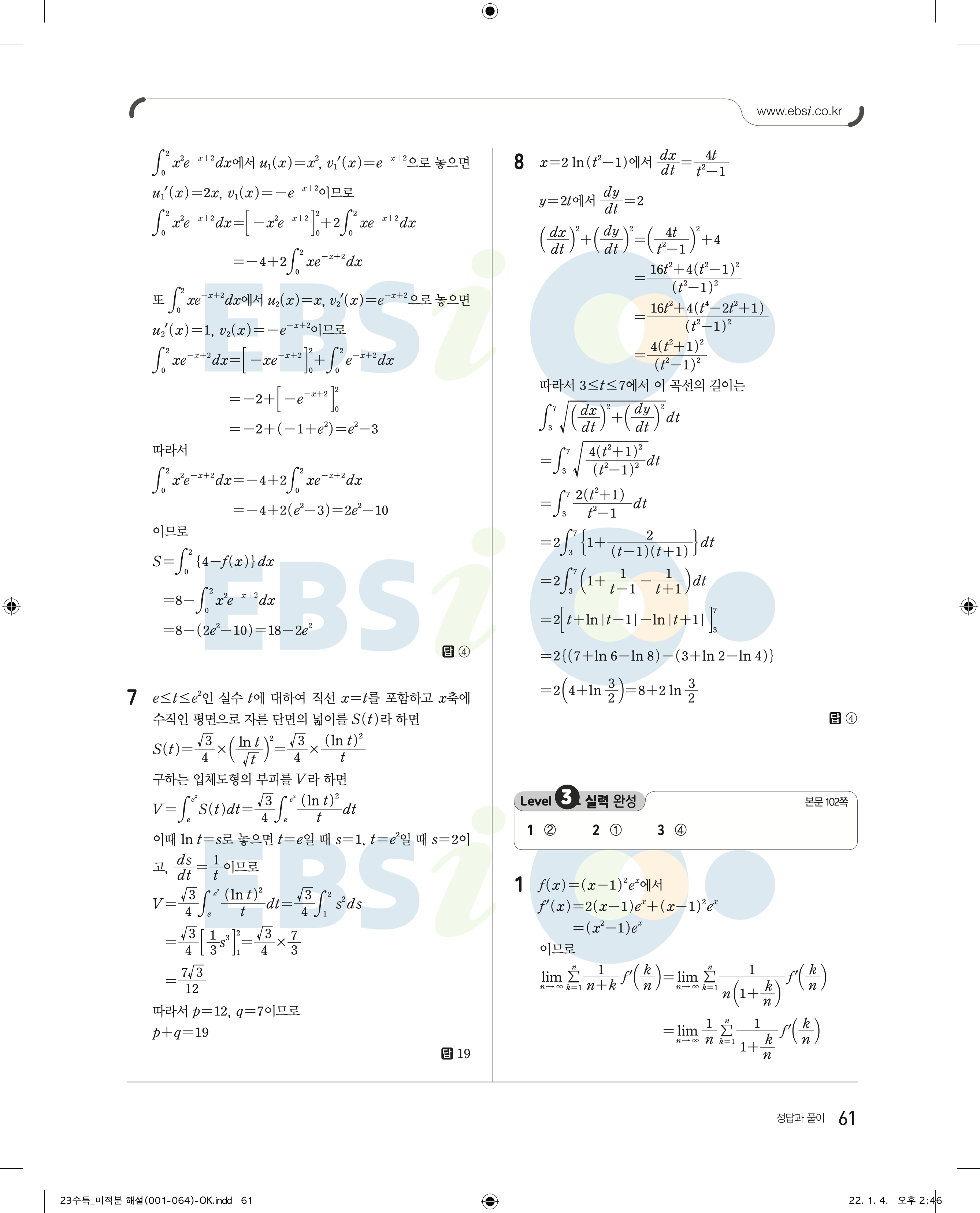 2023 수능특강 미적분 답지 수특미적답지 바로보는 사진답지 모바일최적화