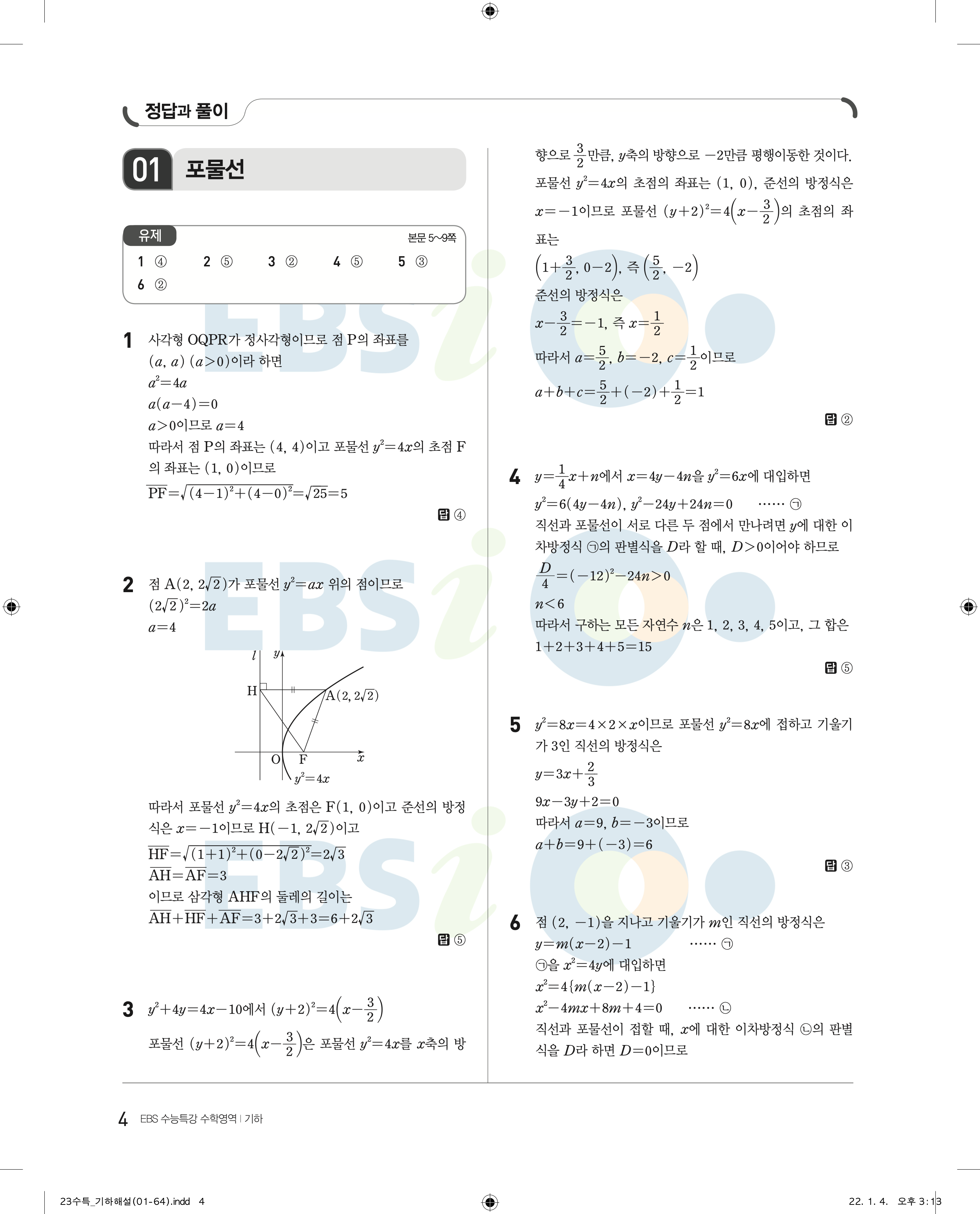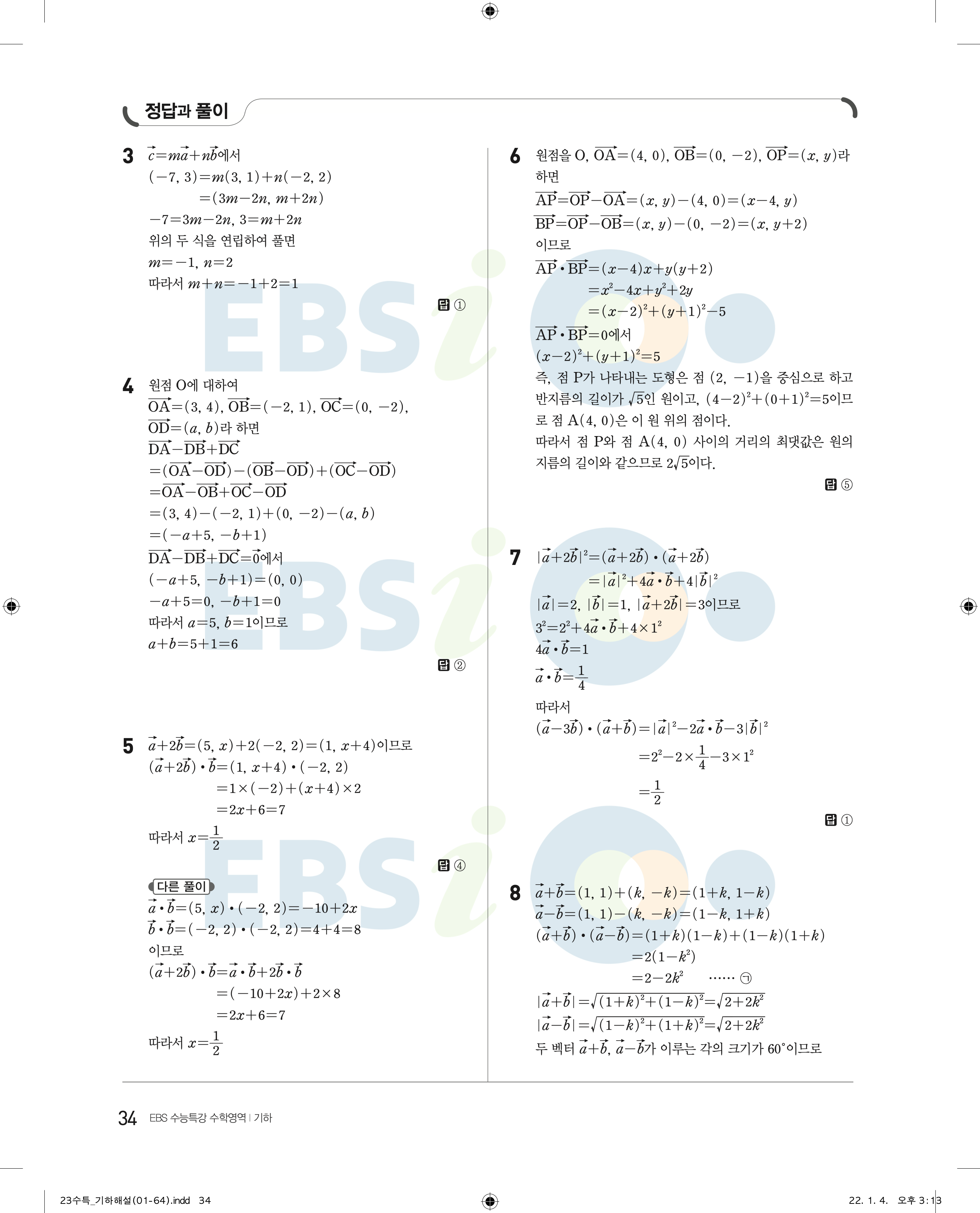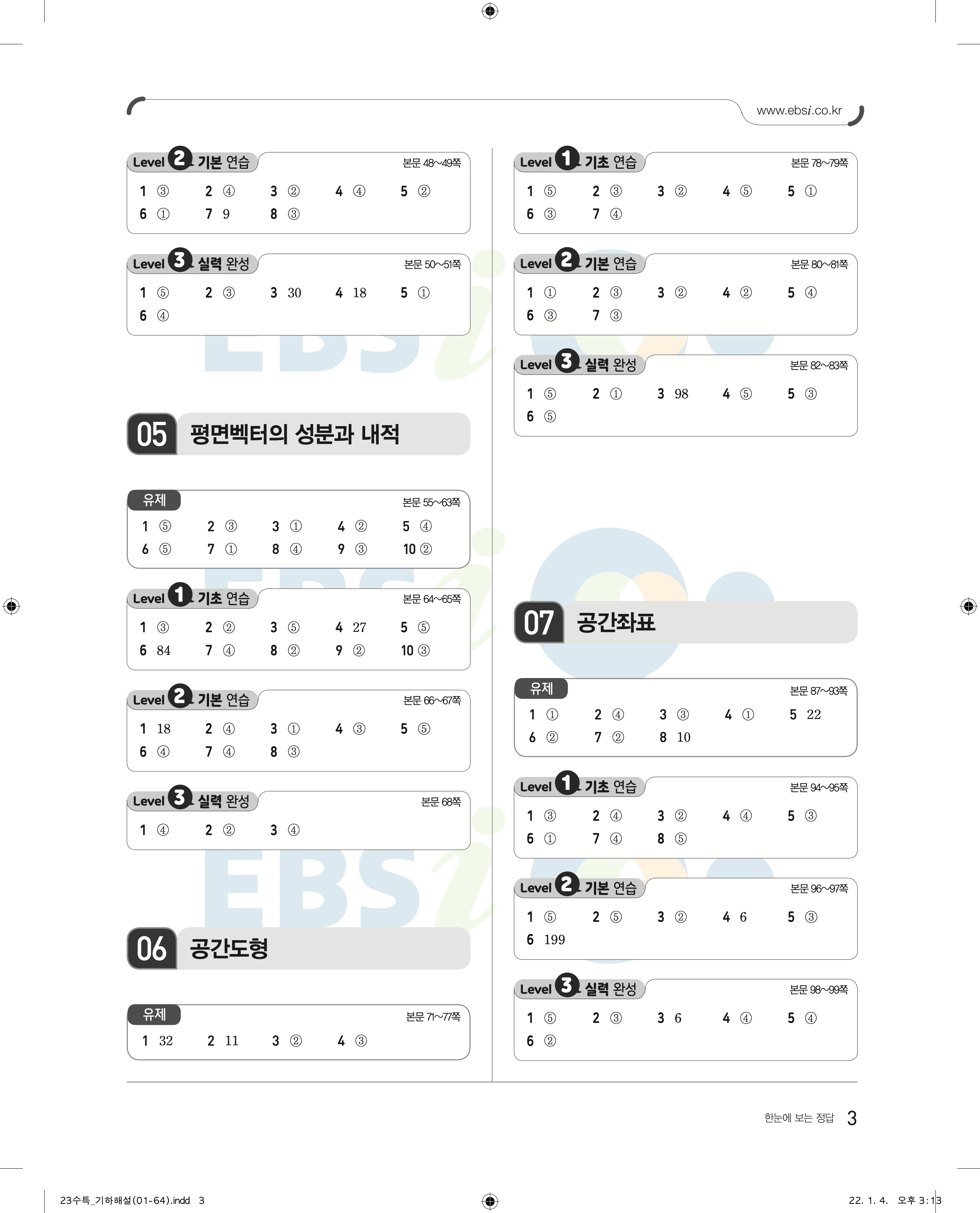 2023 수능특강 기하 답지 수특기하답지 바로보는 사진답지 모바일최적화
