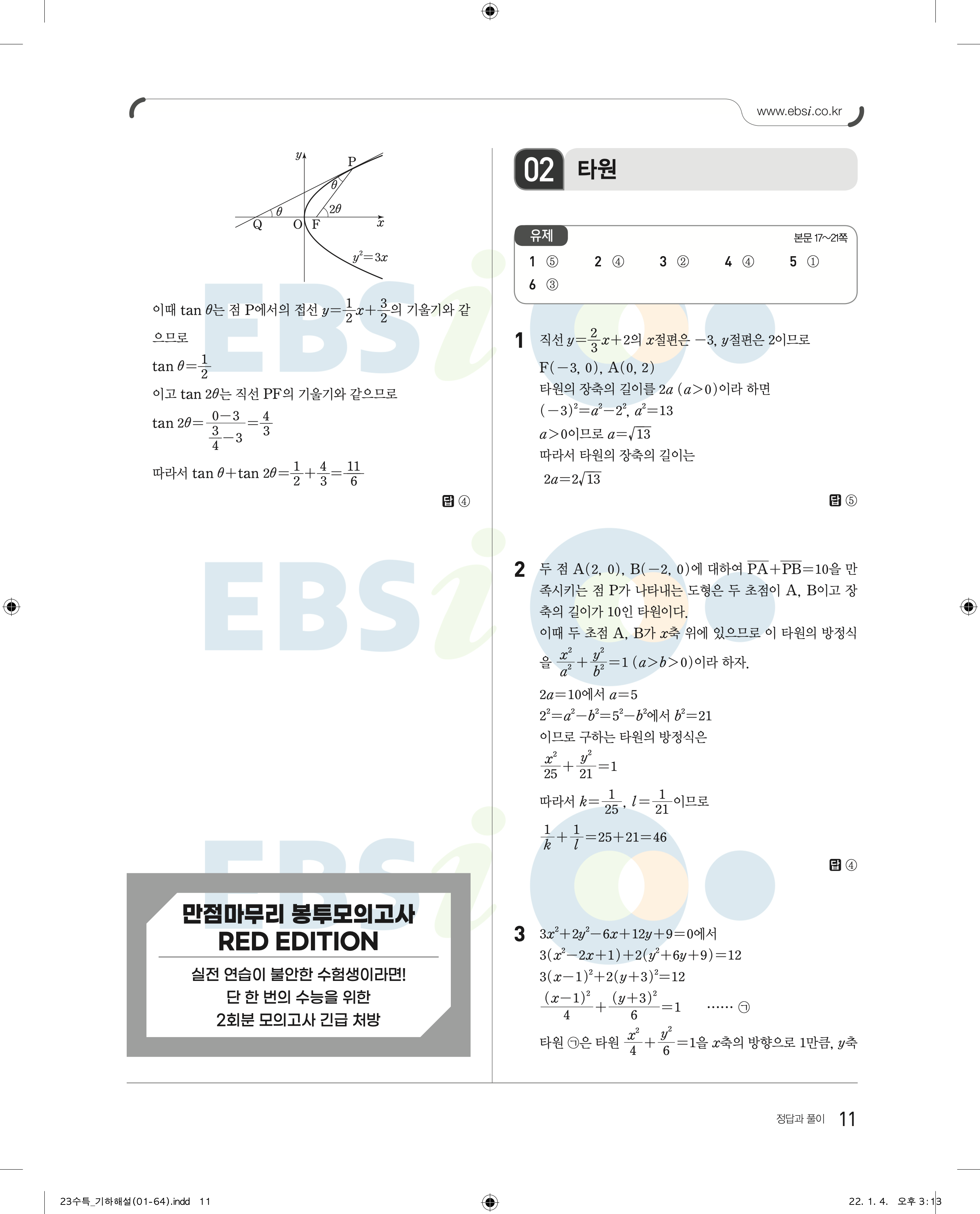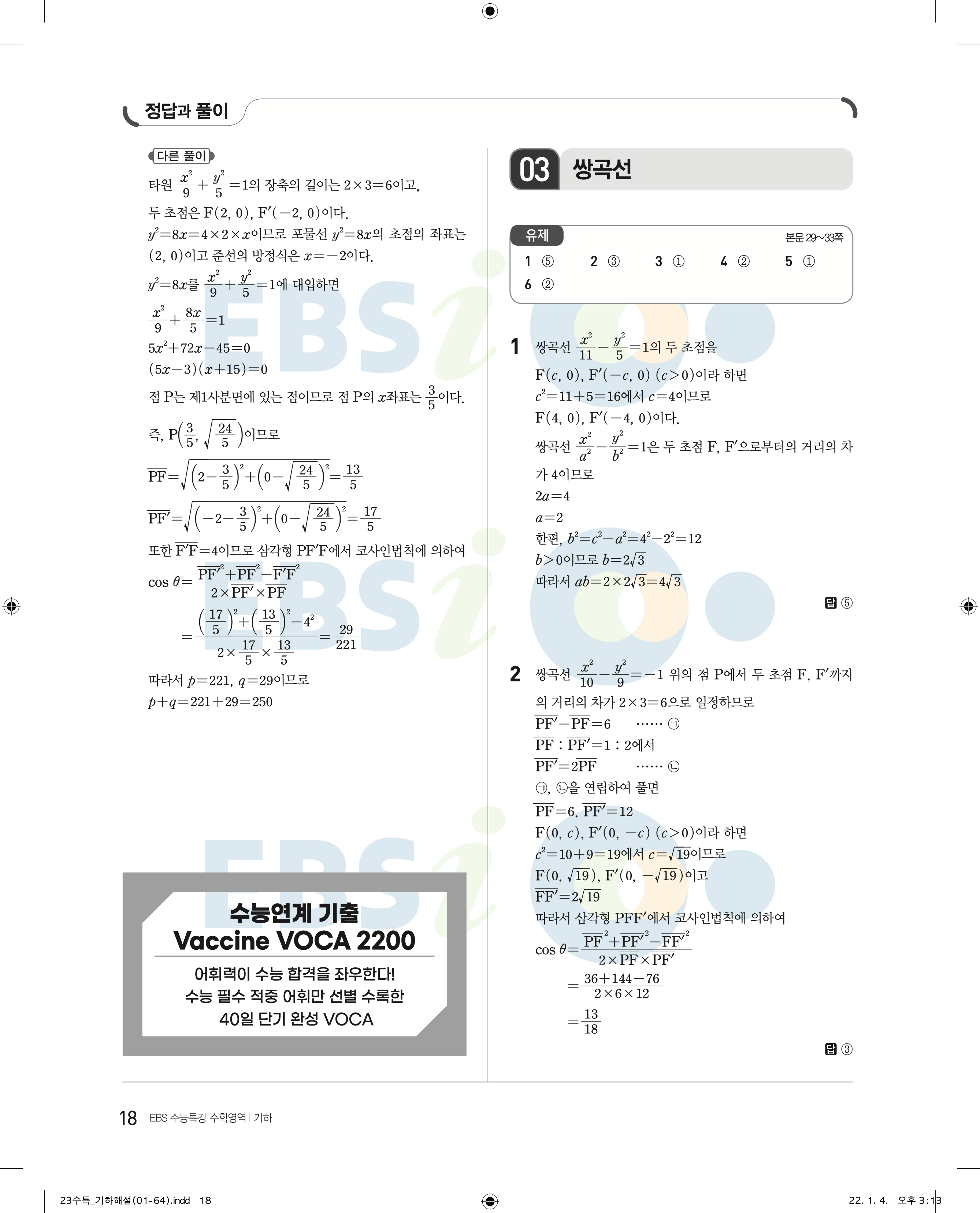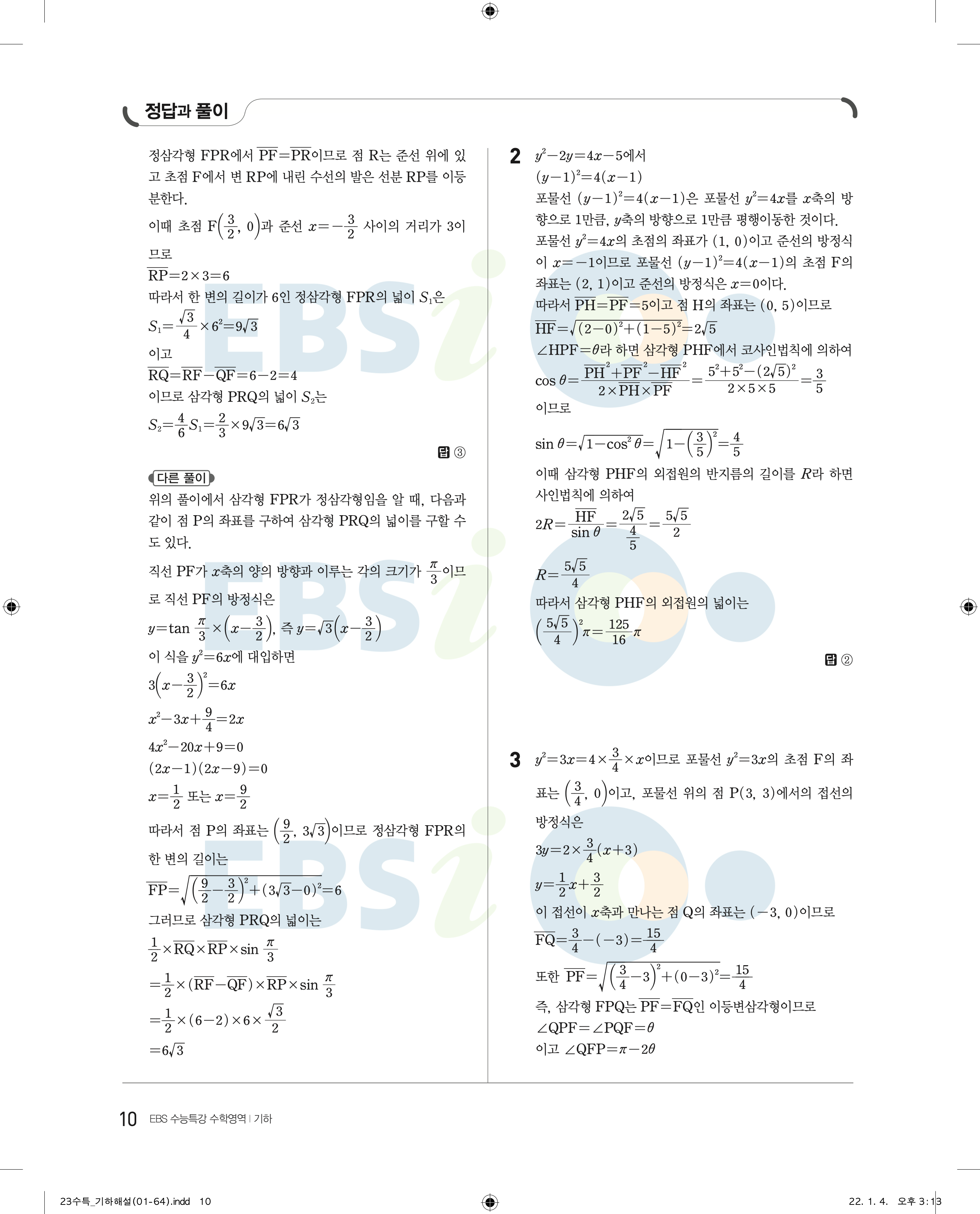 2023 수능특강 기하 답지 수특기하답지 바로보는 사진답지 모바일최적화