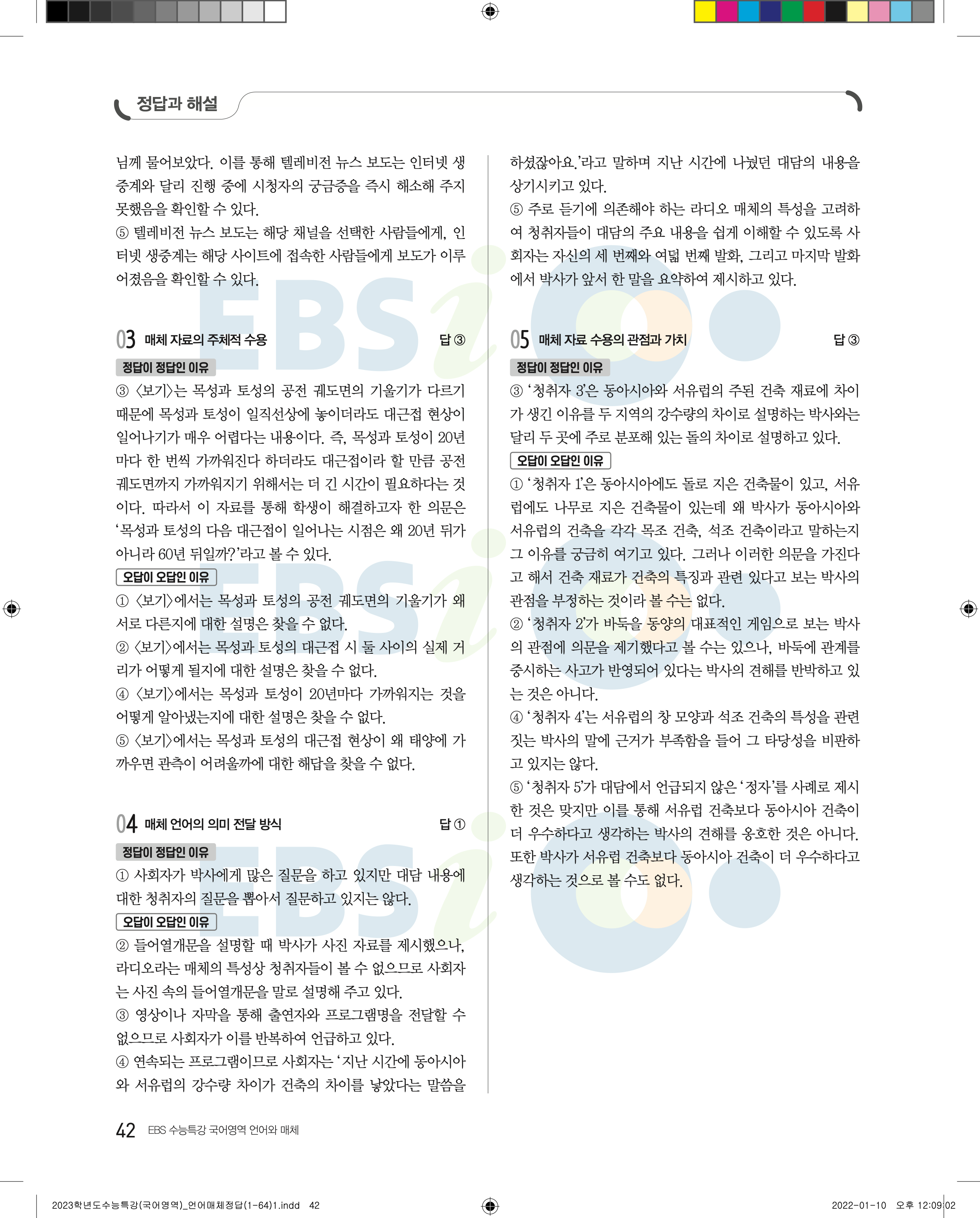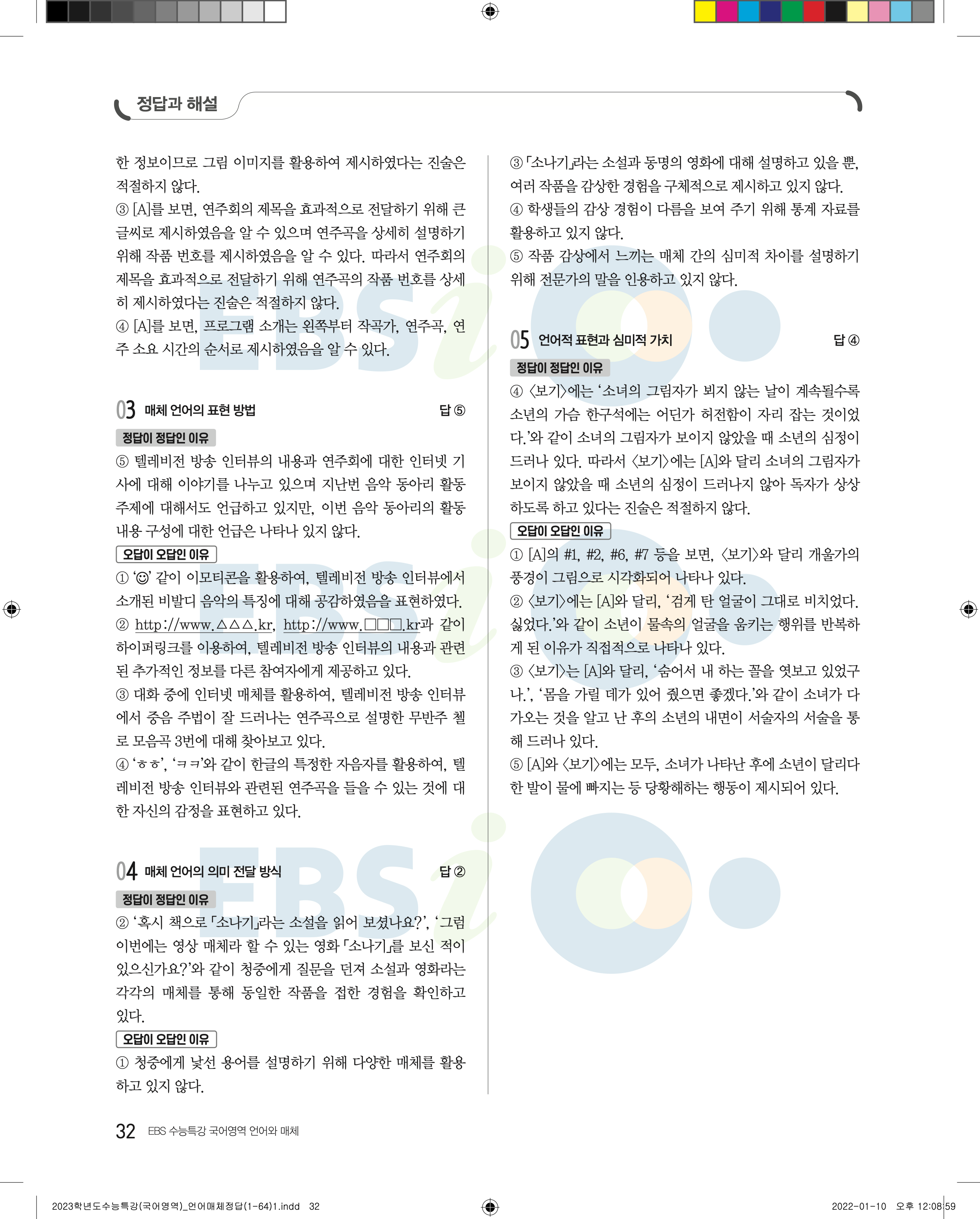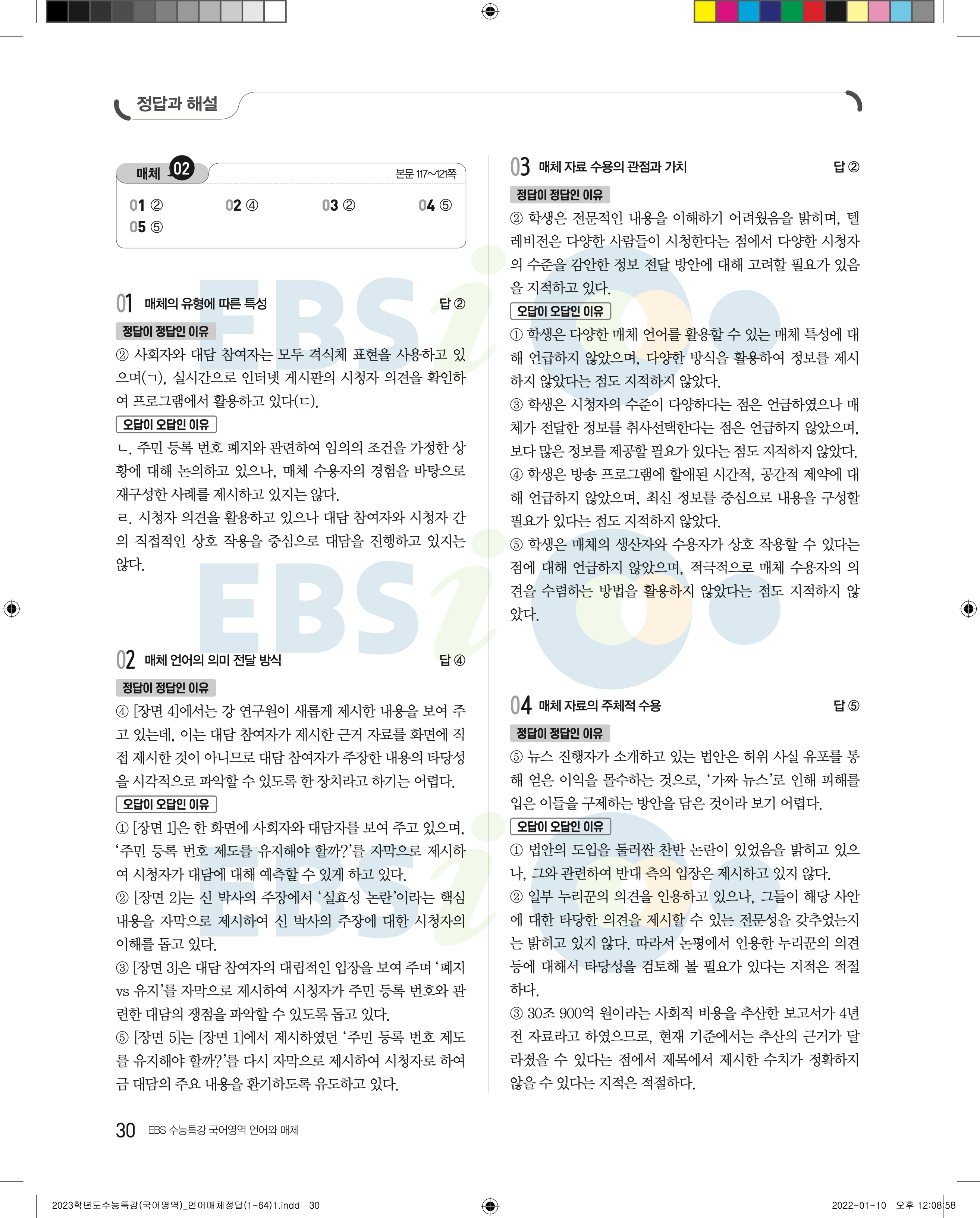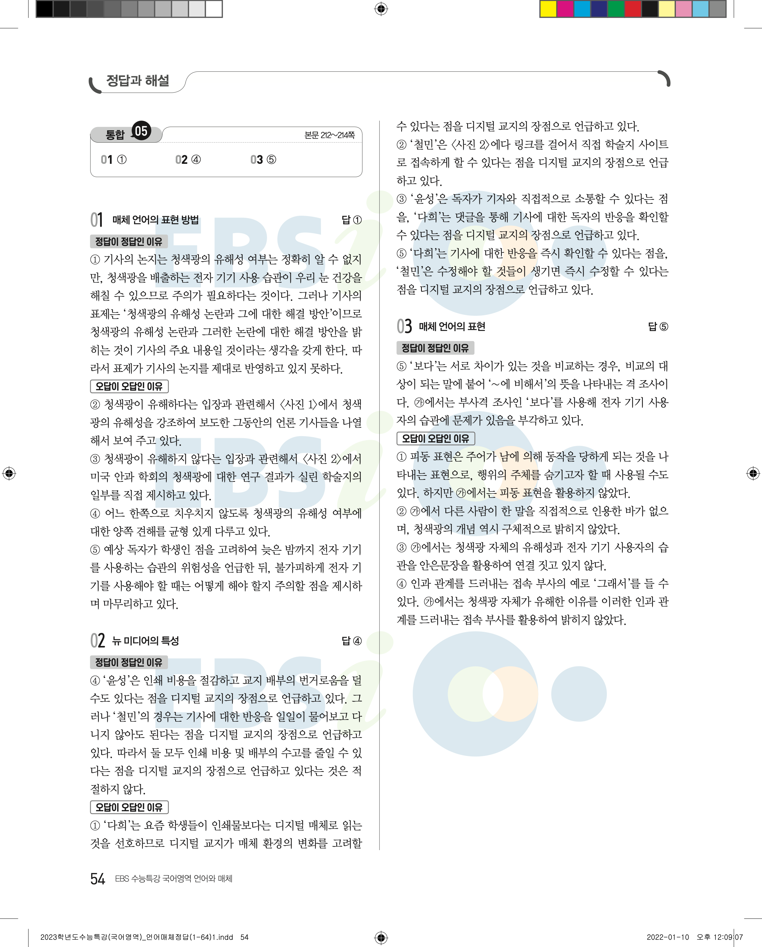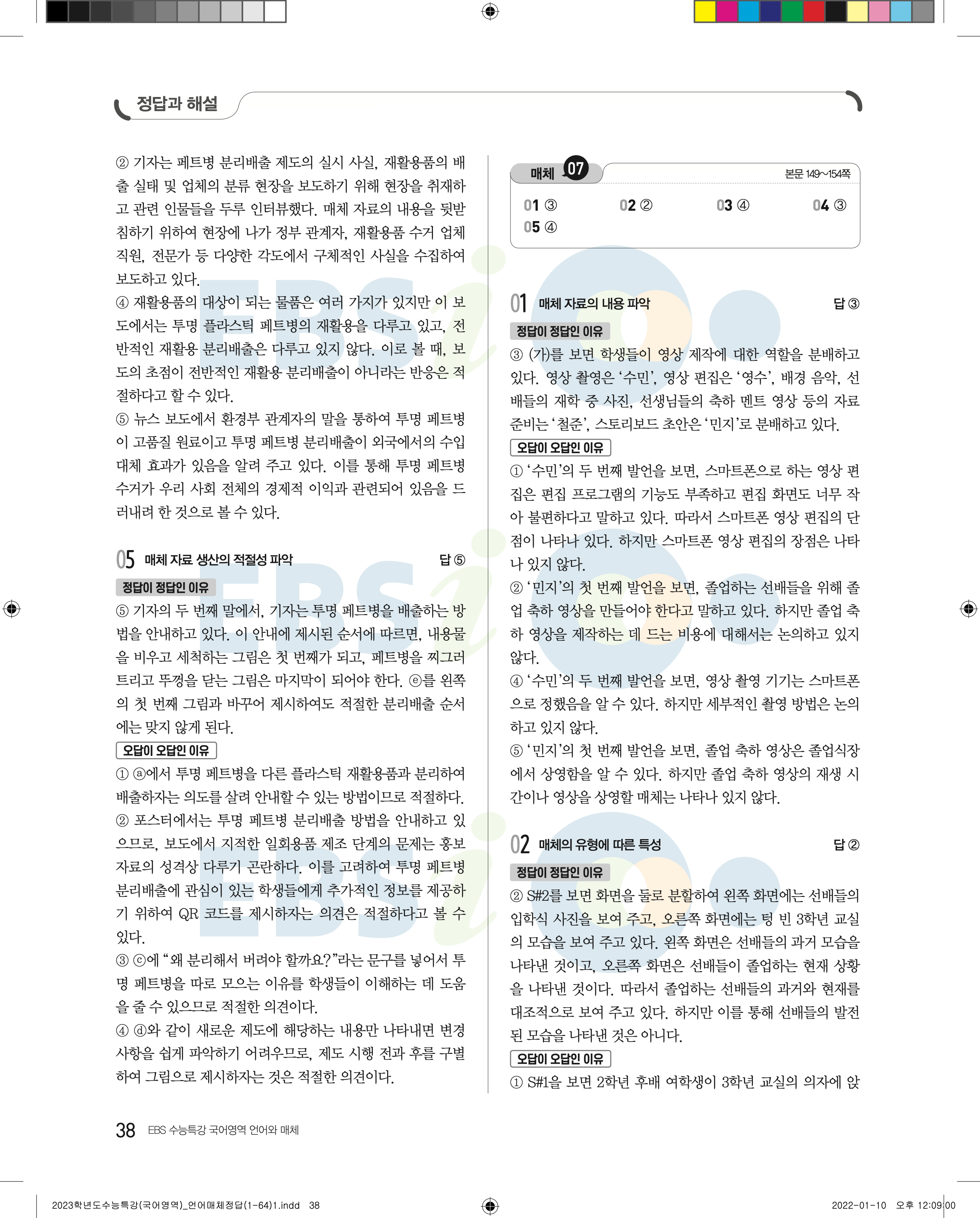 2023 수능특강 언어와매체 답지 수특언매답지 바로보는 사진답지 모바일최적화
