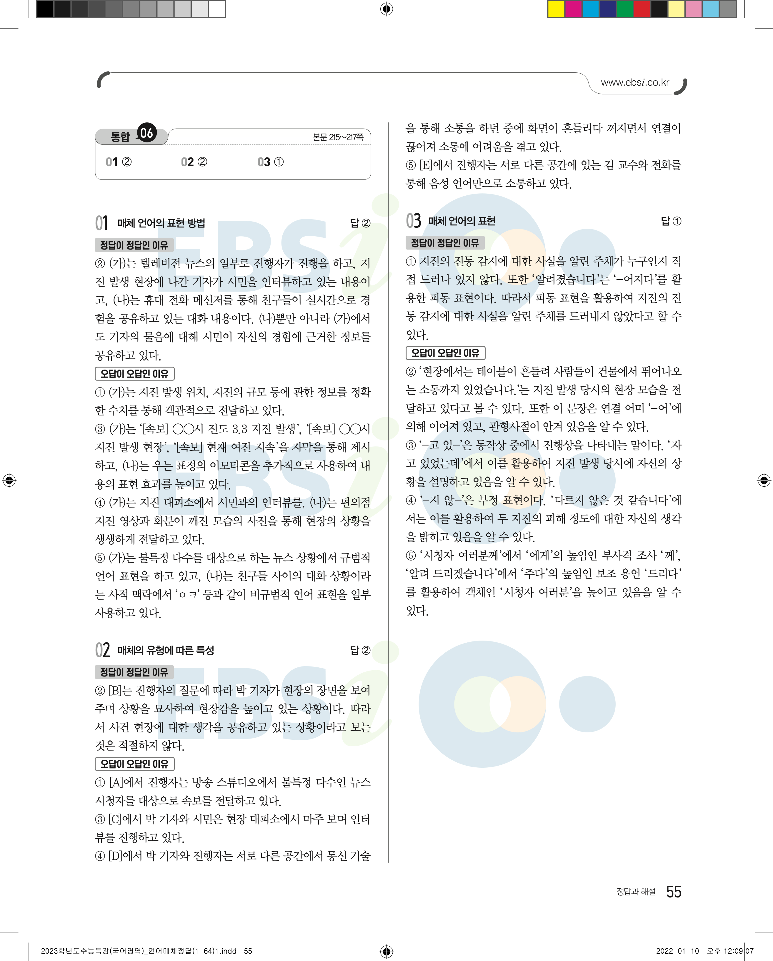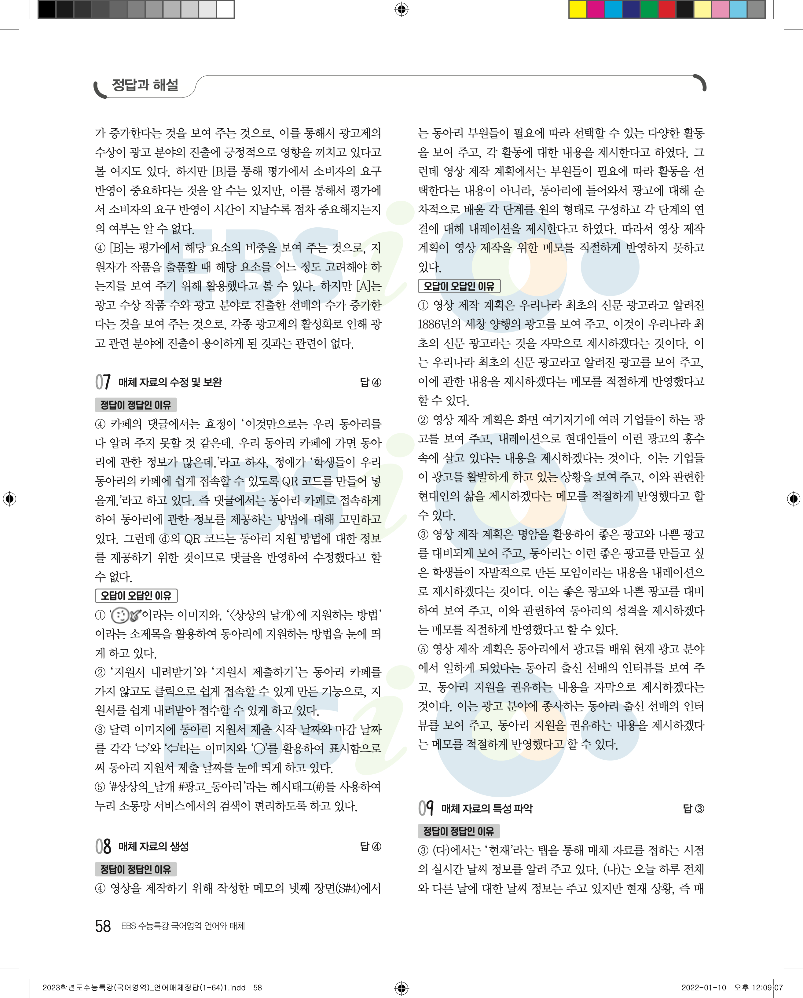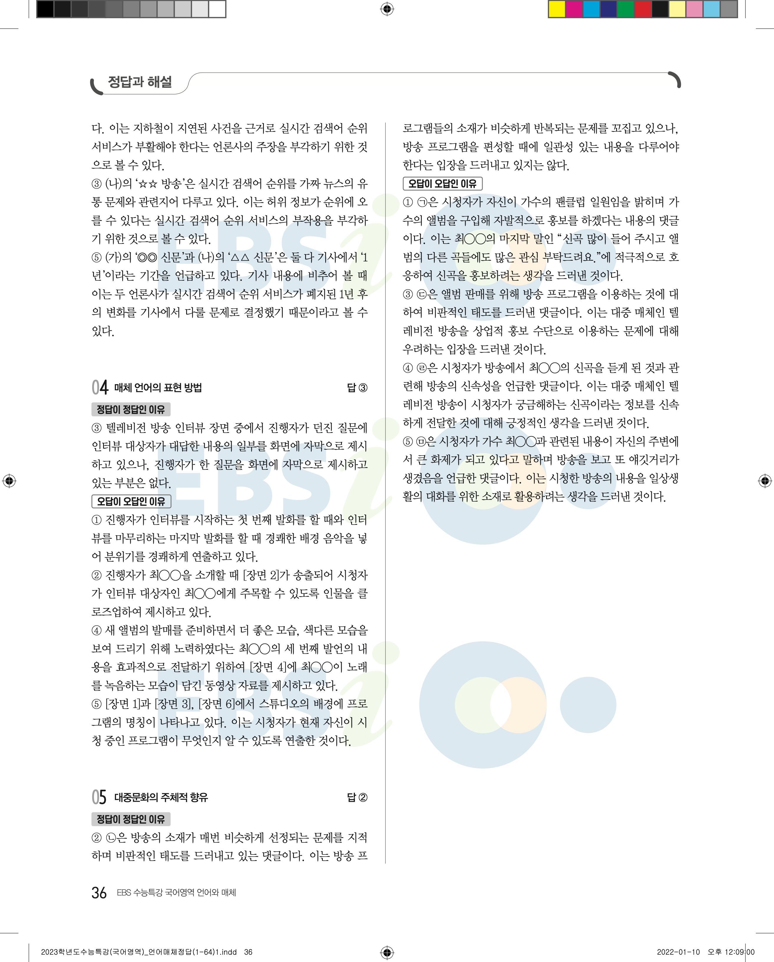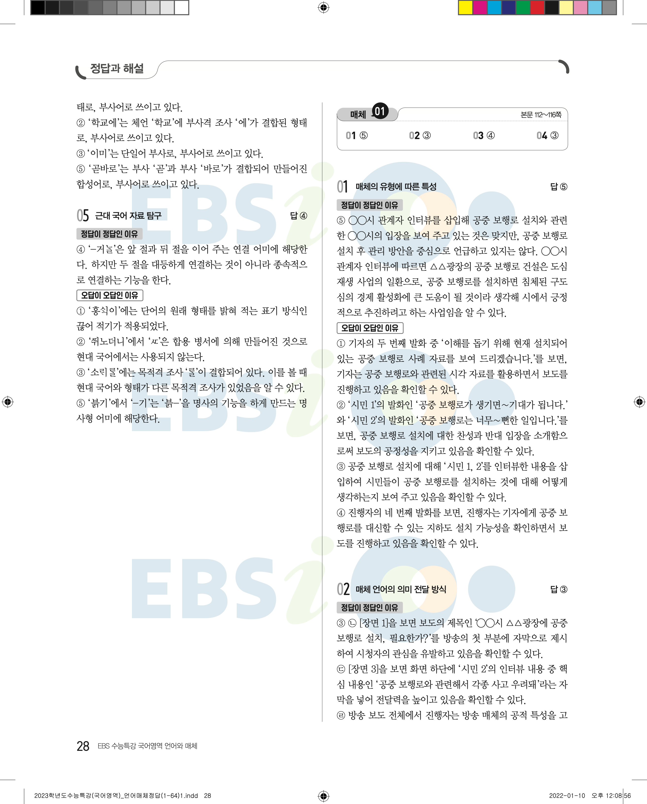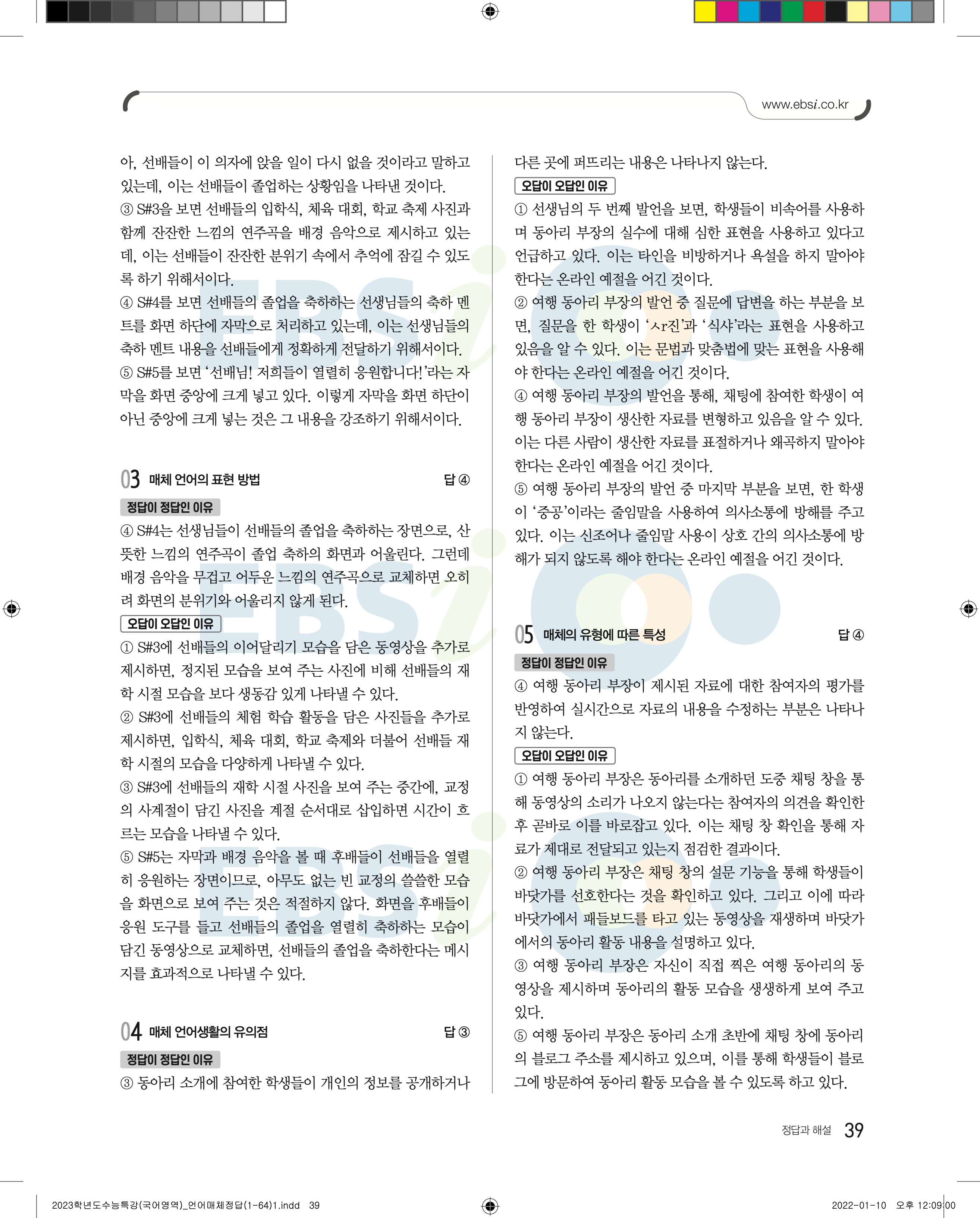 2023 수능특강 언어와매체 답지 수특언매답지 바로보는 사진답지 모바일최적화