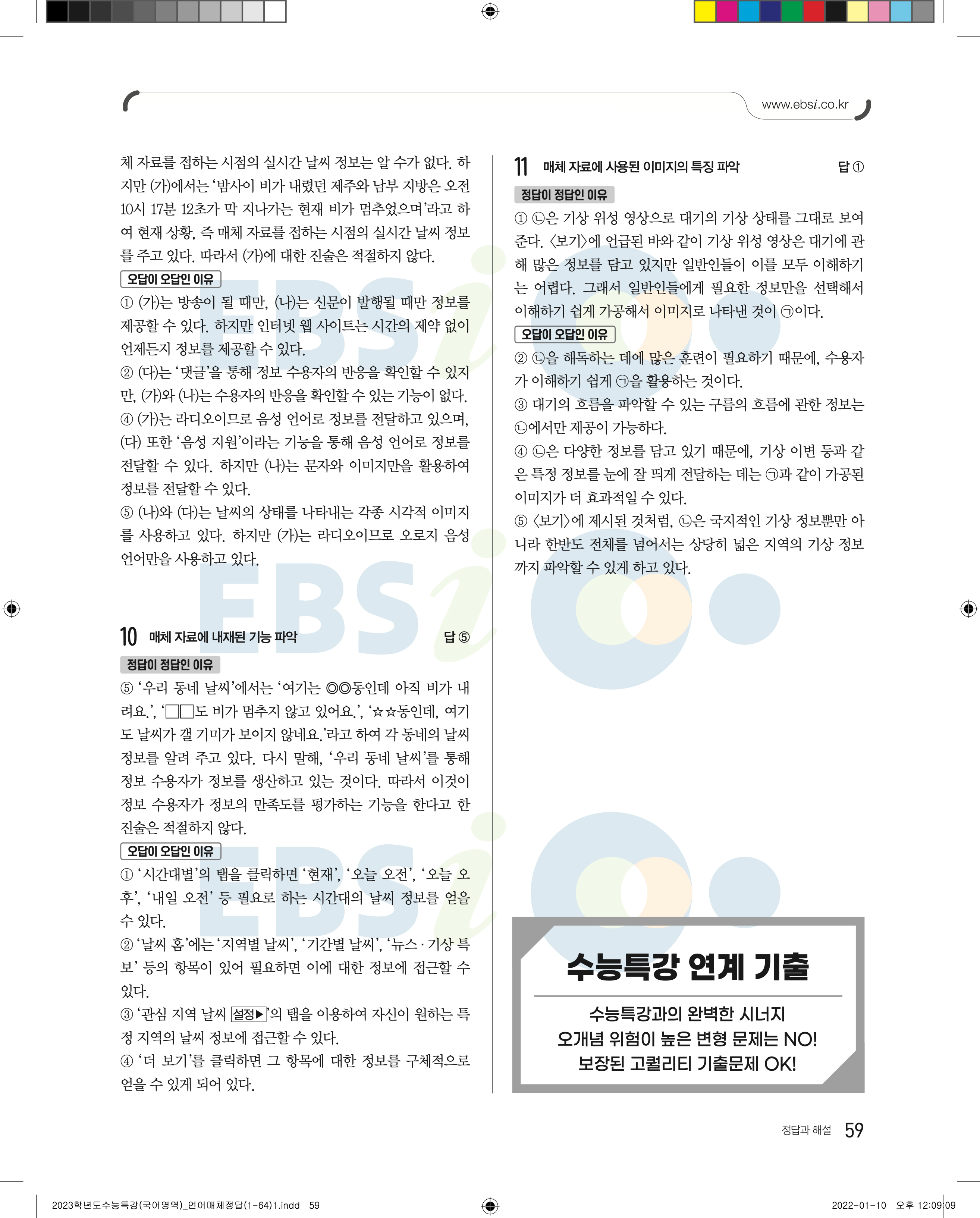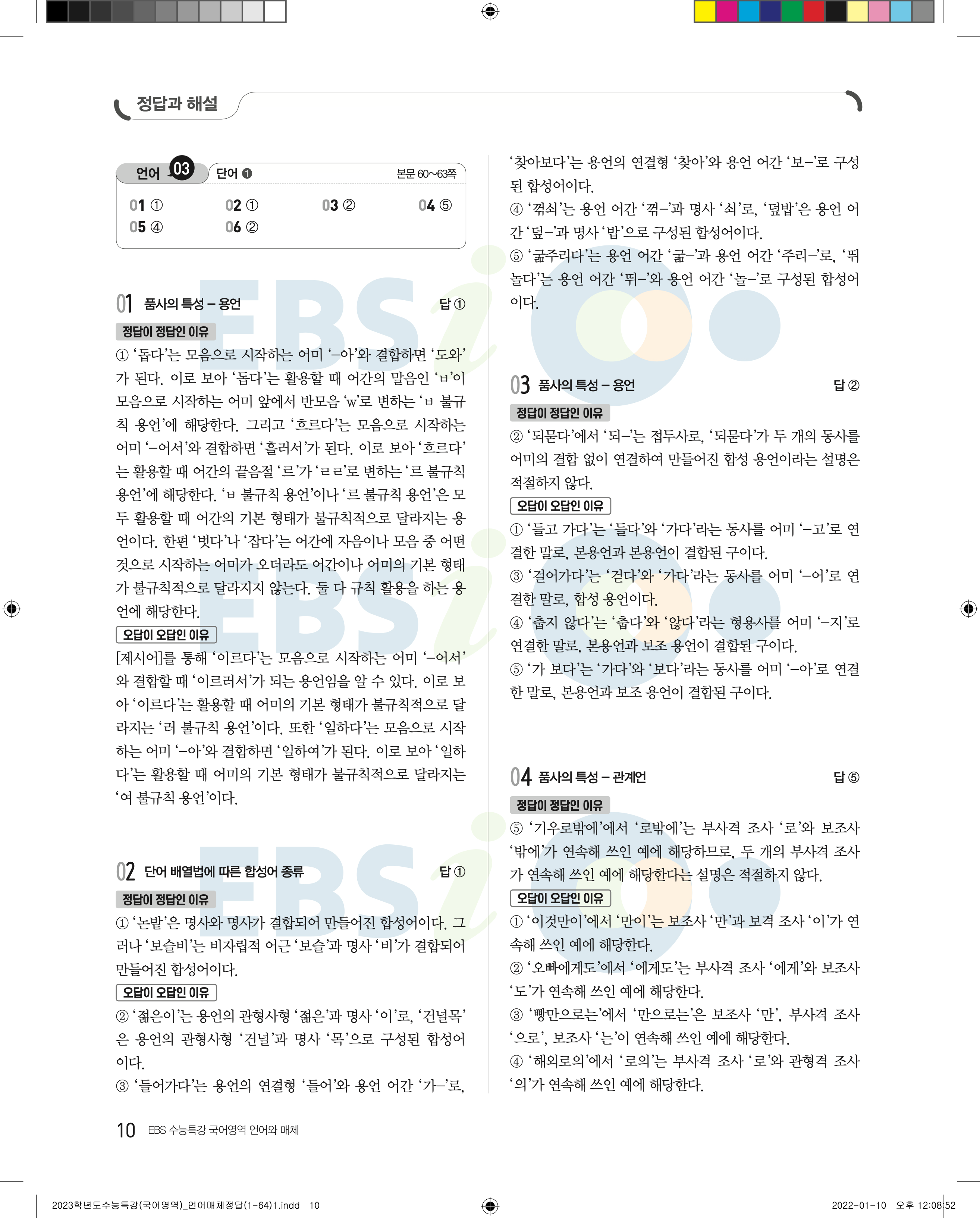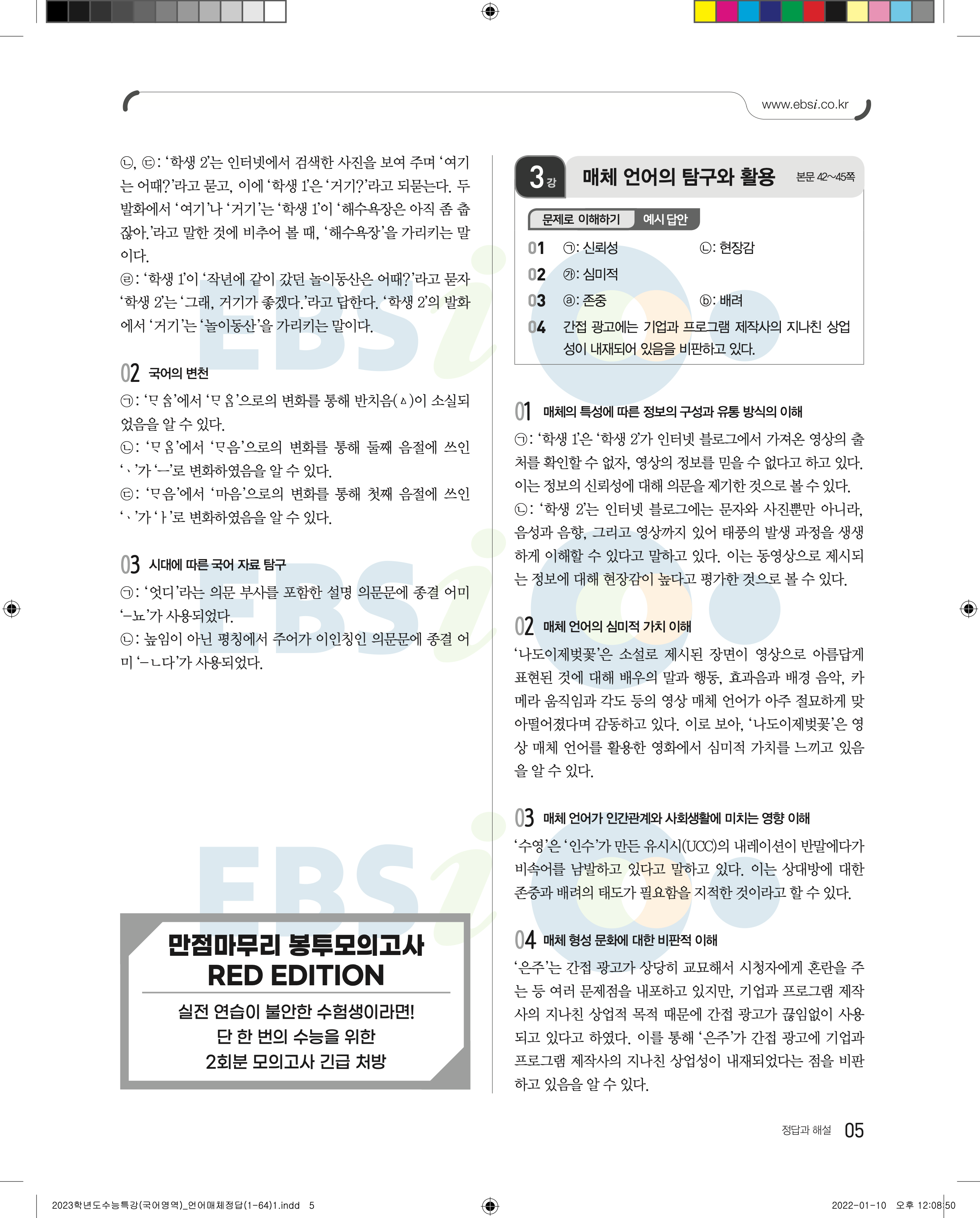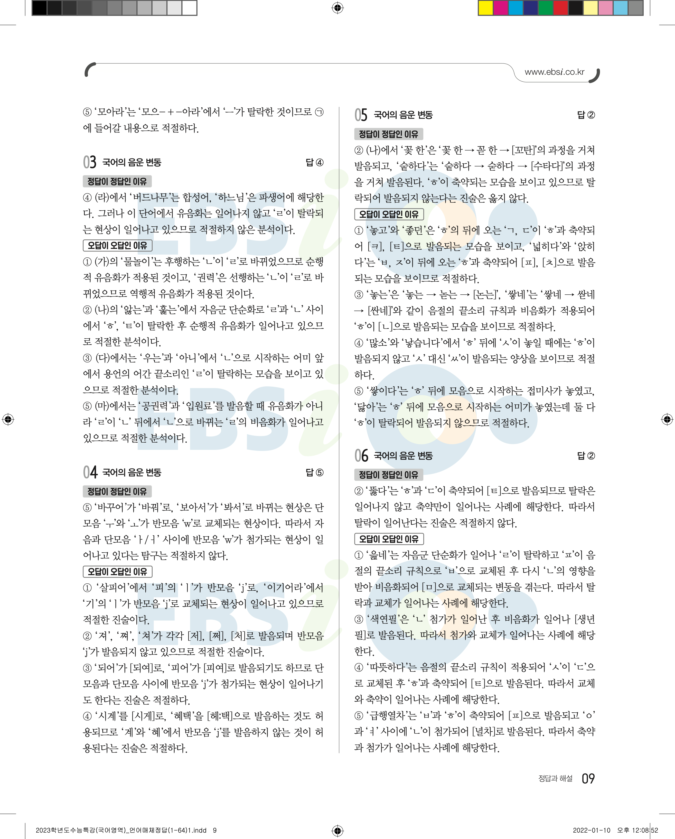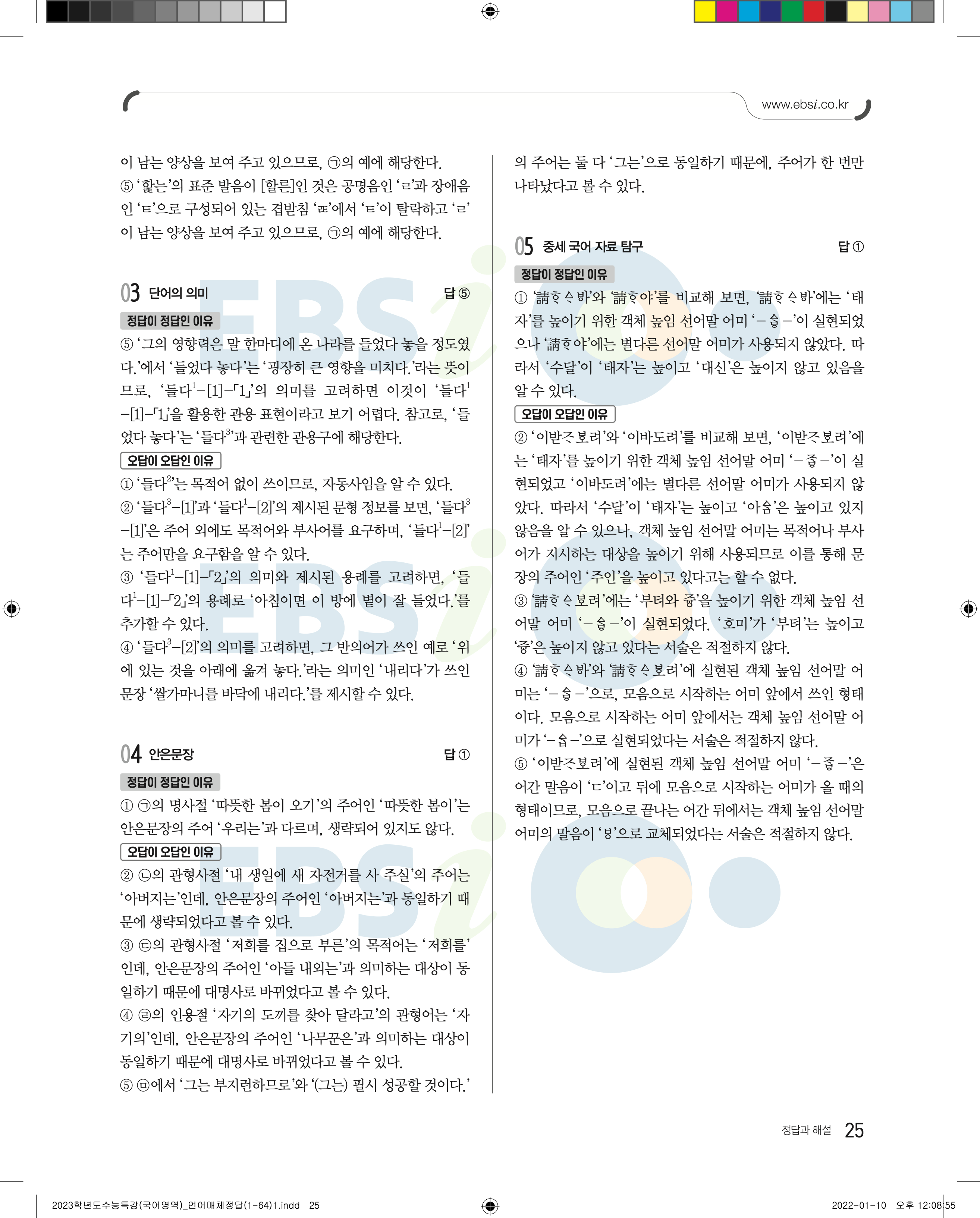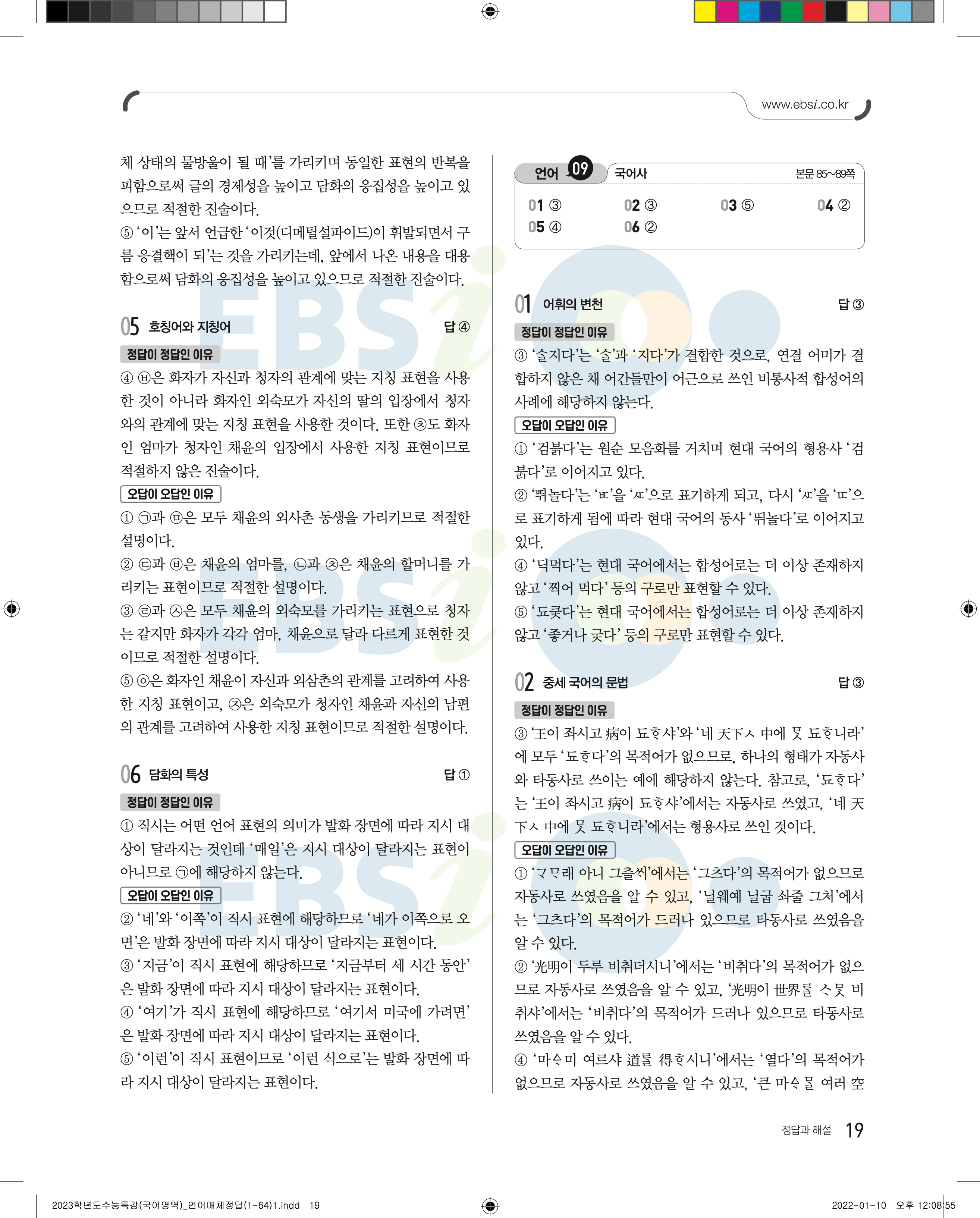2023 수능특강 언어와매체 답지 수특언매답지 바로보는 사진답지 모바일최적화