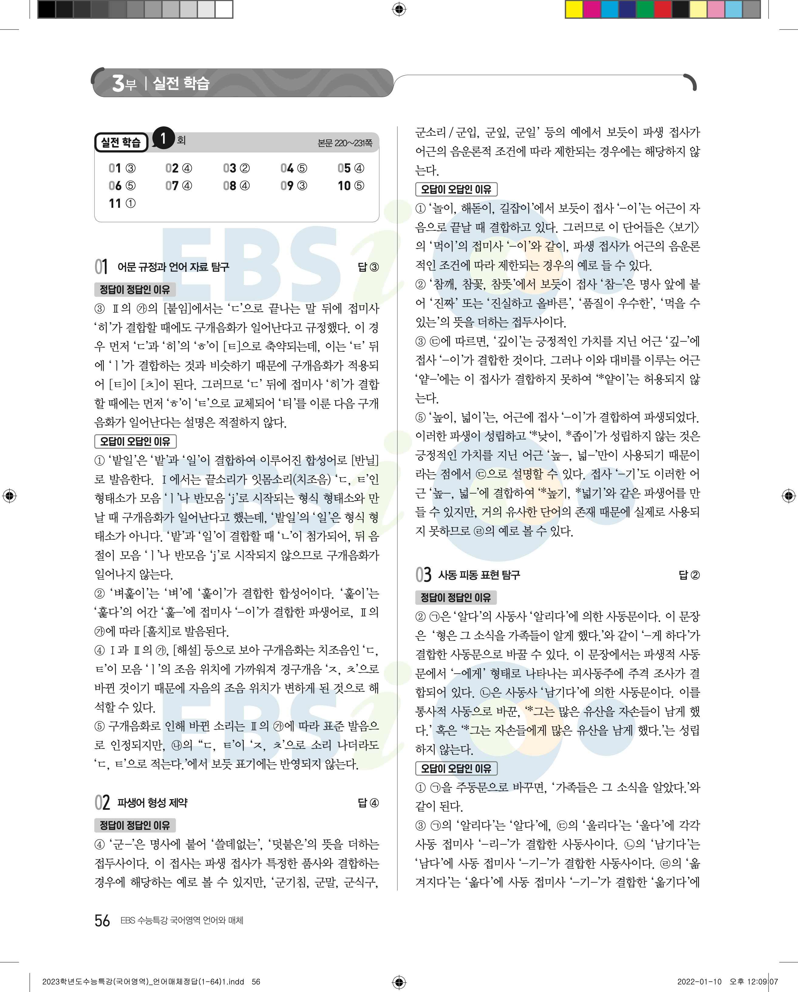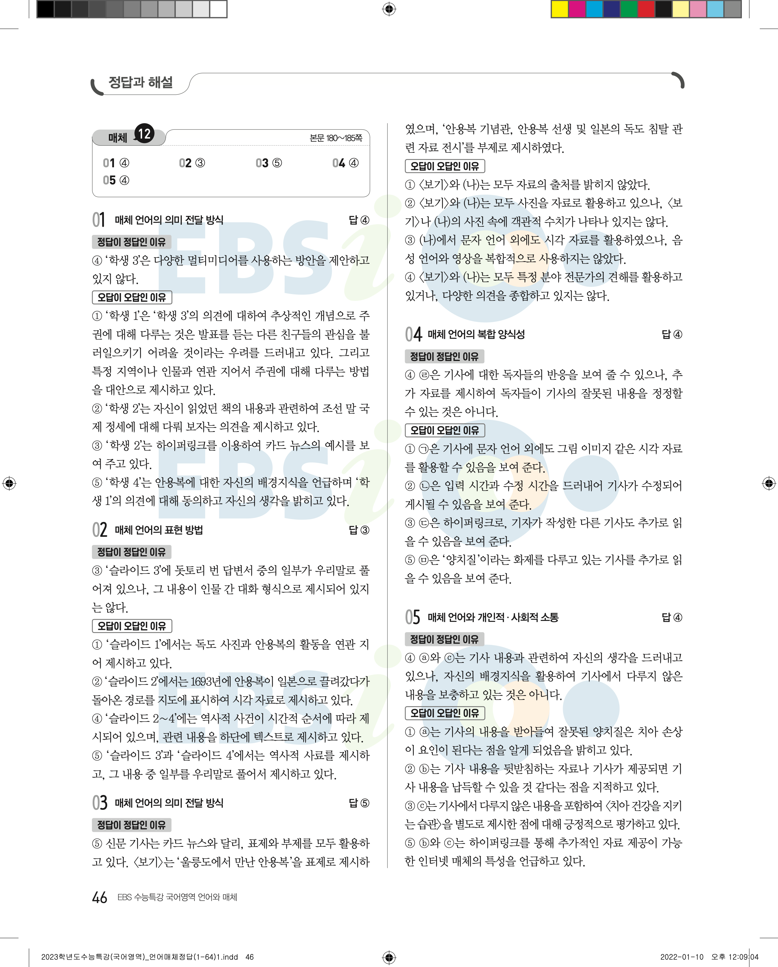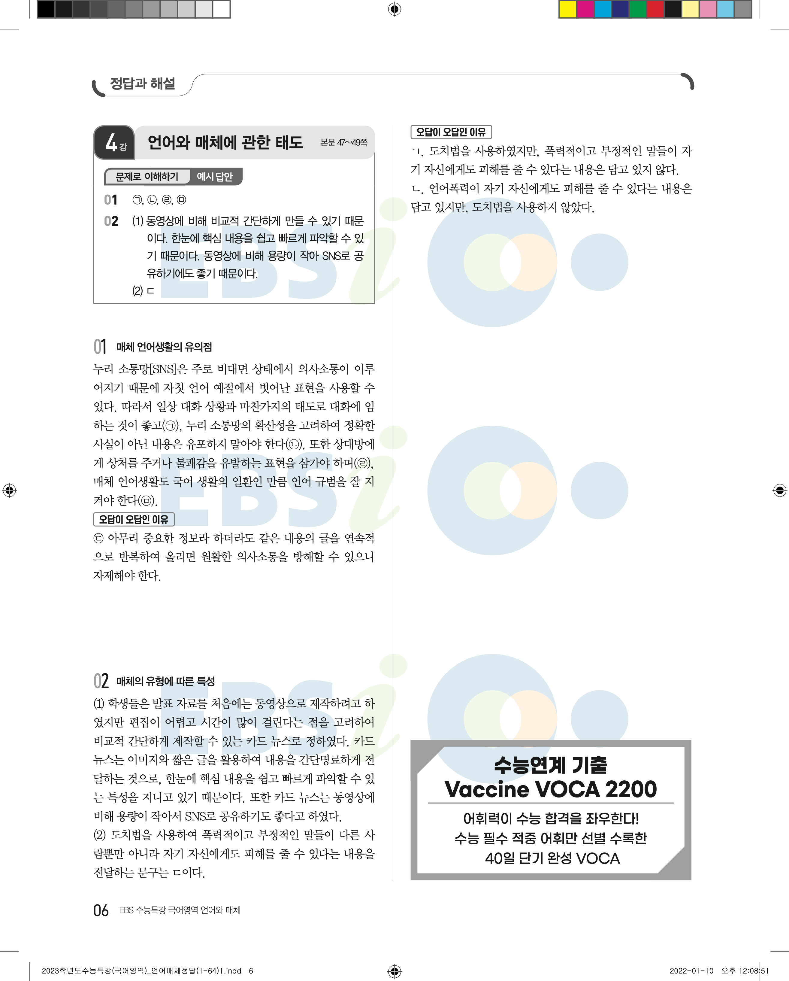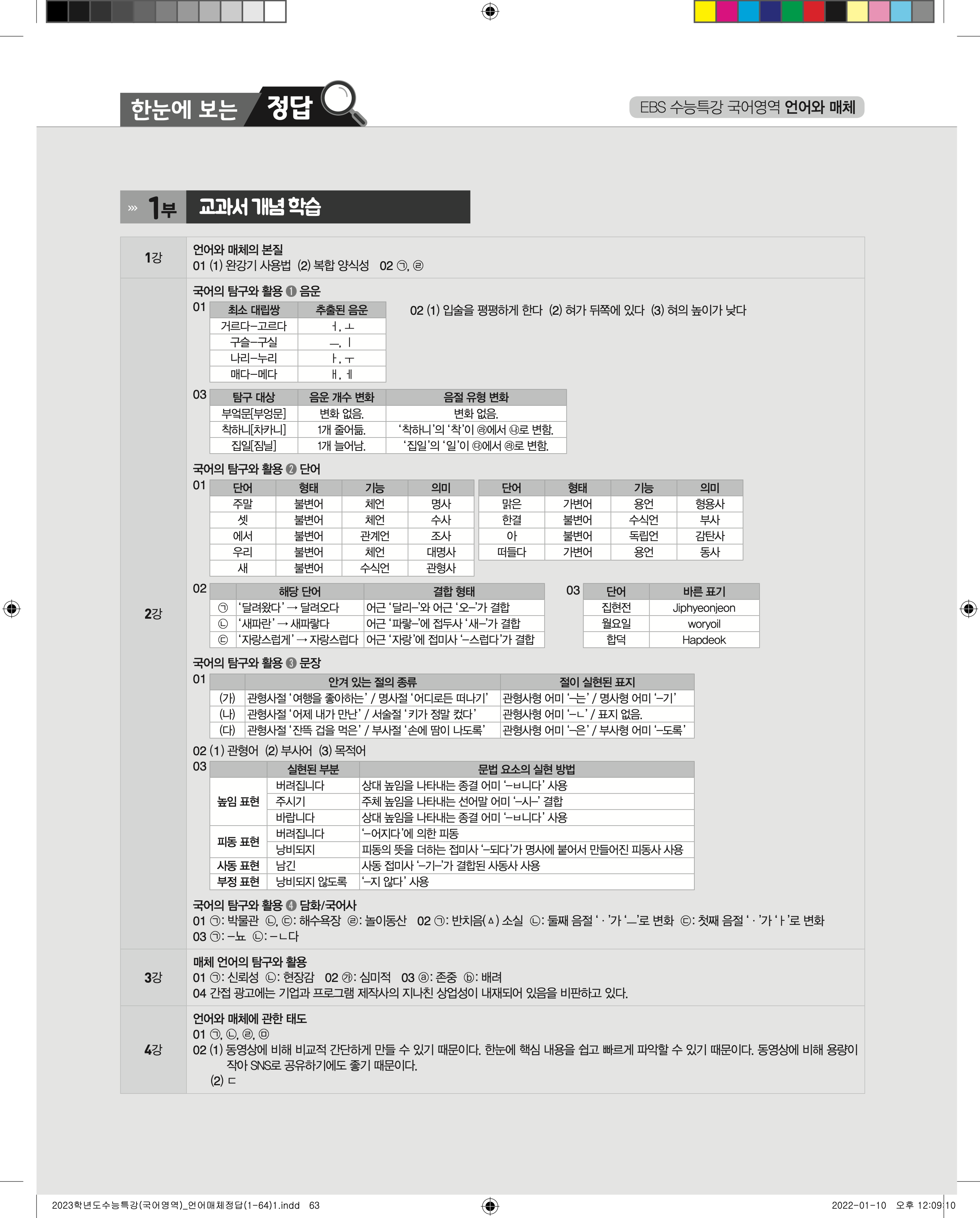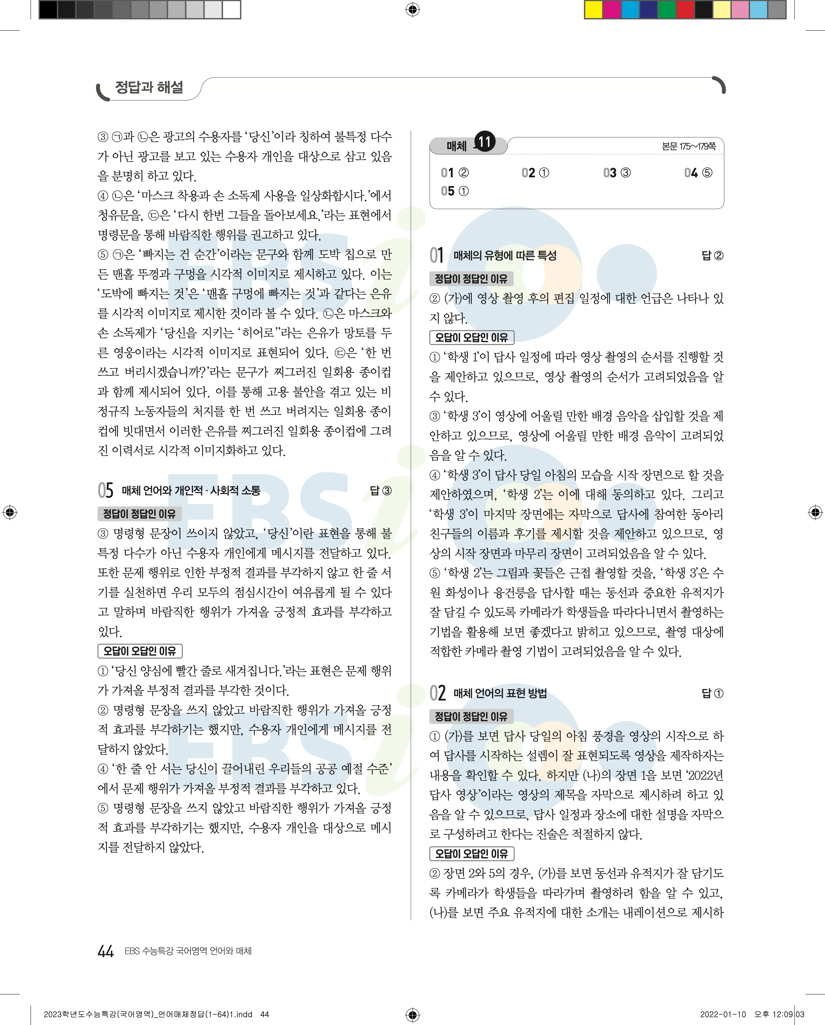 2023 수능특강 언어와매체 답지 수특언매답지 바로보는 사진답지 모바일최적화