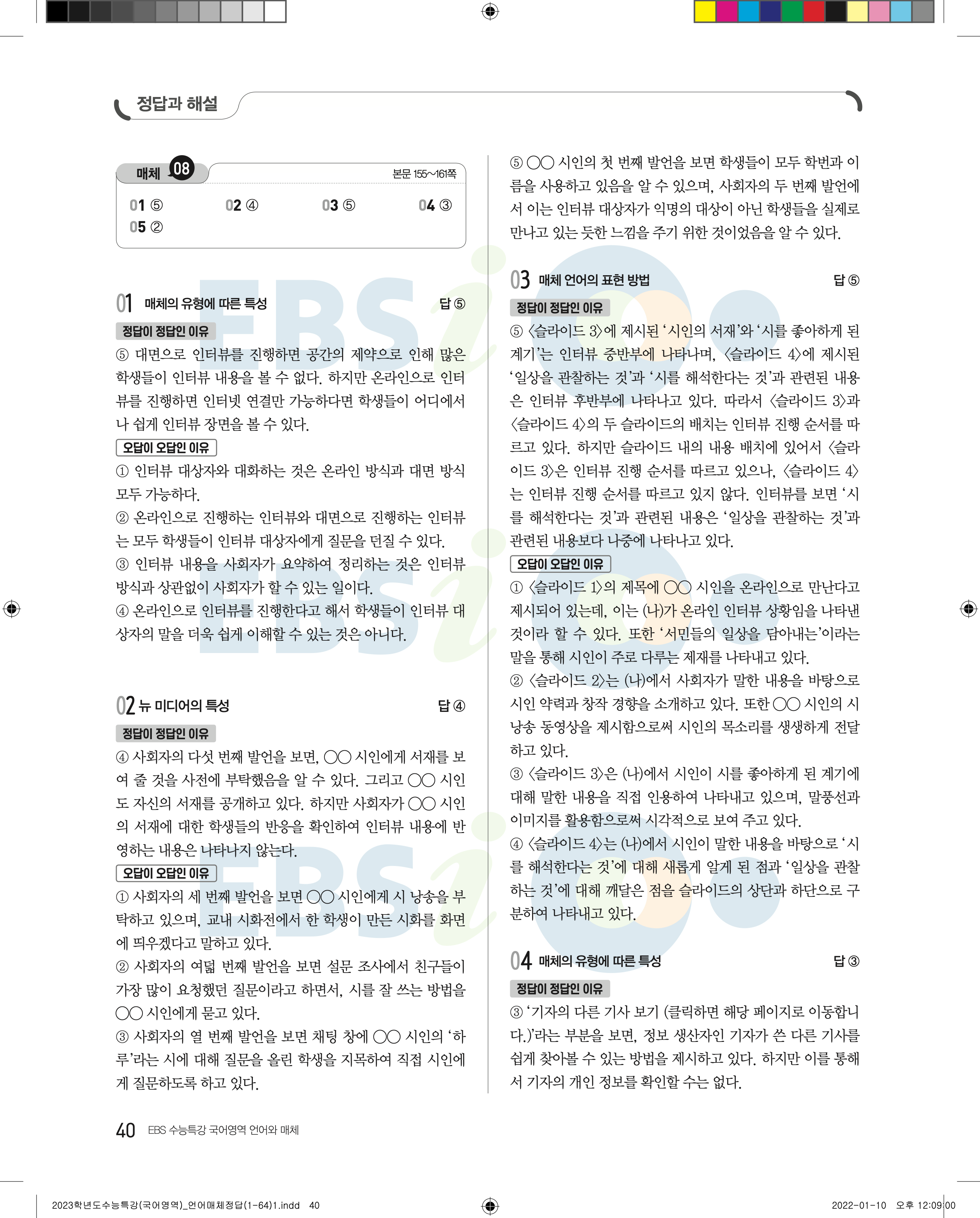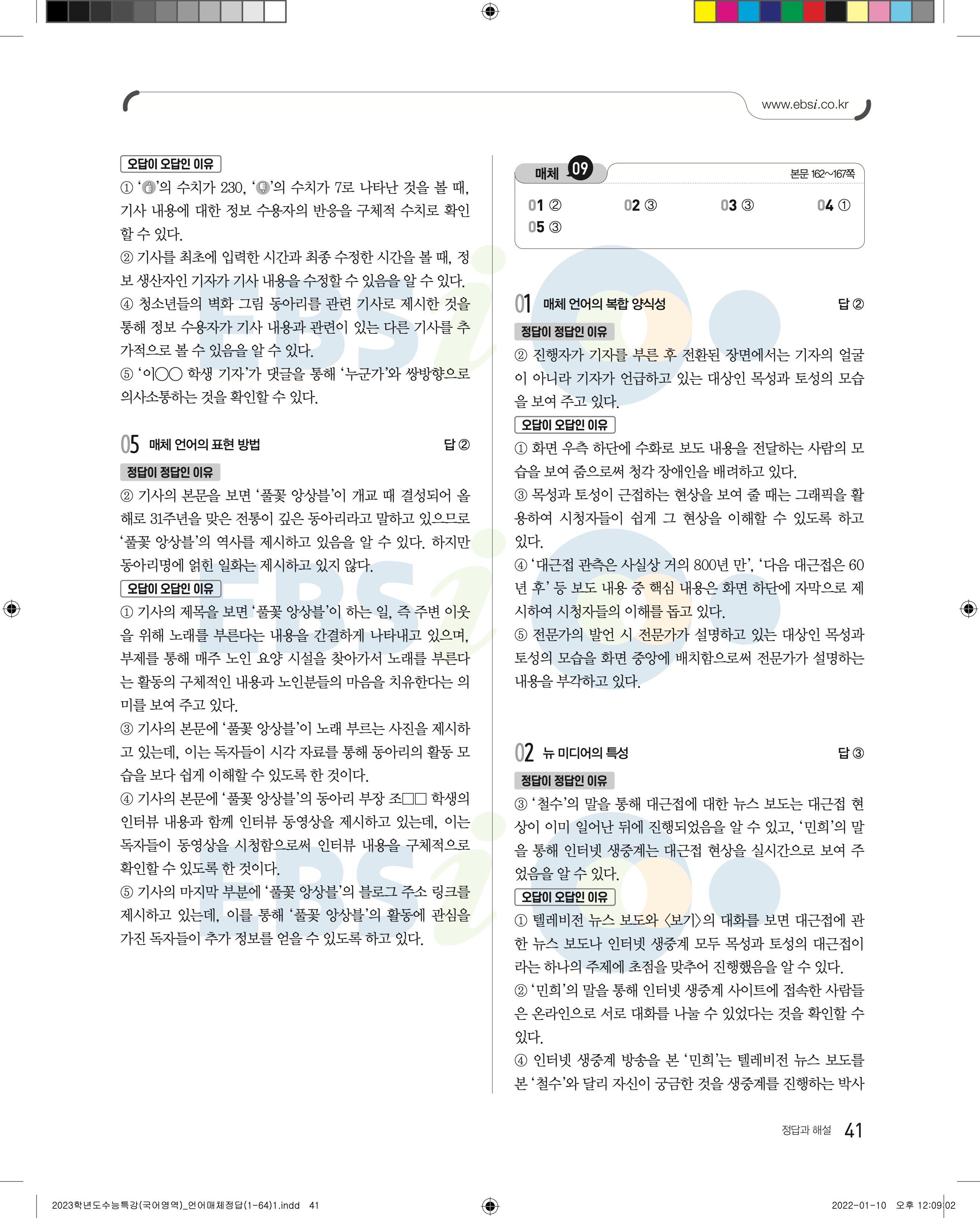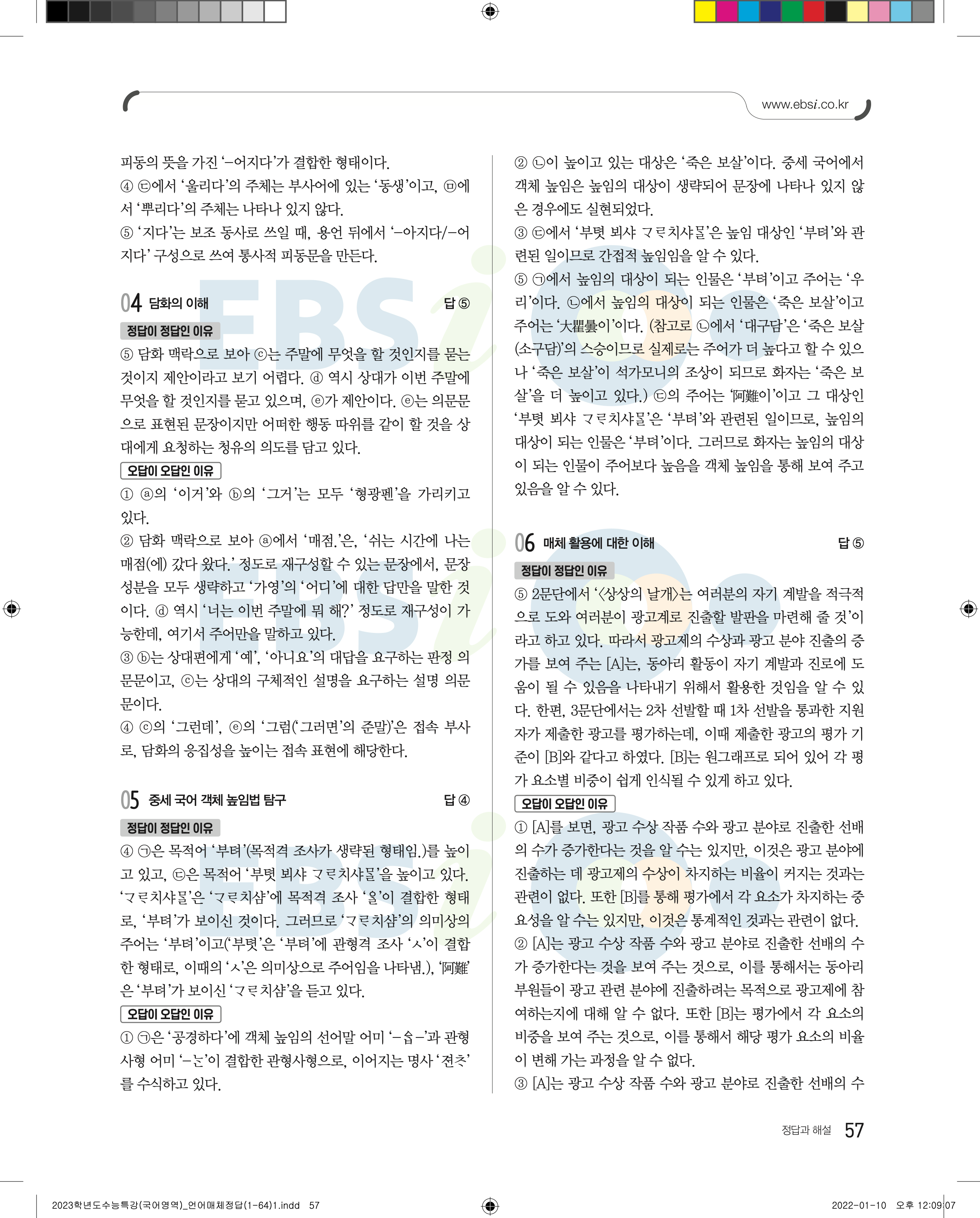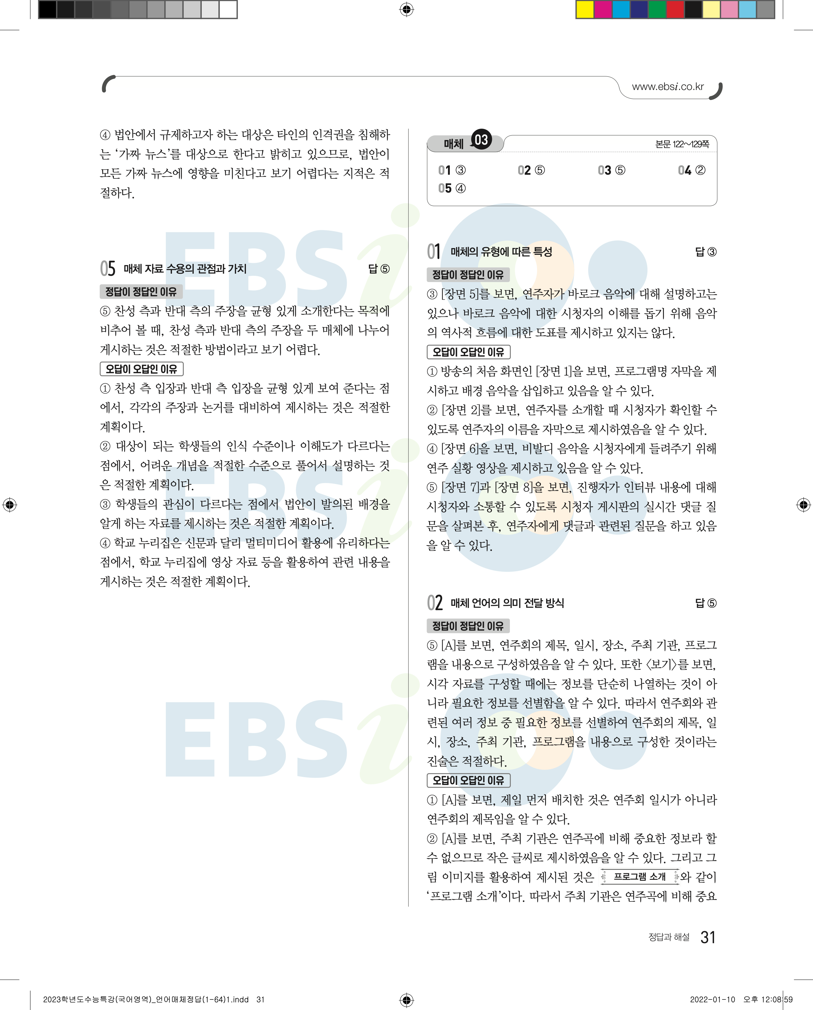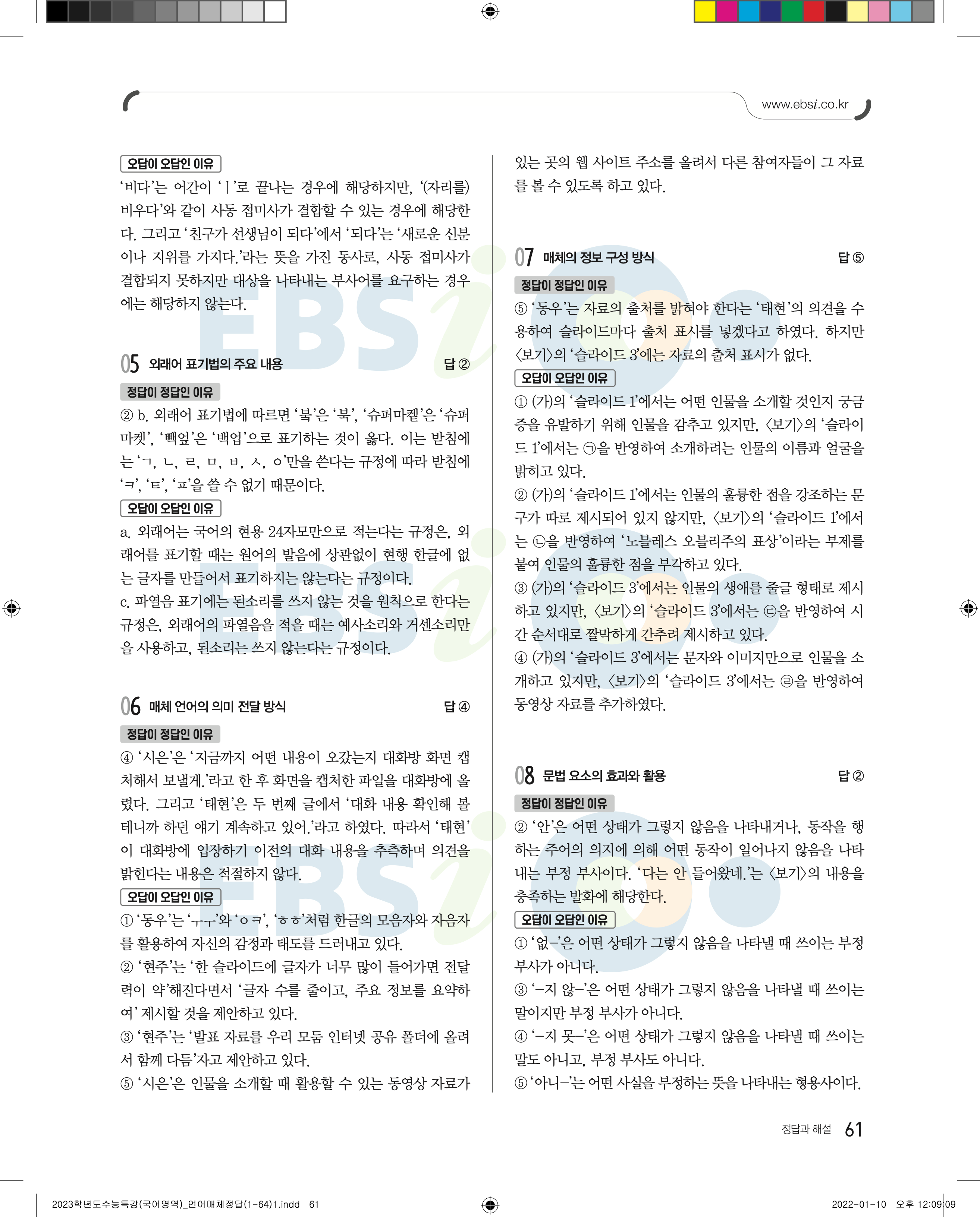 2023 수능특강 언어와매체 답지 수특언매답지 바로보는 사진답지 모바일최적화