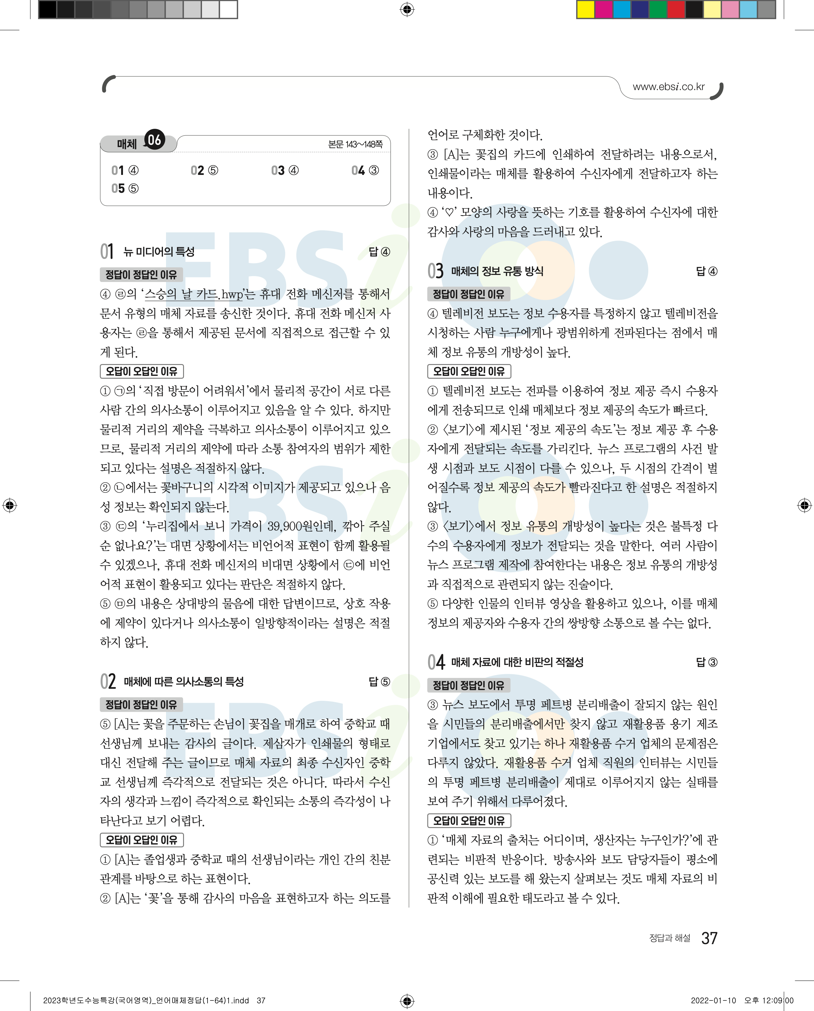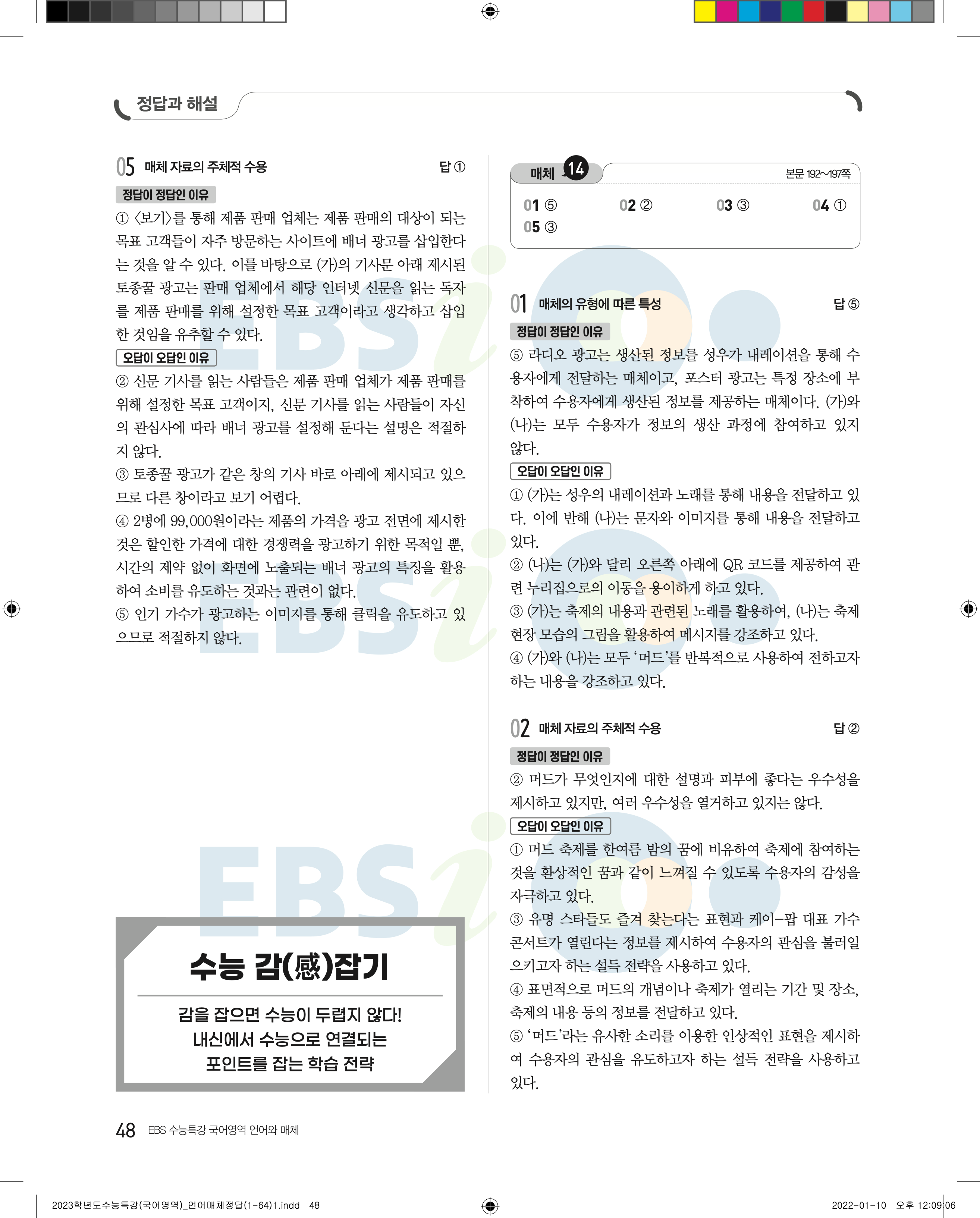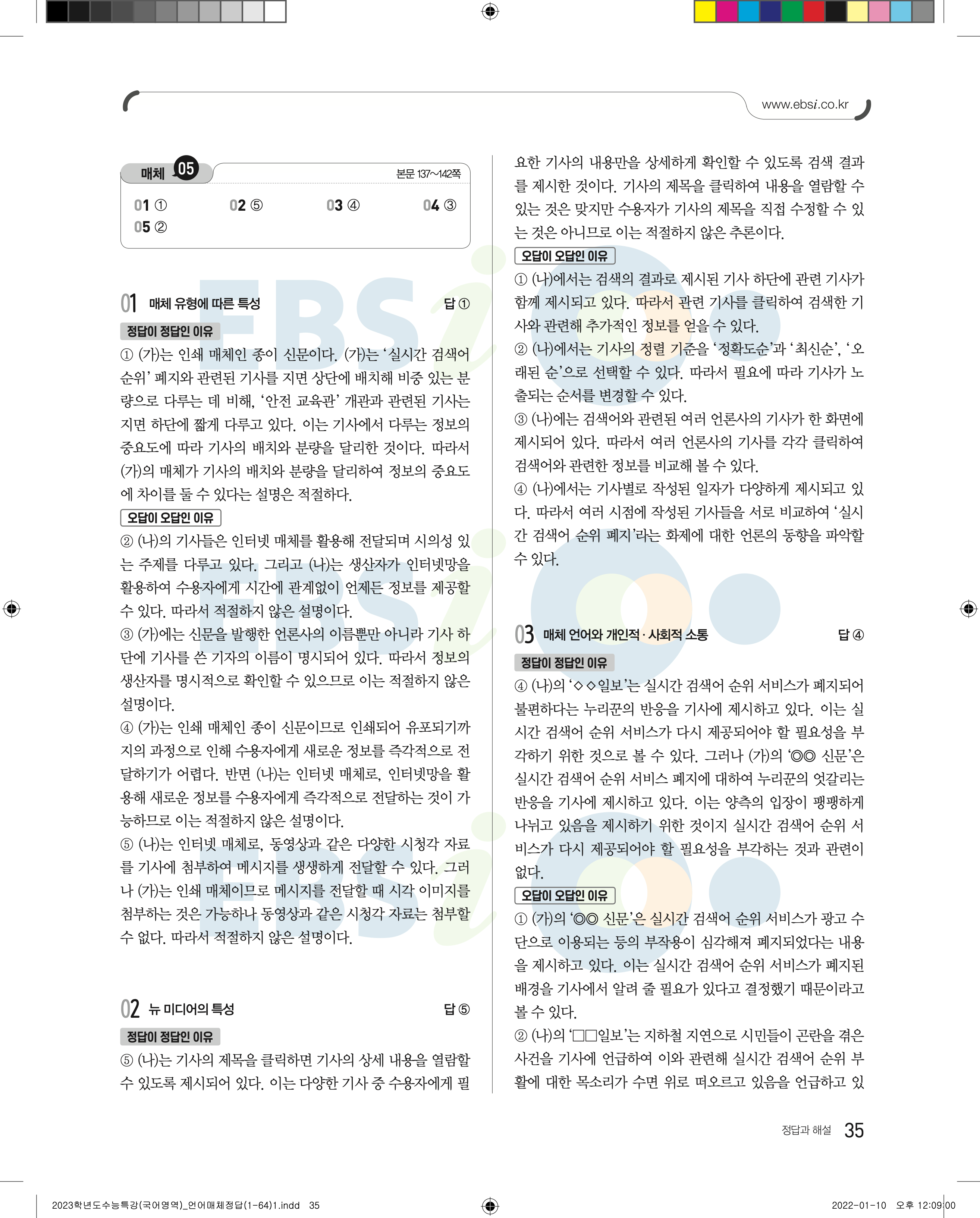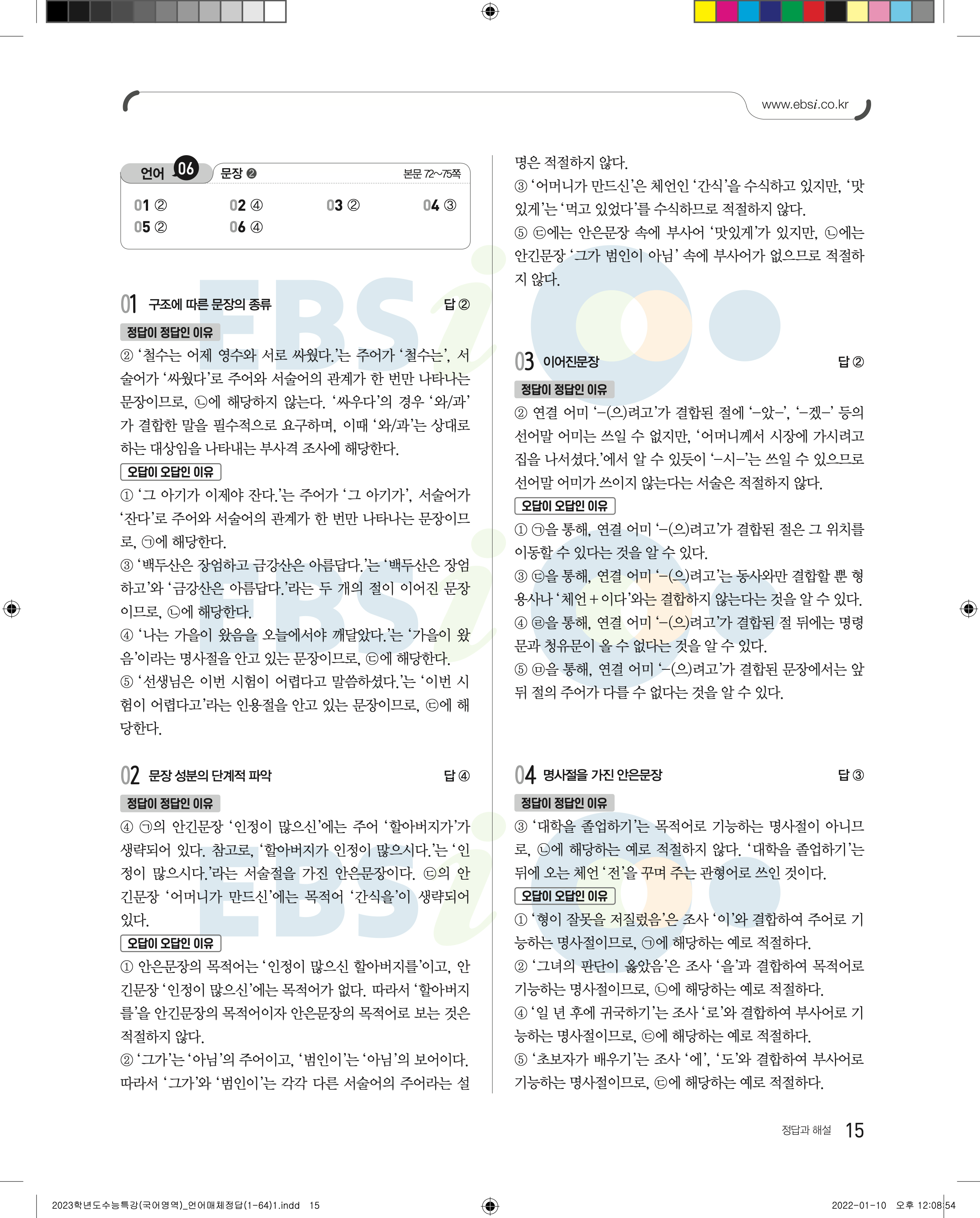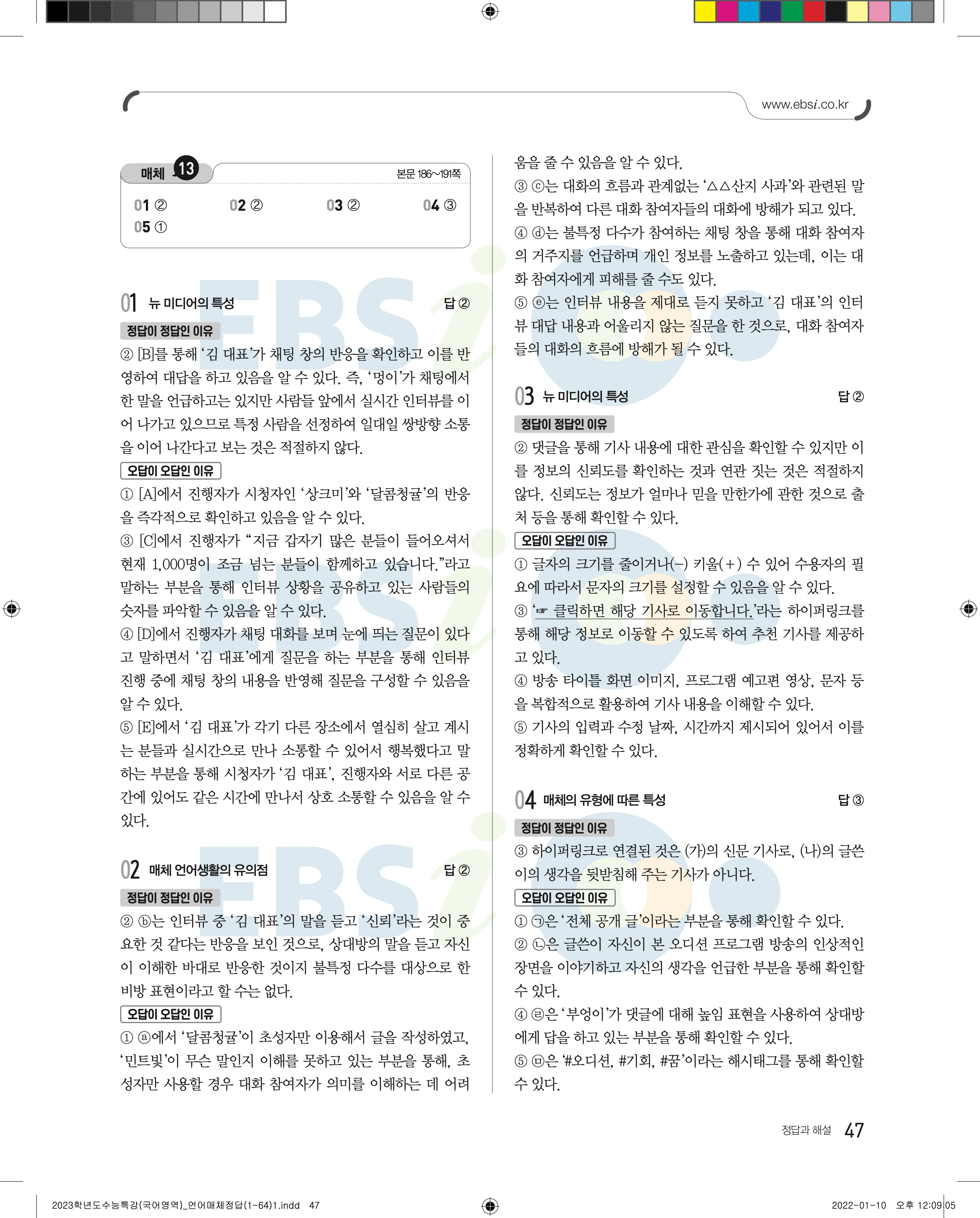 2023 수능특강 언어와매체 답지 수특언매답지 바로보는 사진답지 모바일최적화