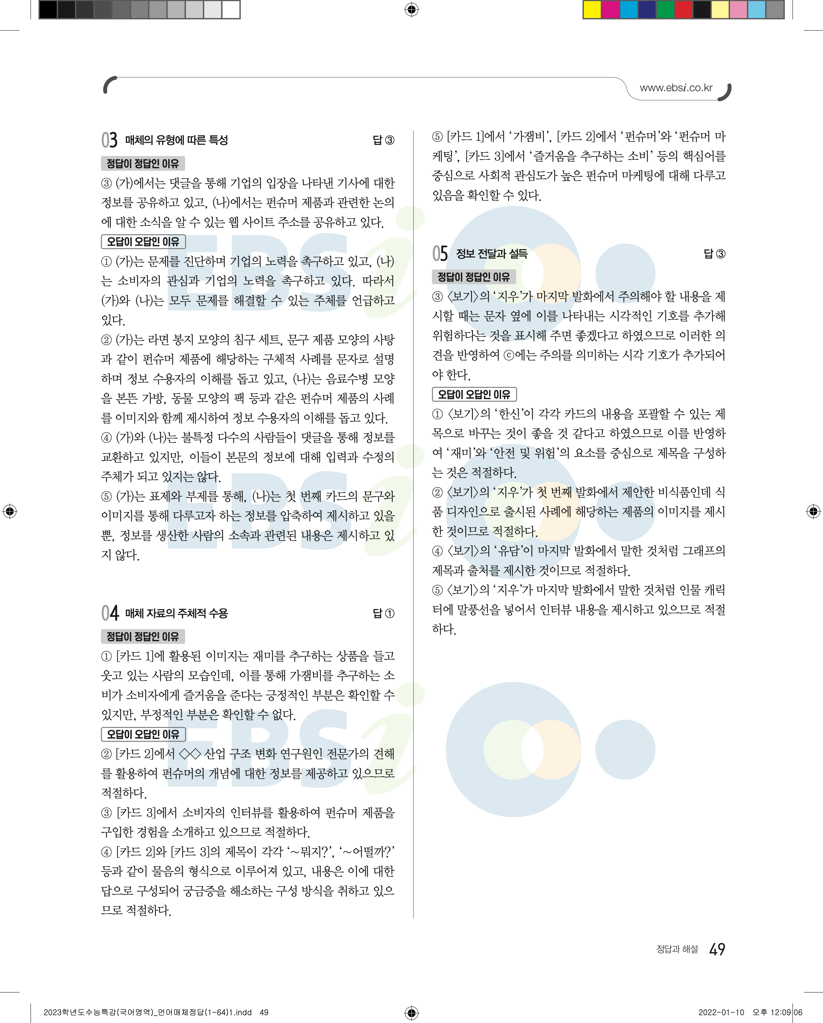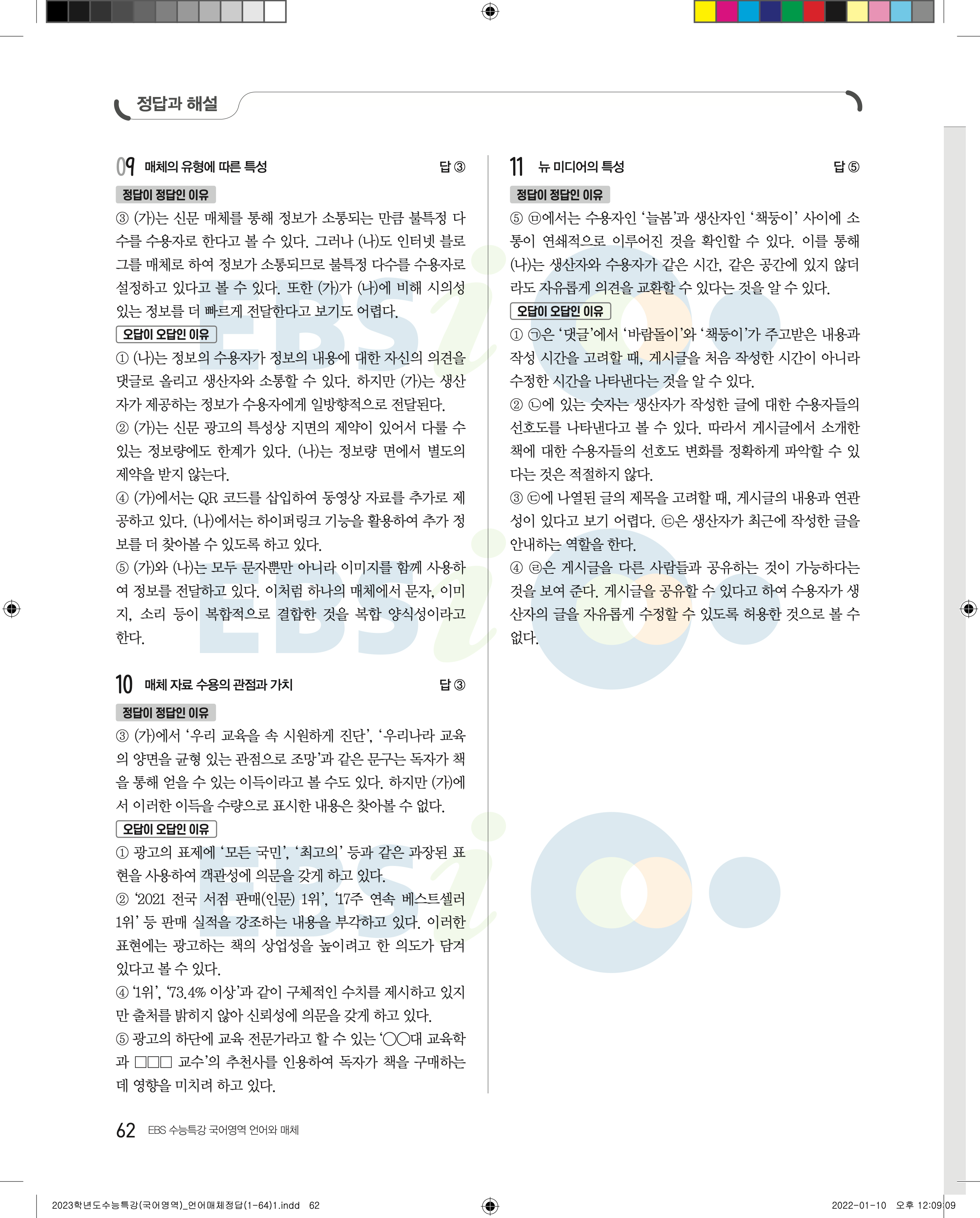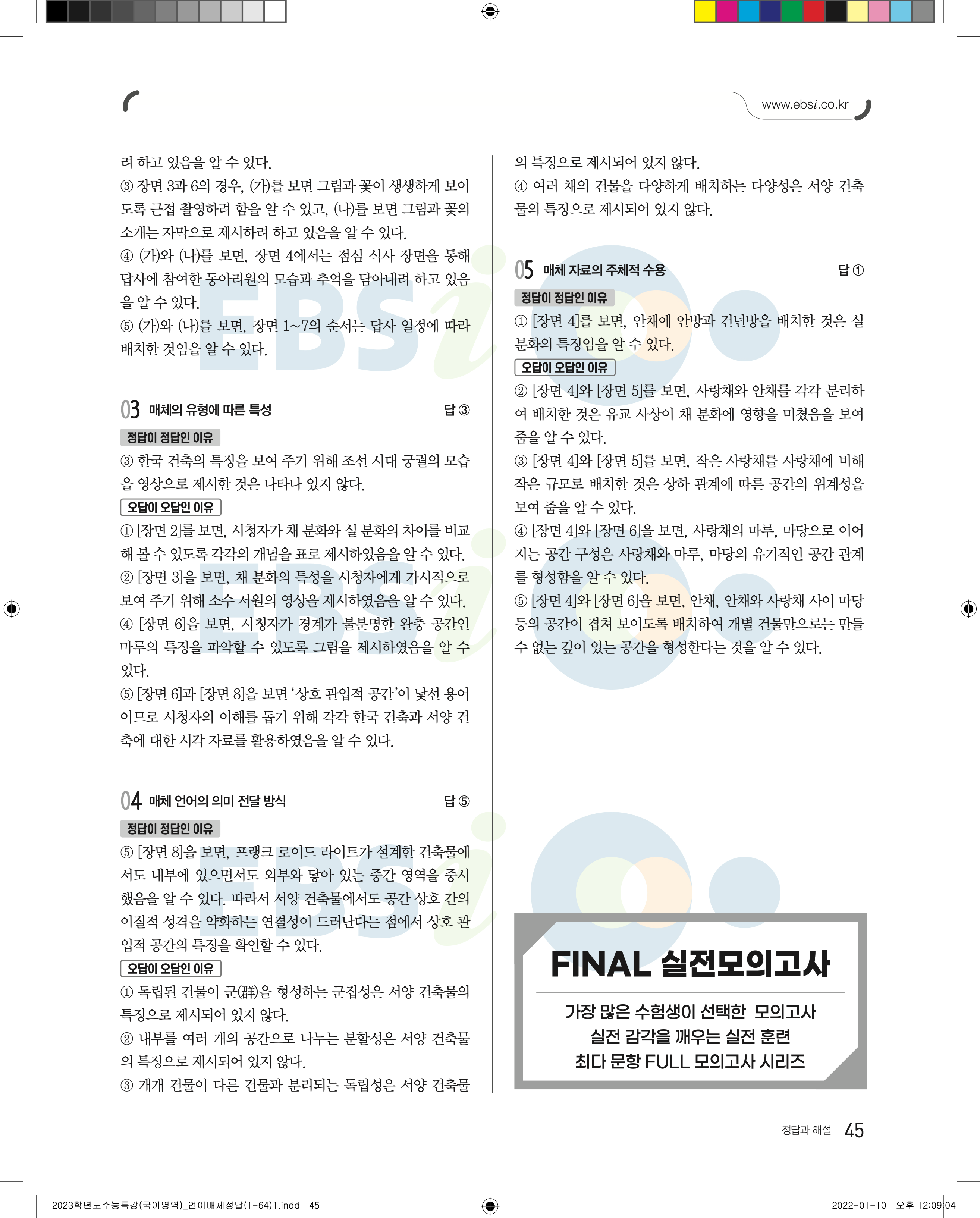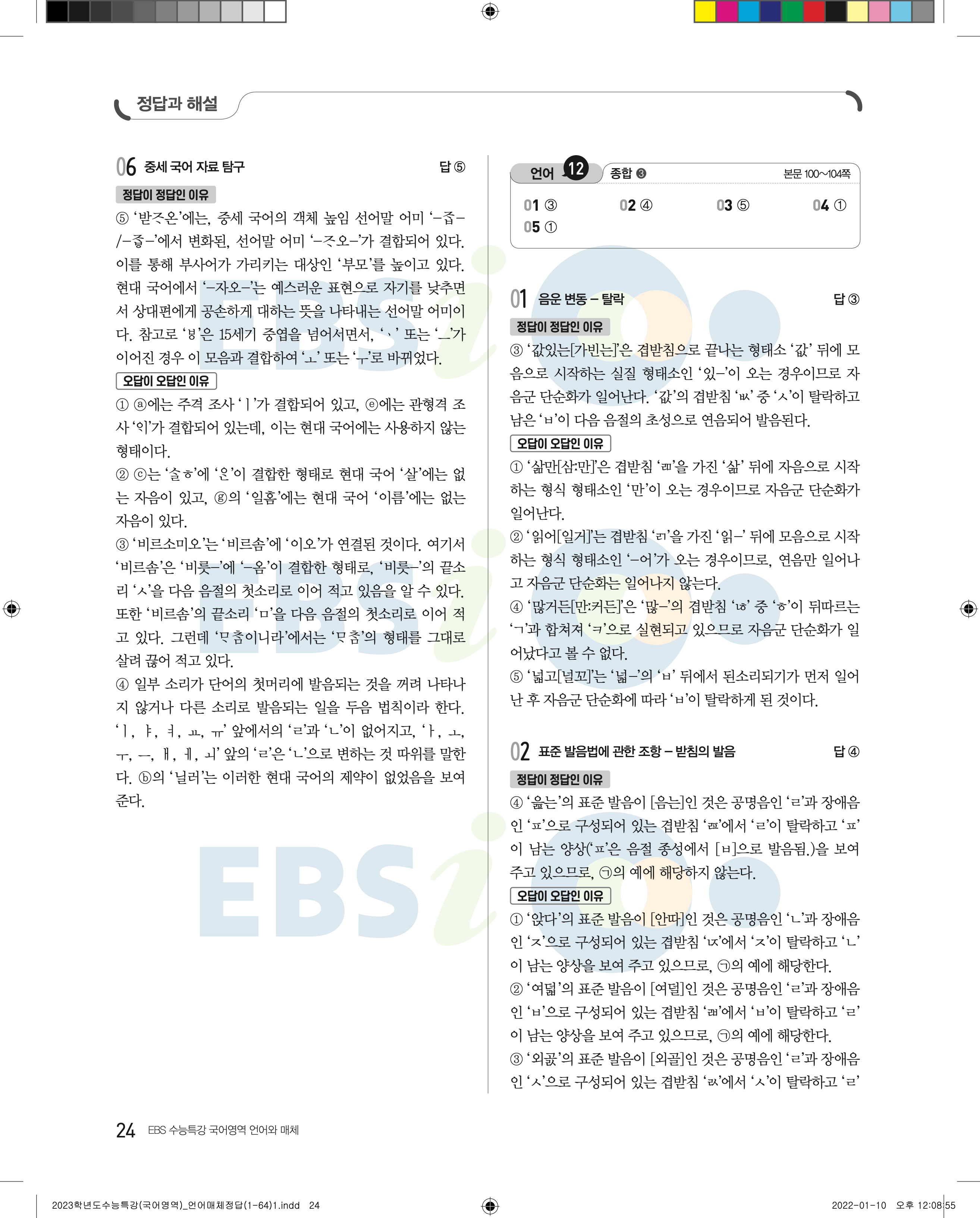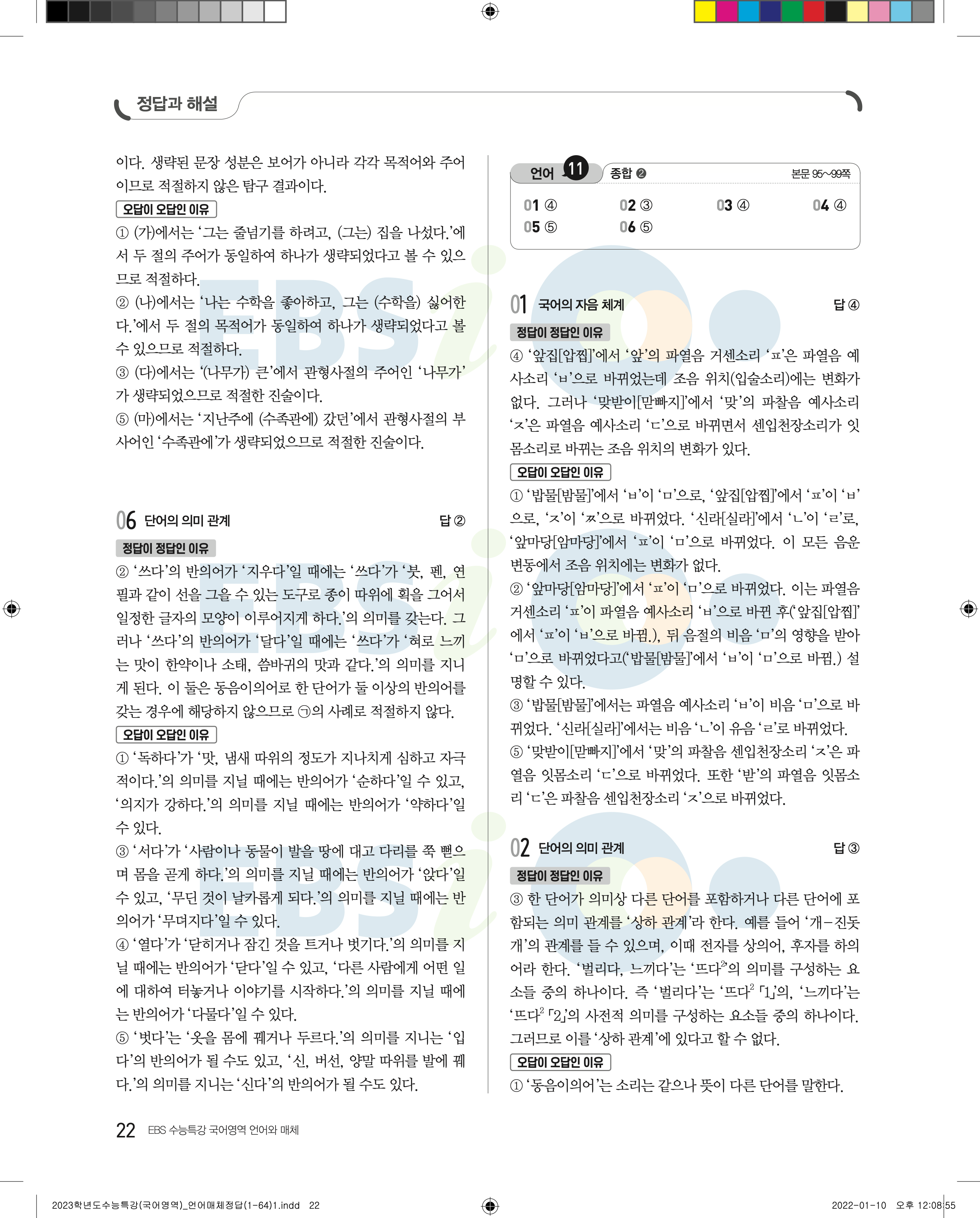 2023 수능특강 언어와매체 답지 수특언매답지 바로보는 사진답지 모바일최적화