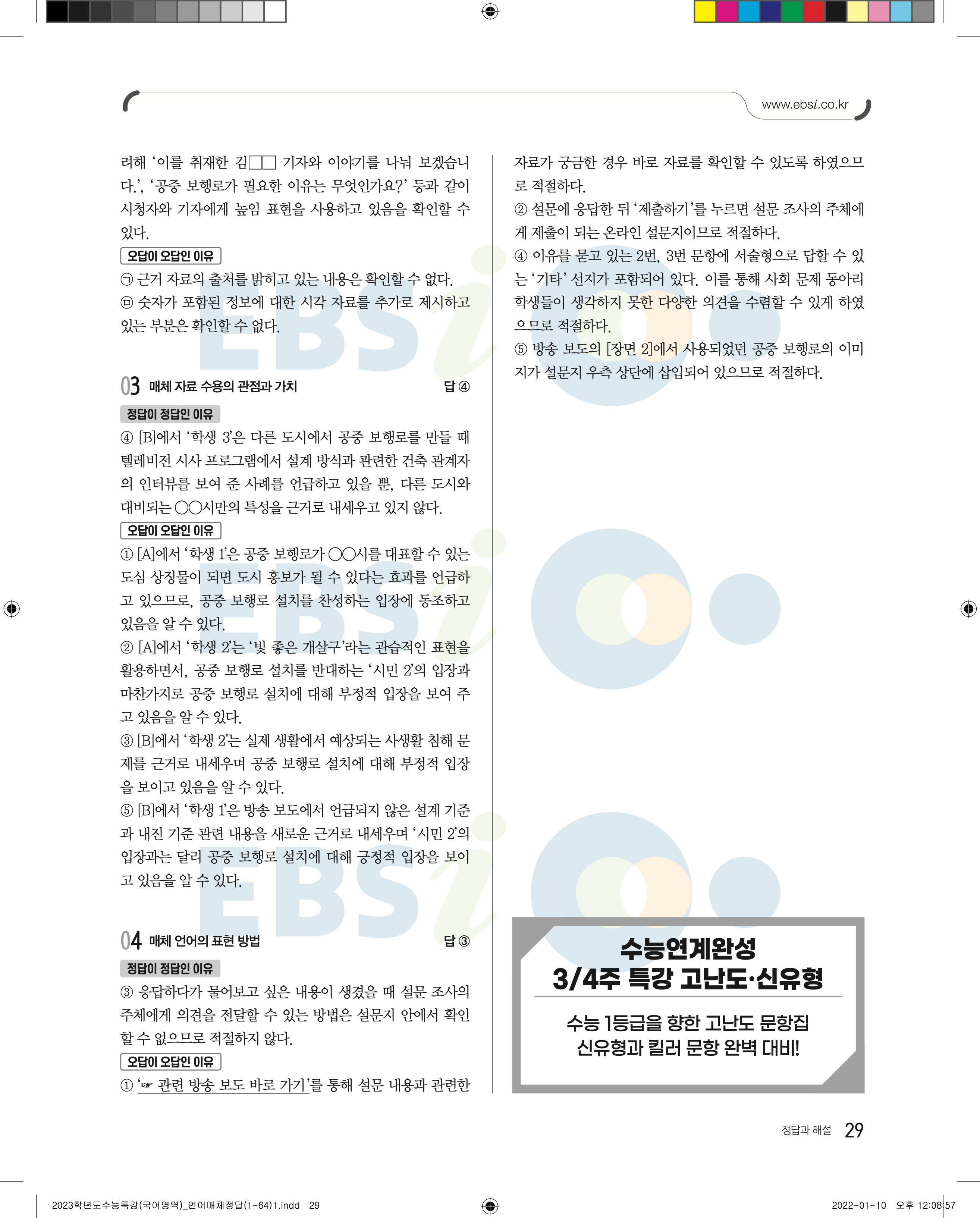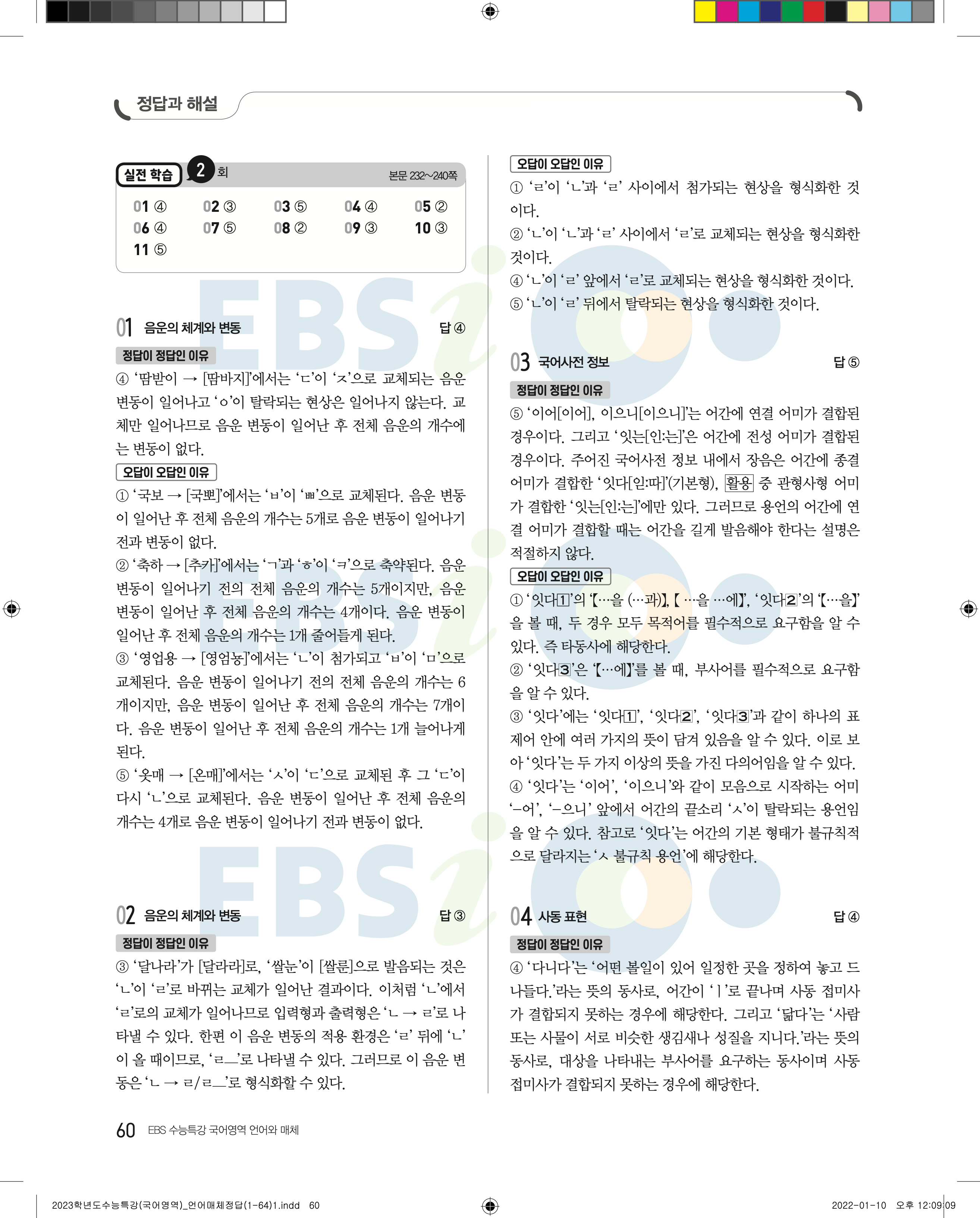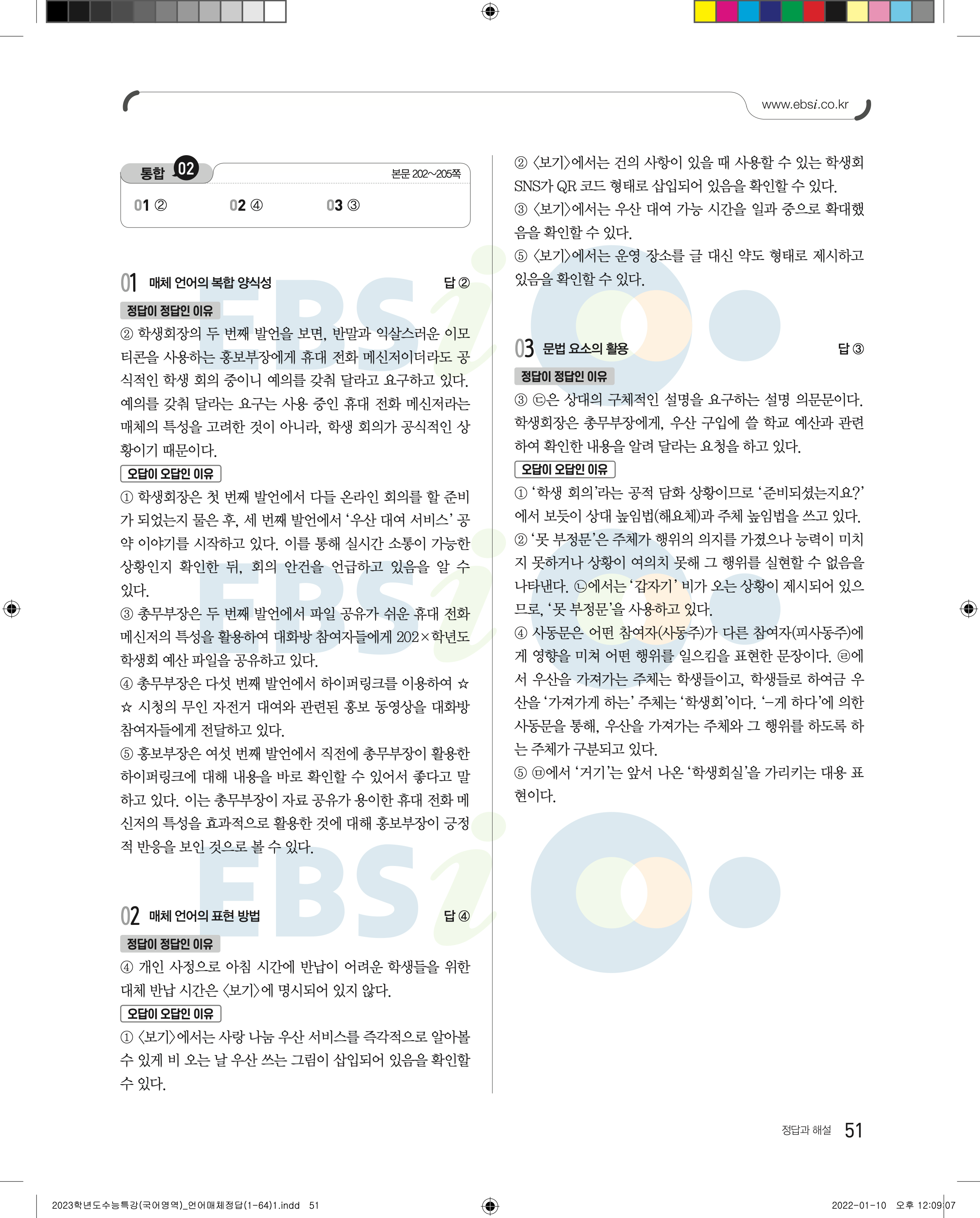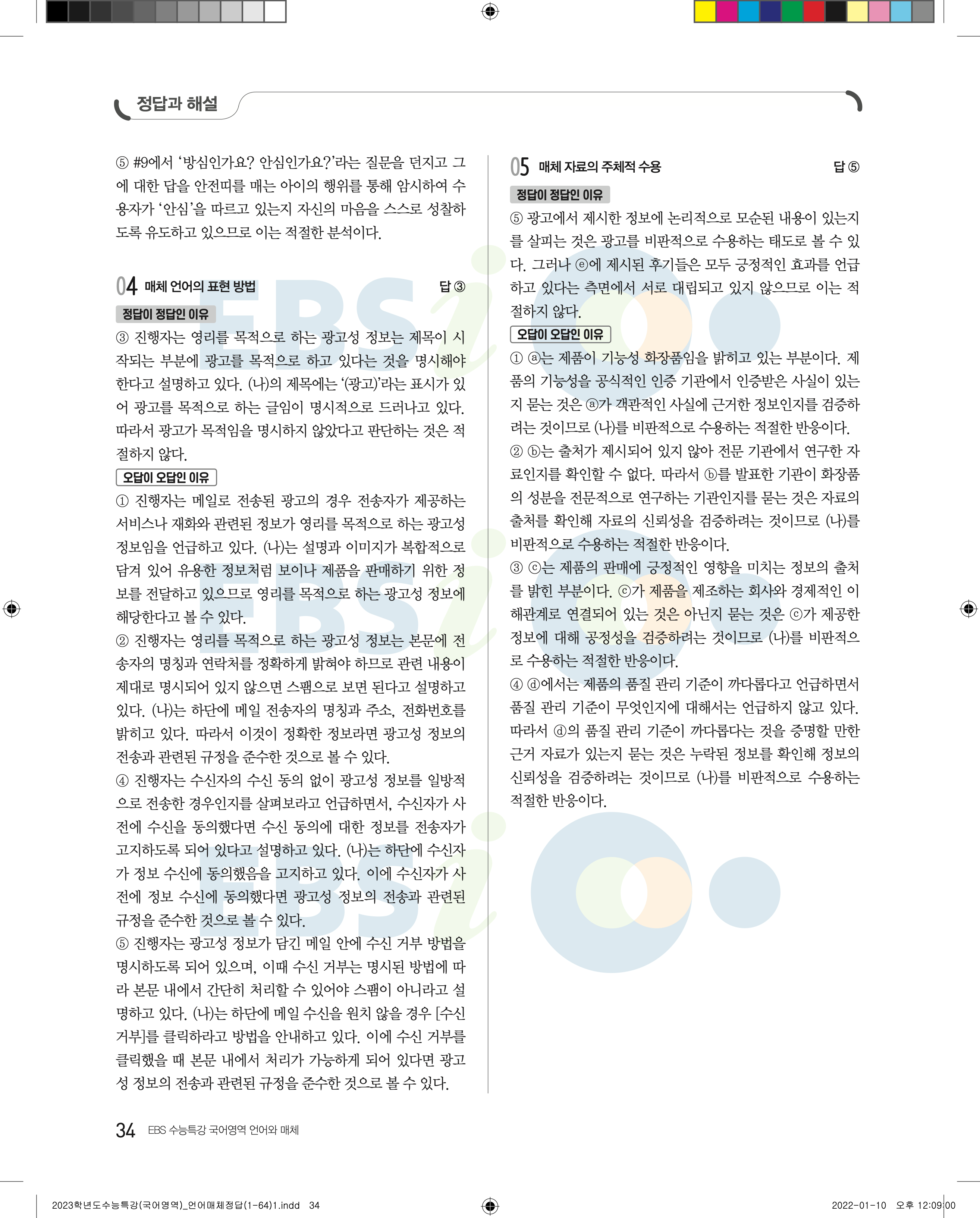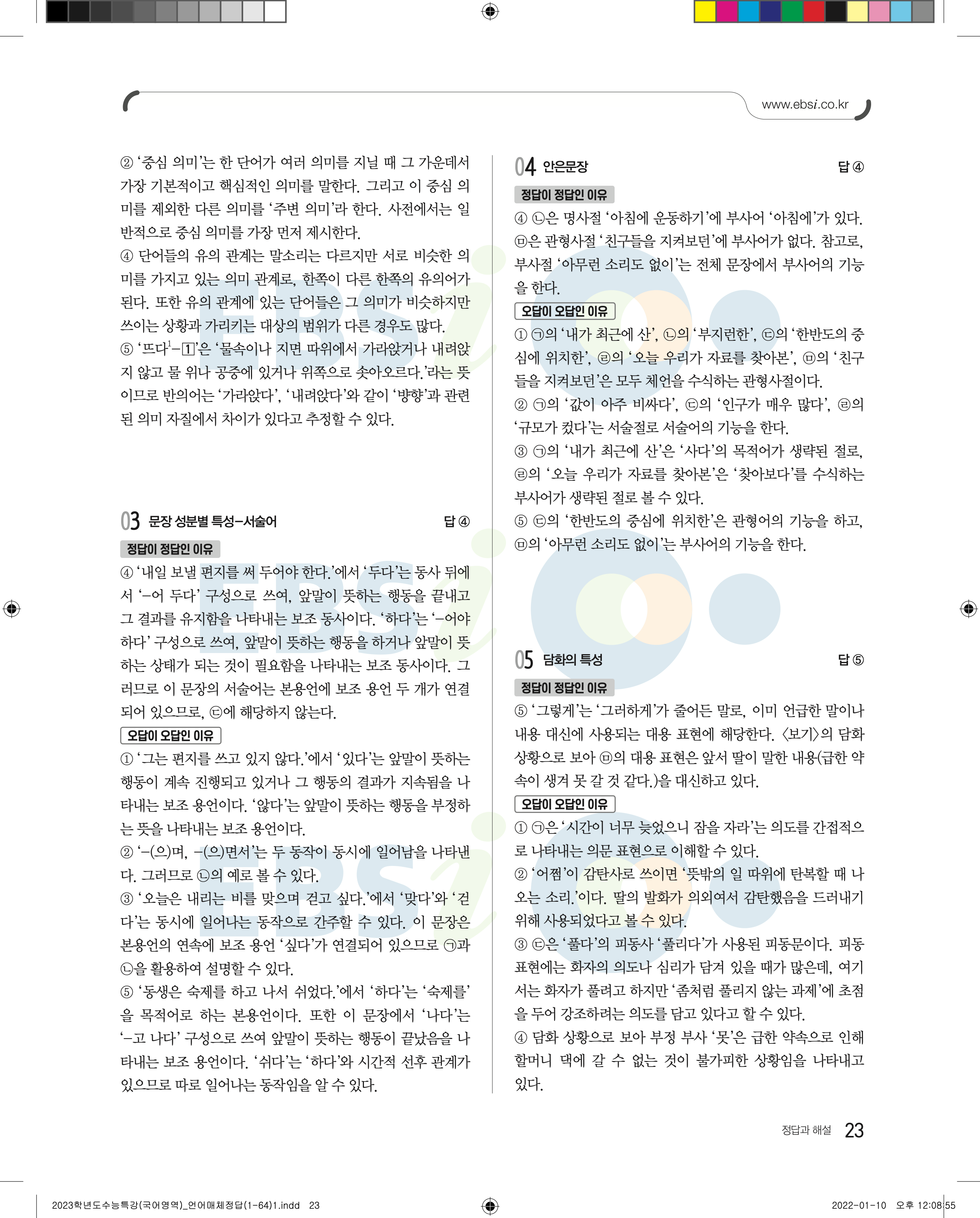 2023 수능특강 언어와매체 답지 수특언매답지 바로보는 사진답지 모바일최적화