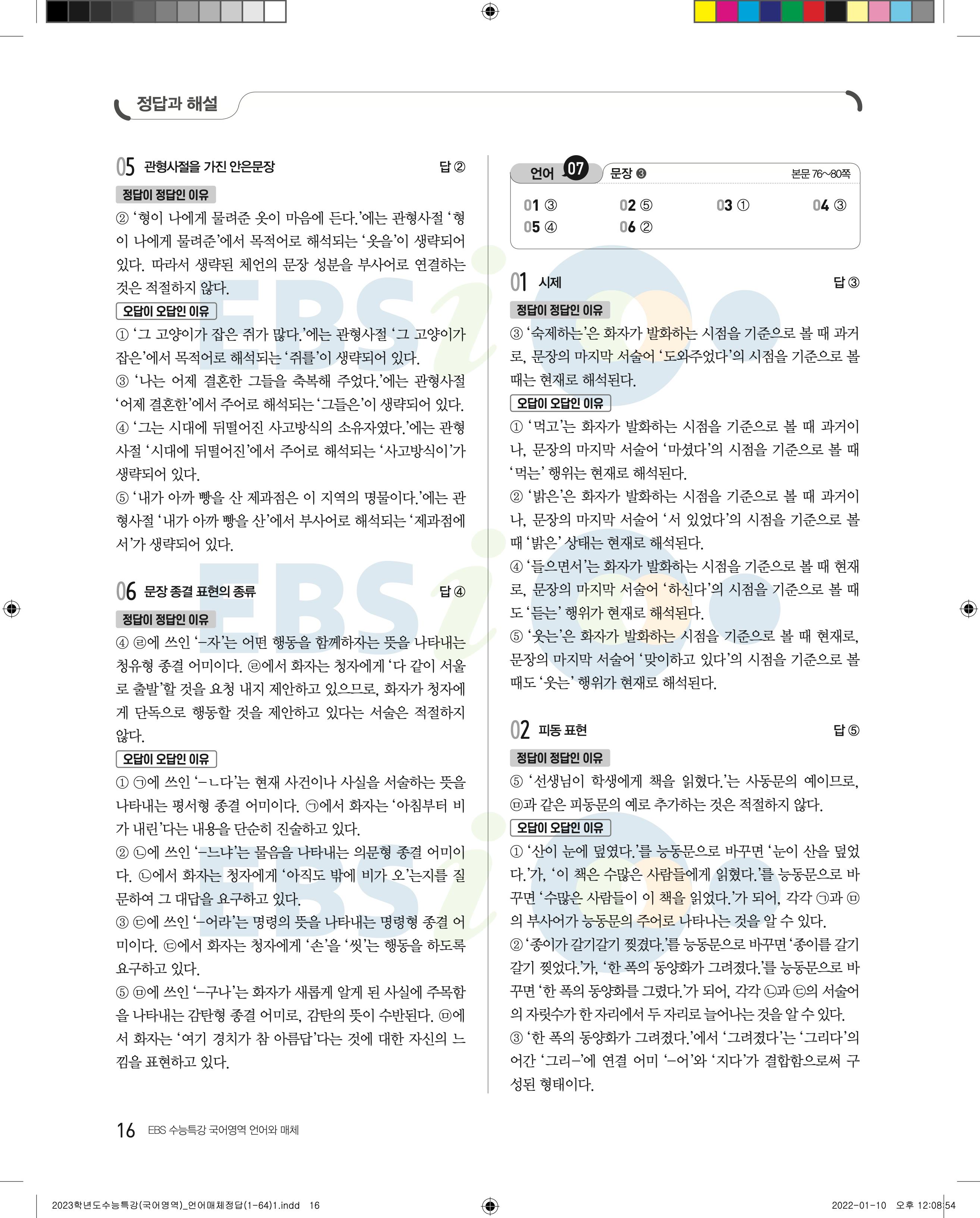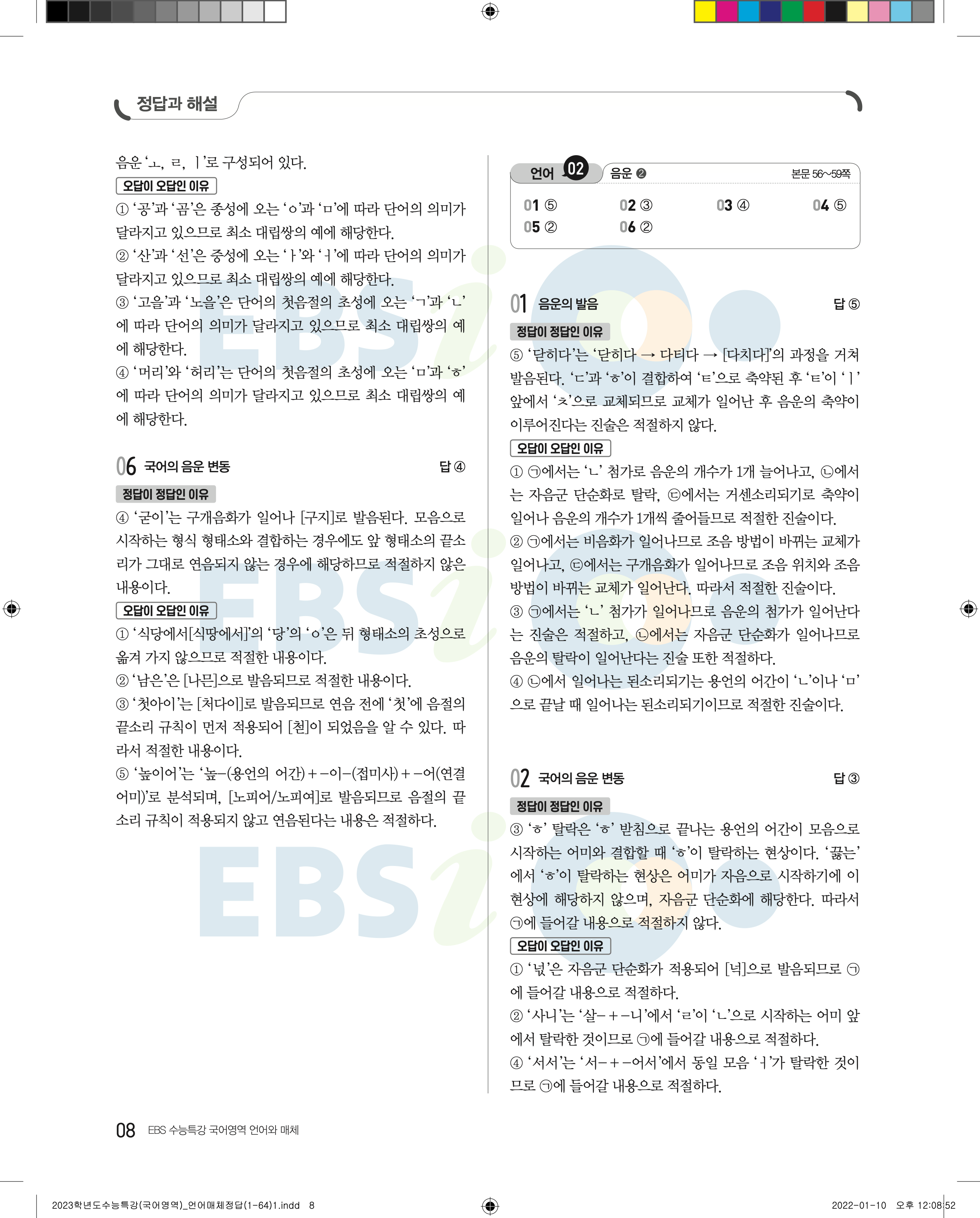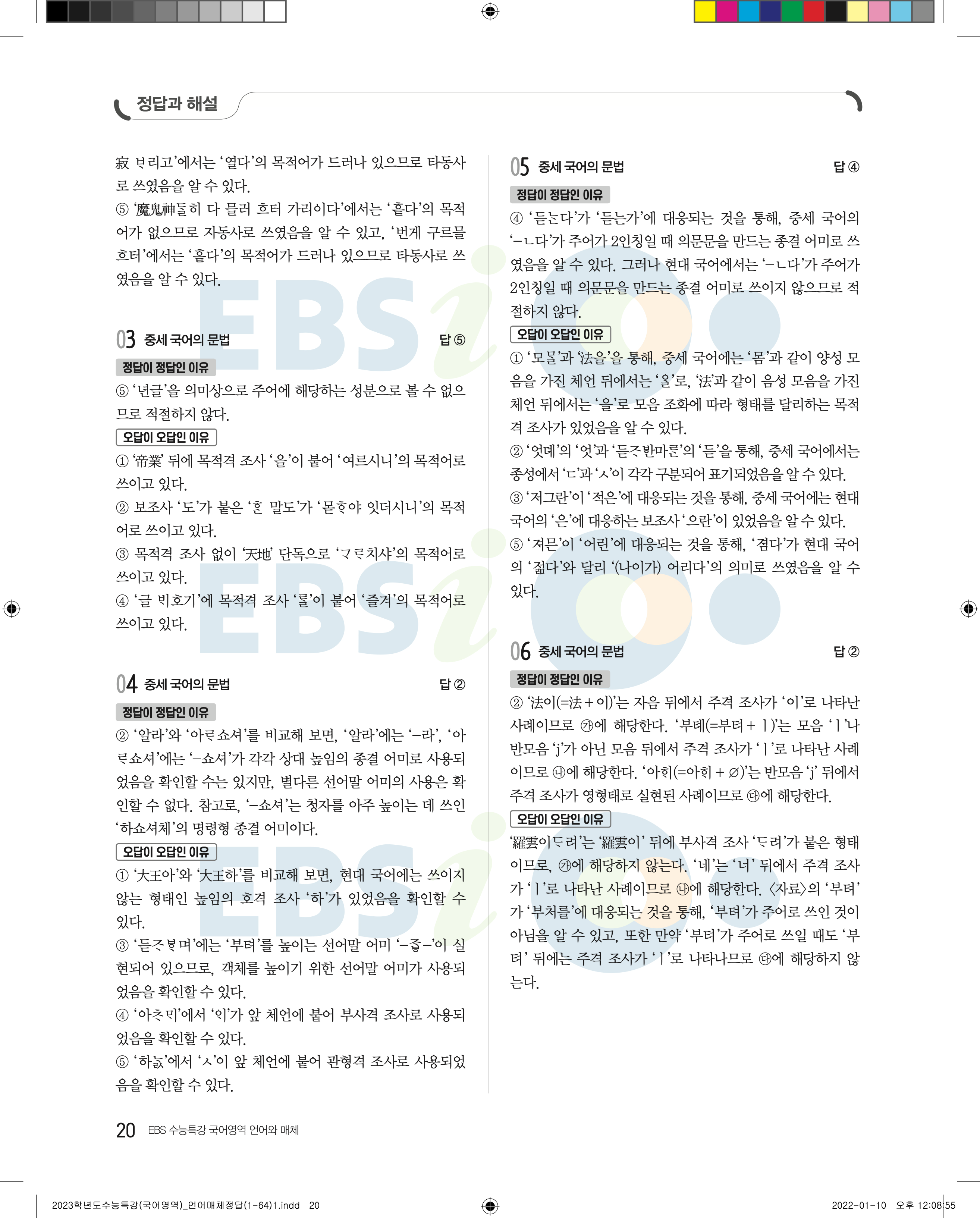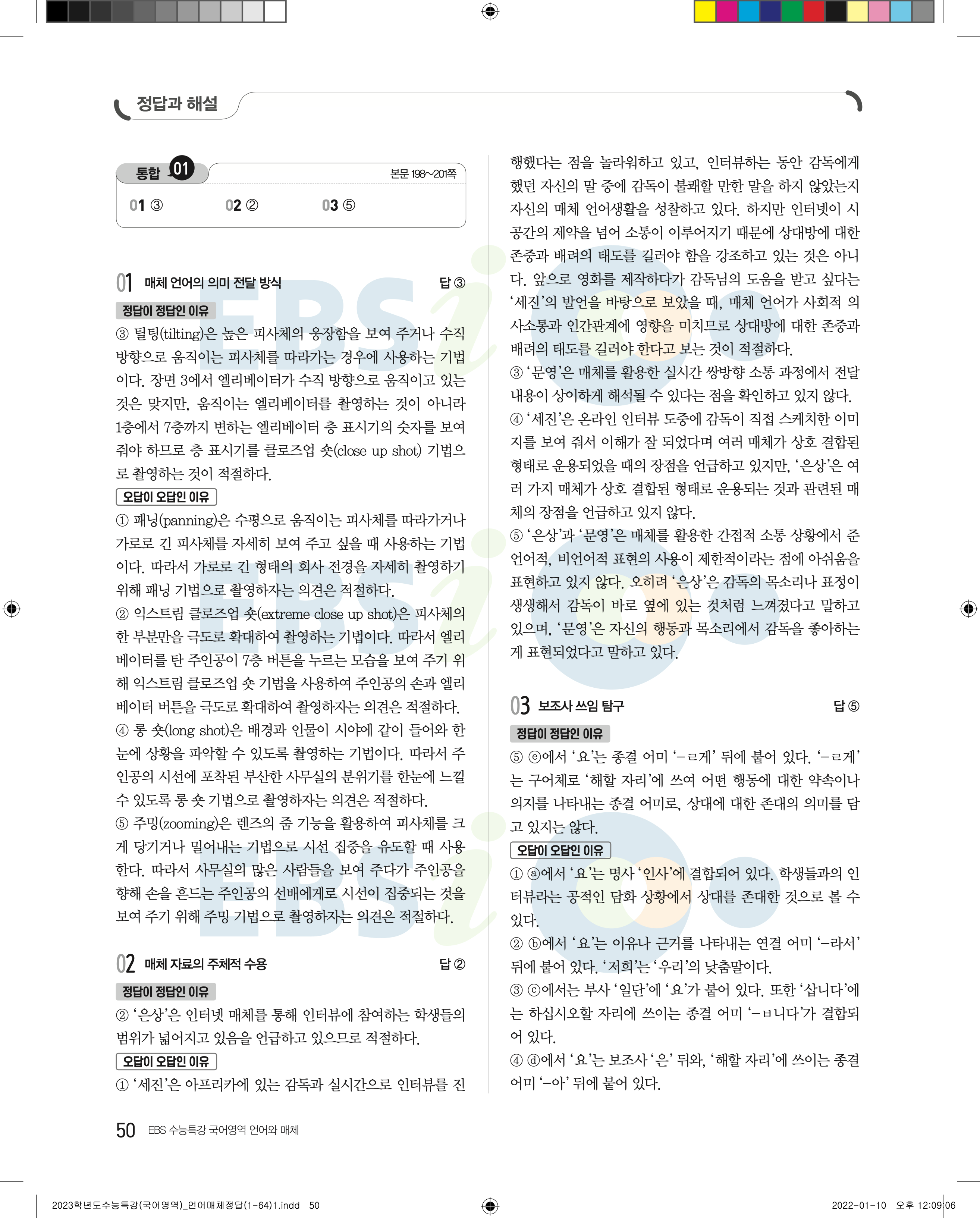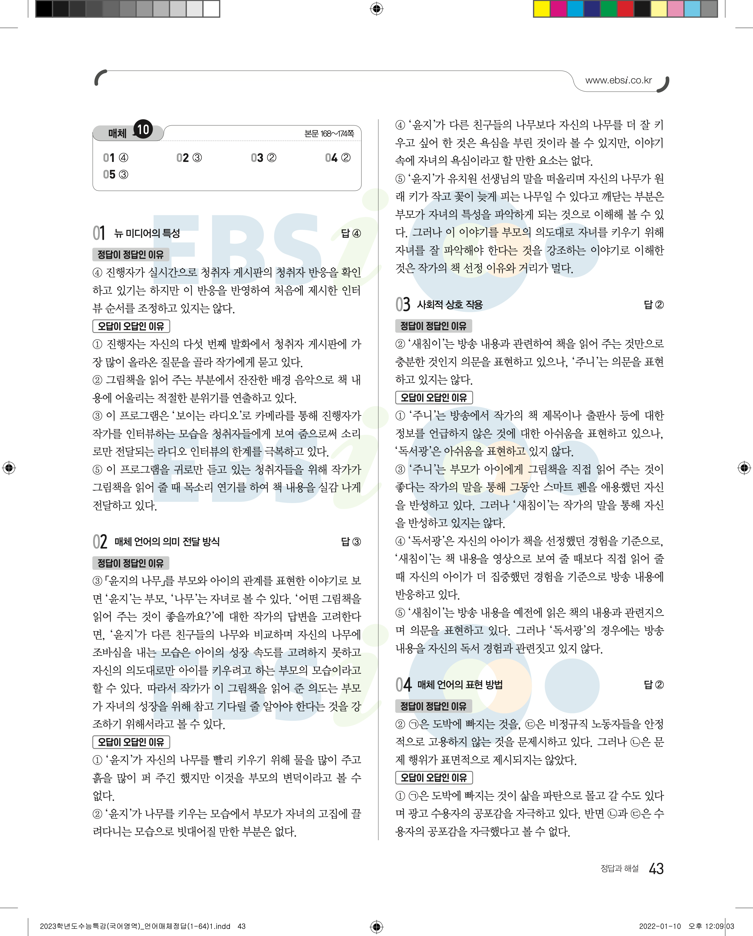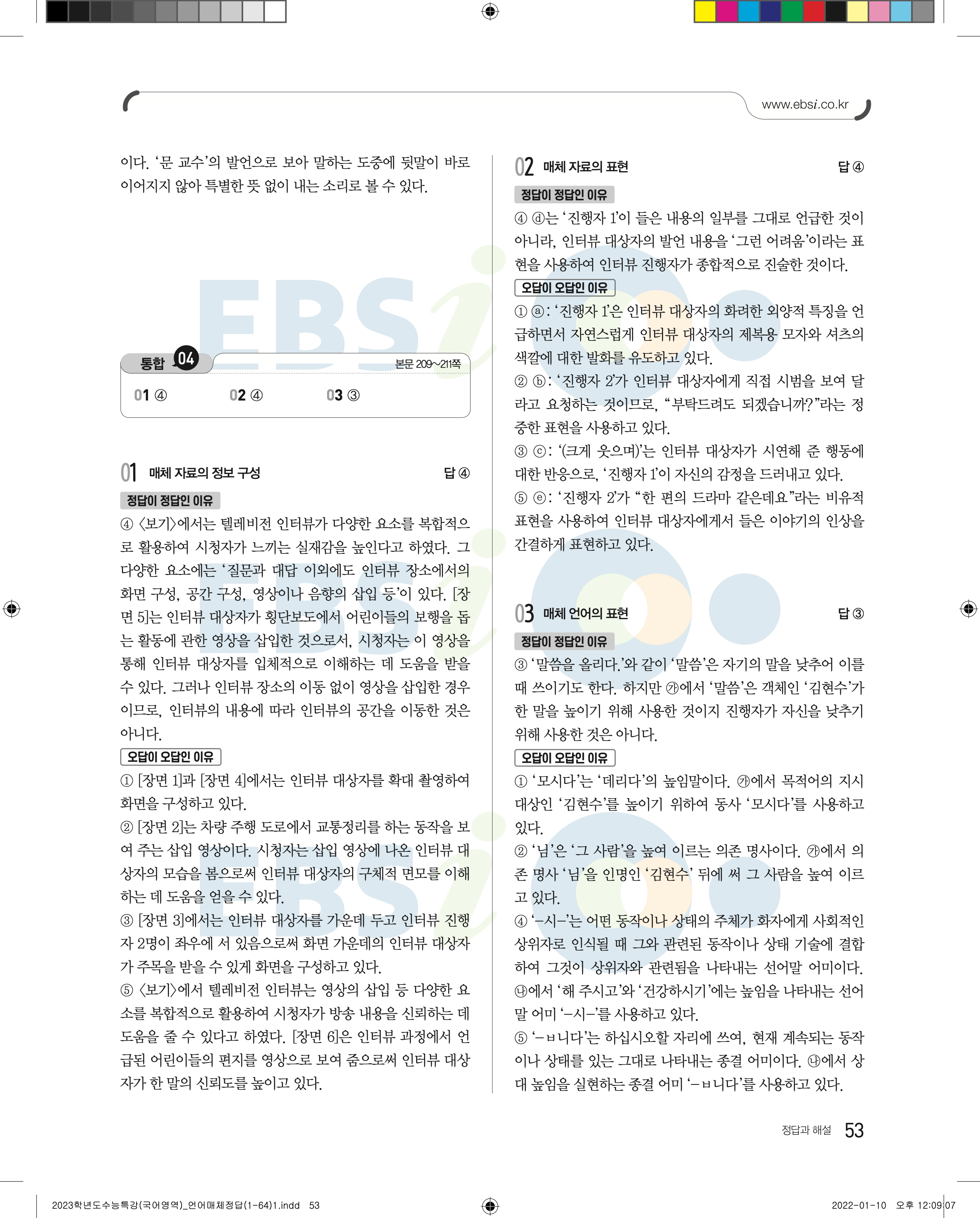 2023 수능특강 언어와매체 답지 수특언매답지 바로보는 사진답지 모바일최적화