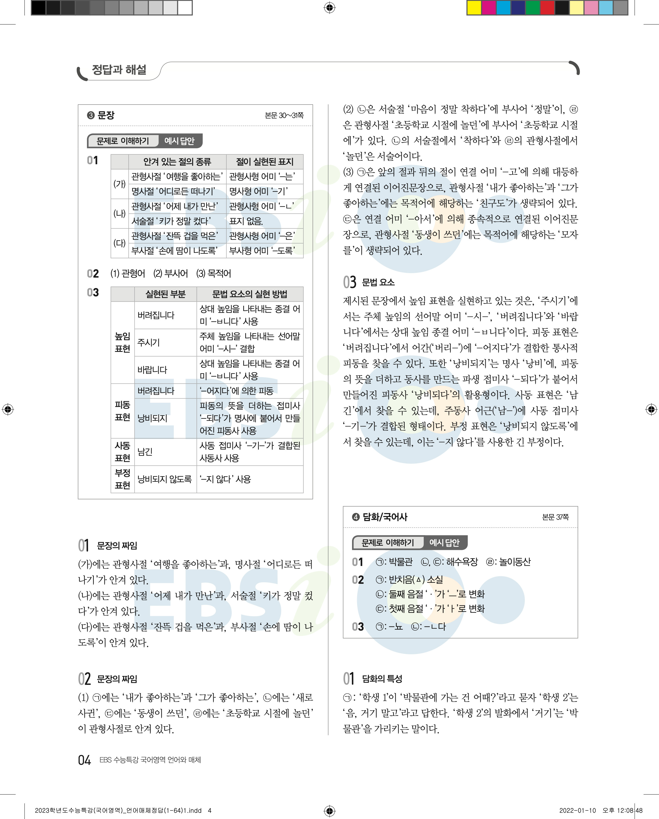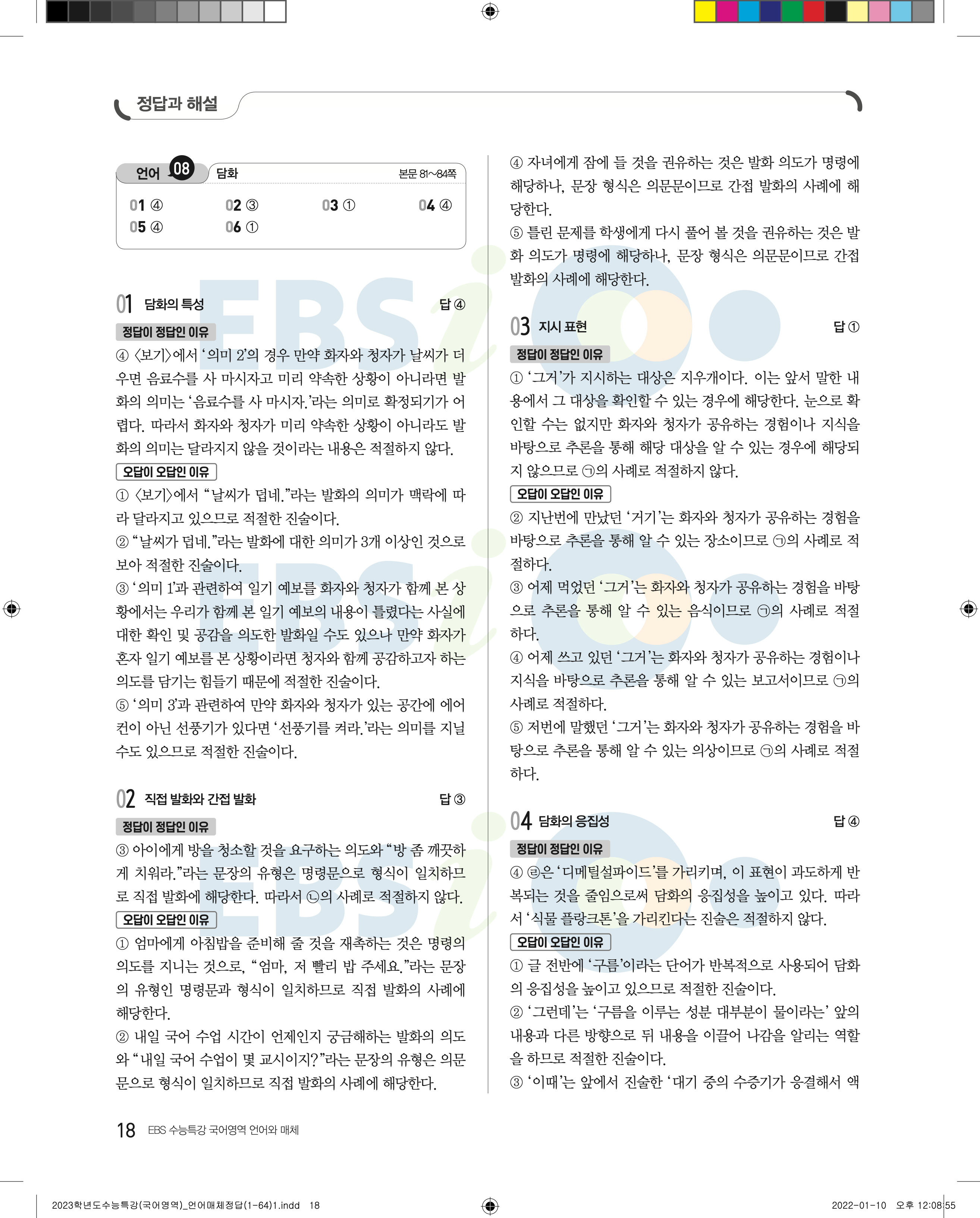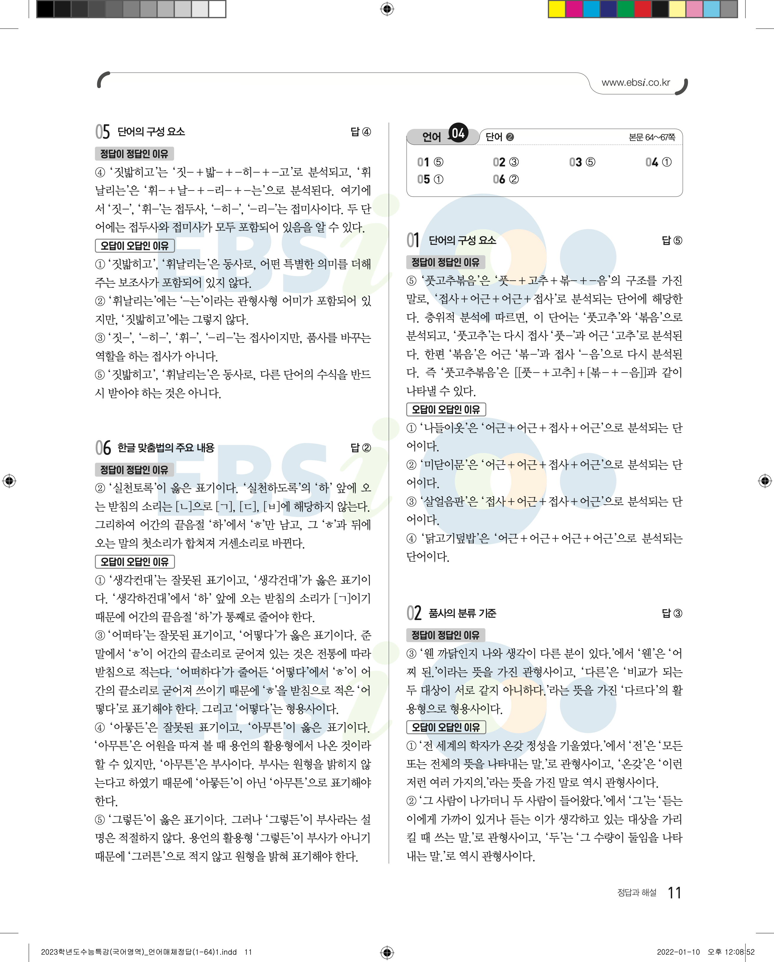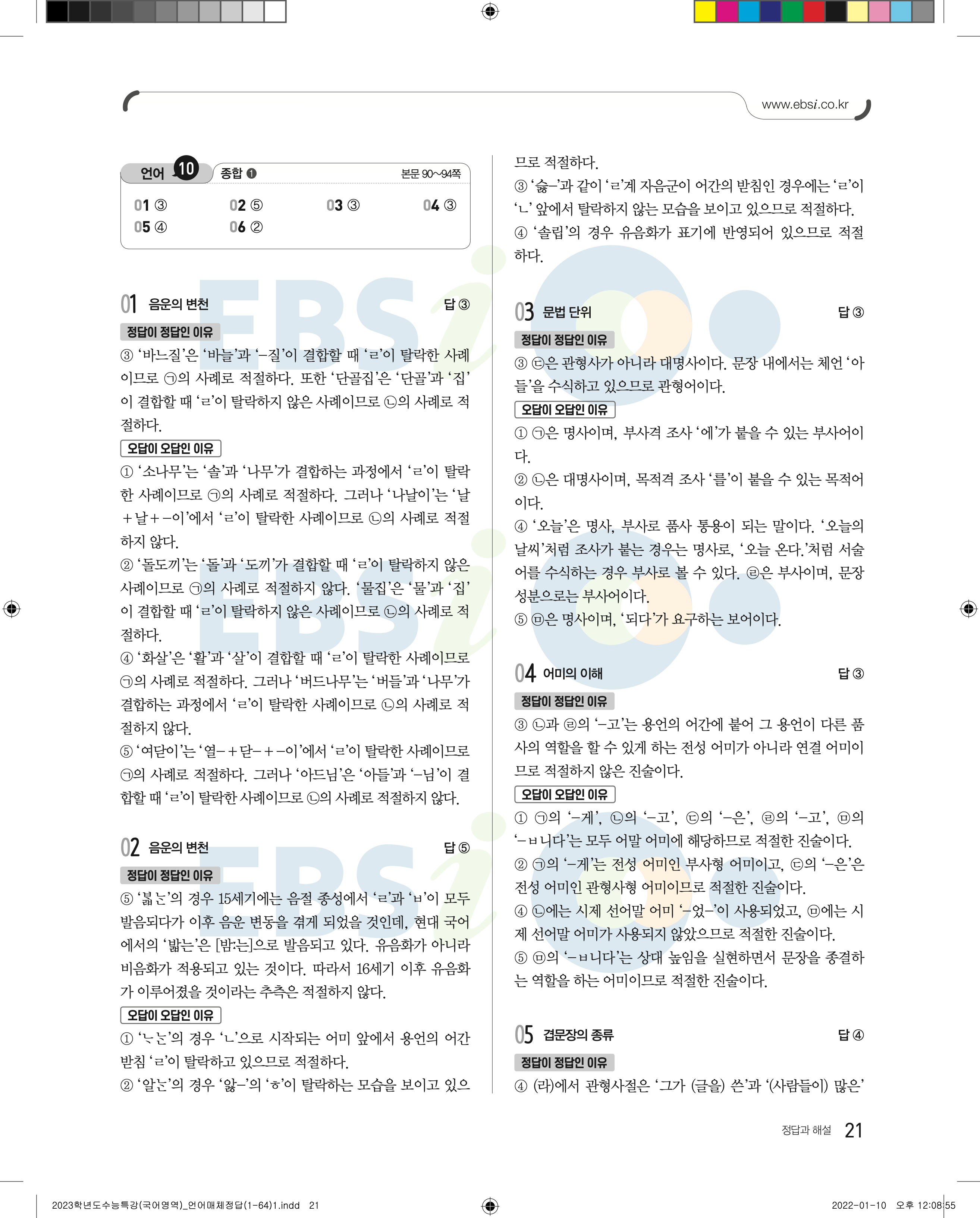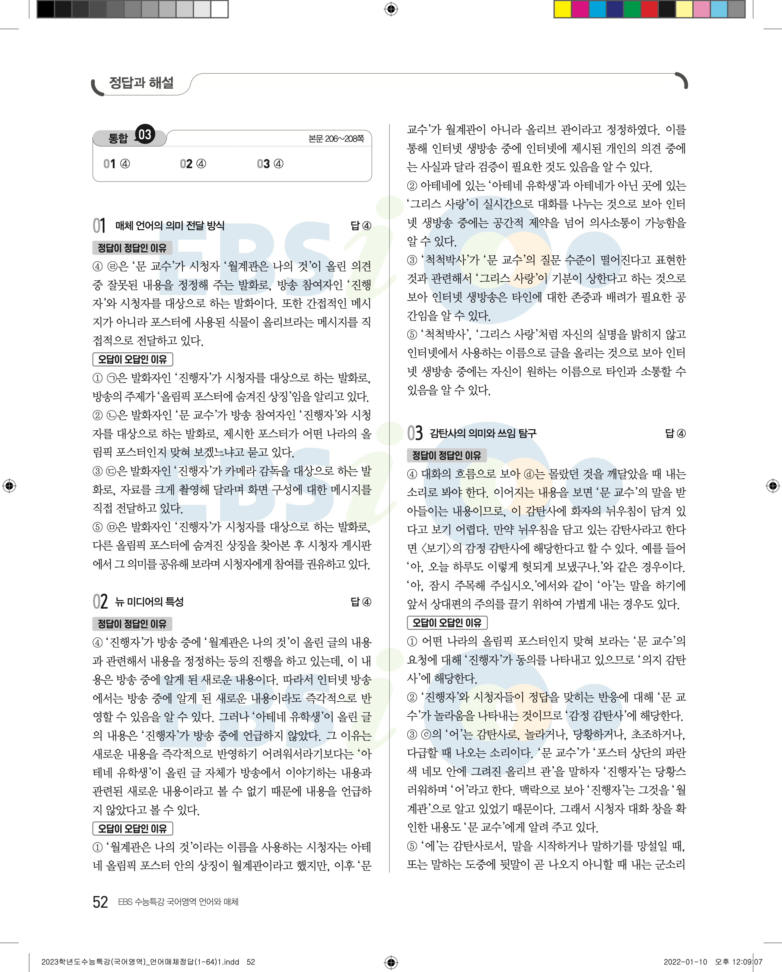 2023 수능특강 언어와매체 답지 수특언매답지 바로보는 사진답지 모바일최적화