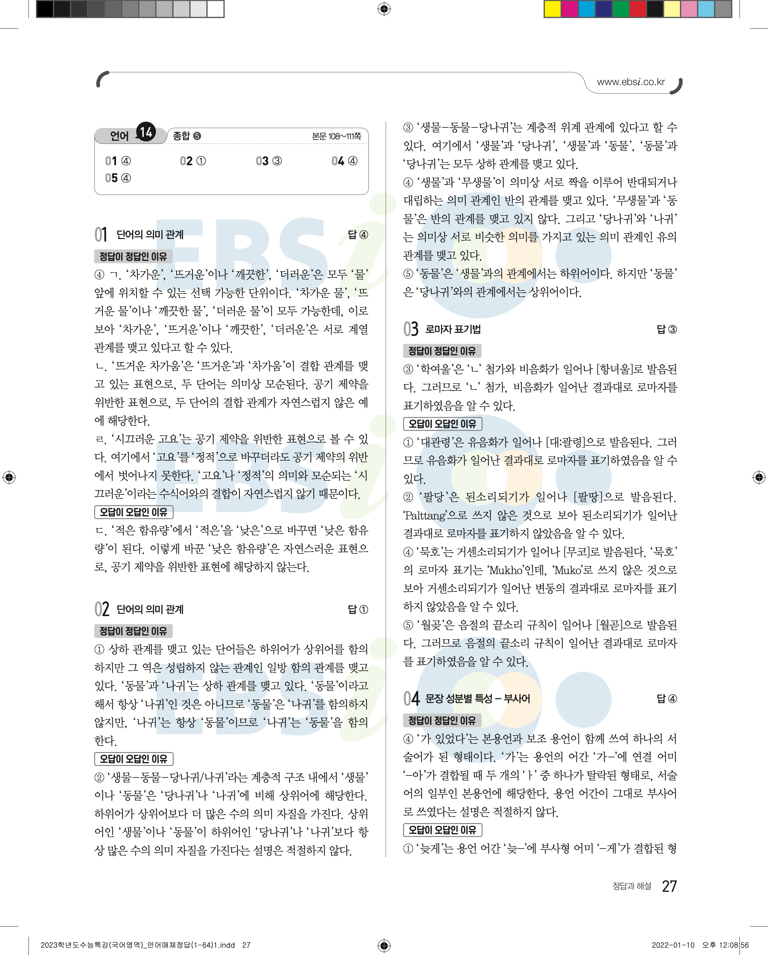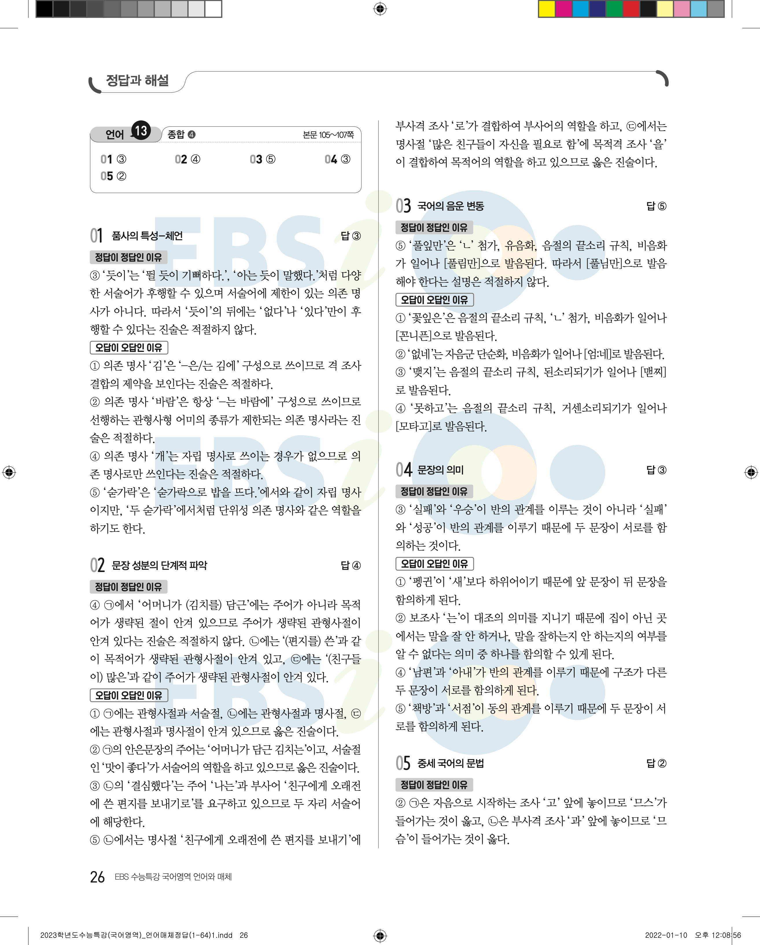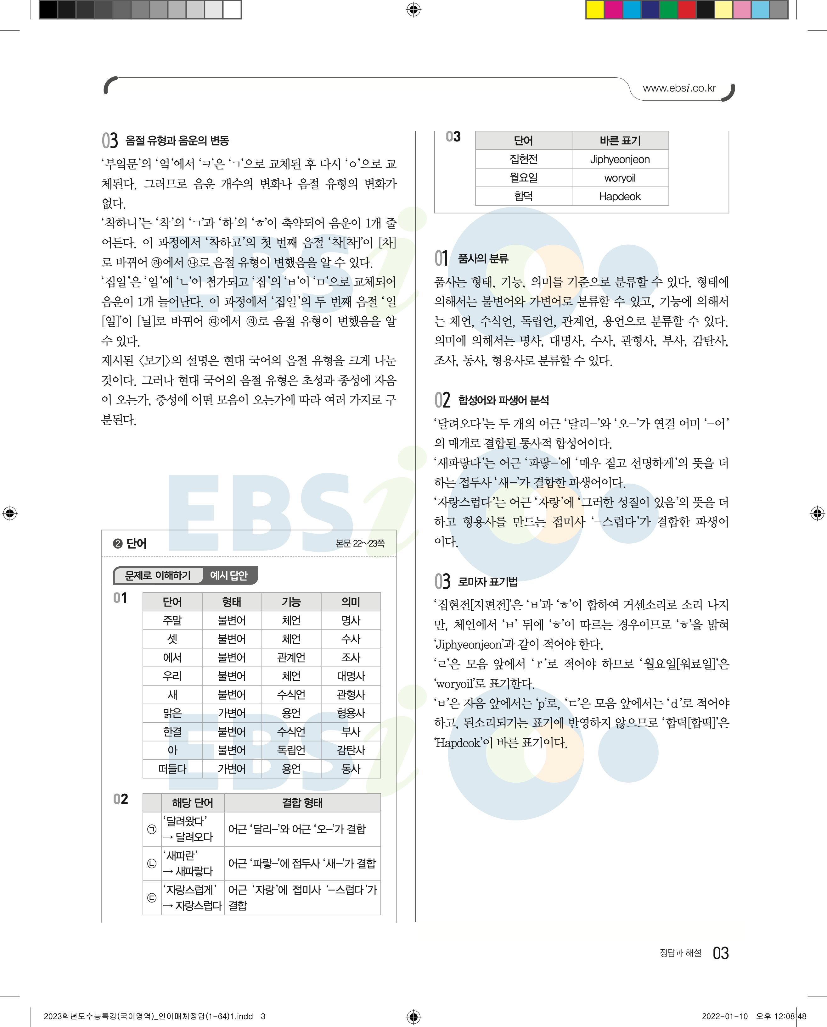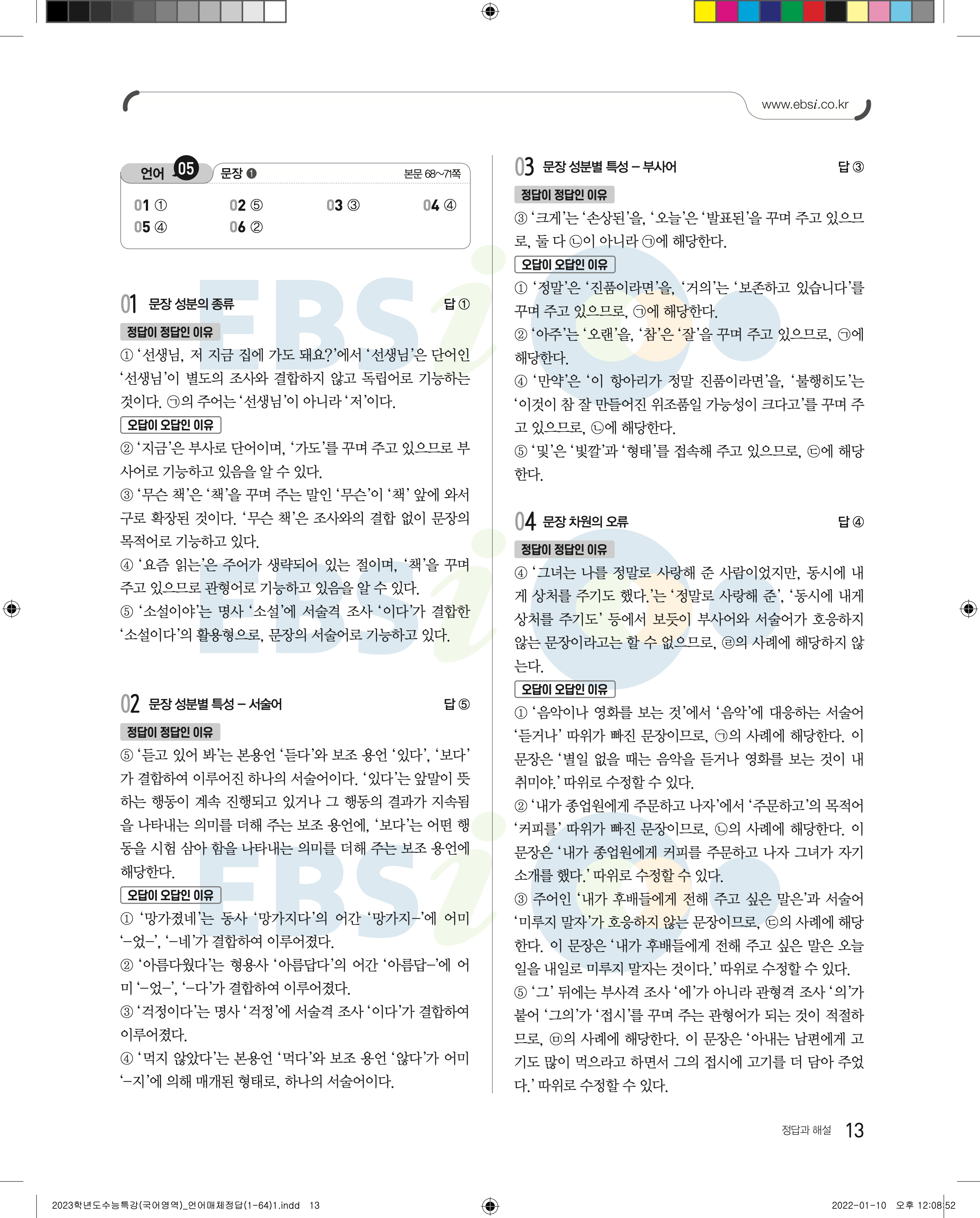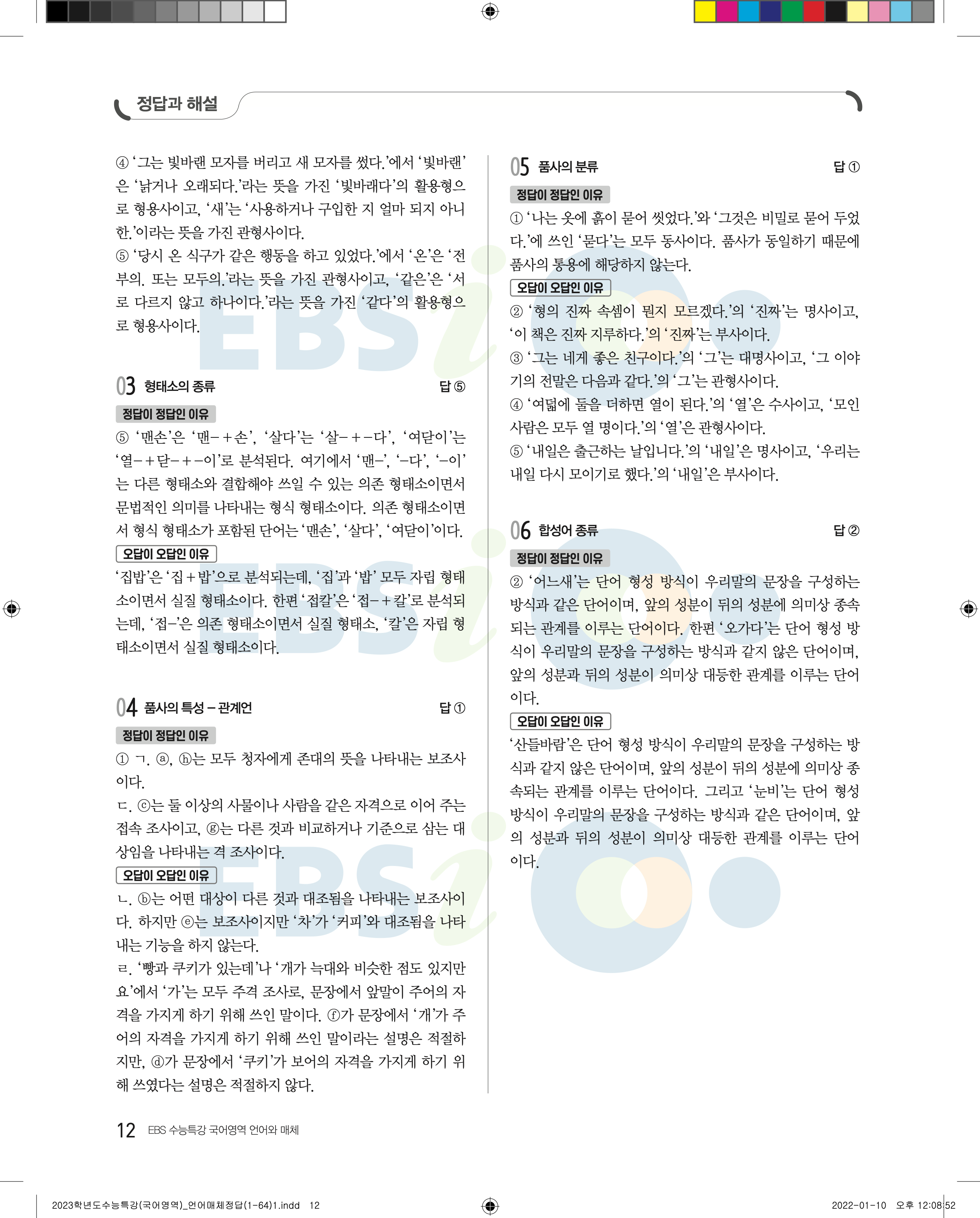 2023 수능특강 언어와매체 답지 수특언매답지 바로보는 사진답지 모바일최적화