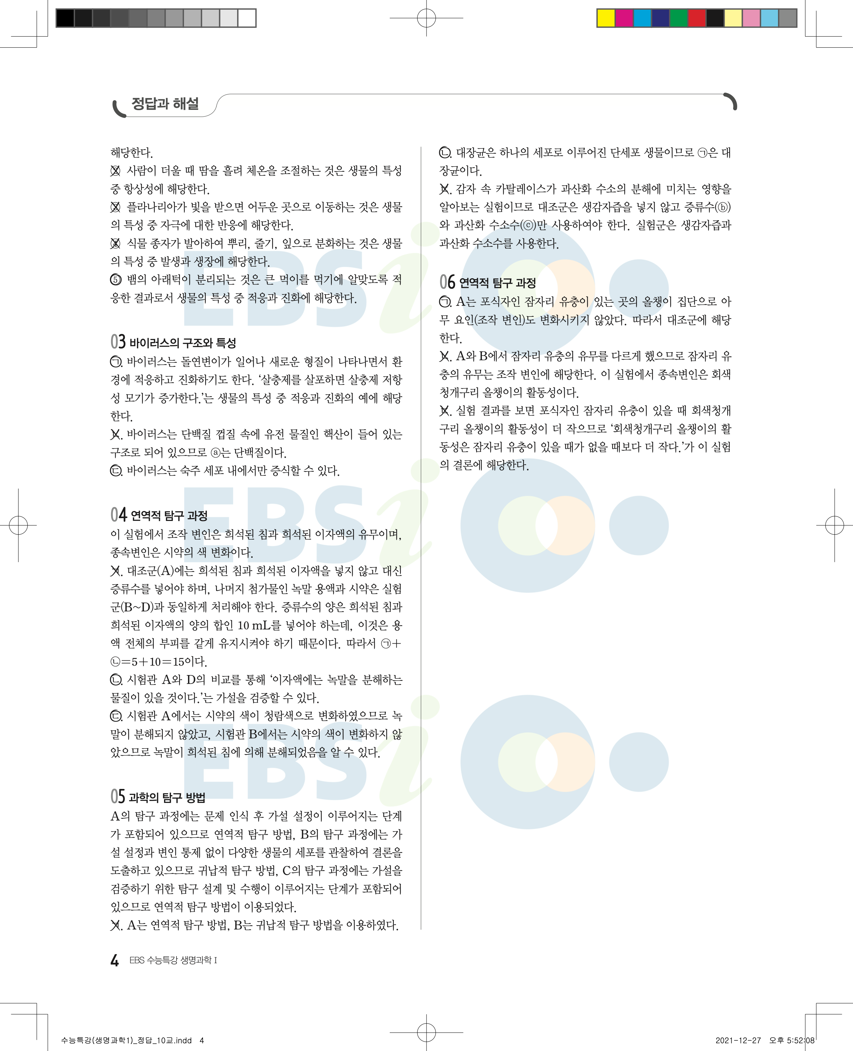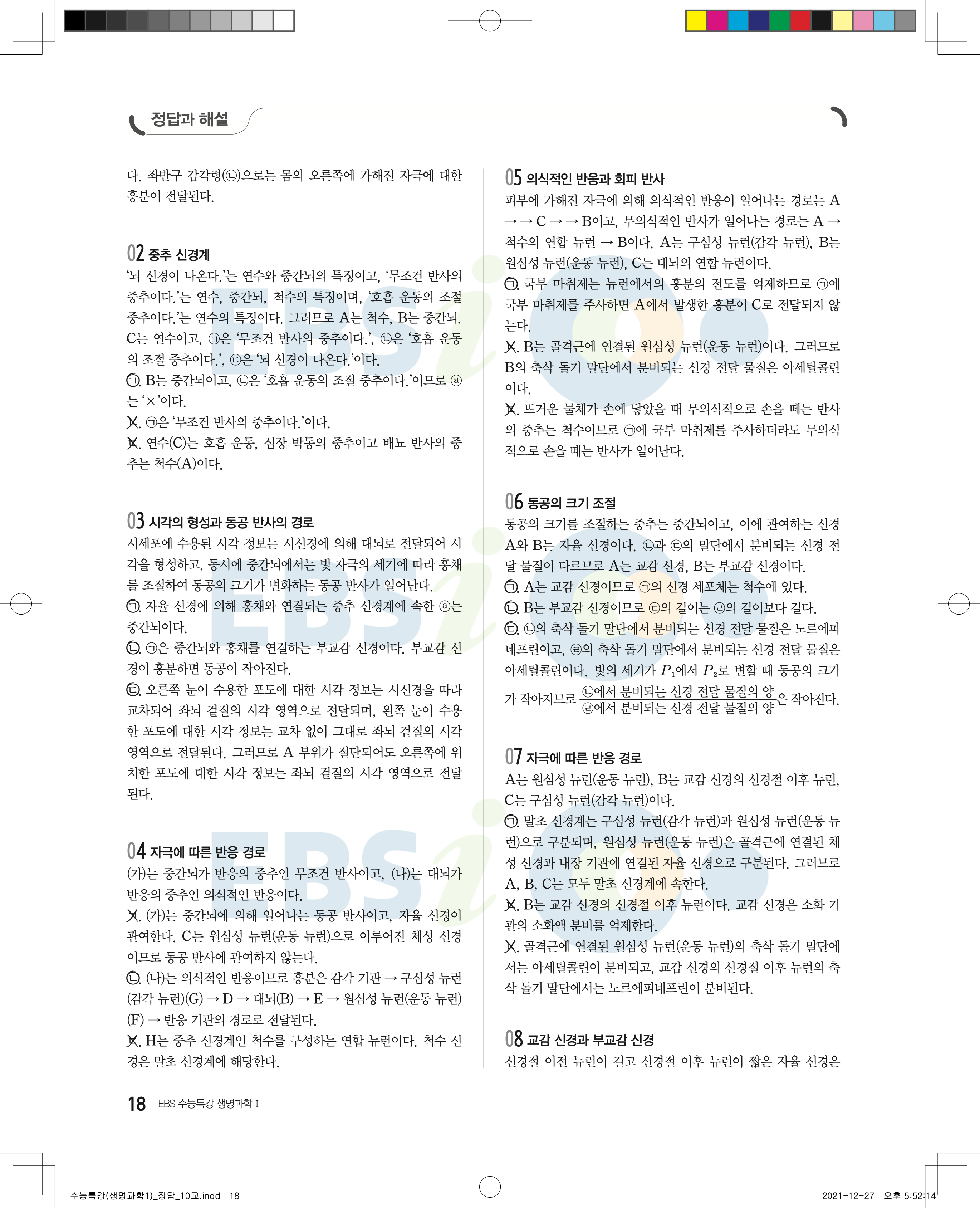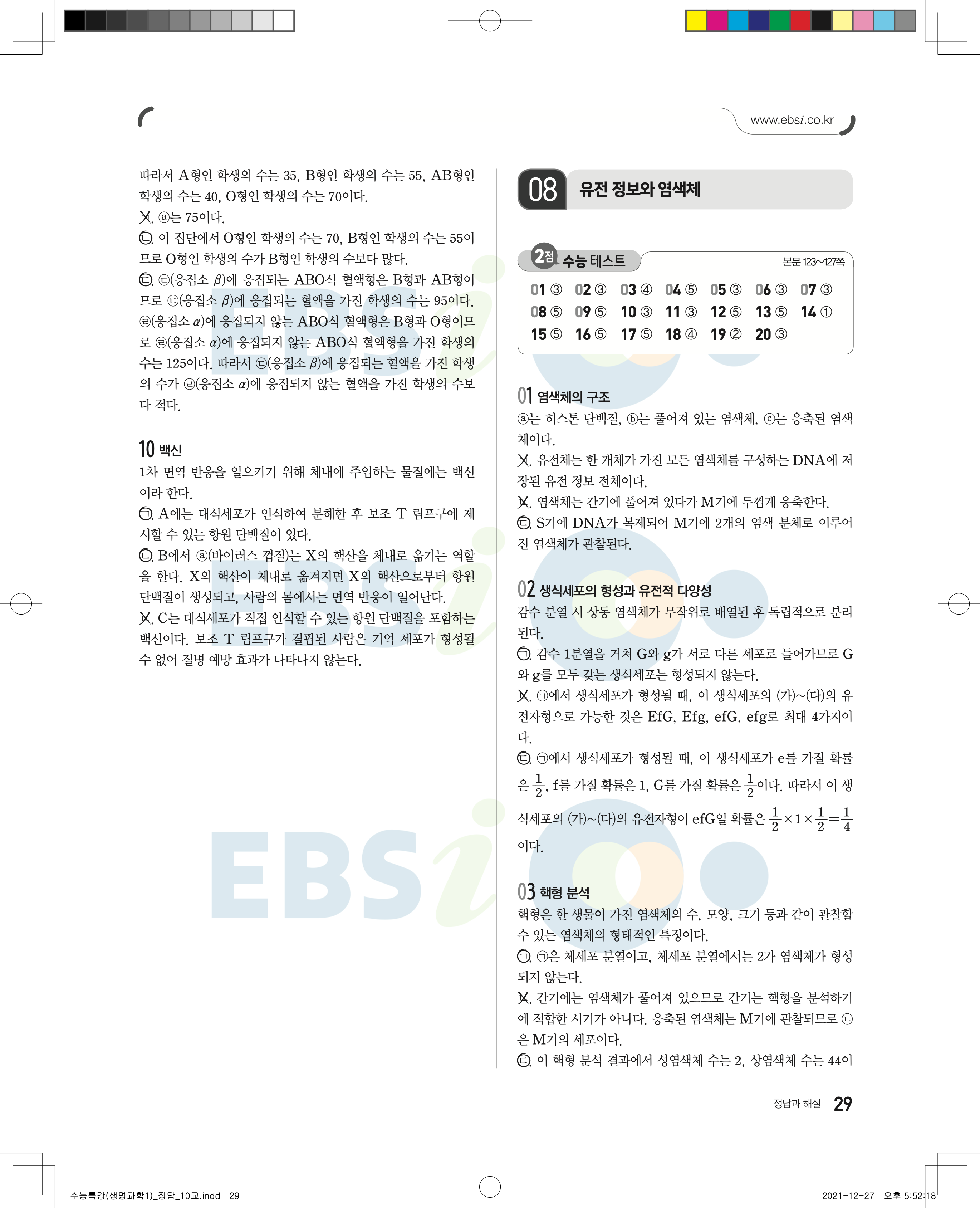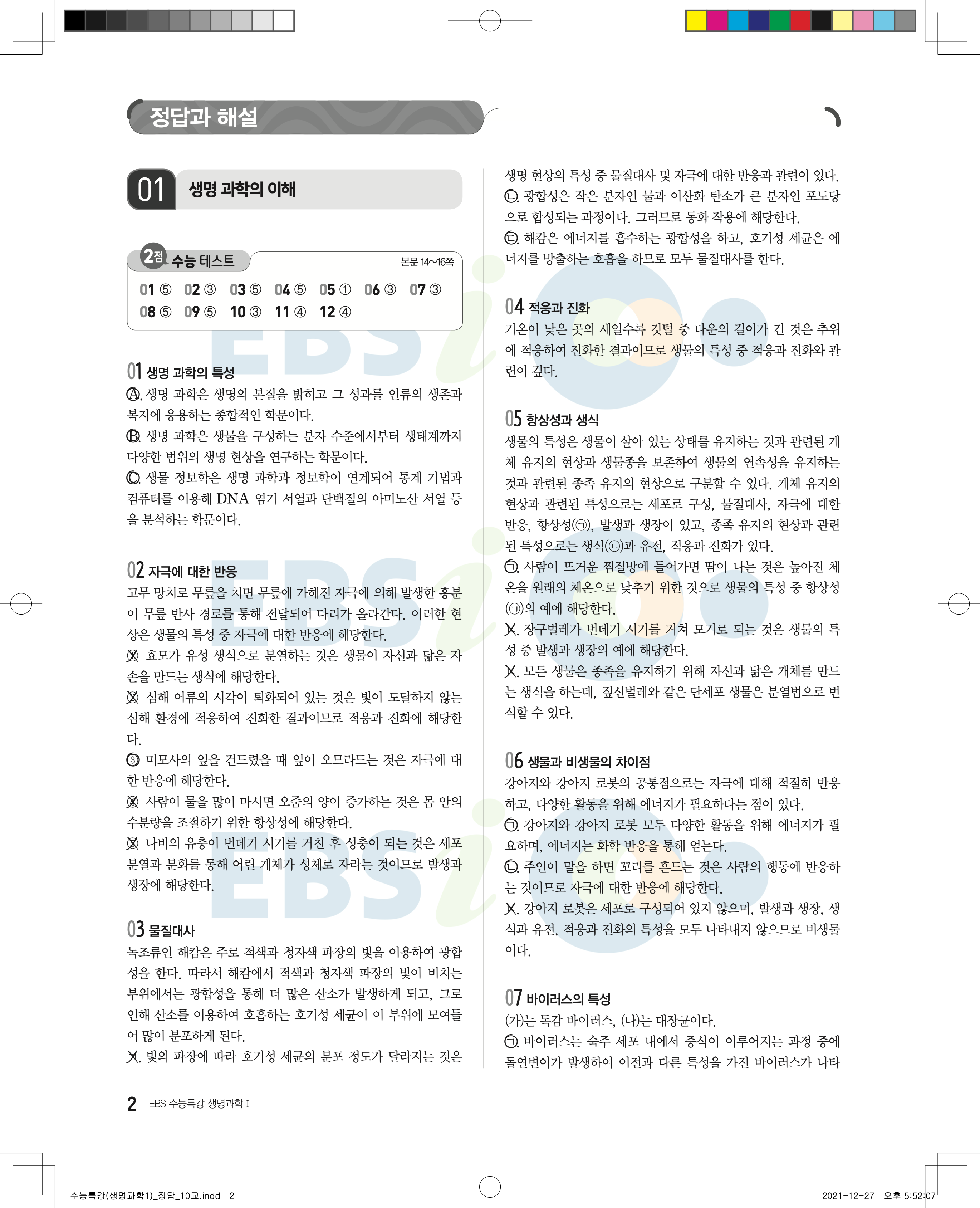 2023 수능특강 생명과학1 답지 수특생1답지 바로보는 사진답지 모바일최적화