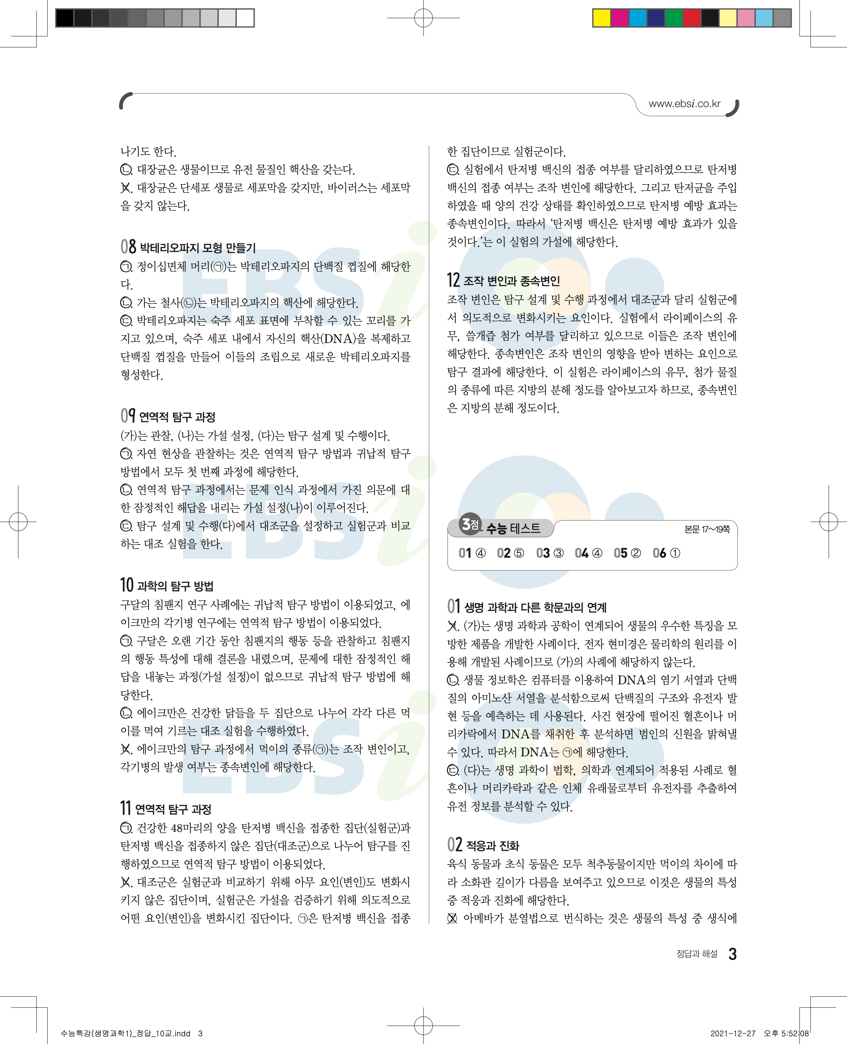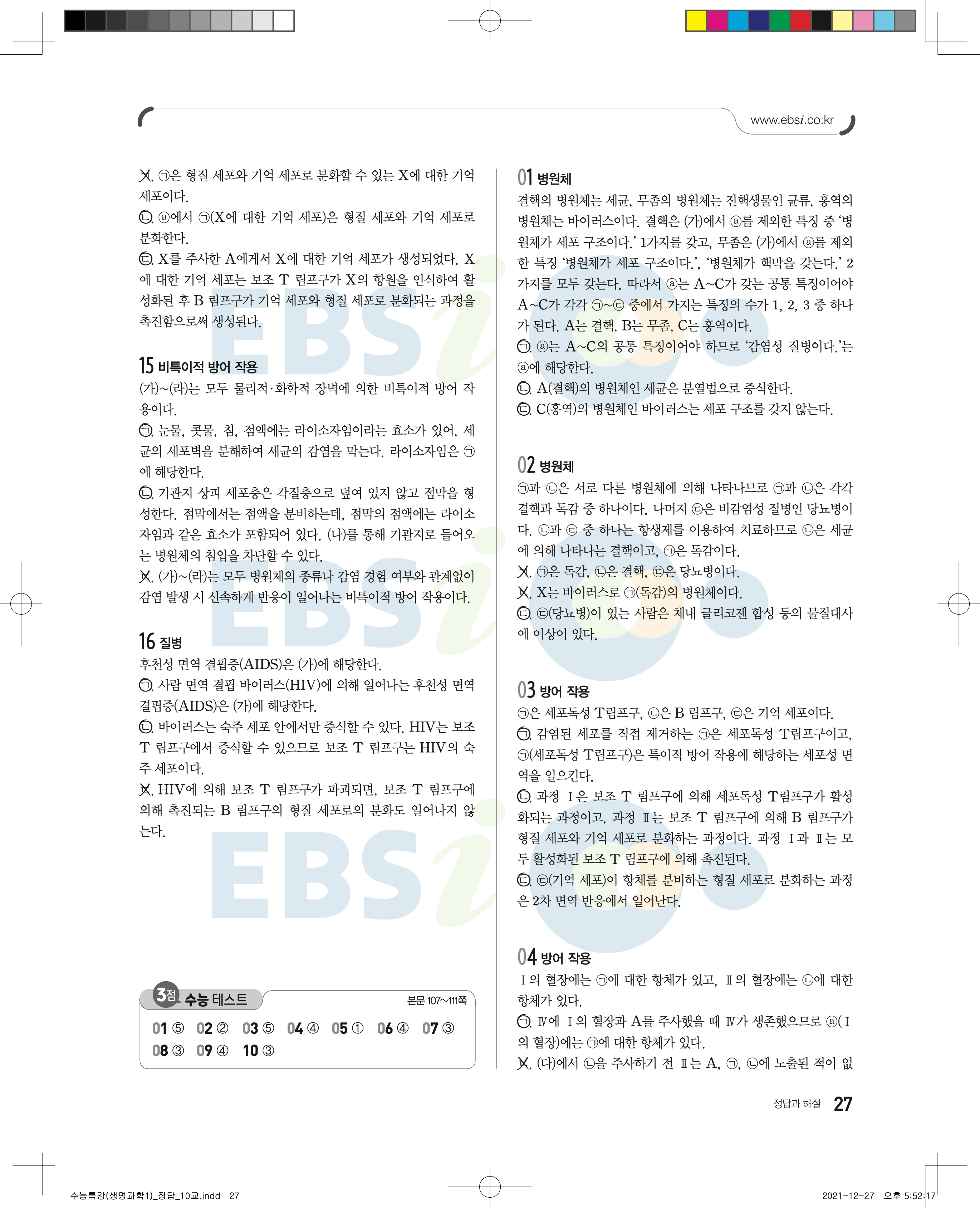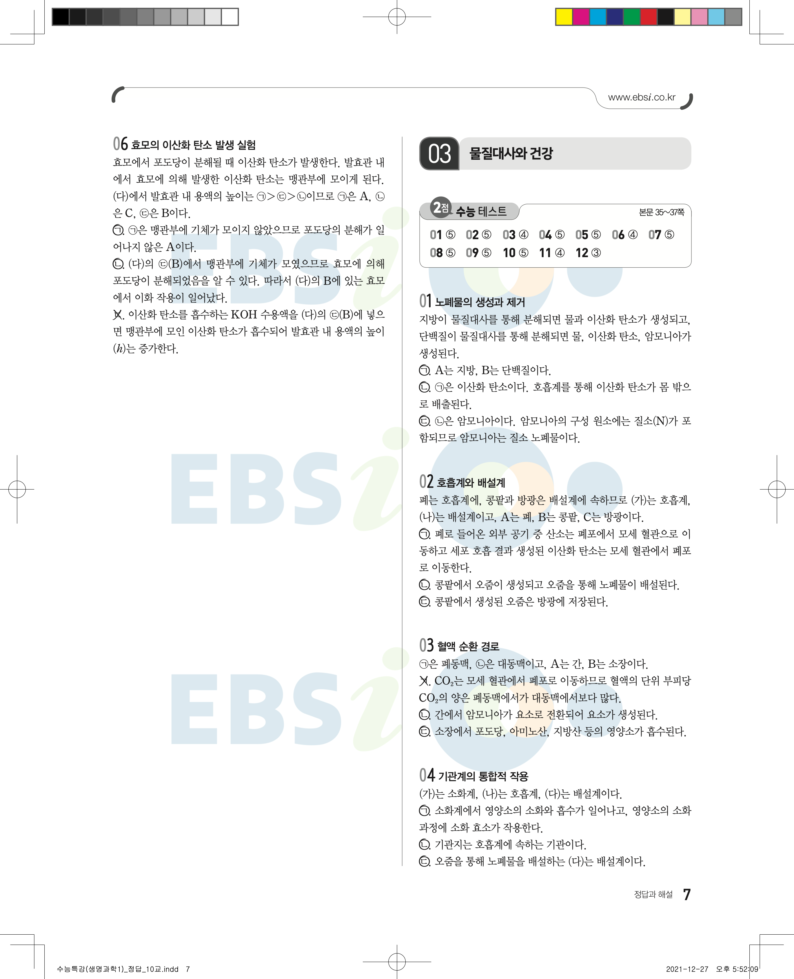 2023 수능특강 생명과학1 답지 수특생1답지 바로보는 사진답지 모바일최적화