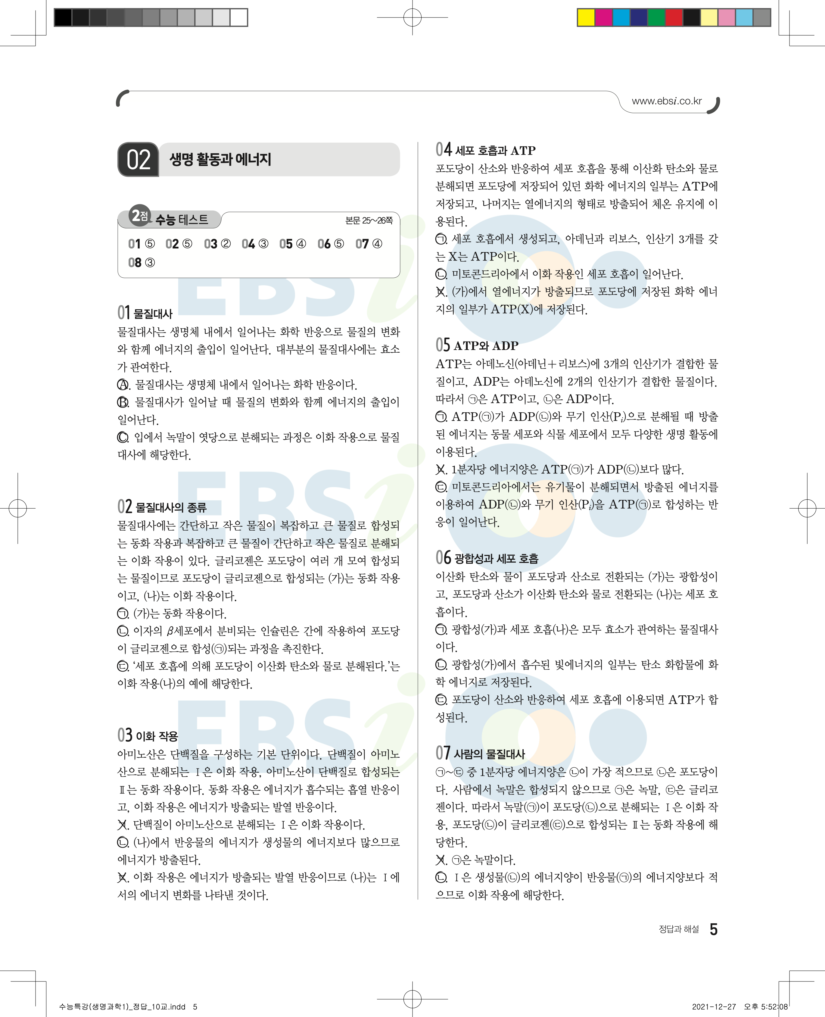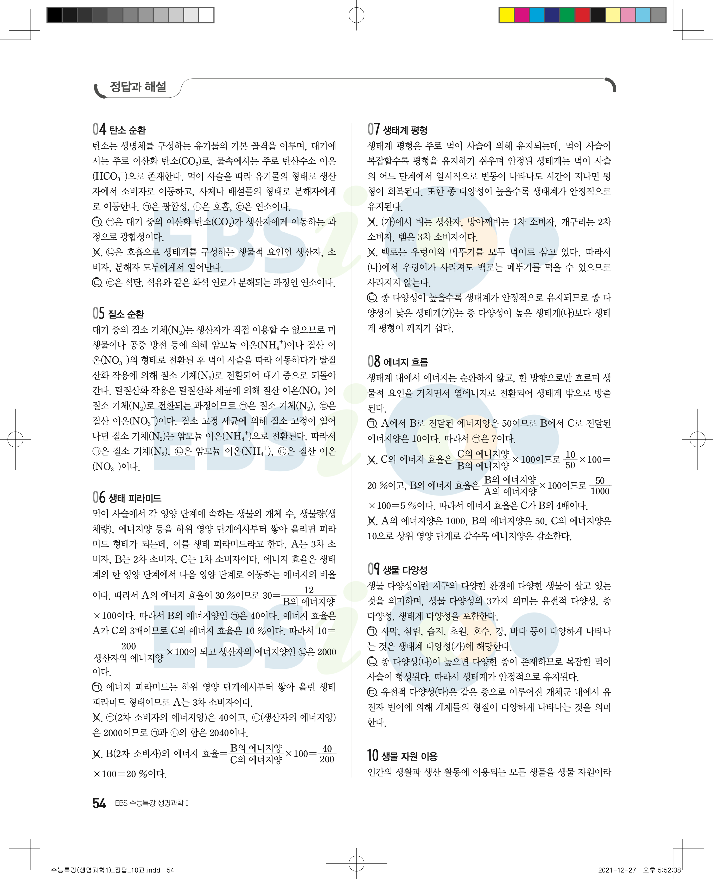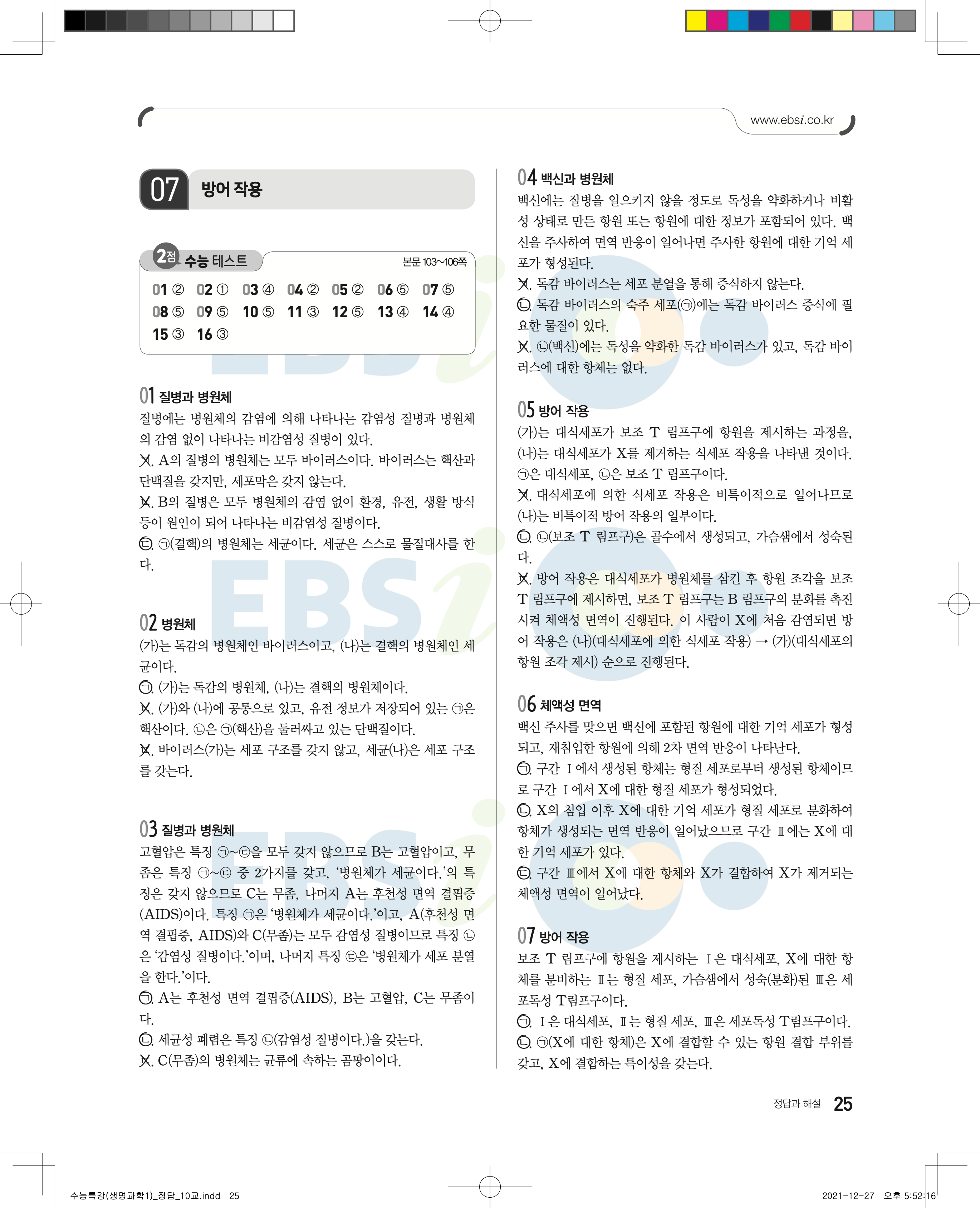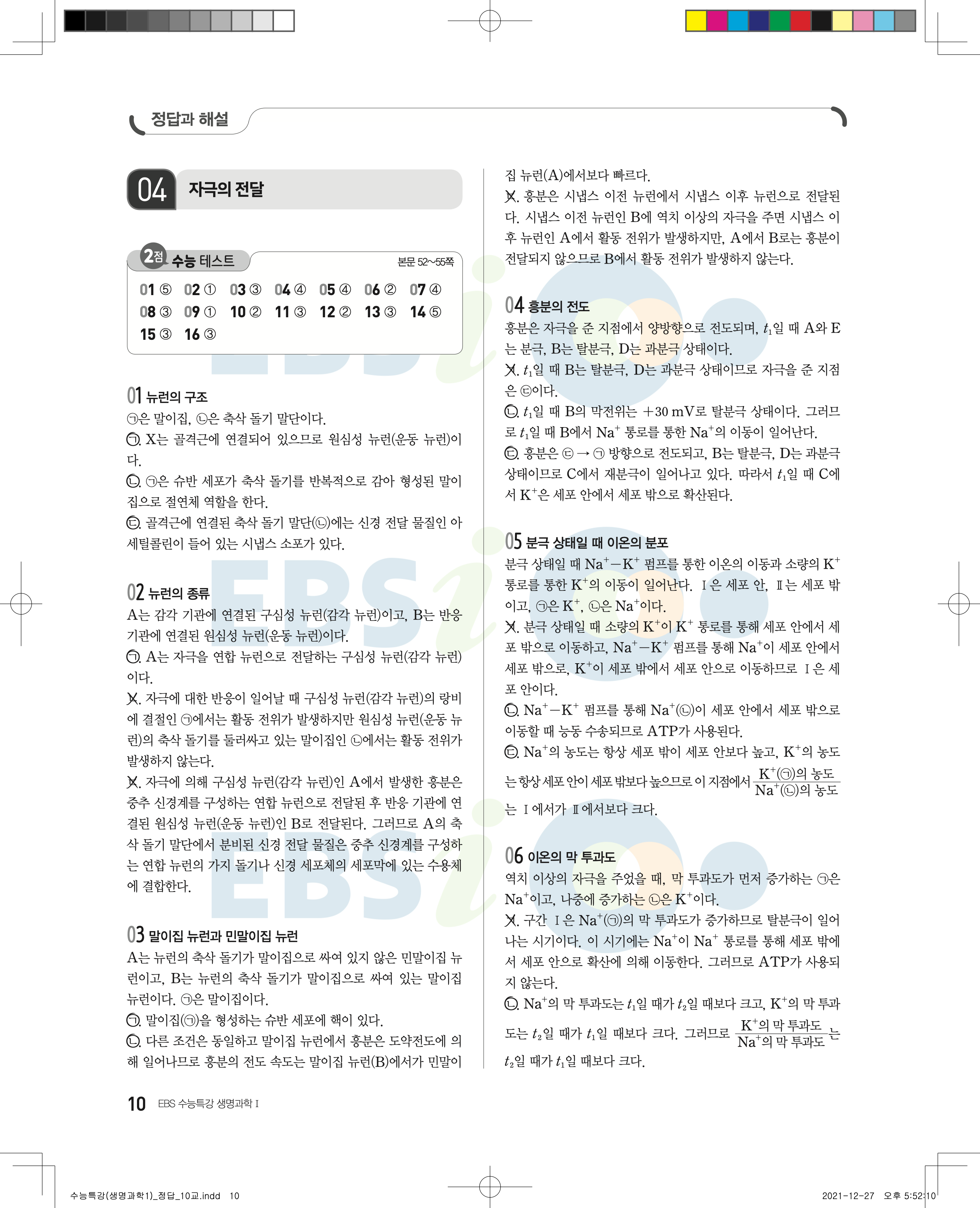2023 수능특강 생명과학1 답지 수특생1답지 바로보는 사진답지 모바일최적화