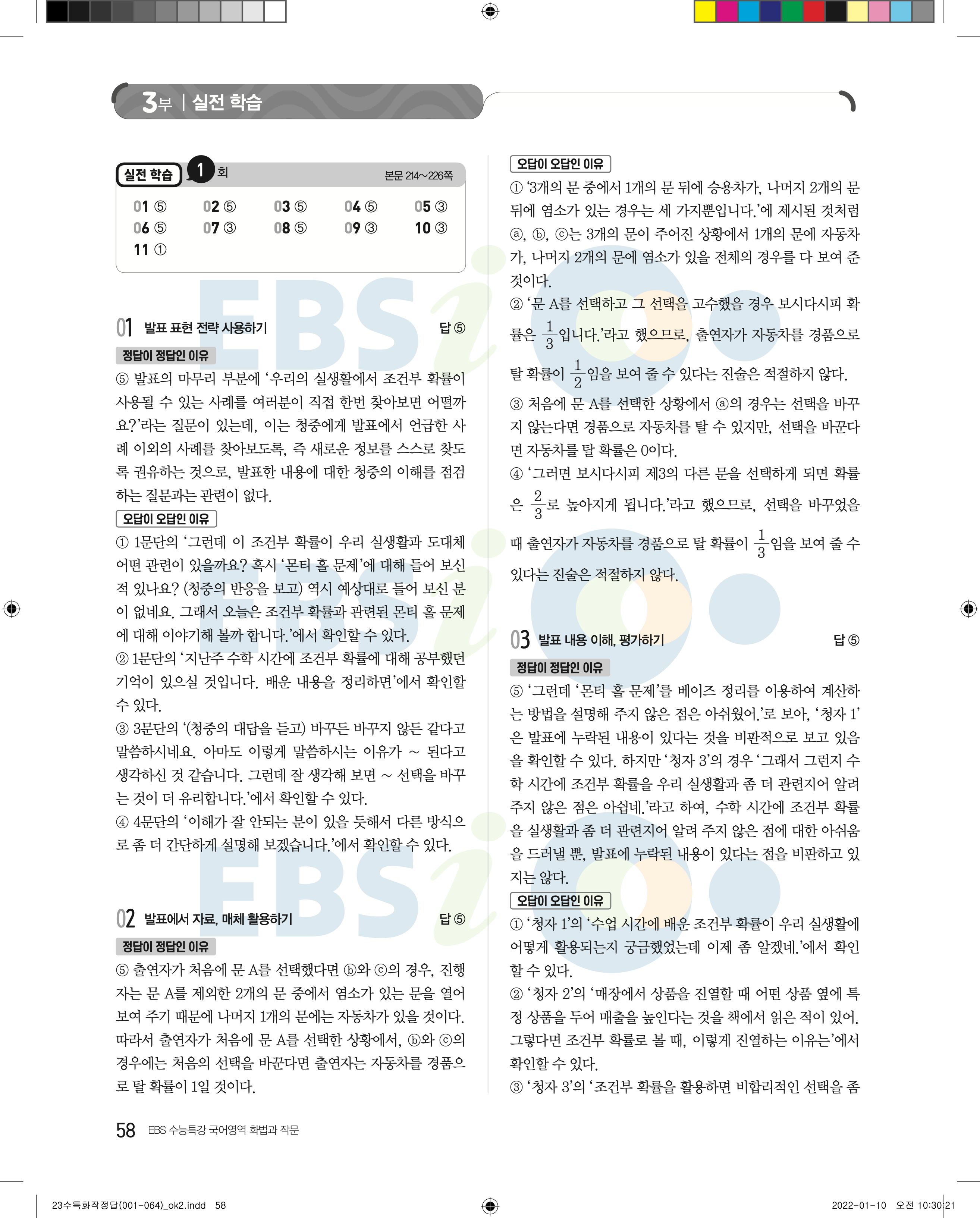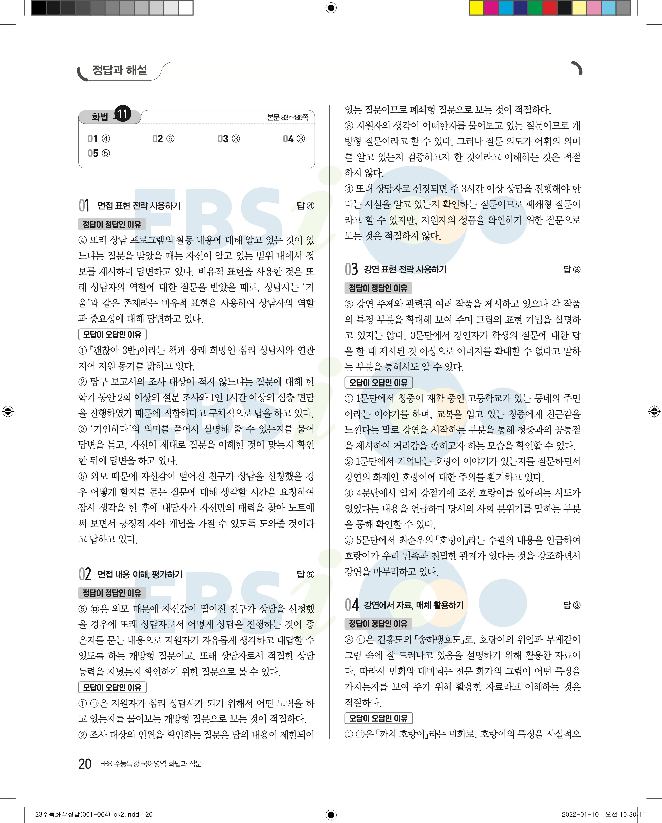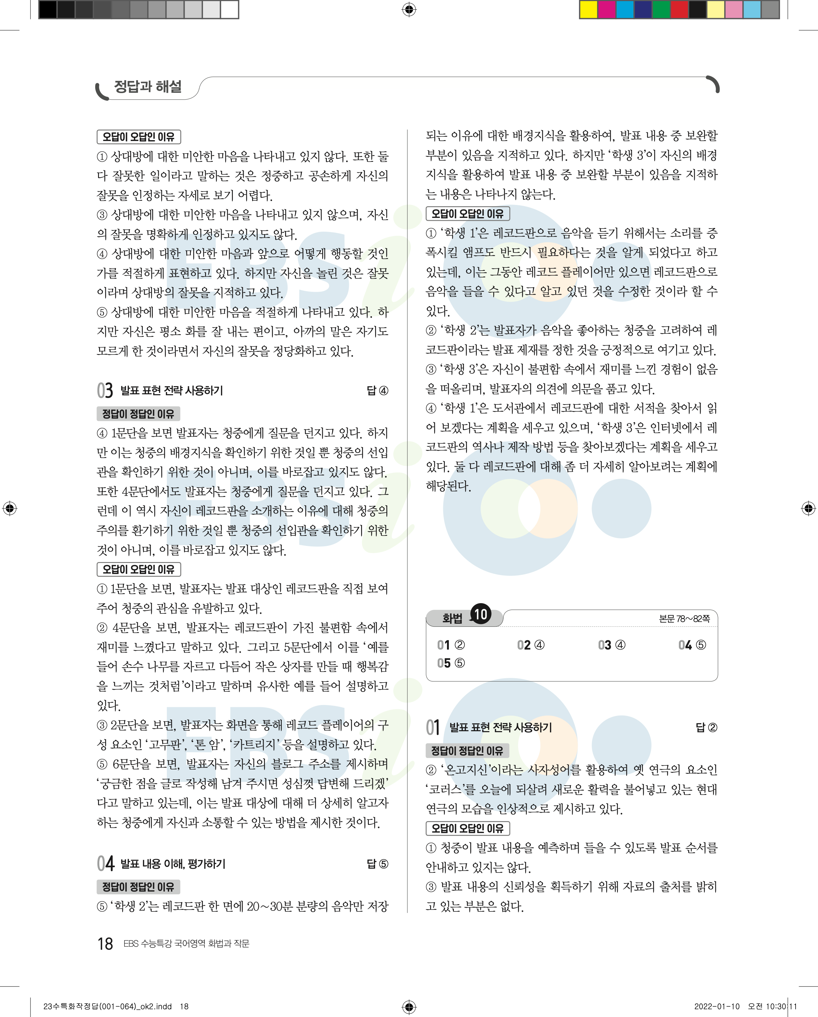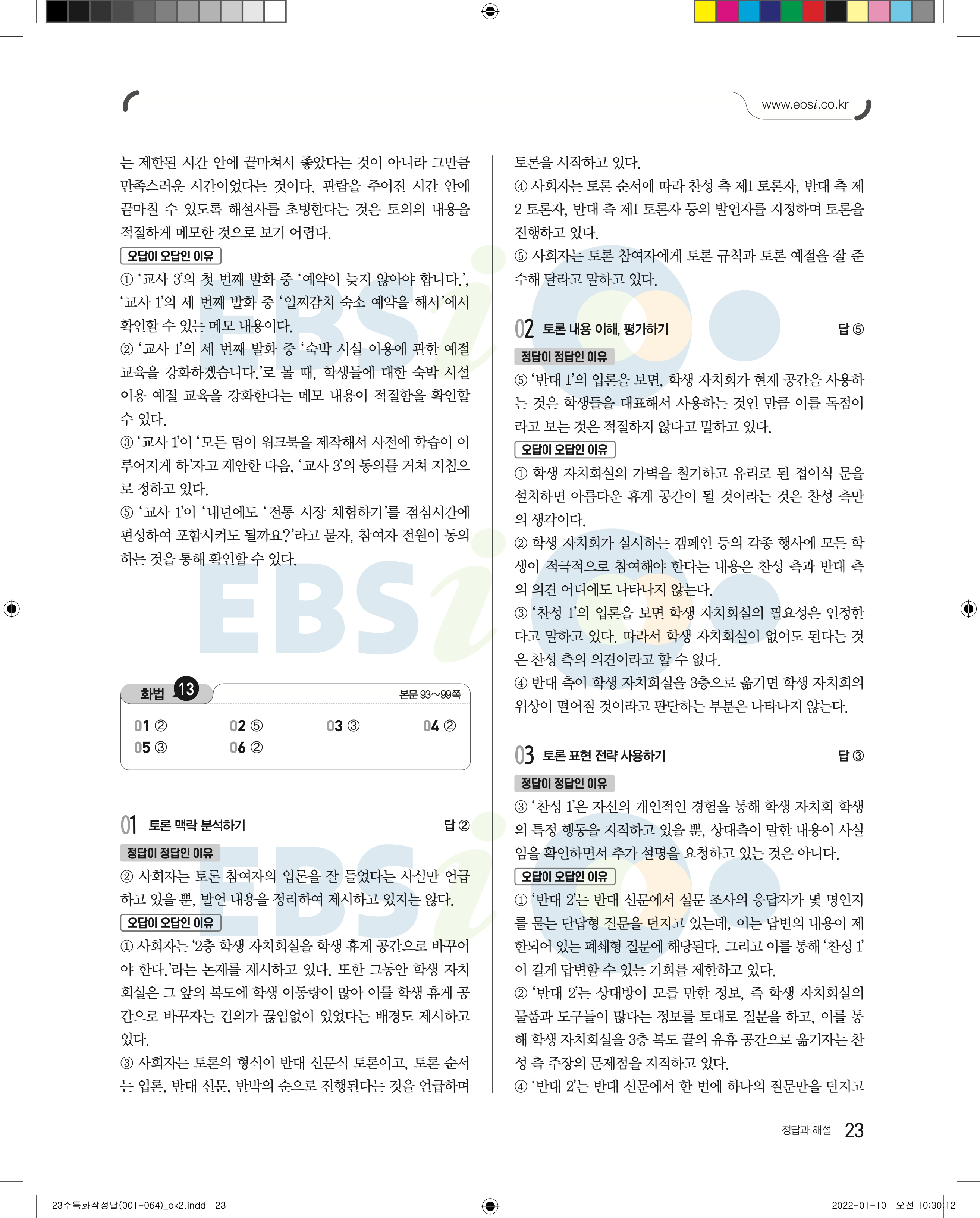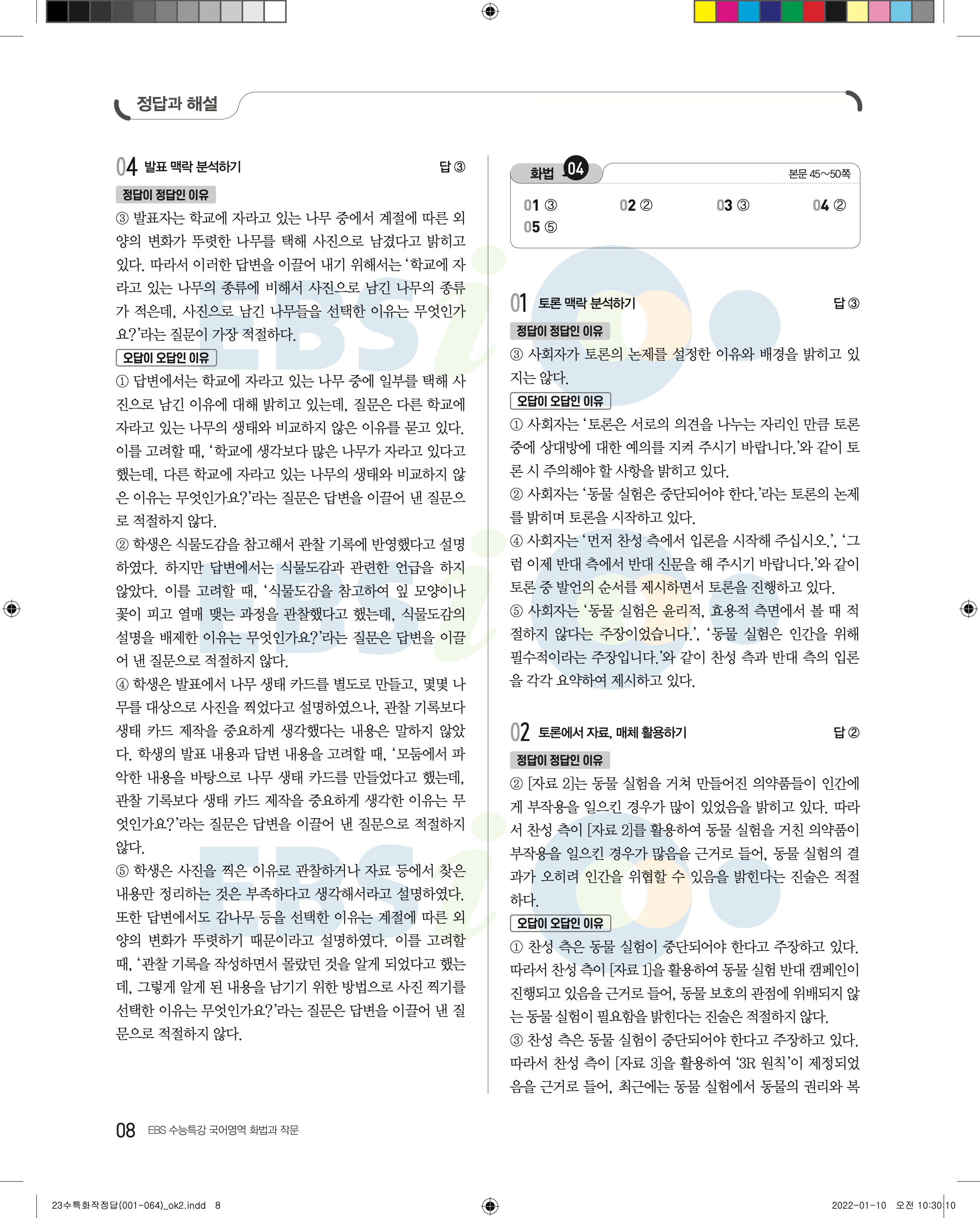 2023 수능특강 화법과작문 답지 수특화작답지 바로보는 사진답지 모바일최적화