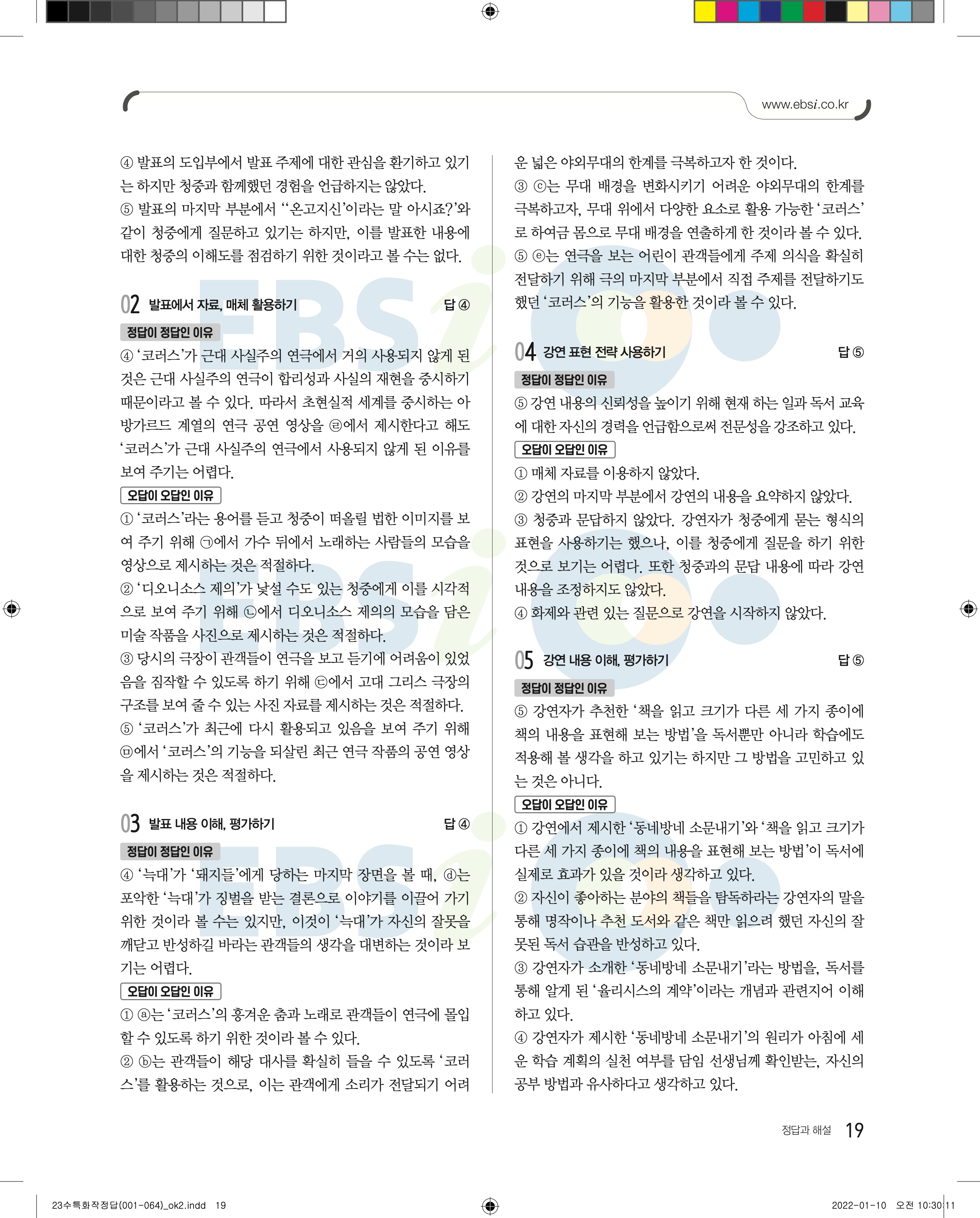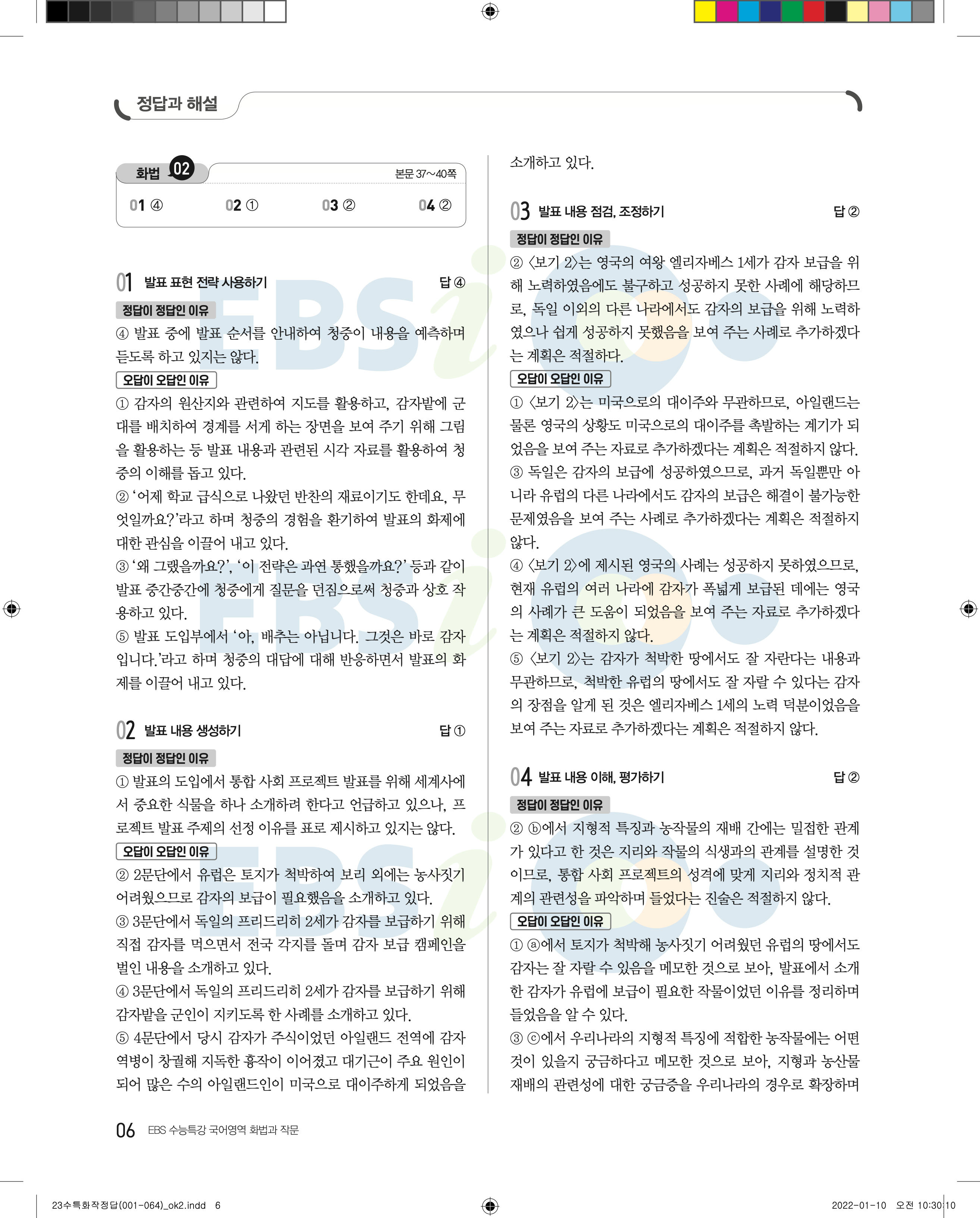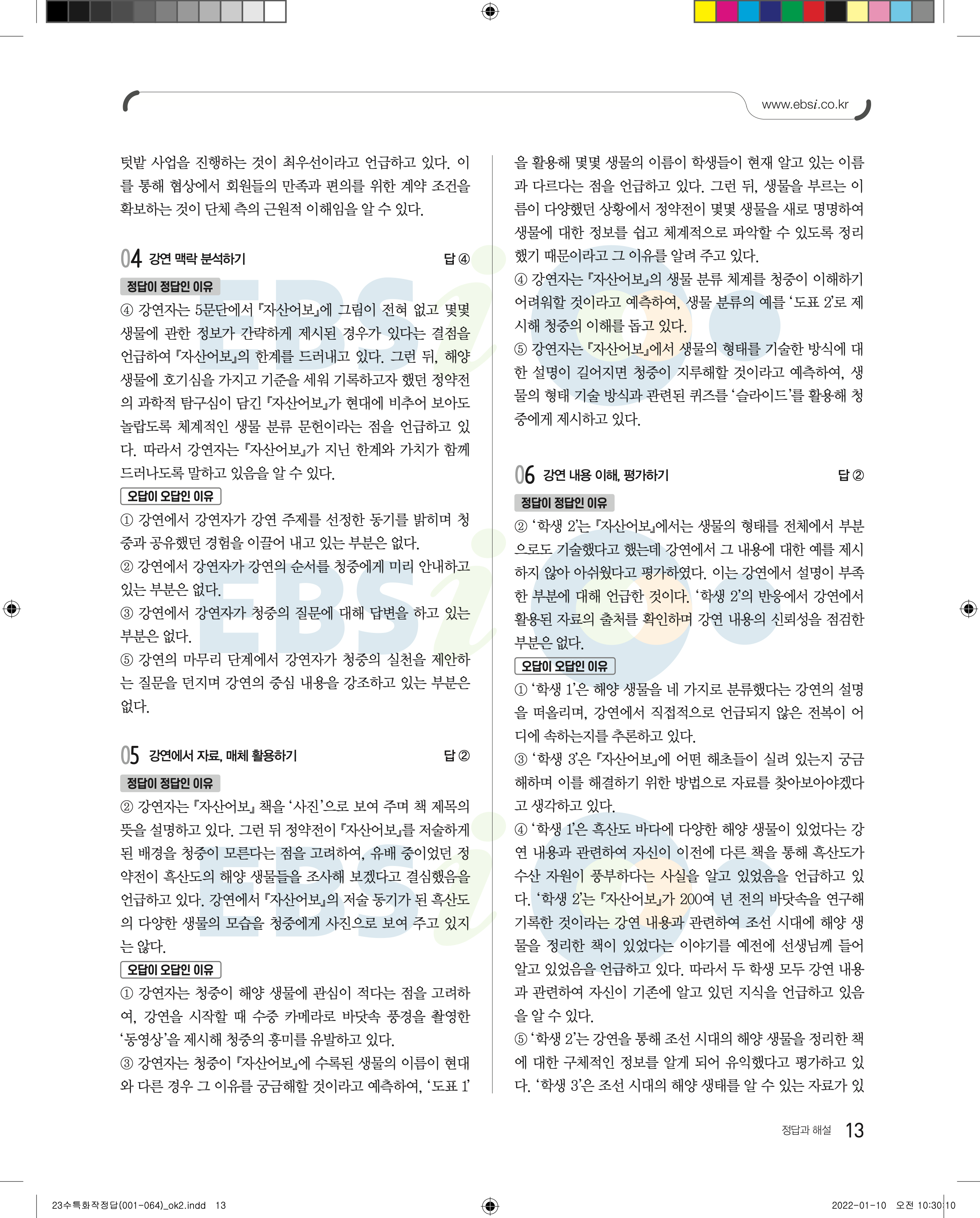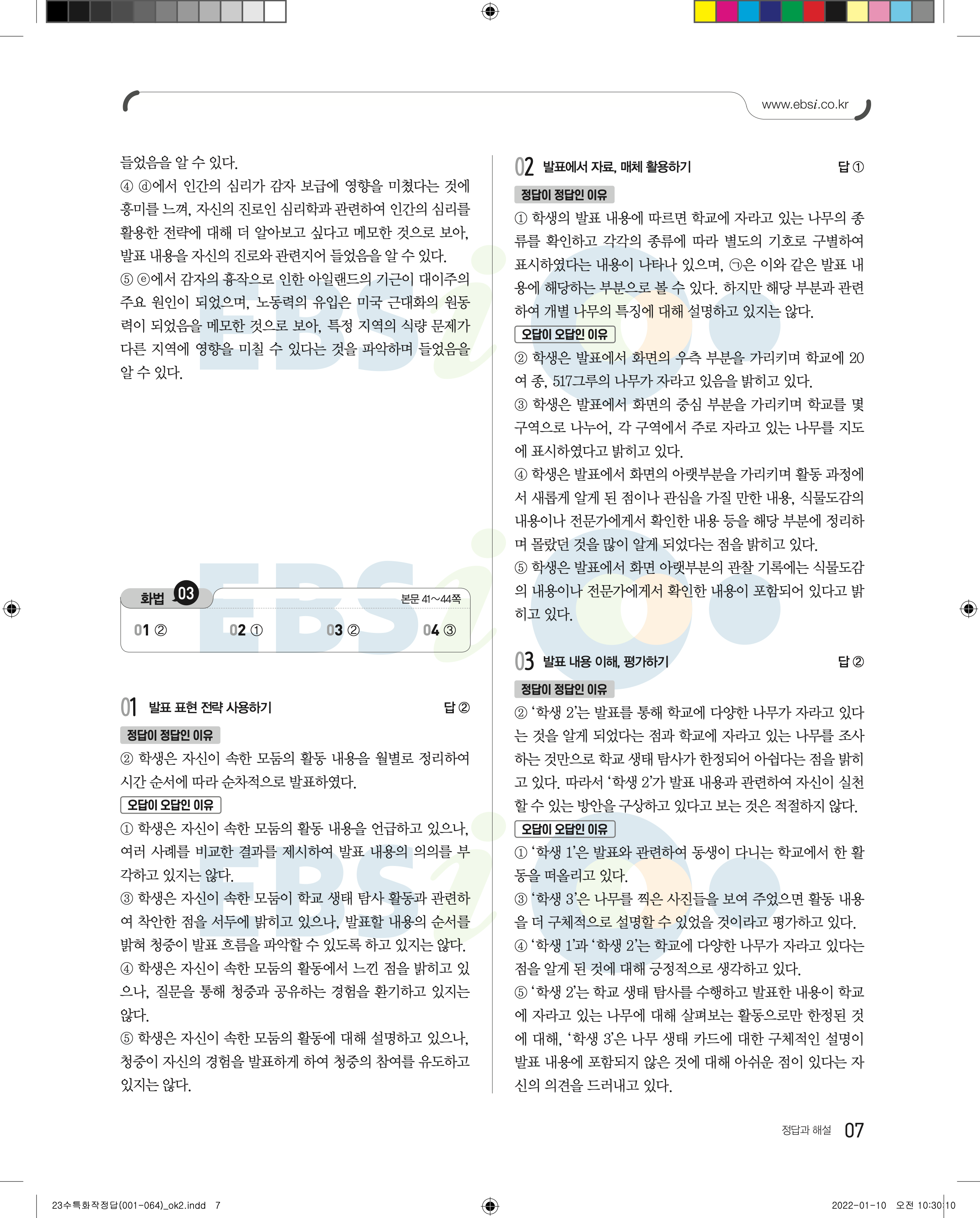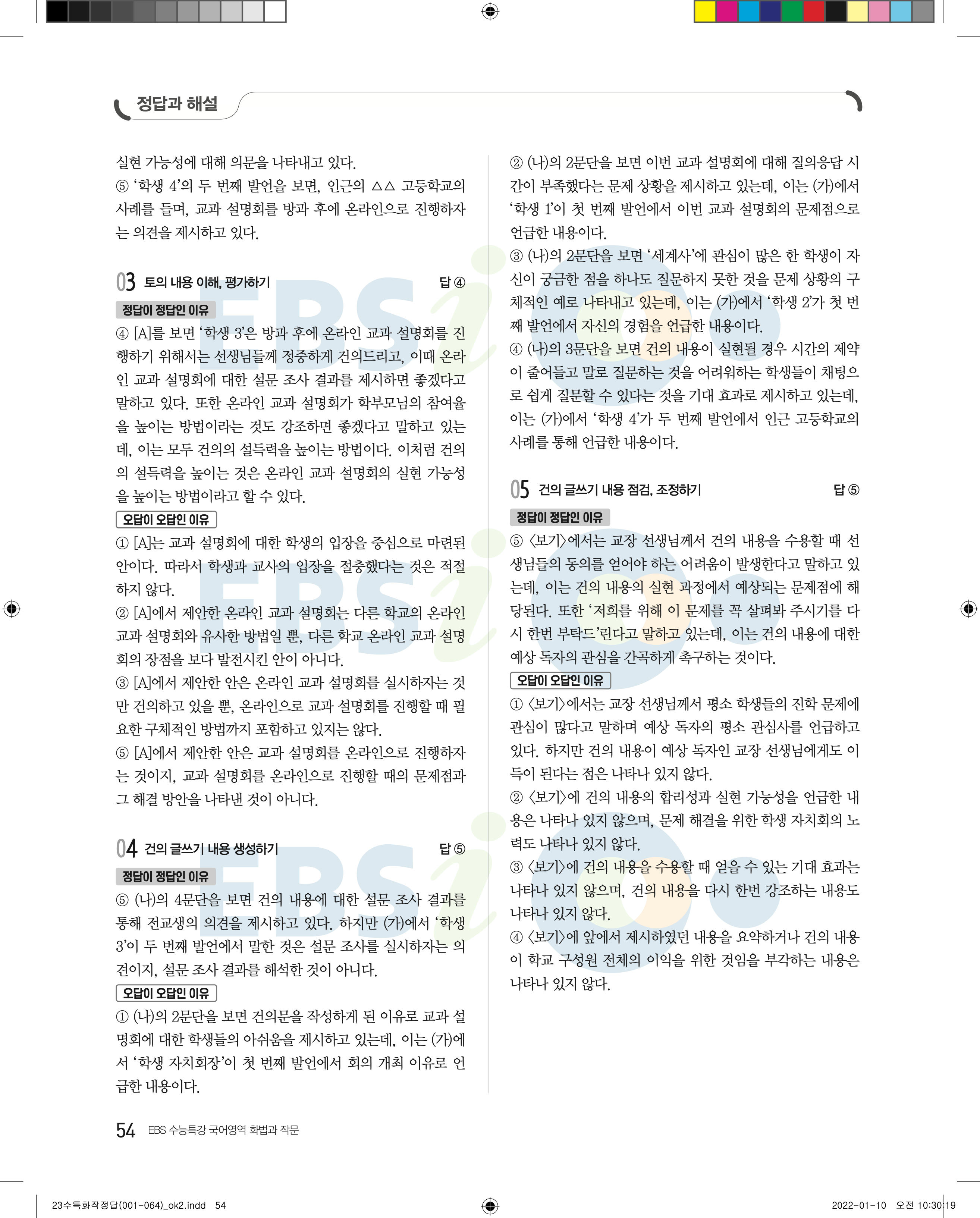 2023 수능특강 화법과작문 답지 수특화작답지 바로보는 사진답지 모바일최적화