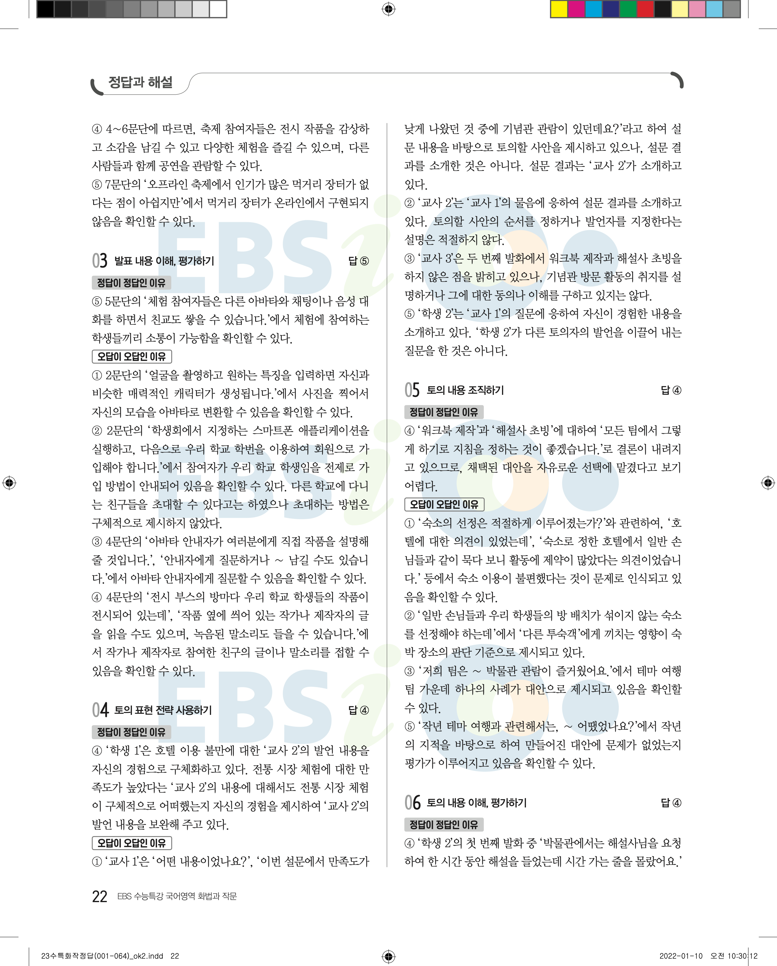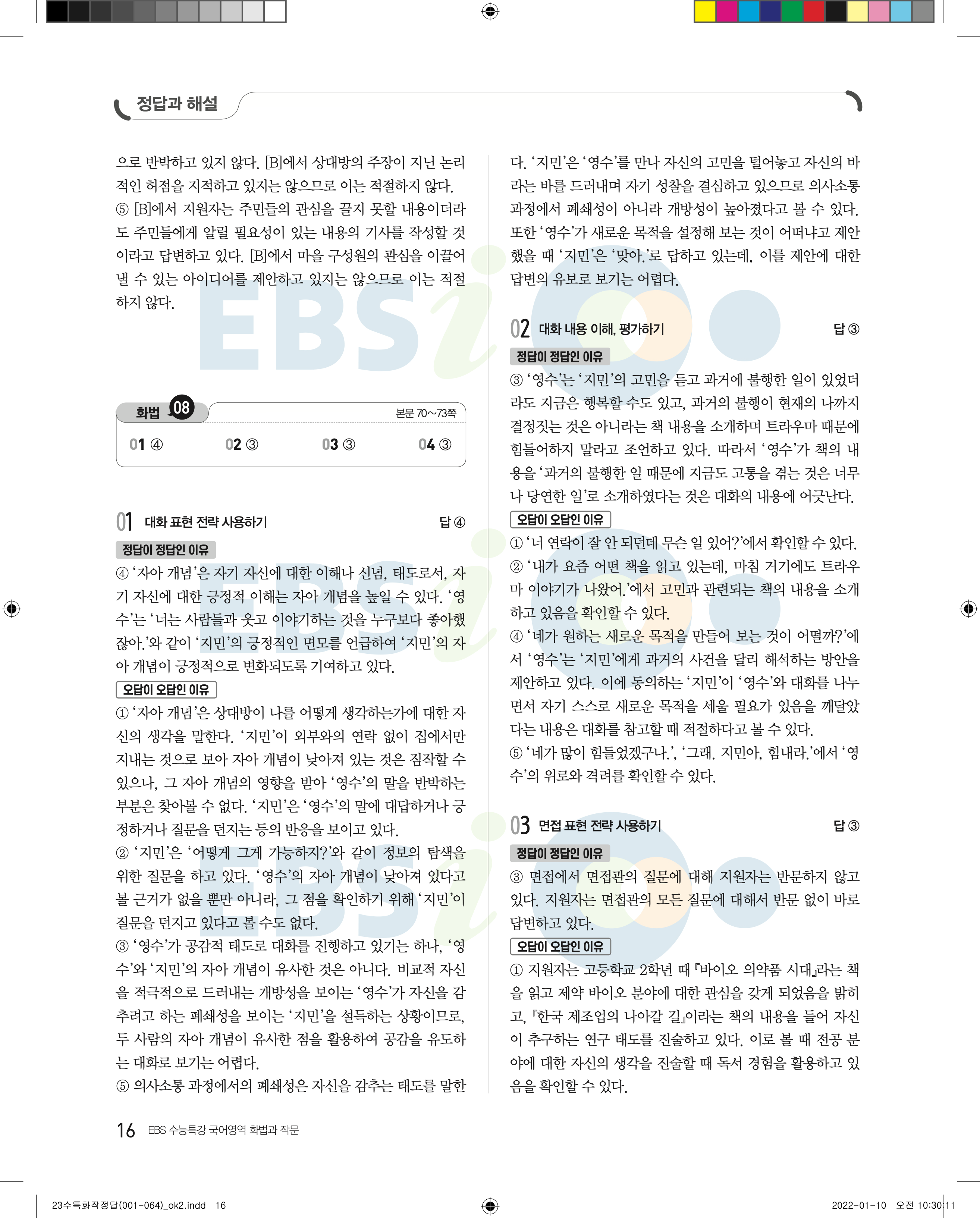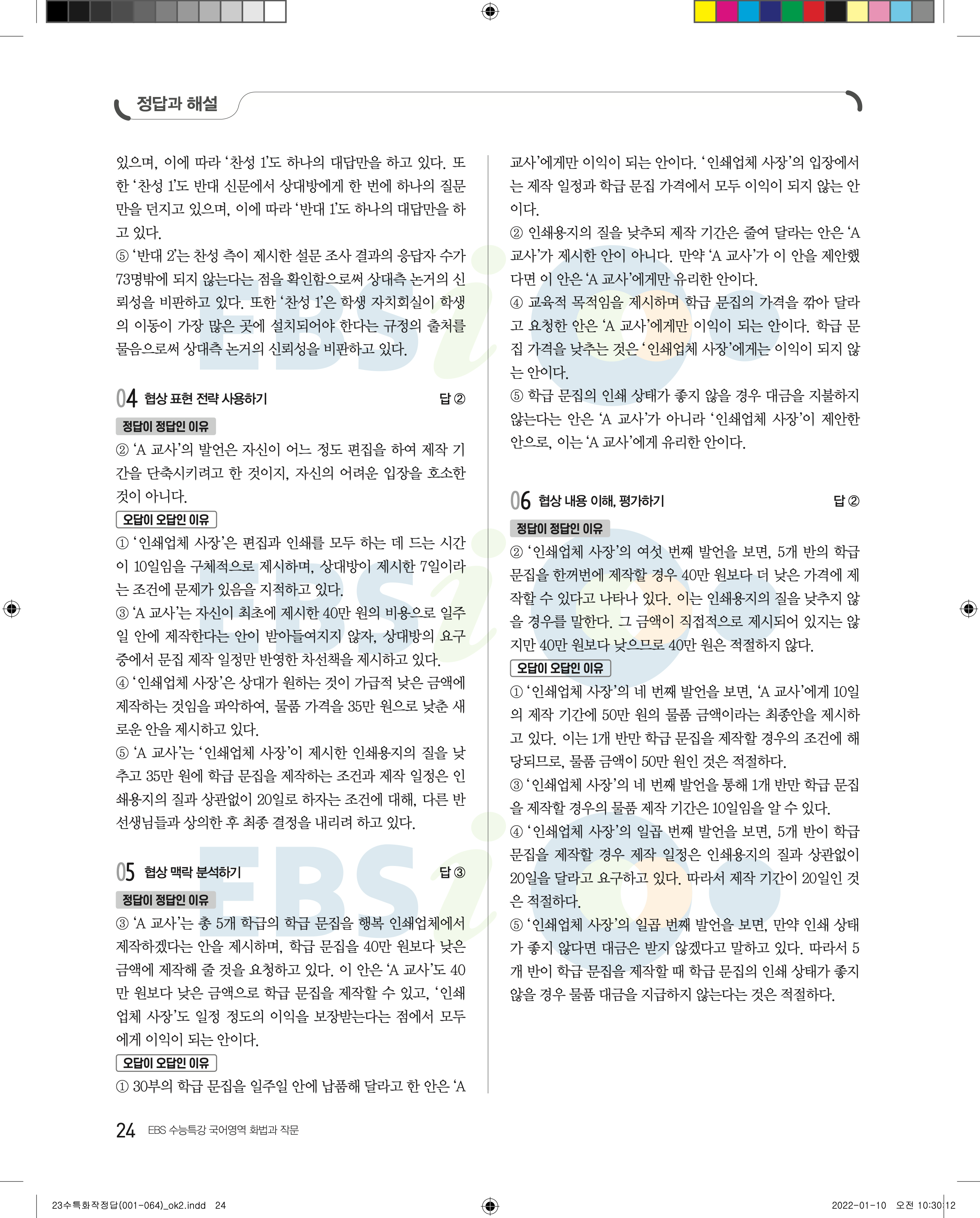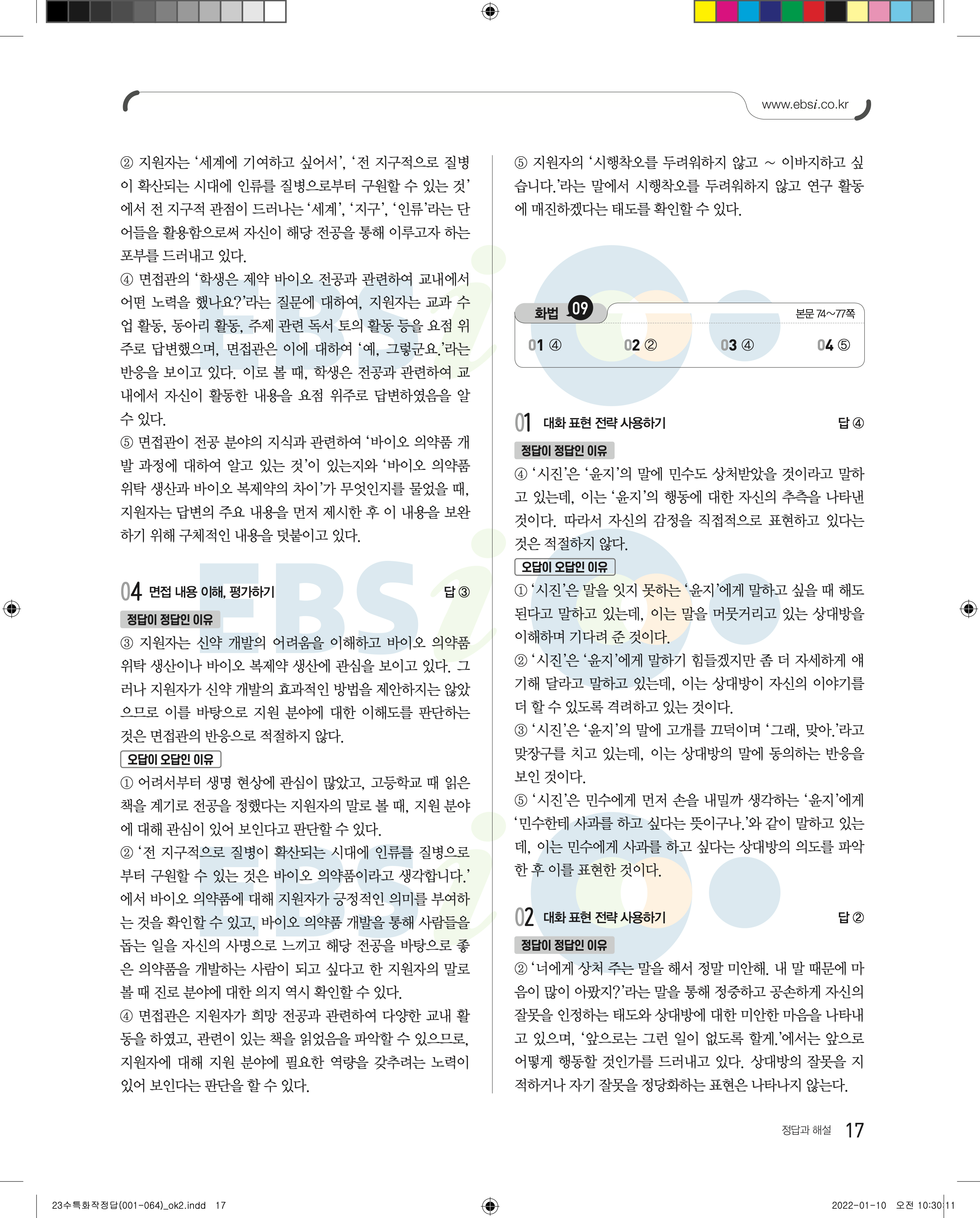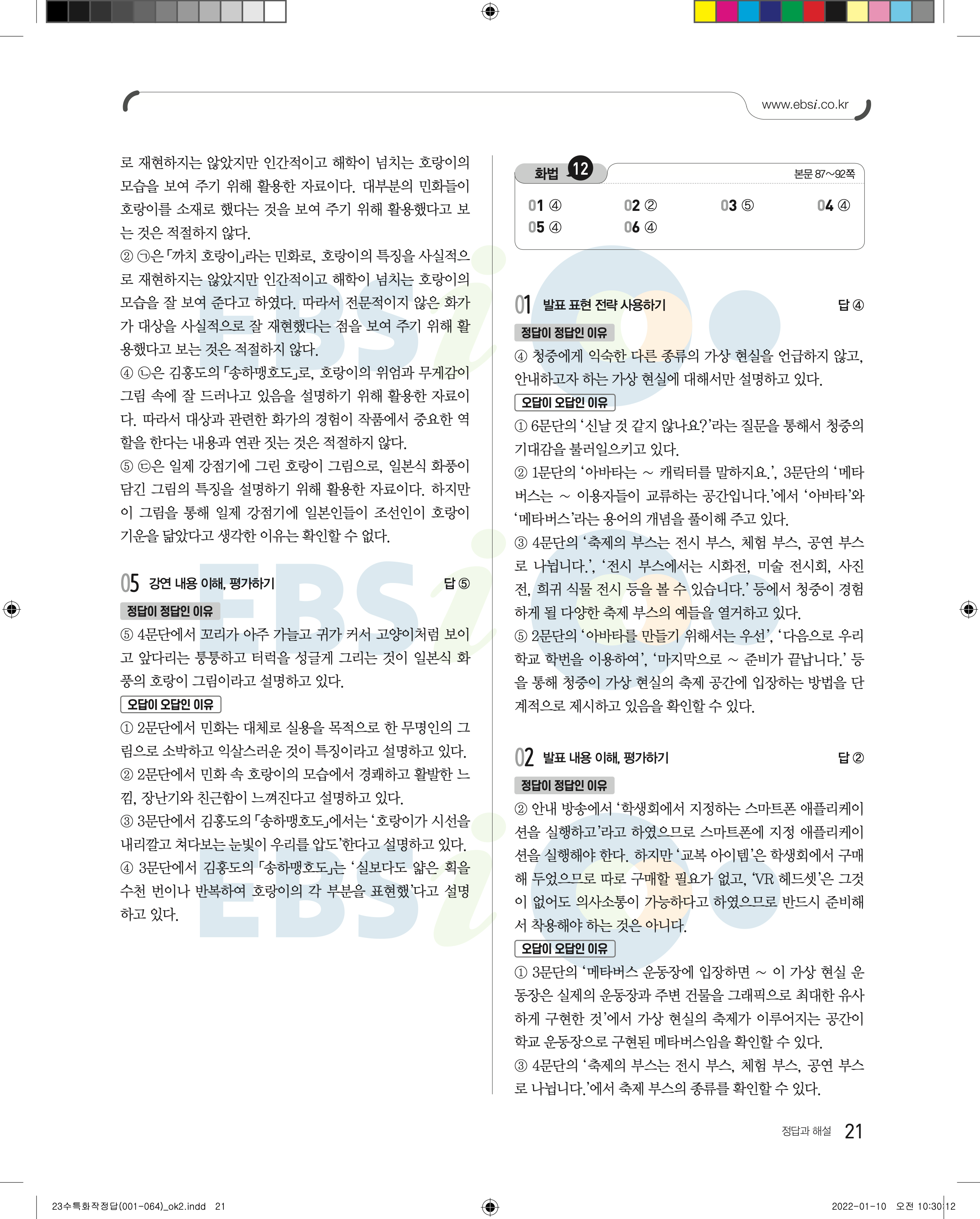 2023 수능특강 화법과작문 답지 수특화작답지 바로보는 사진답지 모바일최적화