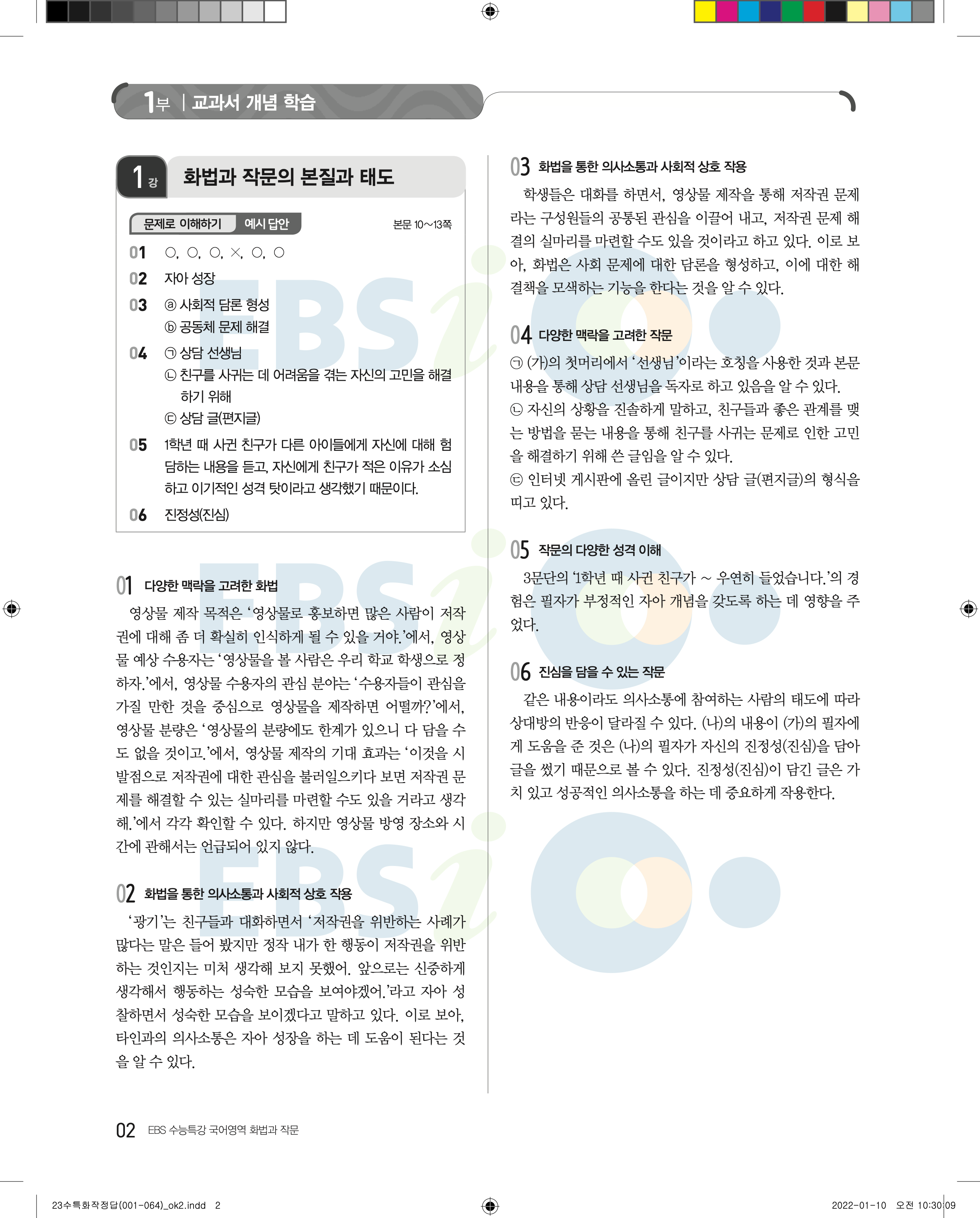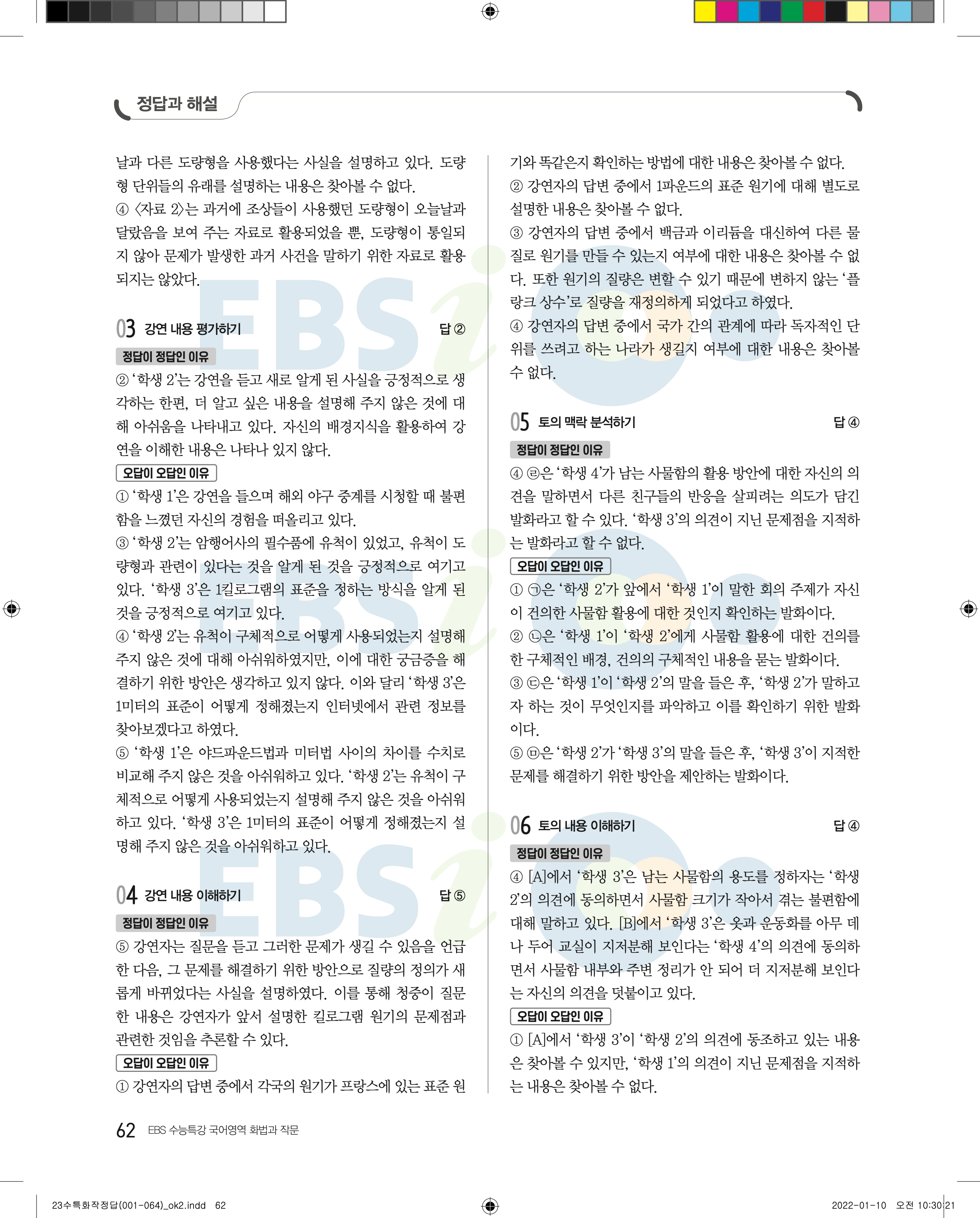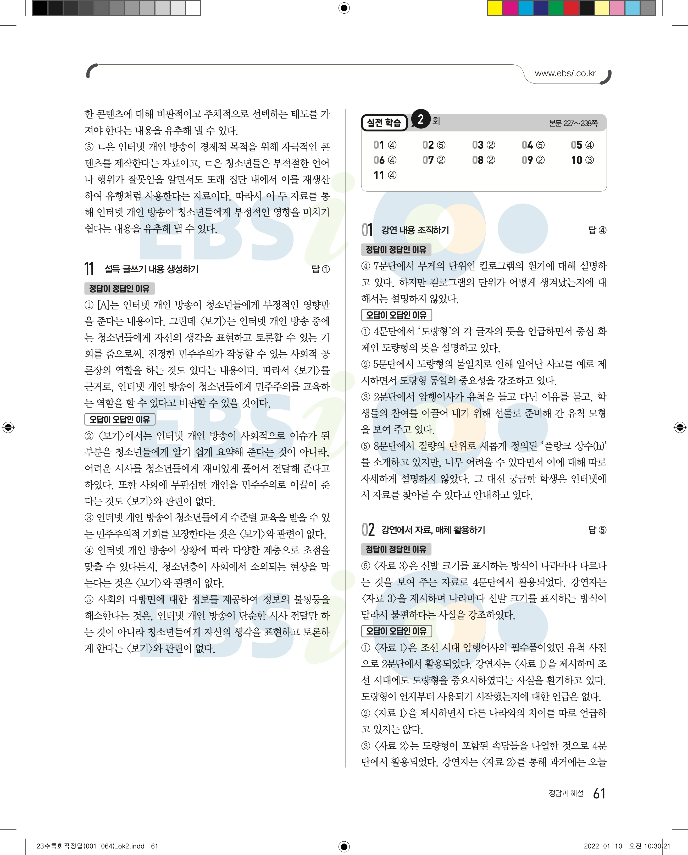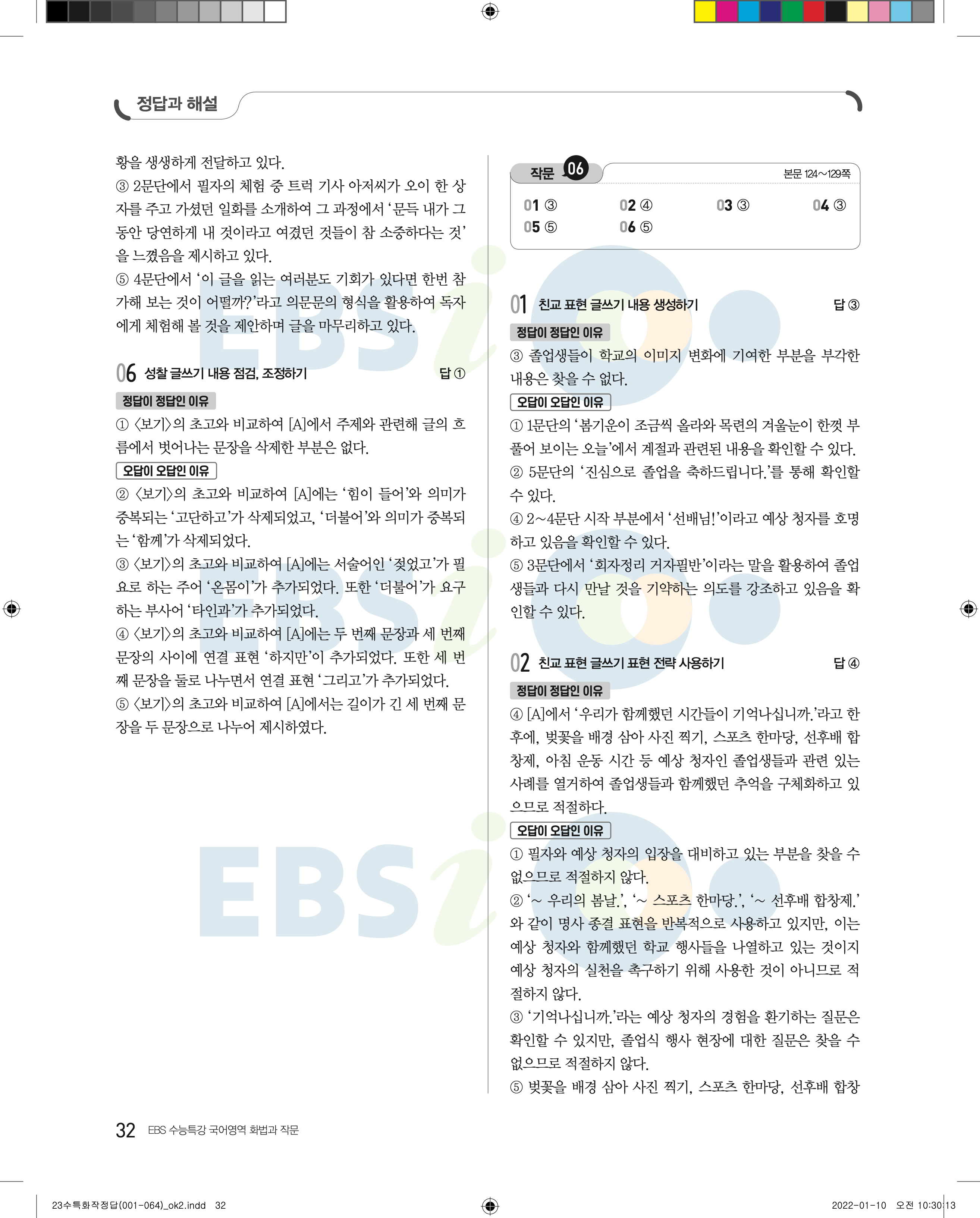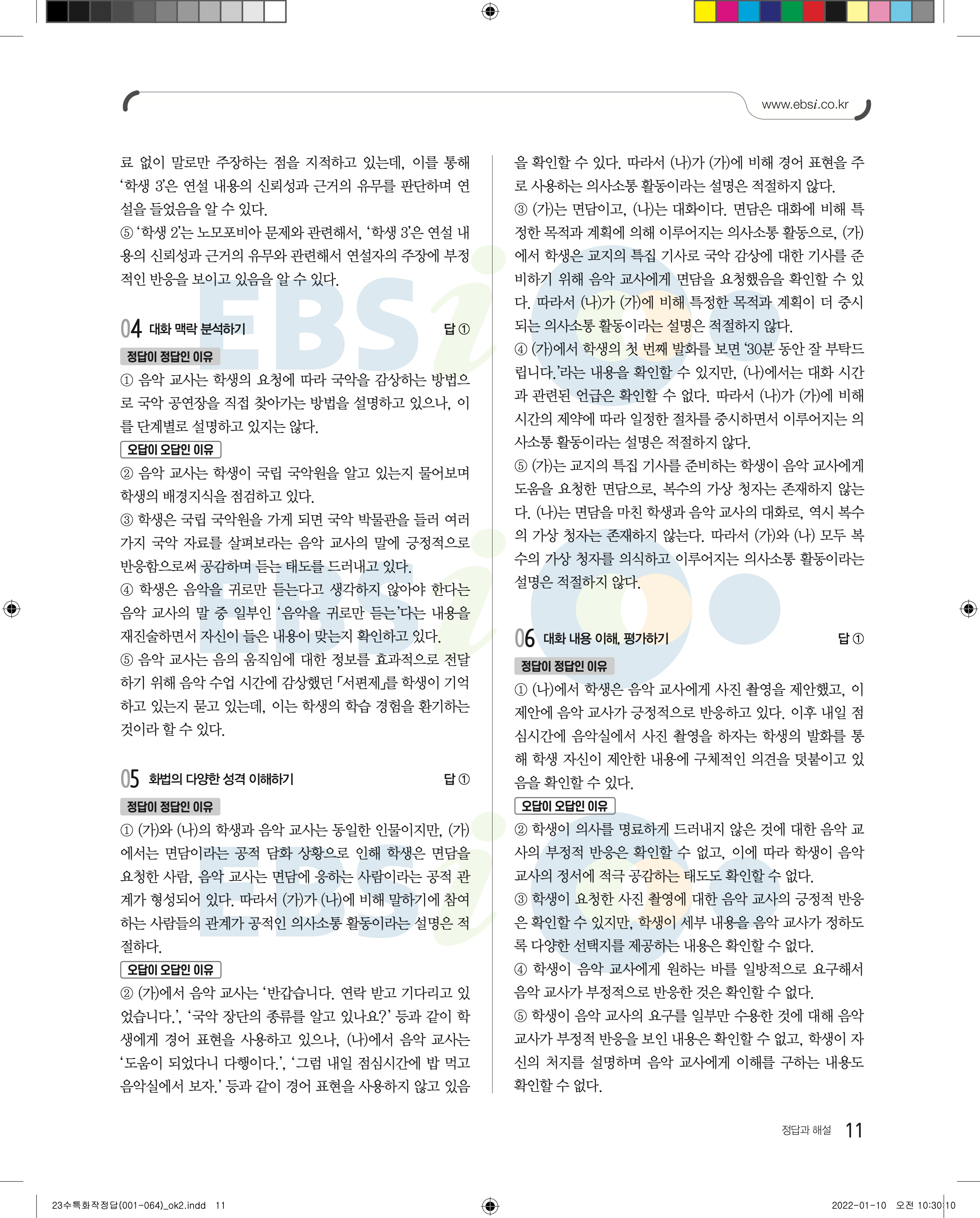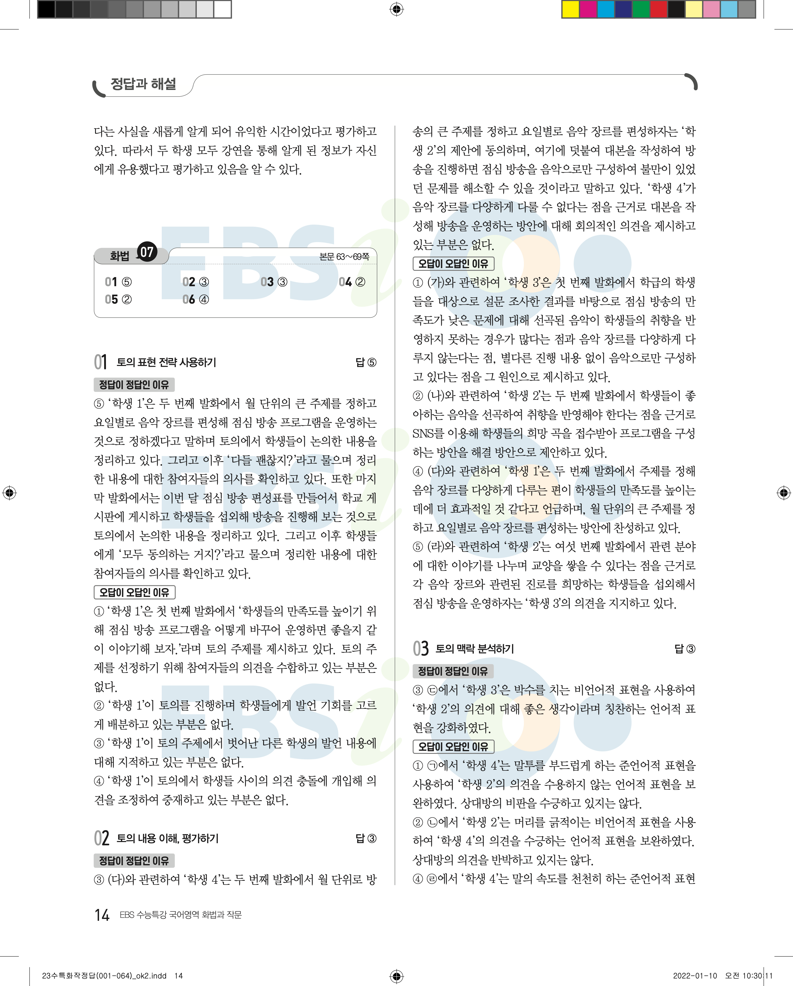2023 수능특강 화법과작문 답지 수특화작답지 바로보는 사진답지 모바일최적화