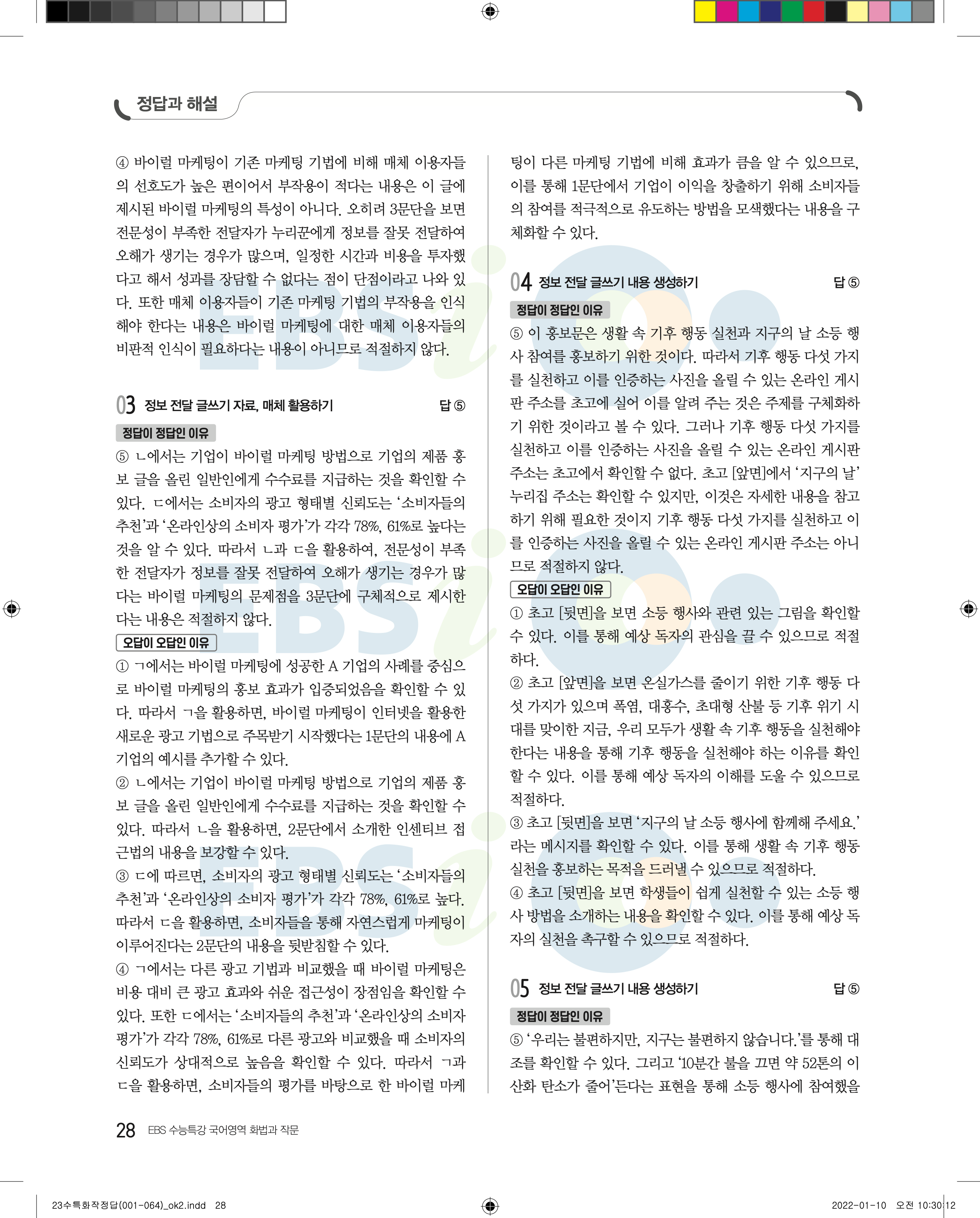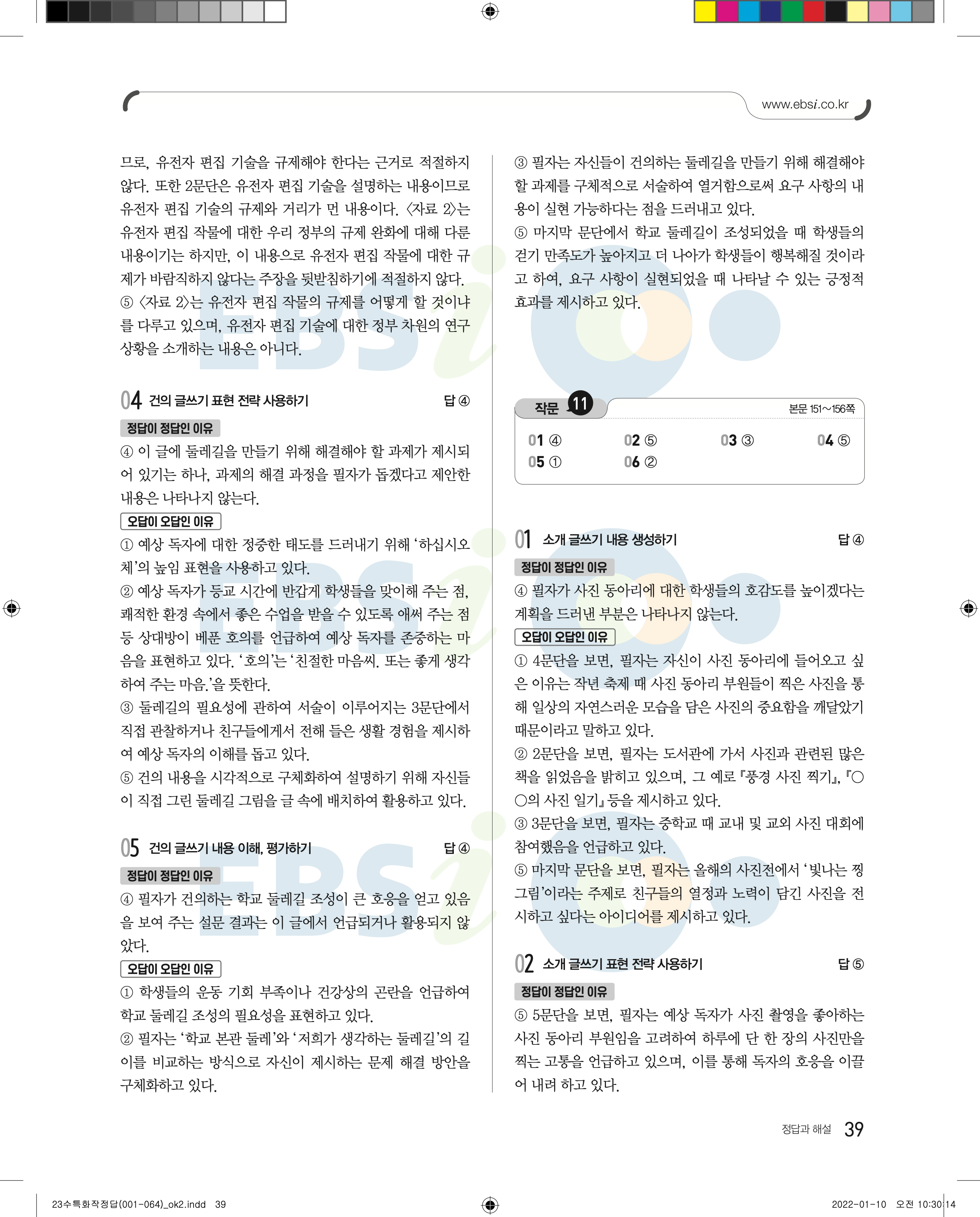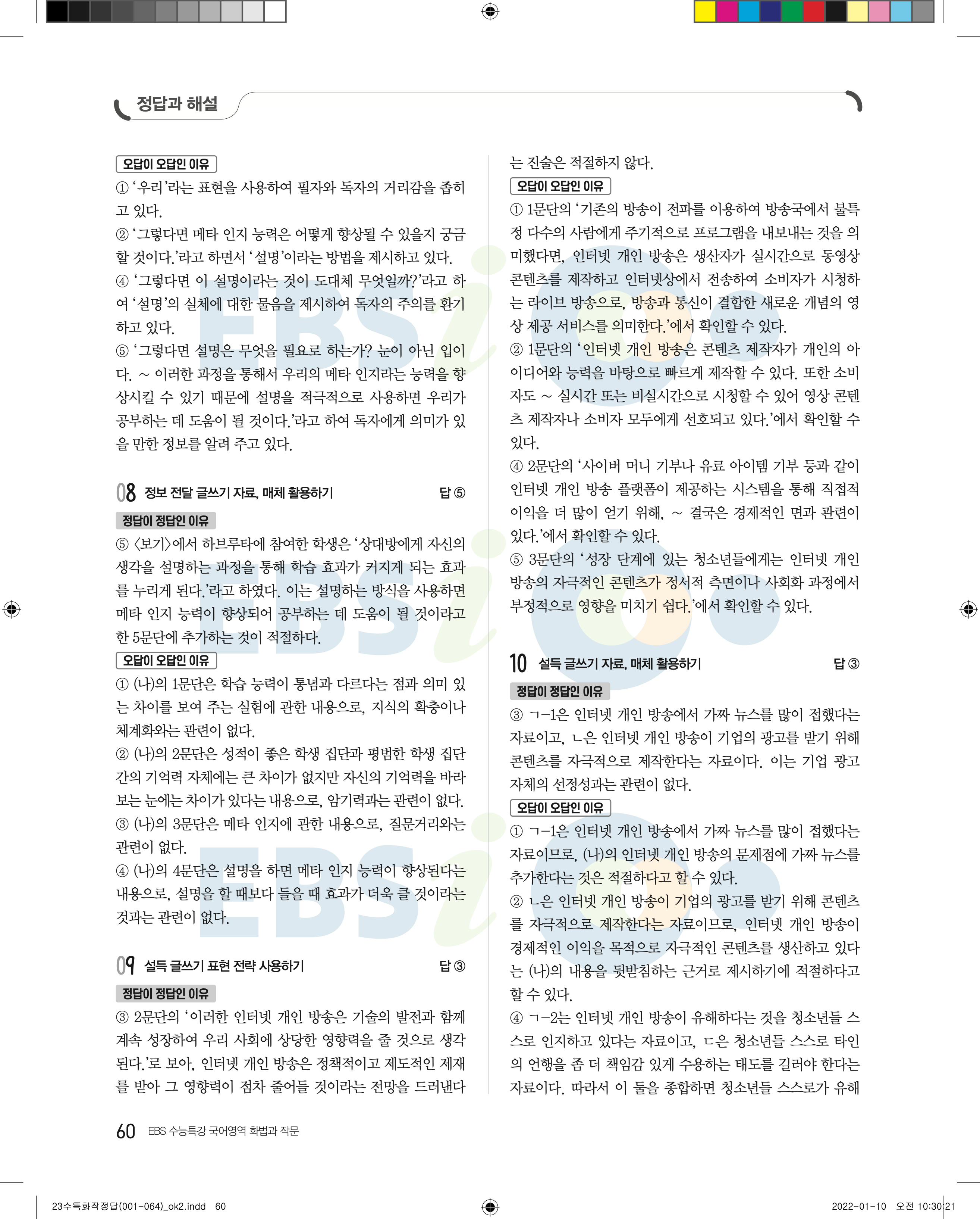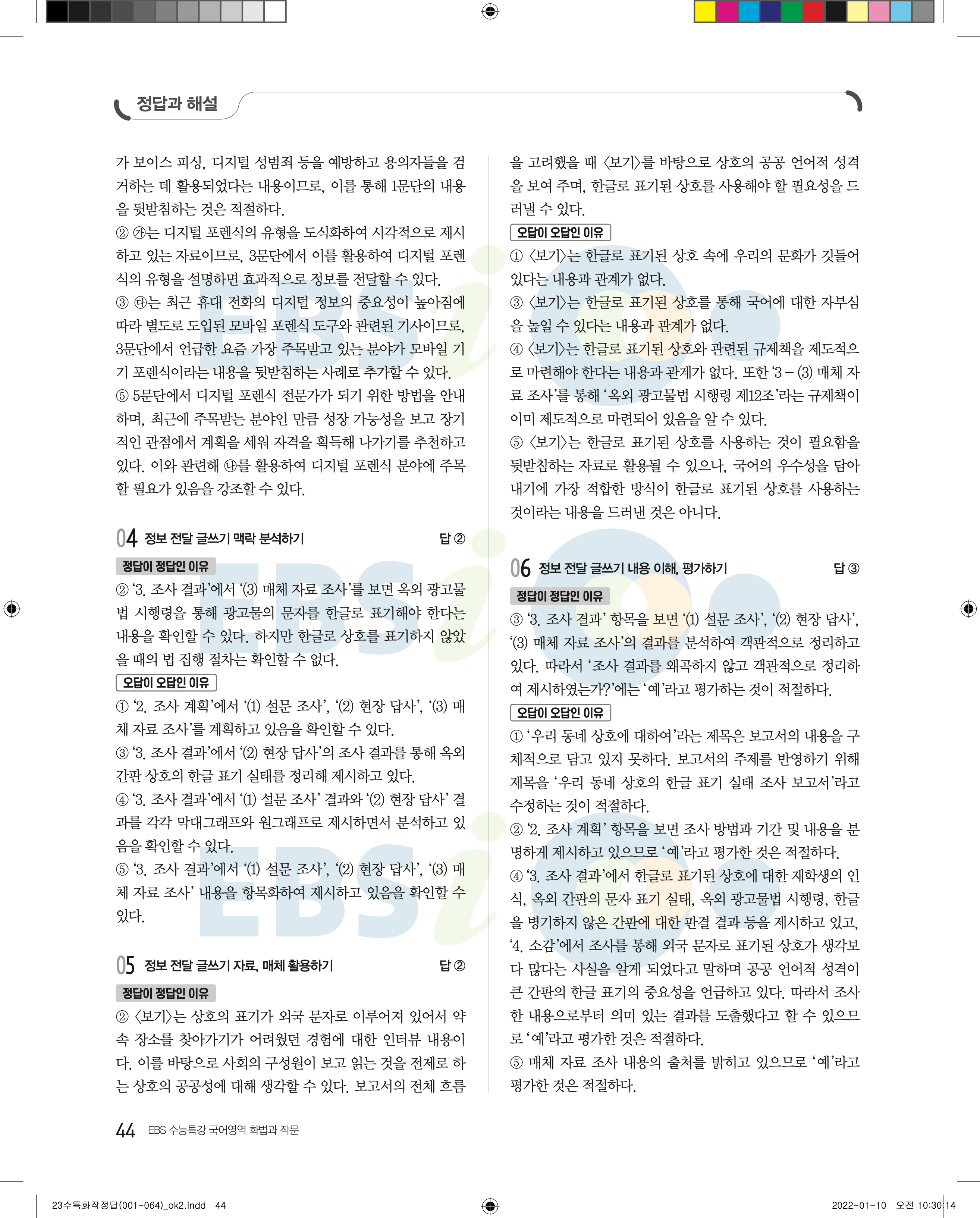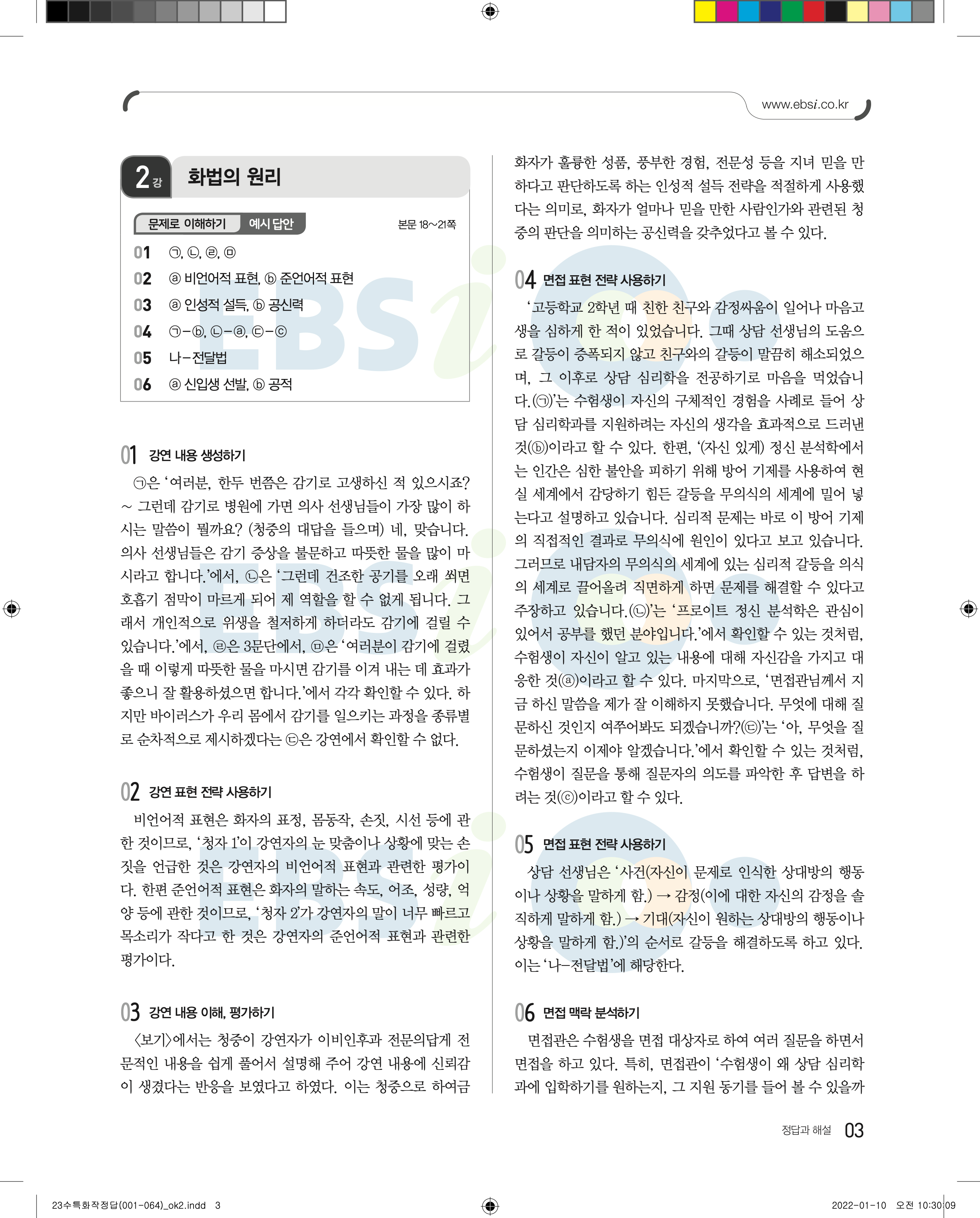 2023 수능특강 화법과작문 답지 수특화작답지 바로보는 사진답지 모바일최적화