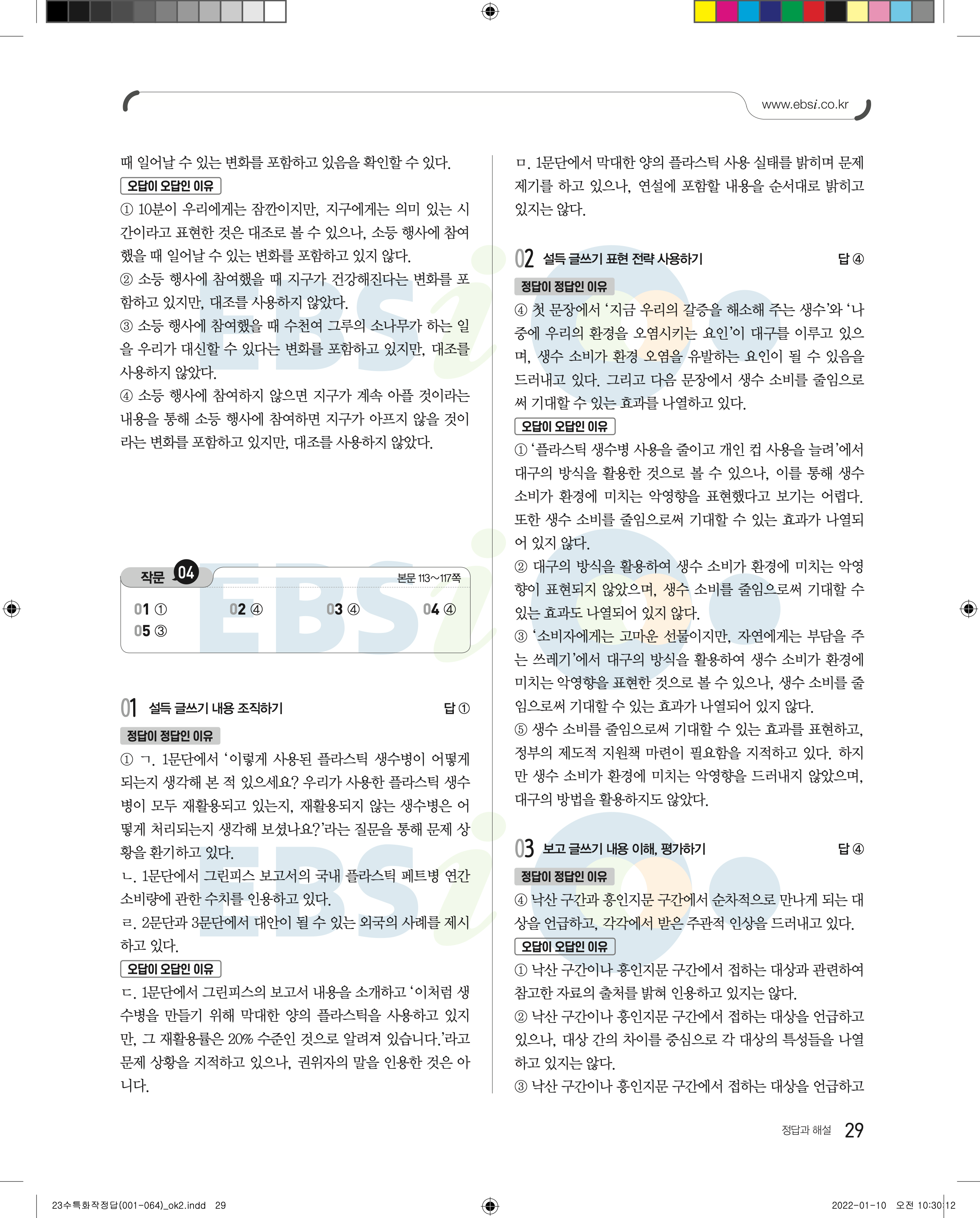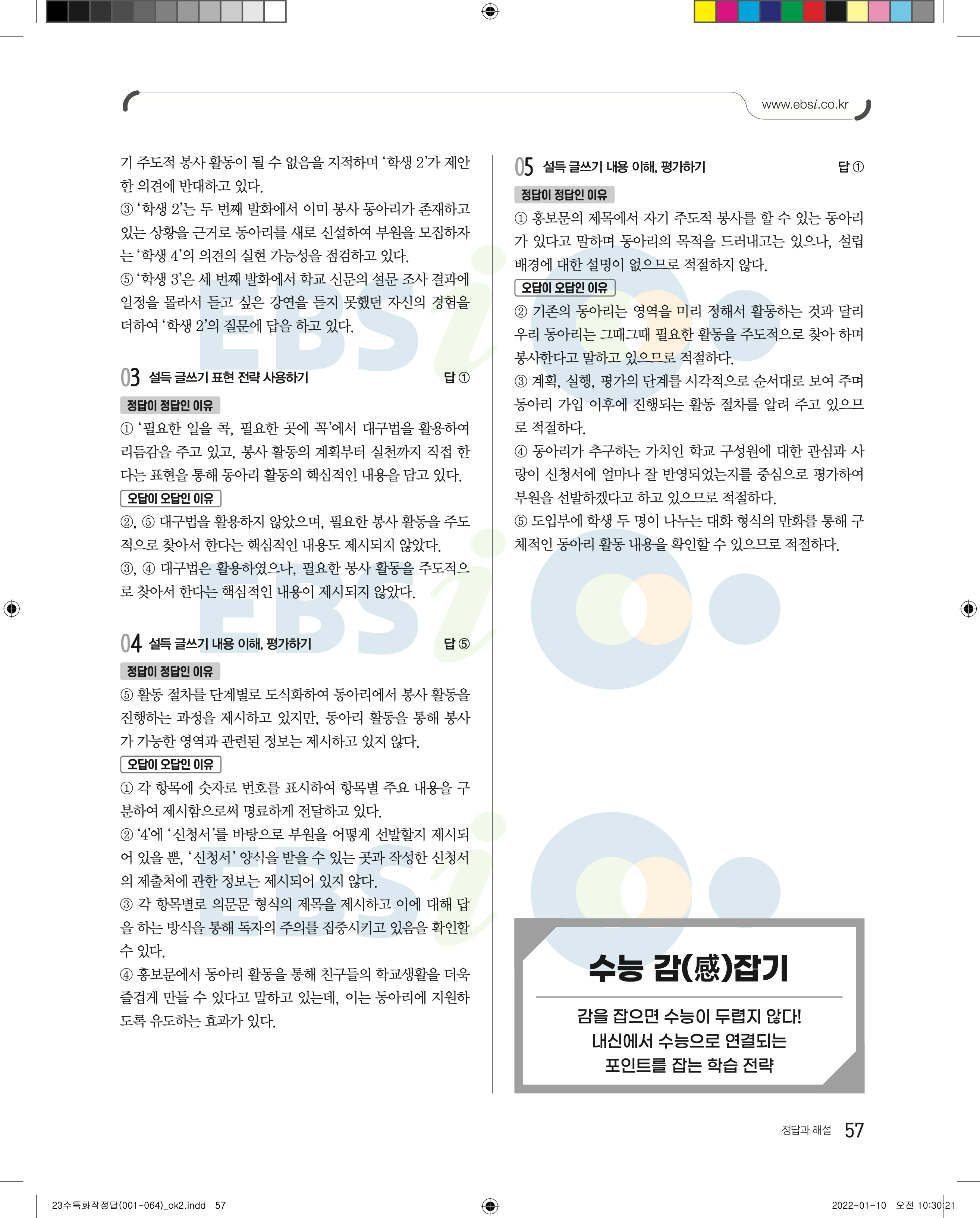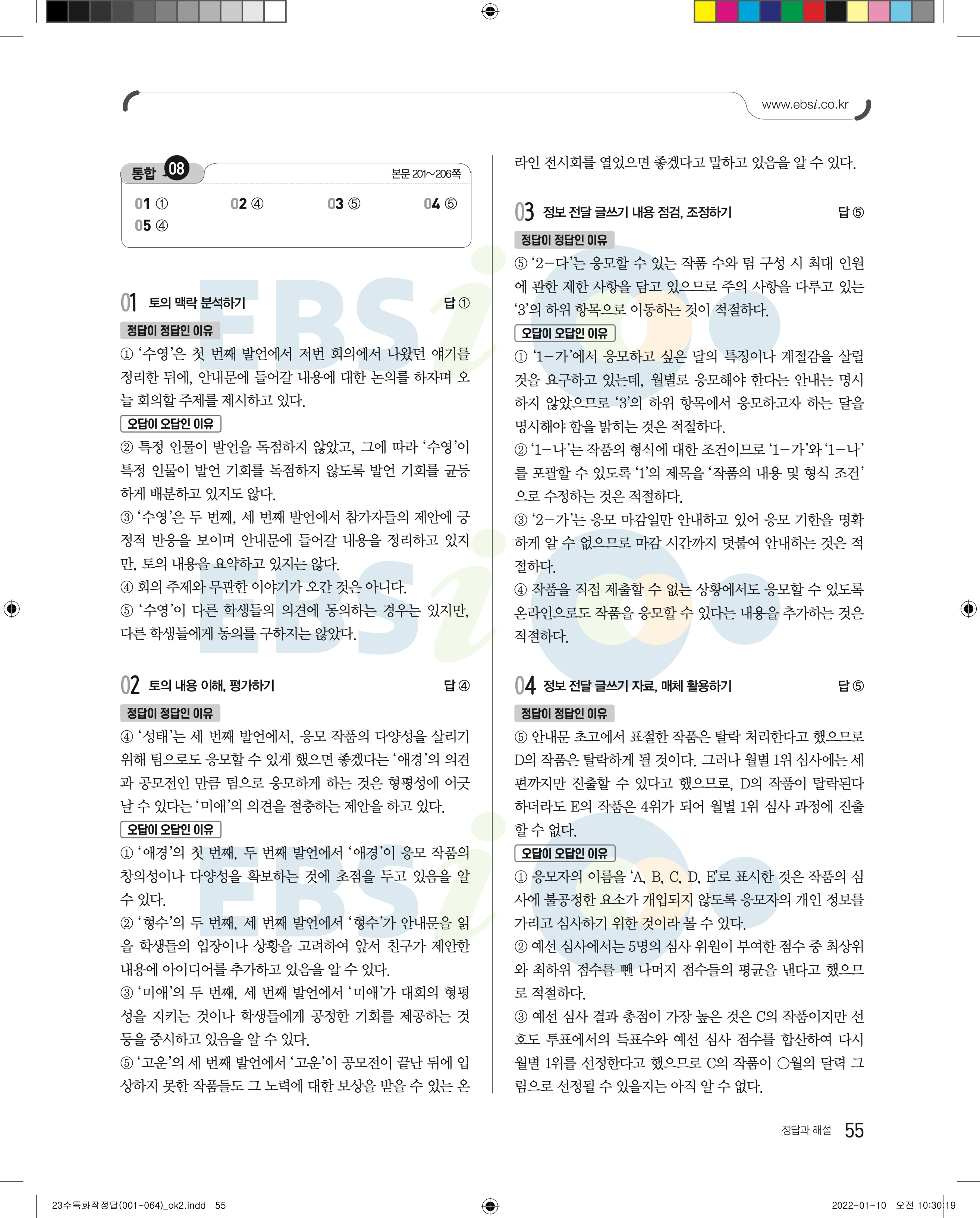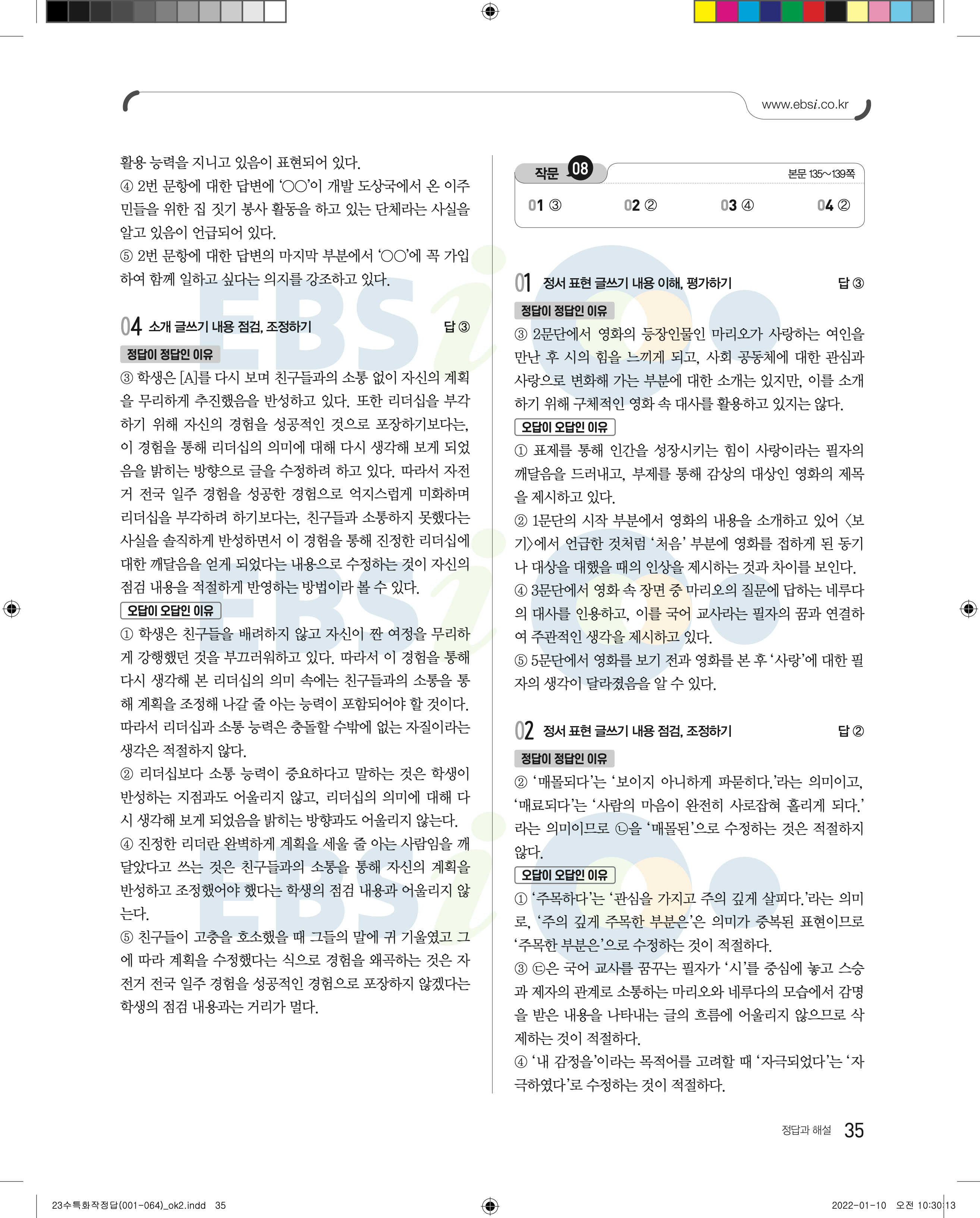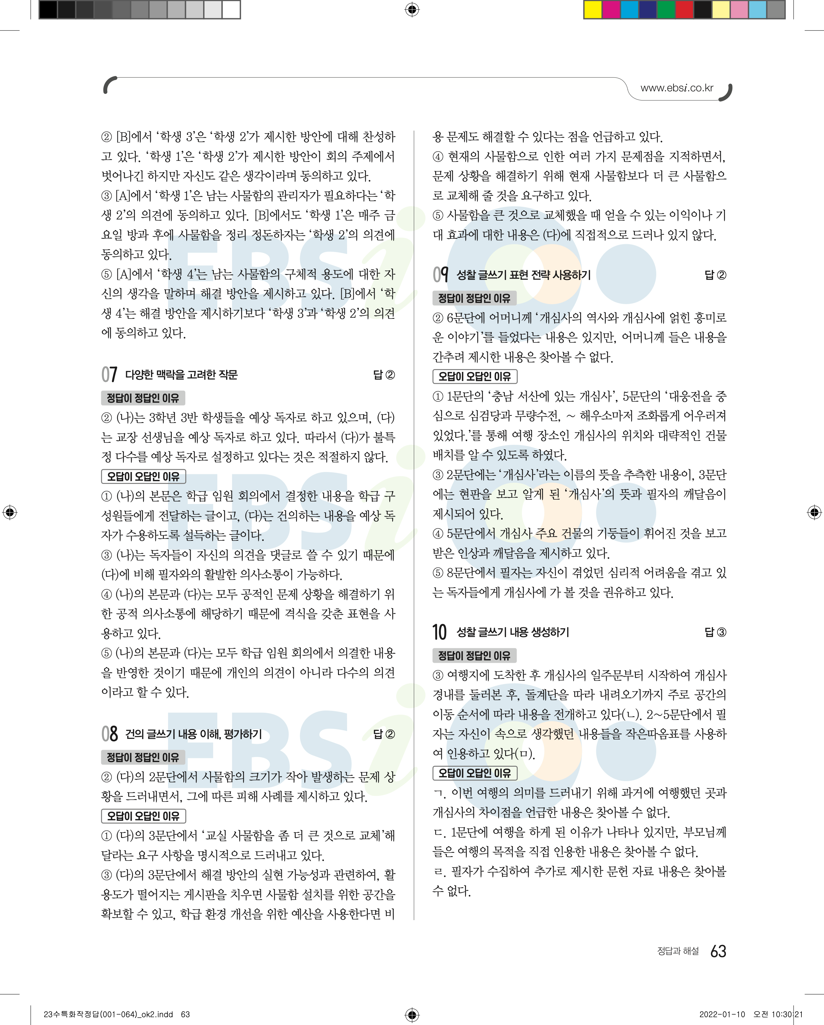 2023 수능특강 화법과작문 답지 수특화작답지 바로보는 사진답지 모바일최적화