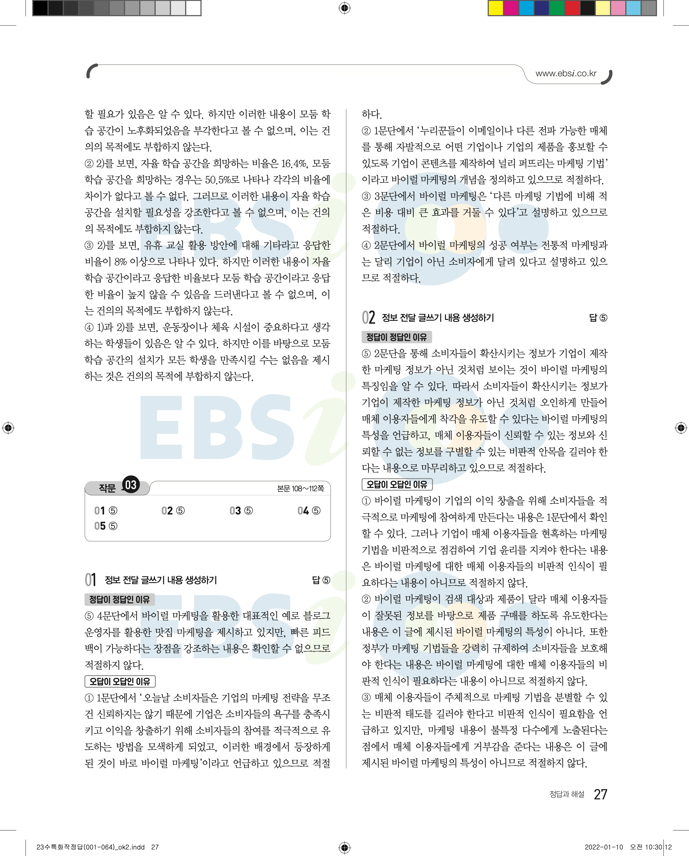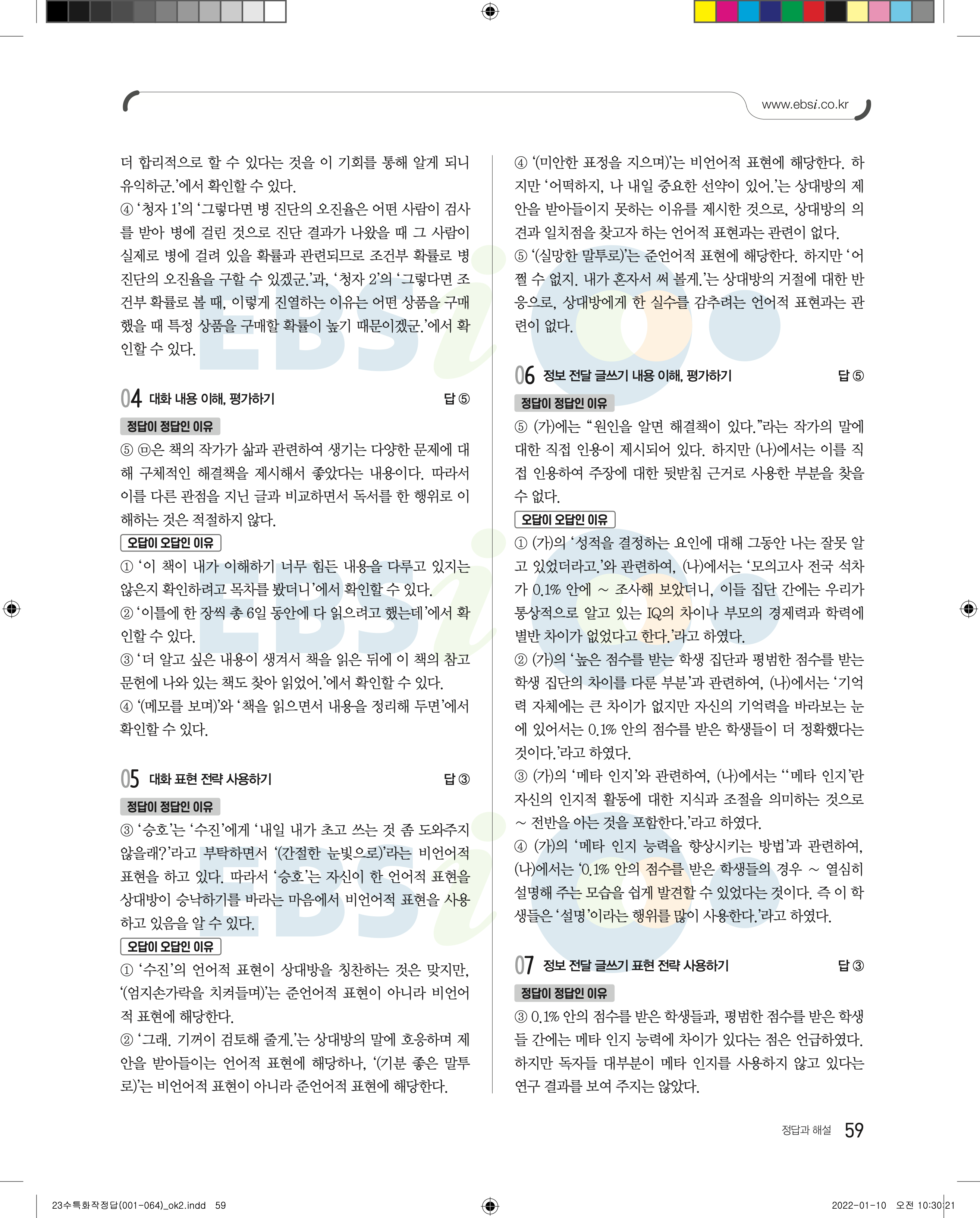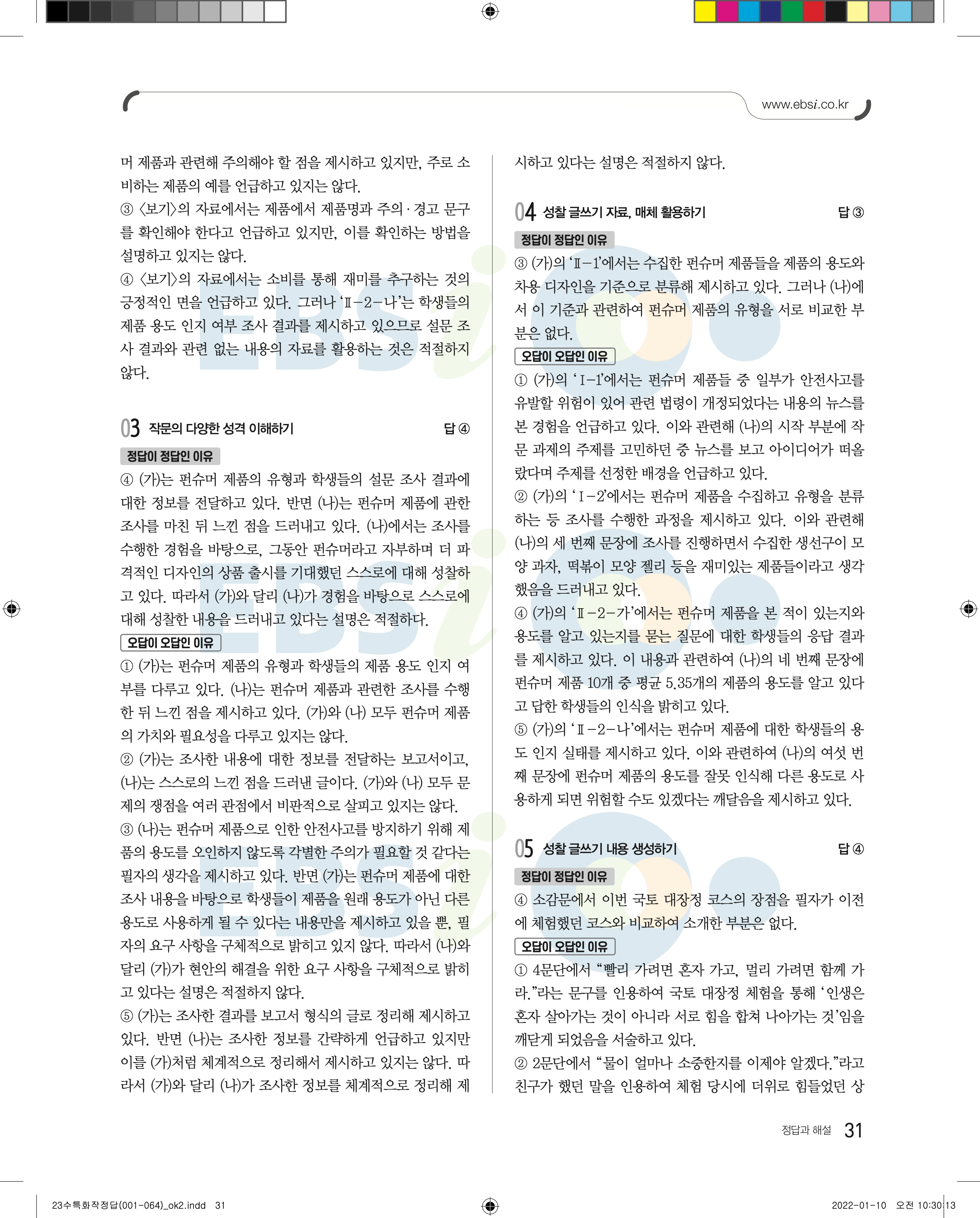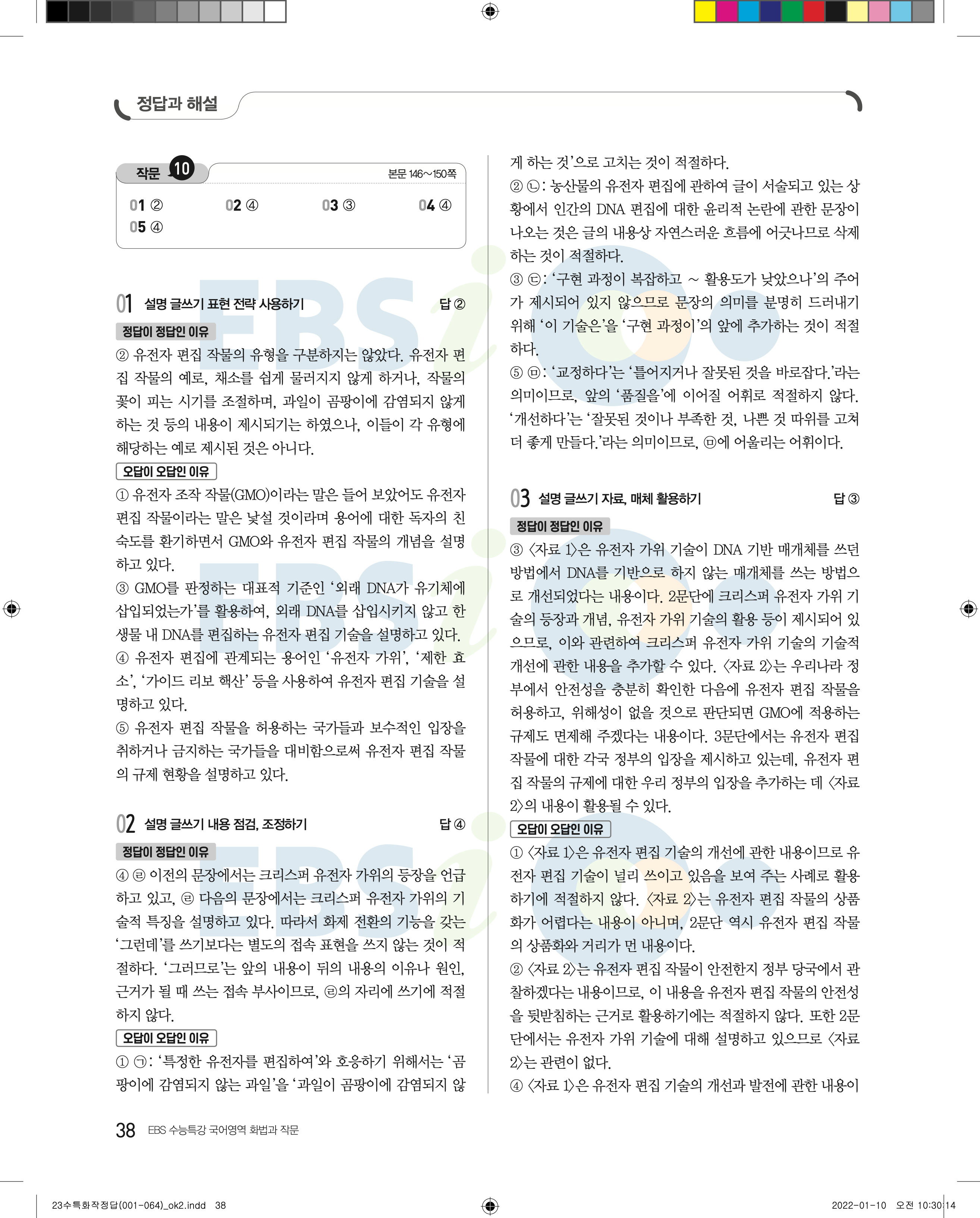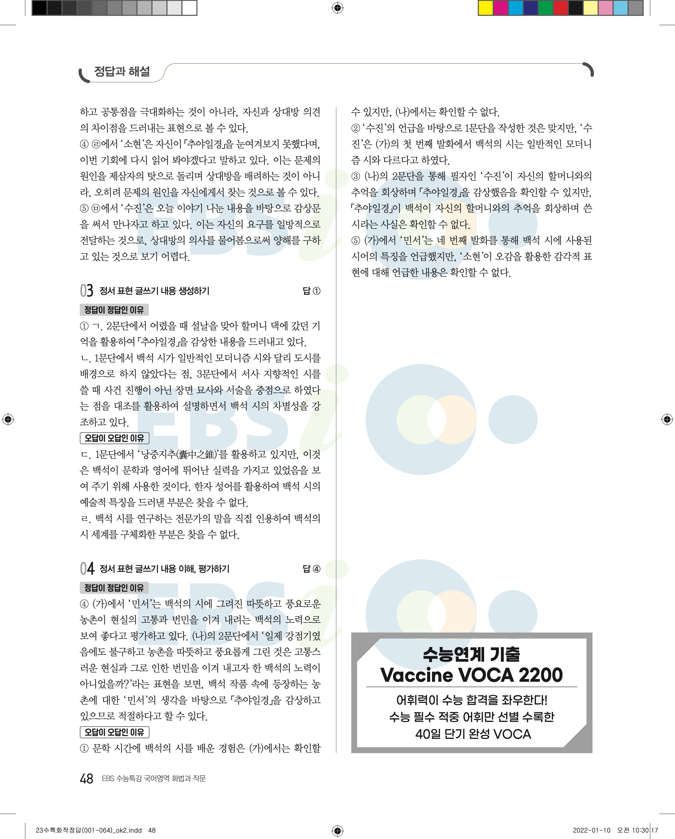 2023 수능특강 화법과작문 답지 수특화작답지 바로보는 사진답지 모바일최적화