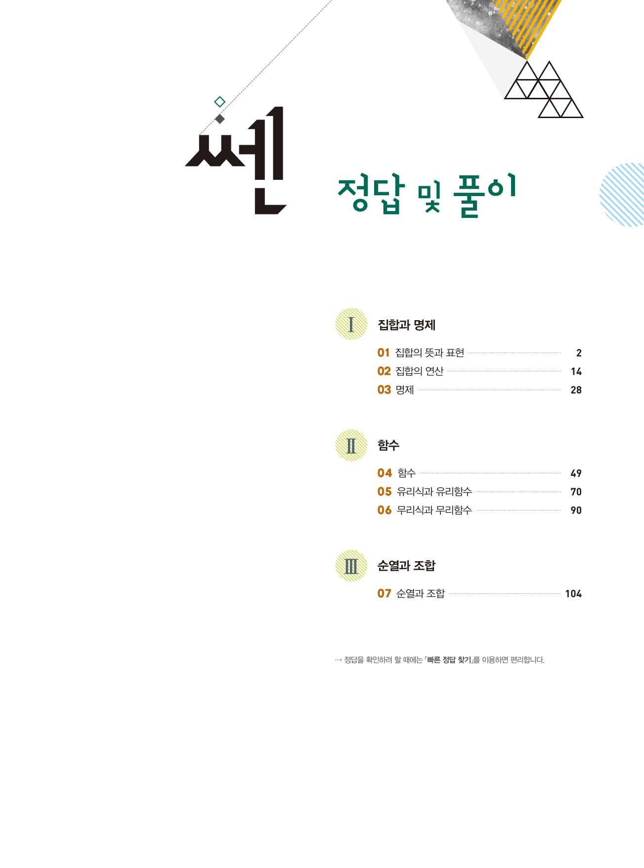 쎈 수학하는 고등학교 수학의 핵심 개념을 다루며, 다양한 문제 유형을 통해 실력을 쌓을 수 있는 교재입니다. 수학하 과정에서 복잡한 개념과 문제를 풀 때 어려움을 겪는 학생들에게 쎈 수학하 답지는 큰 도움이 됩니다. 답지를 통해 문제의 정확한 풀이 과정과 해설을 확인할 수 있으며, 이를 활용해 학습 성과를 극대화할 수 있습니다.