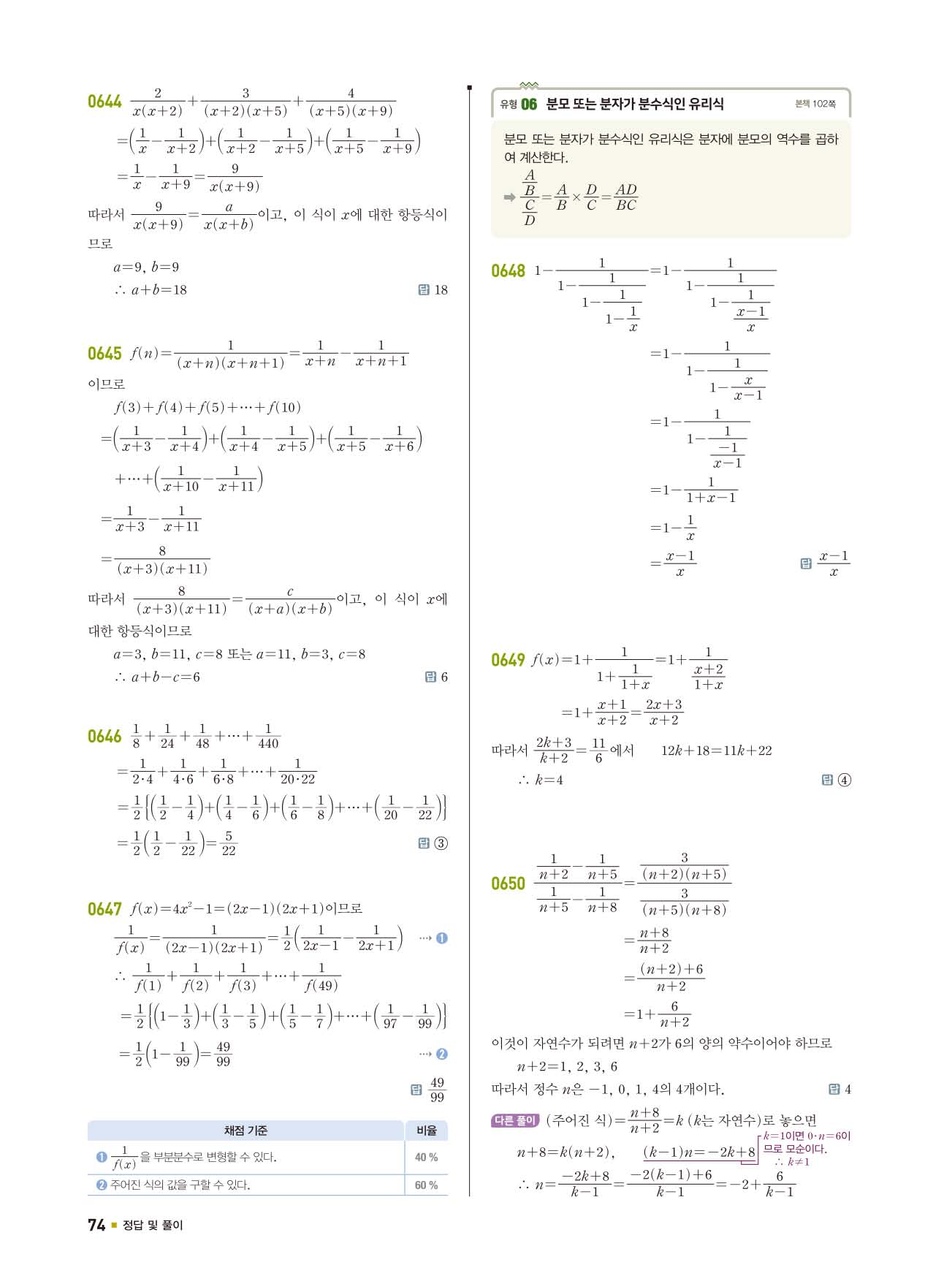 답지를 통해 문제를 풀어보고 자신만의 학습 계획을 세울 수 있습니다. 스스로 풀어본 후 답지의 풀이 과정을 확인함으로써, 부족한 부분을 보완하고 수학적 사고력을 기를 수 있습니다.