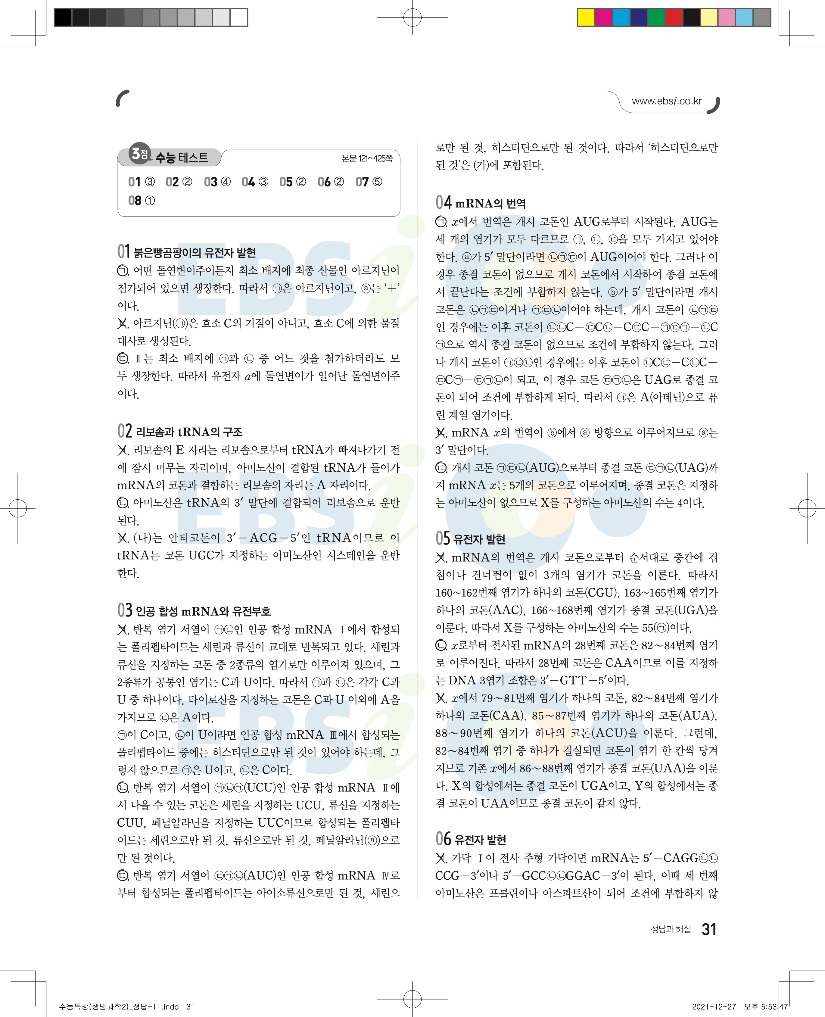 2023 수능특강 생명과학2 답지 수특생물2답지 바로보는 사진답지 모바일최적화