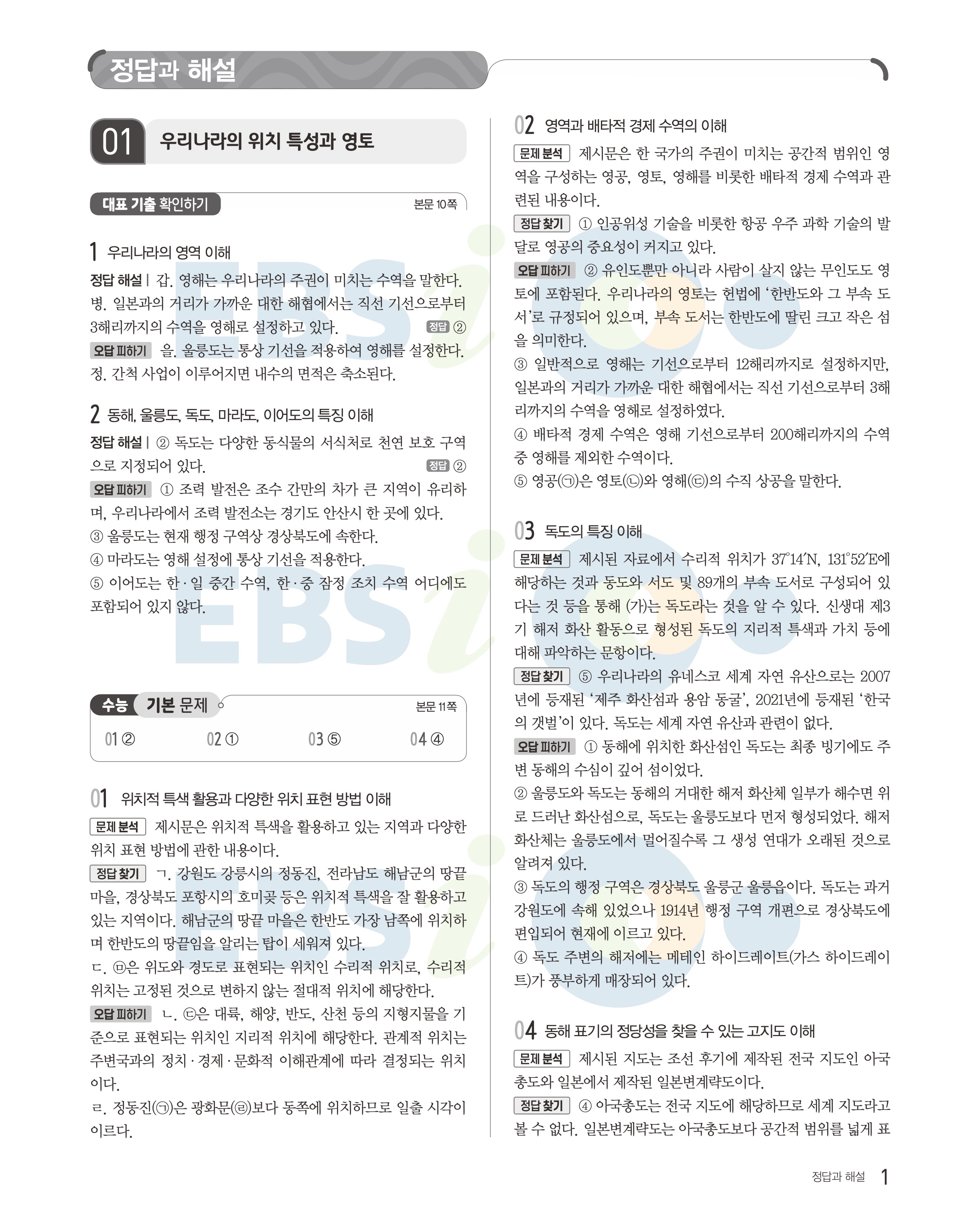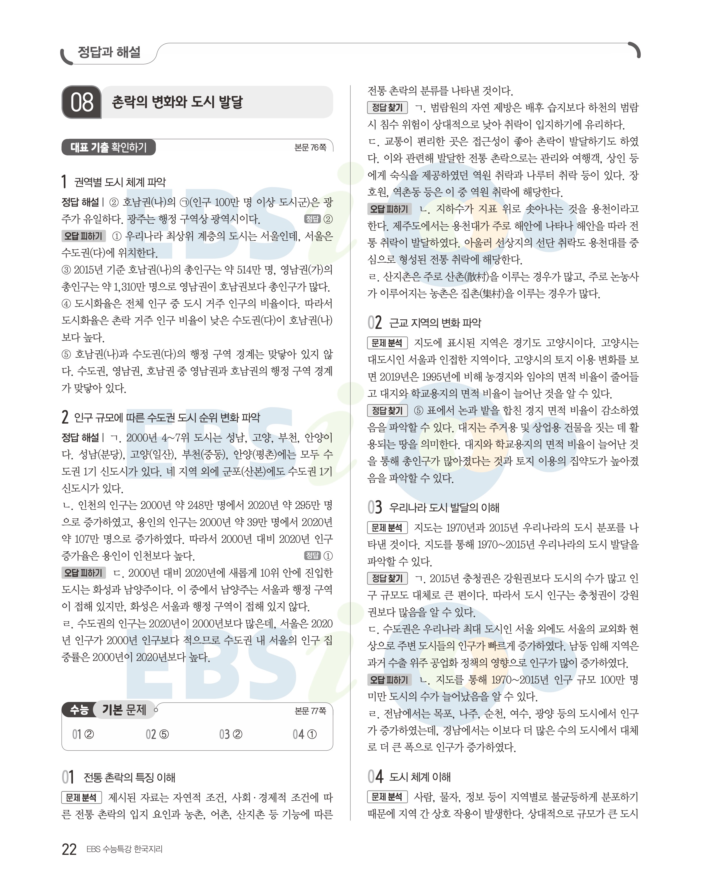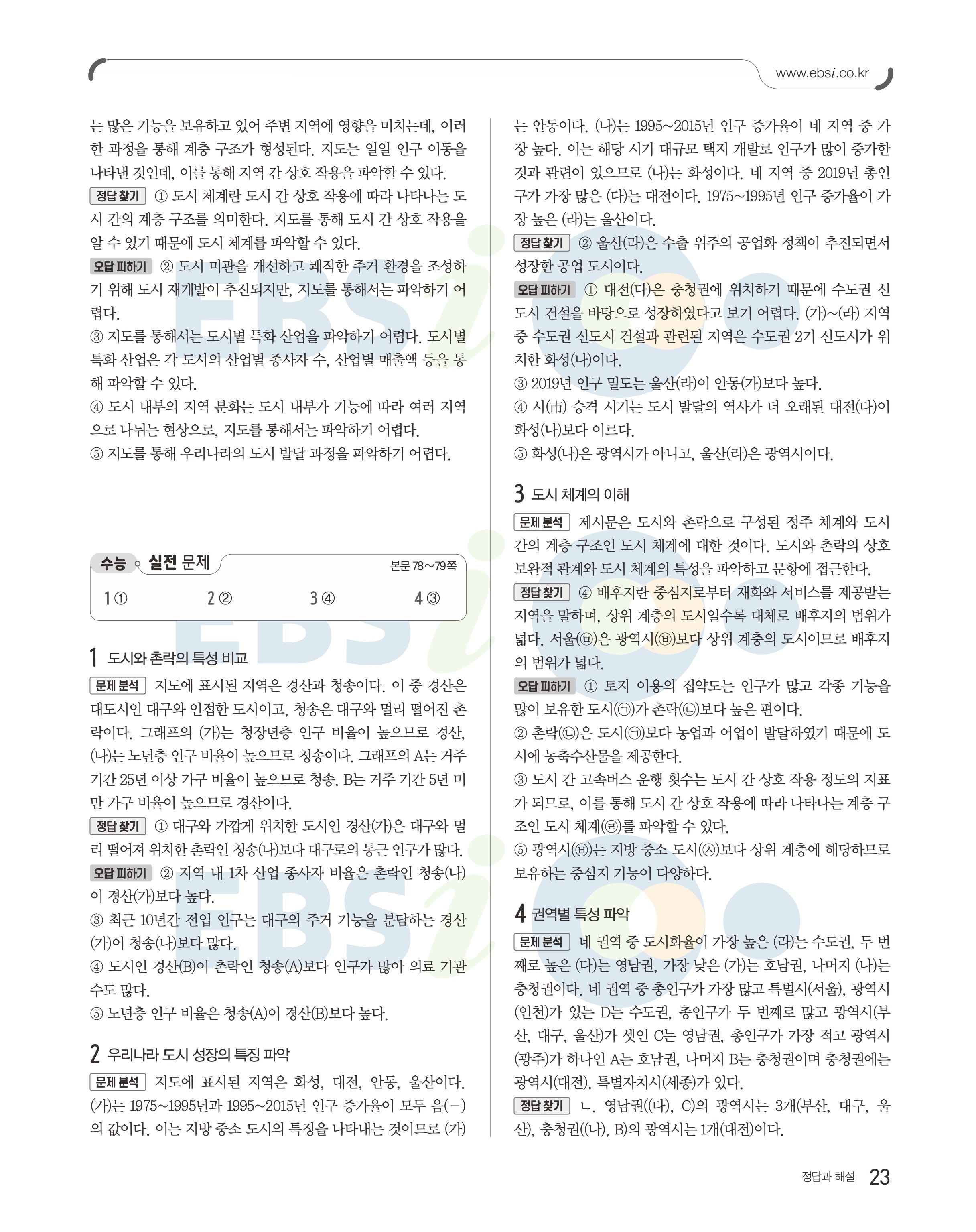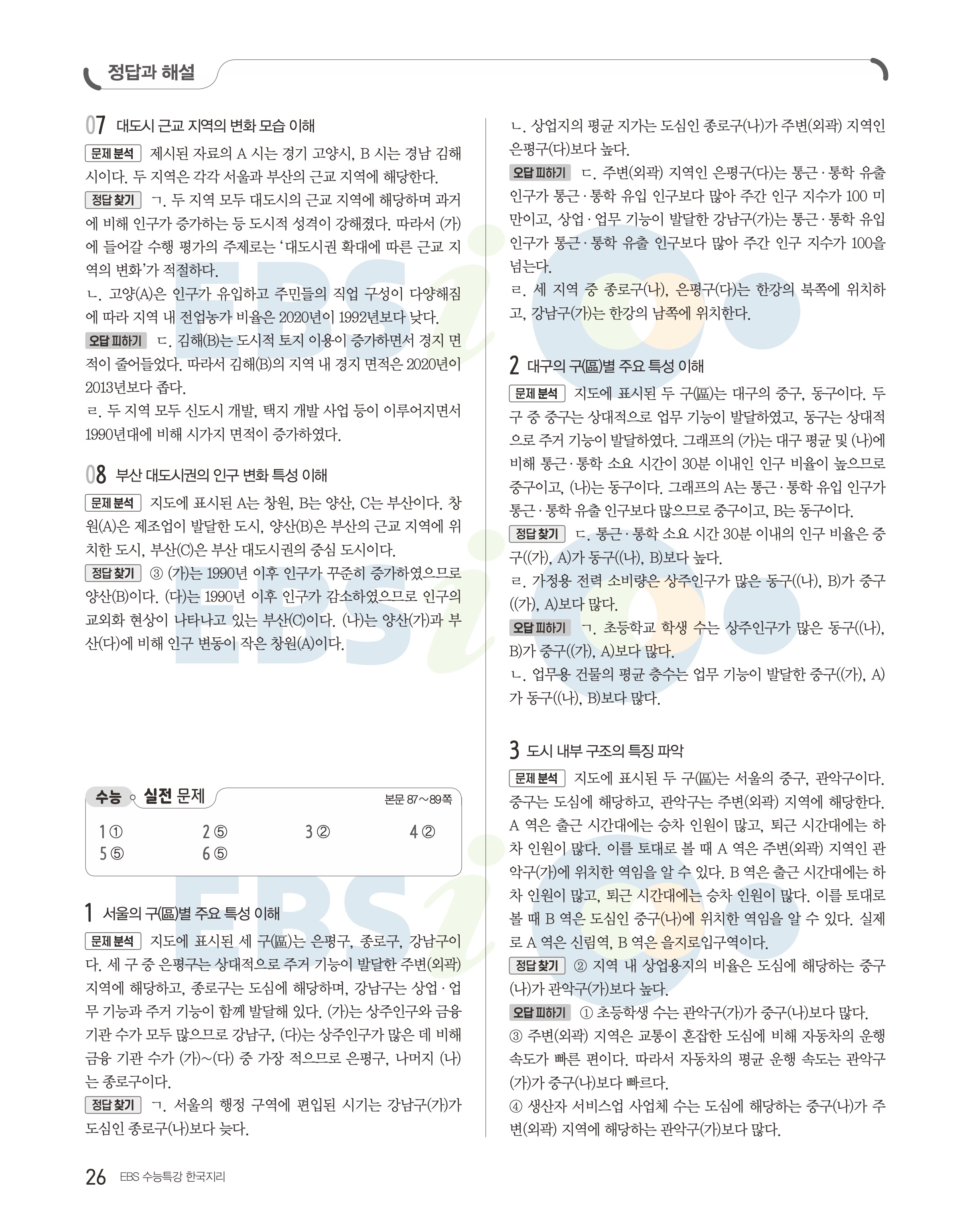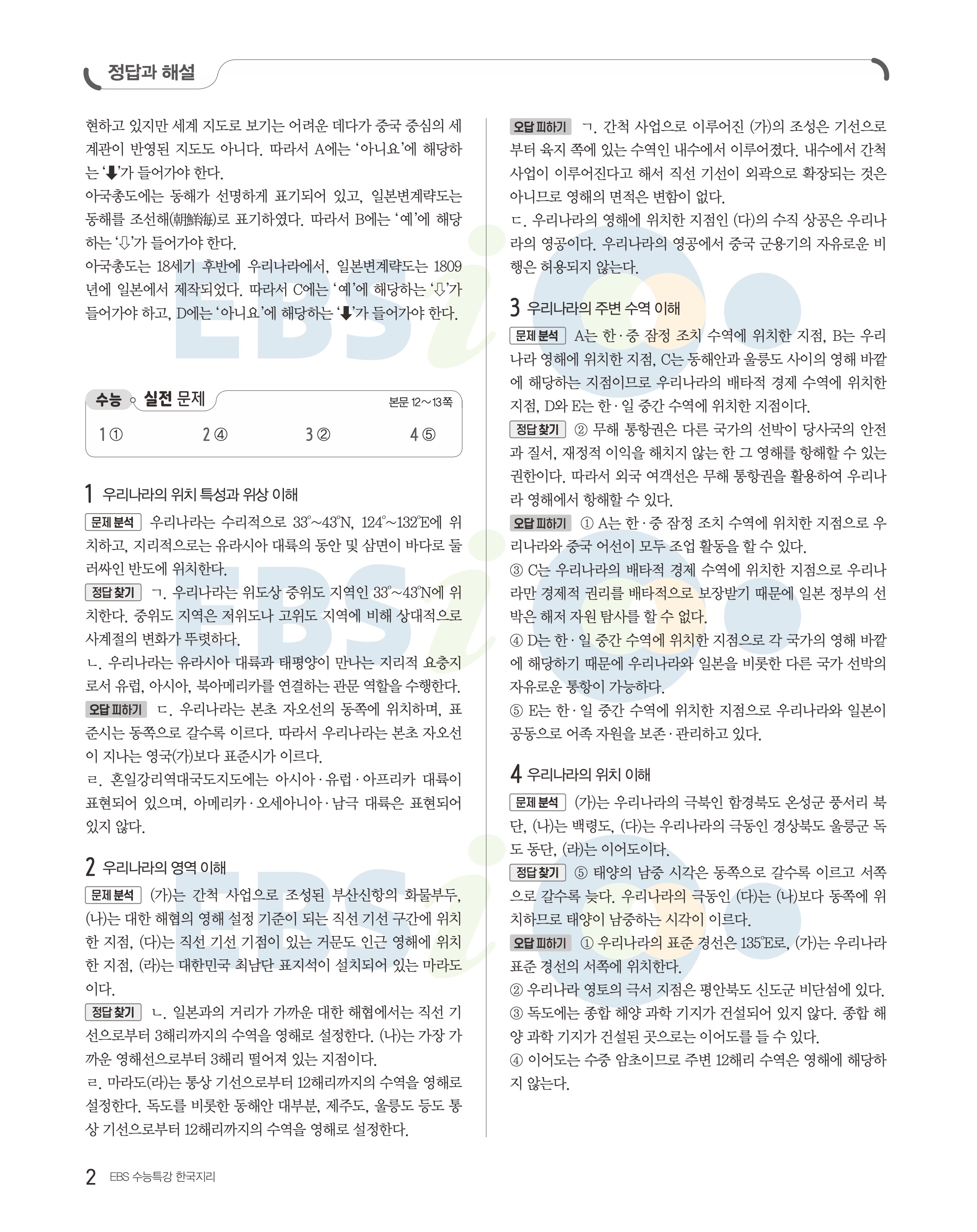 2023 수능특강 한국지리 답지 수특한지답지 바로보는 사진답지 모바일최적화