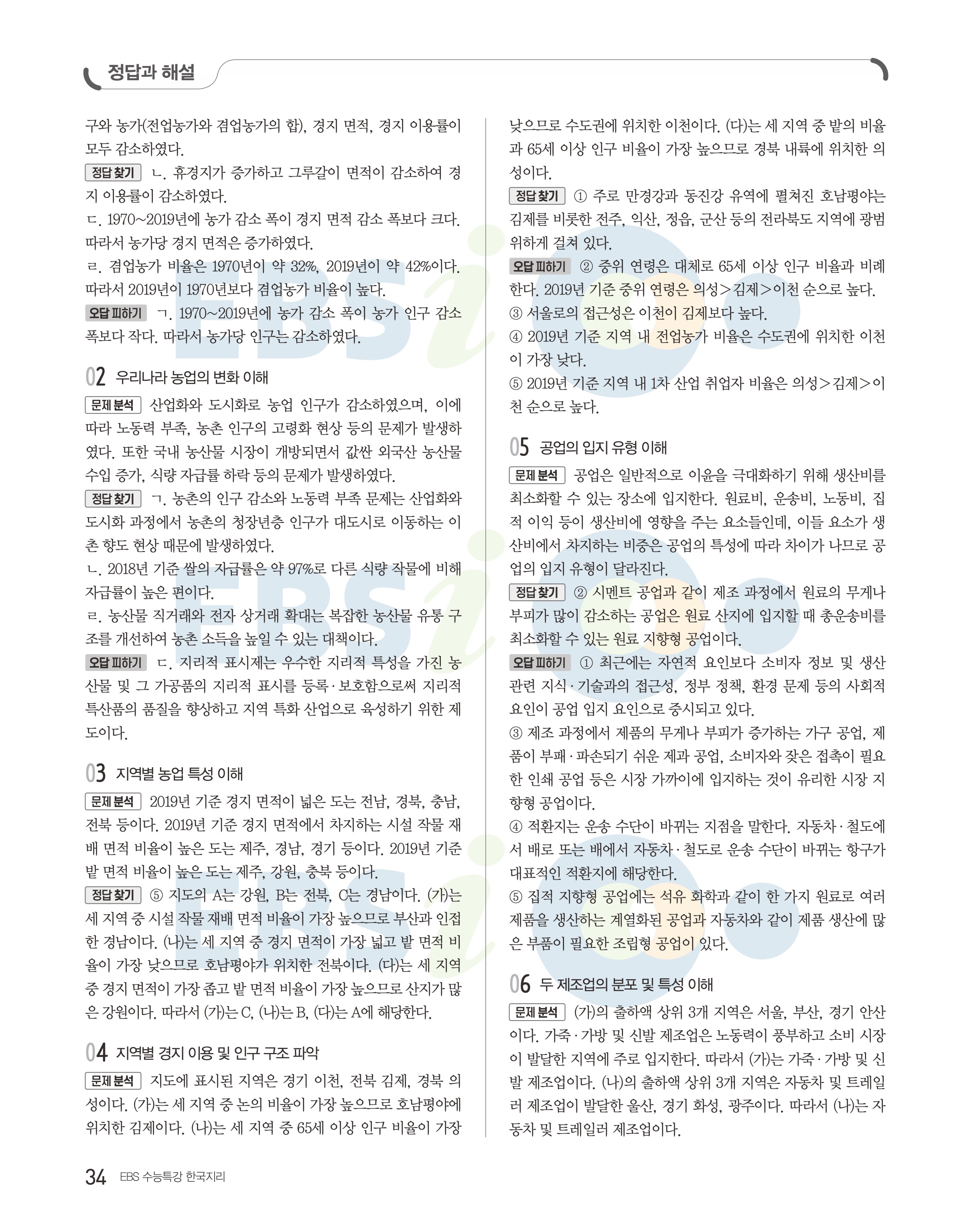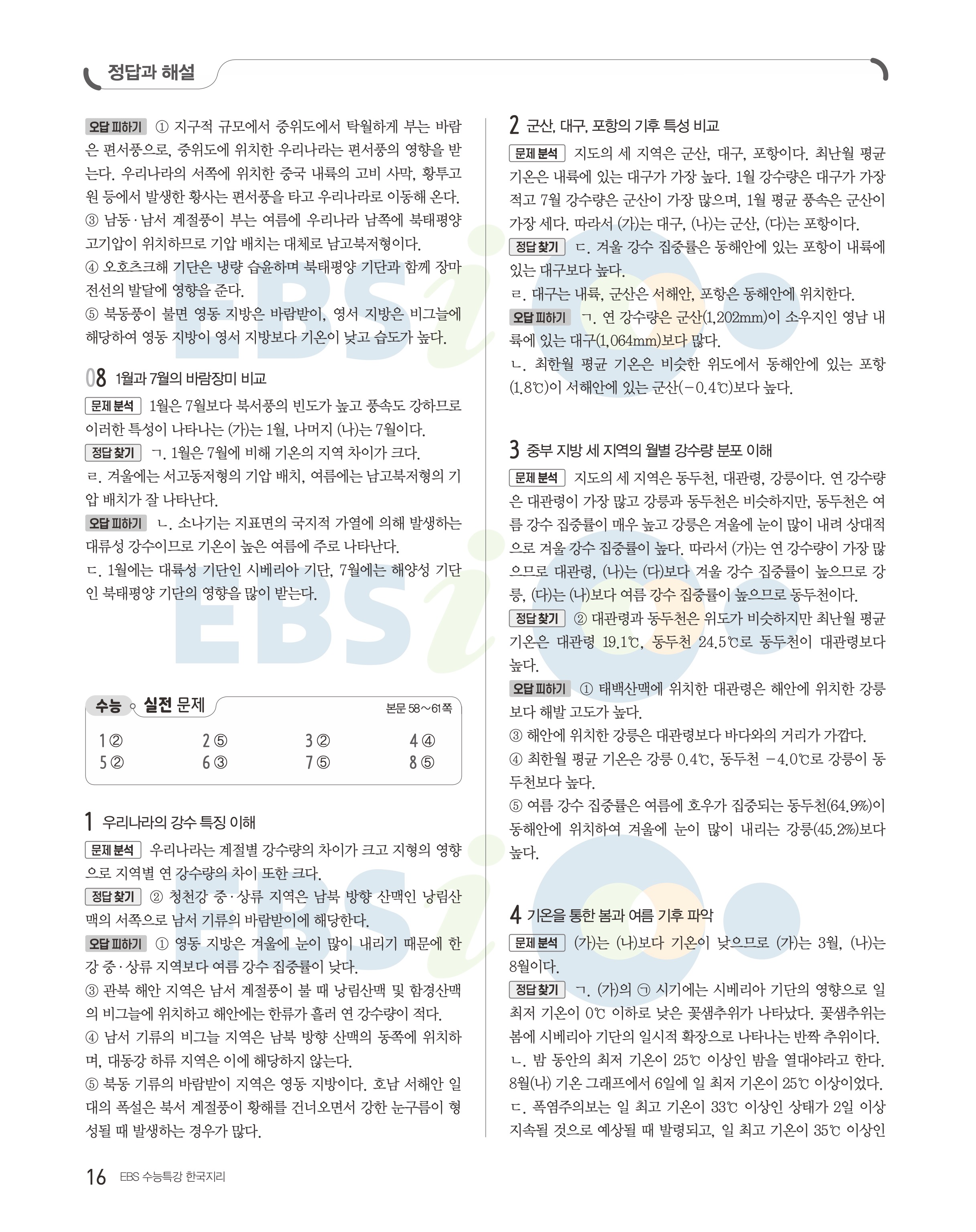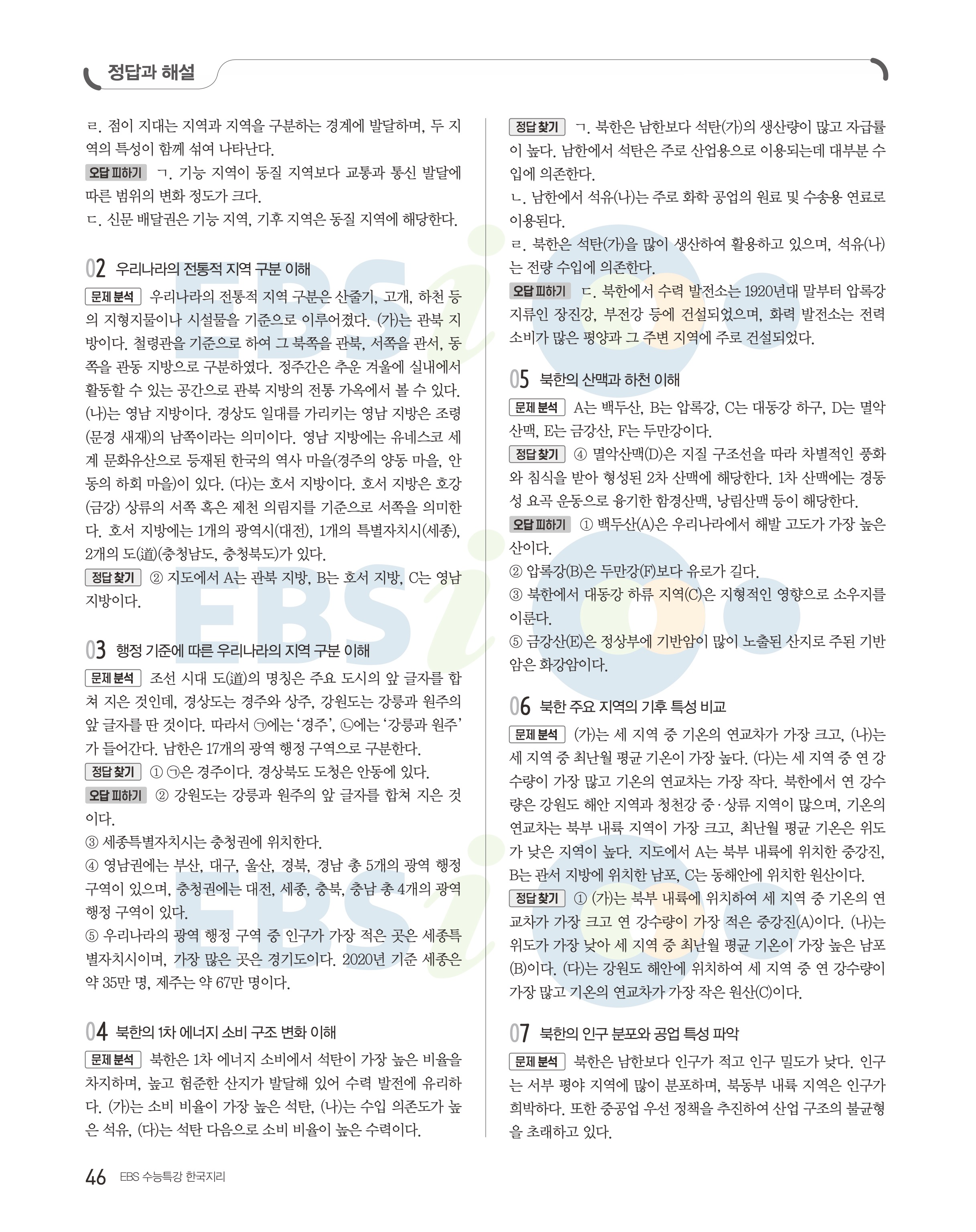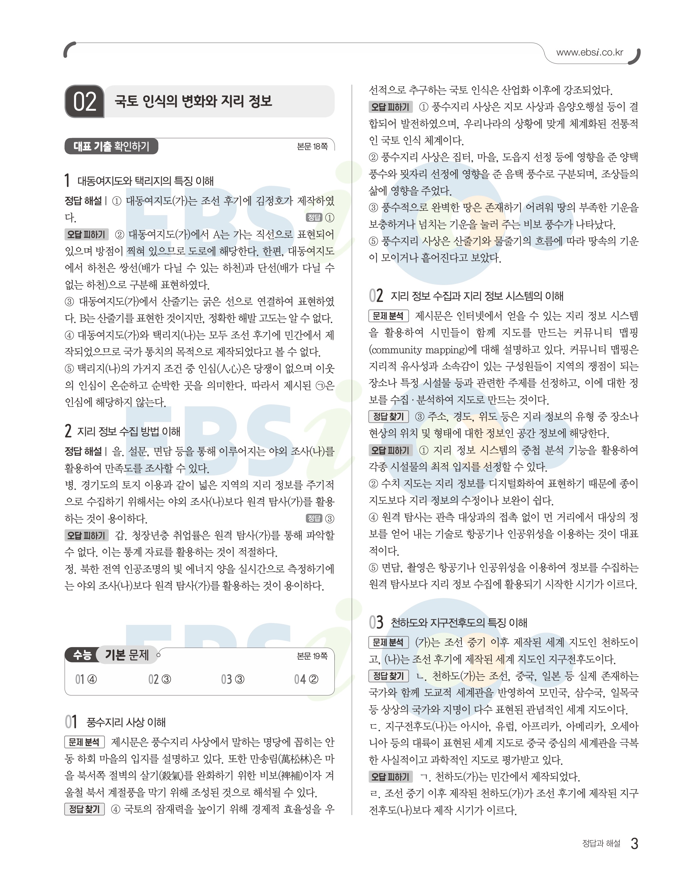 2023 수능특강 한국지리 답지 수특한지답지 바로보는 사진답지 모바일최적화