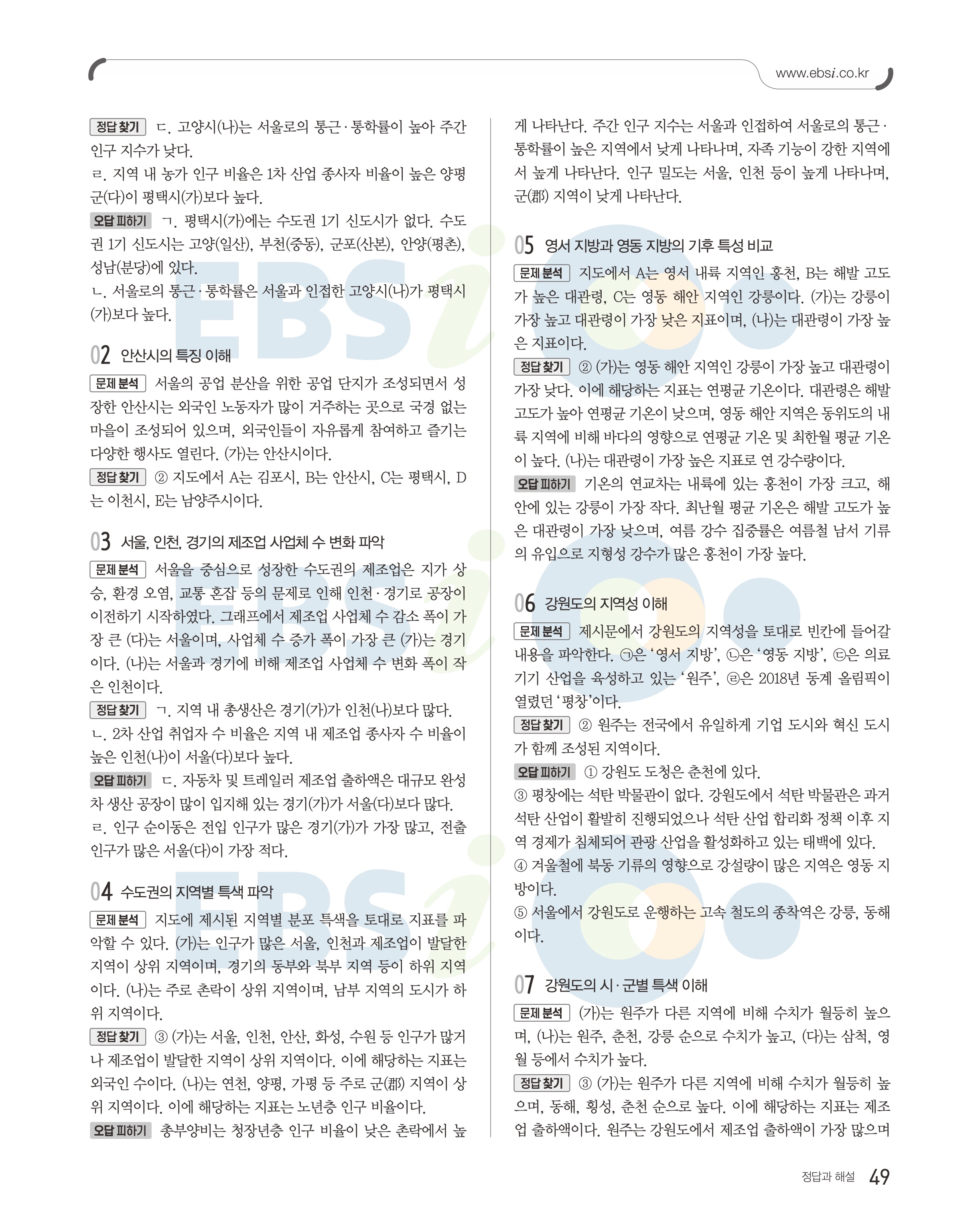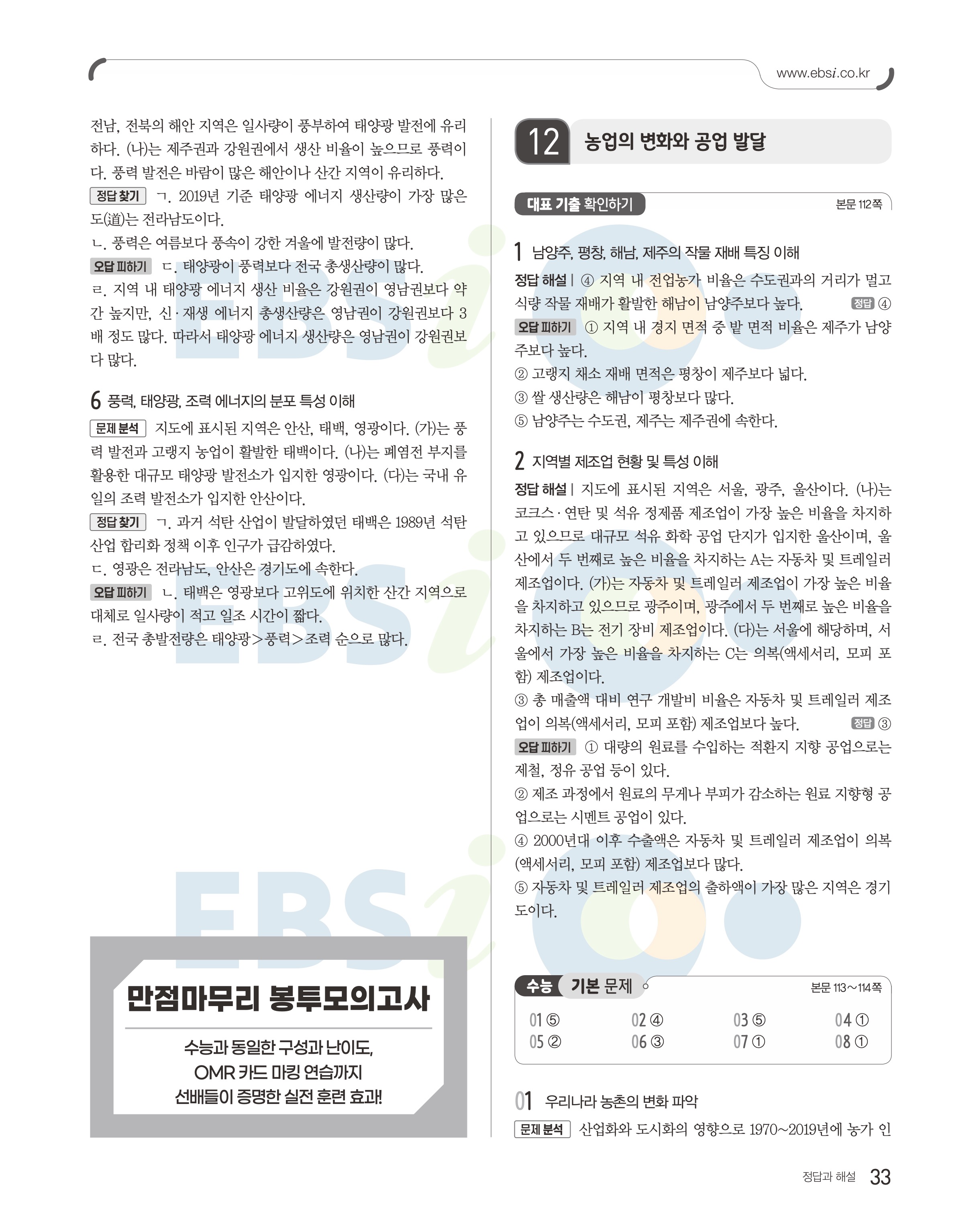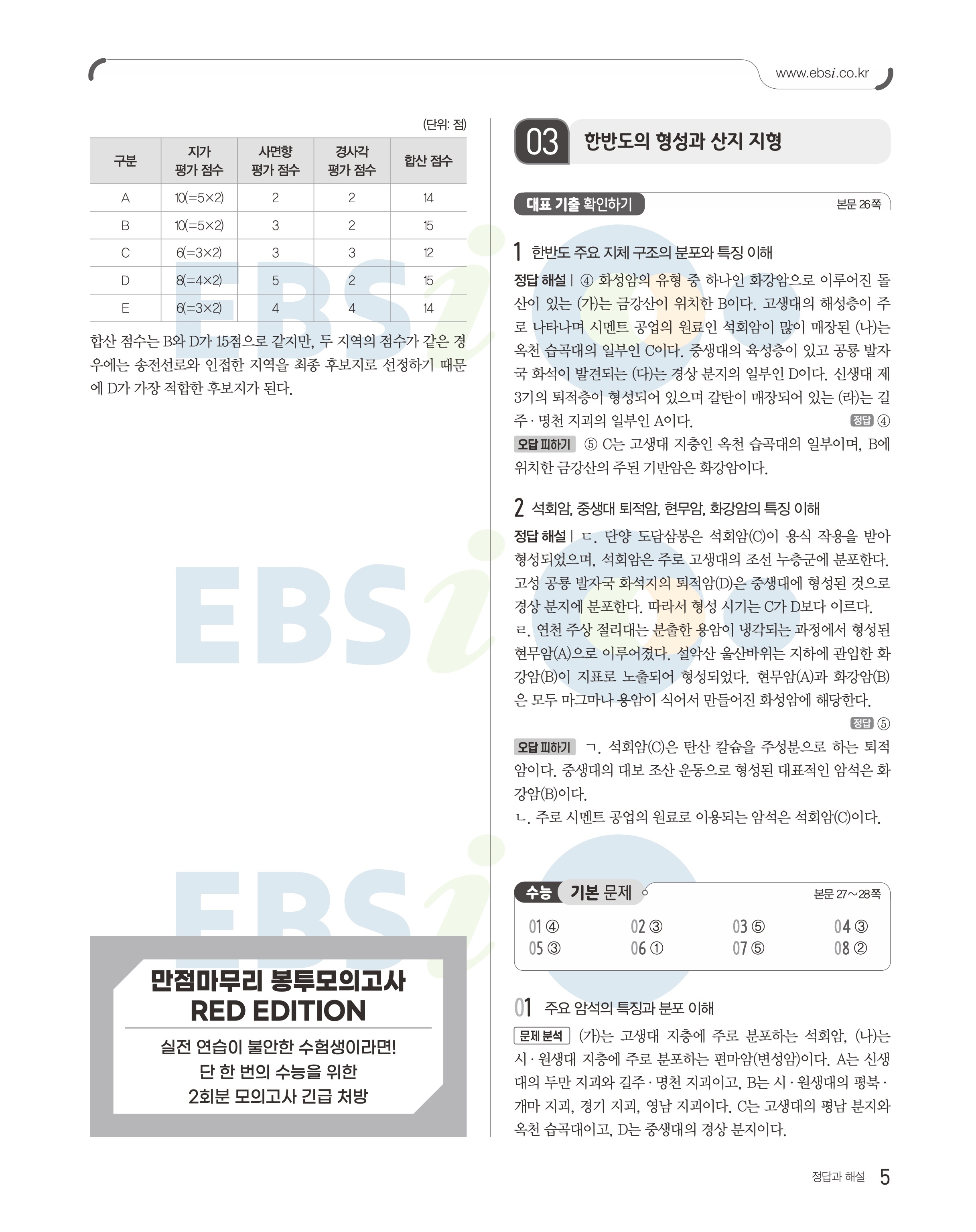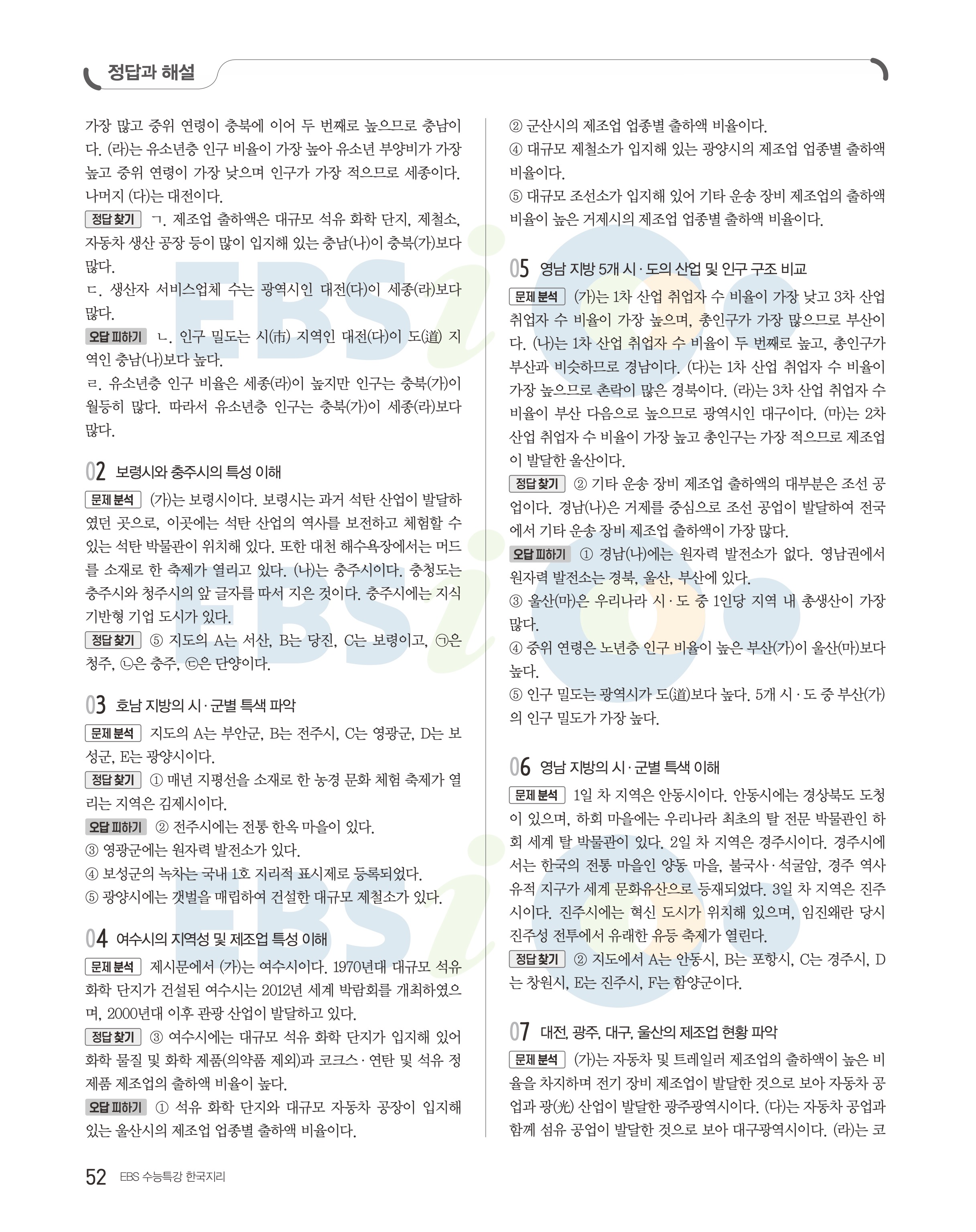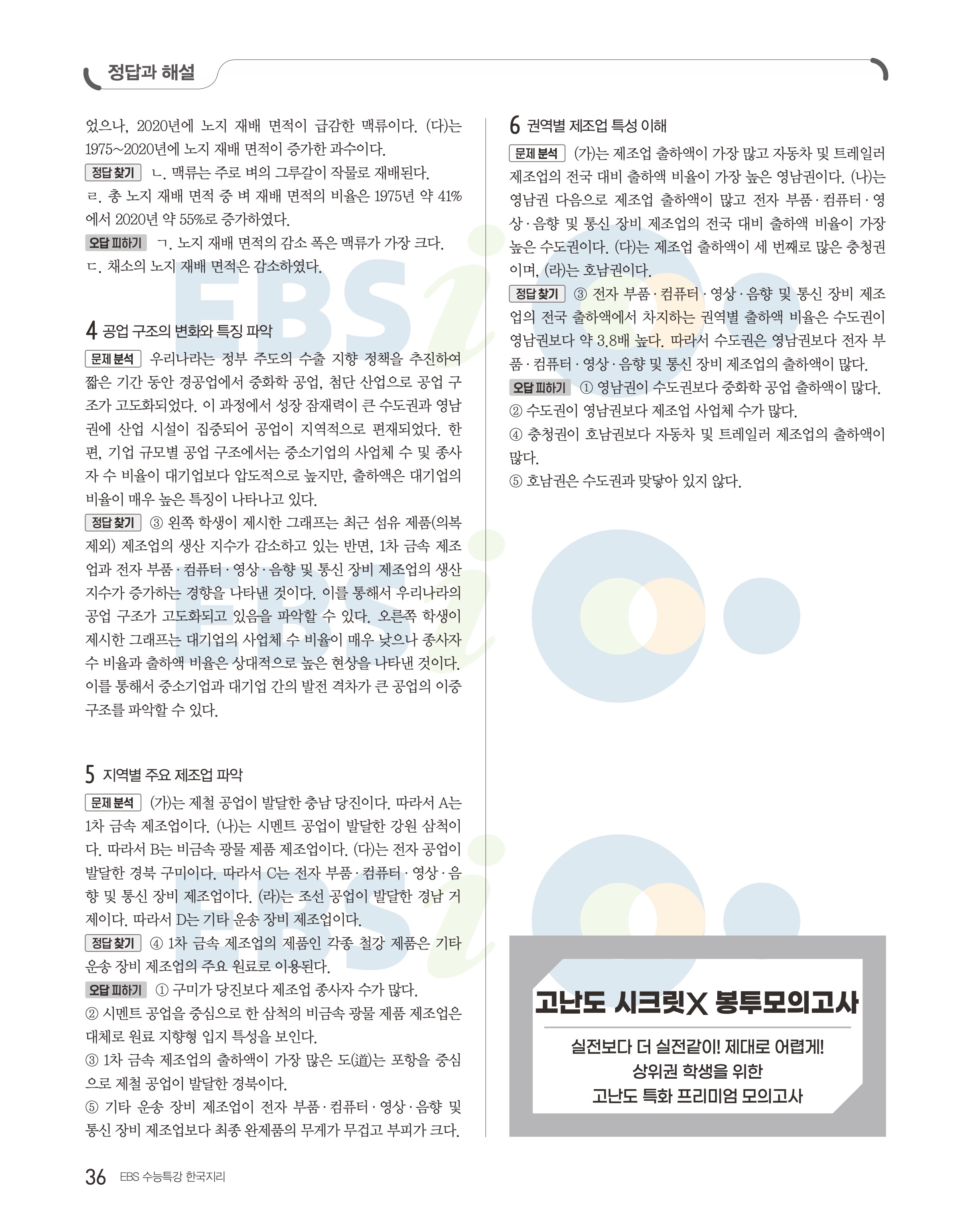 2023 수능특강 한국지리 답지 수특한지답지 바로보는 사진답지 모바일최적화