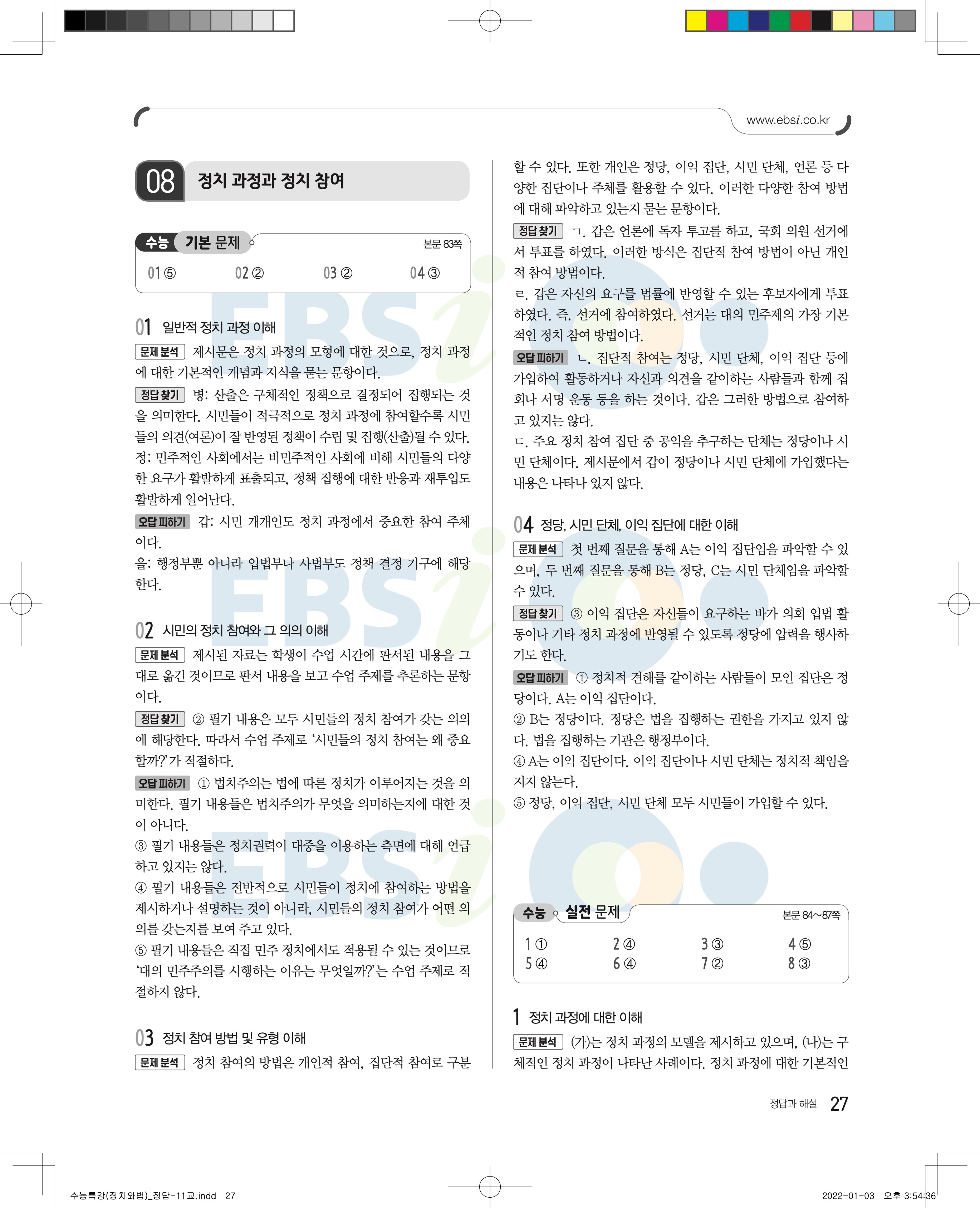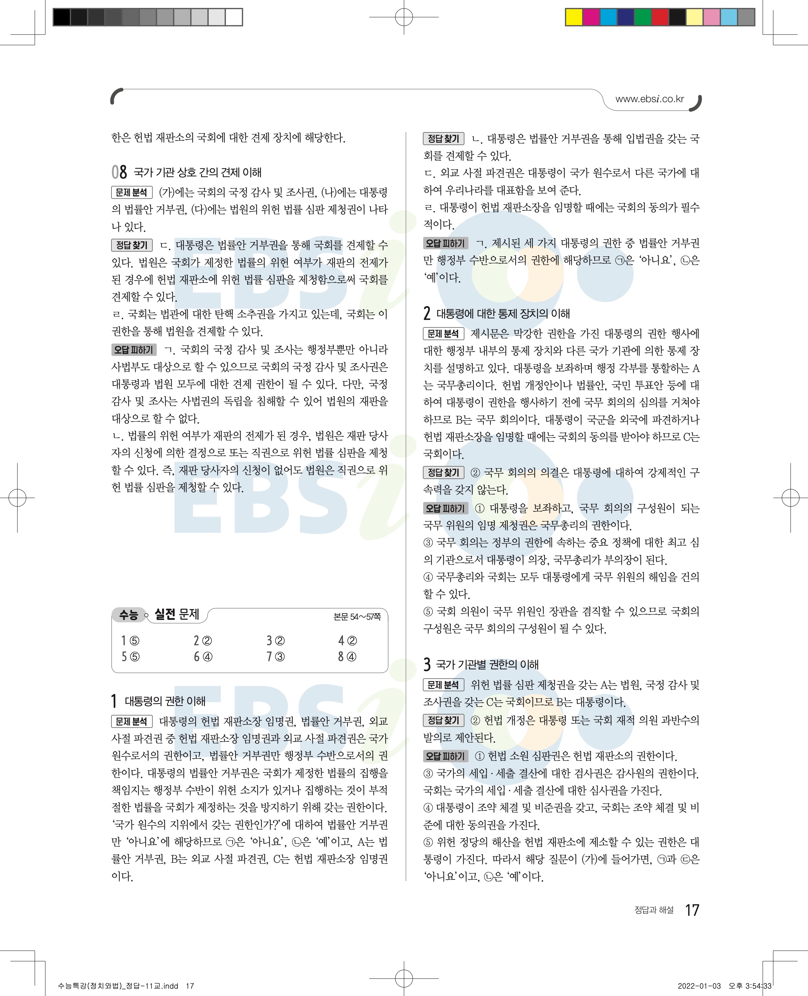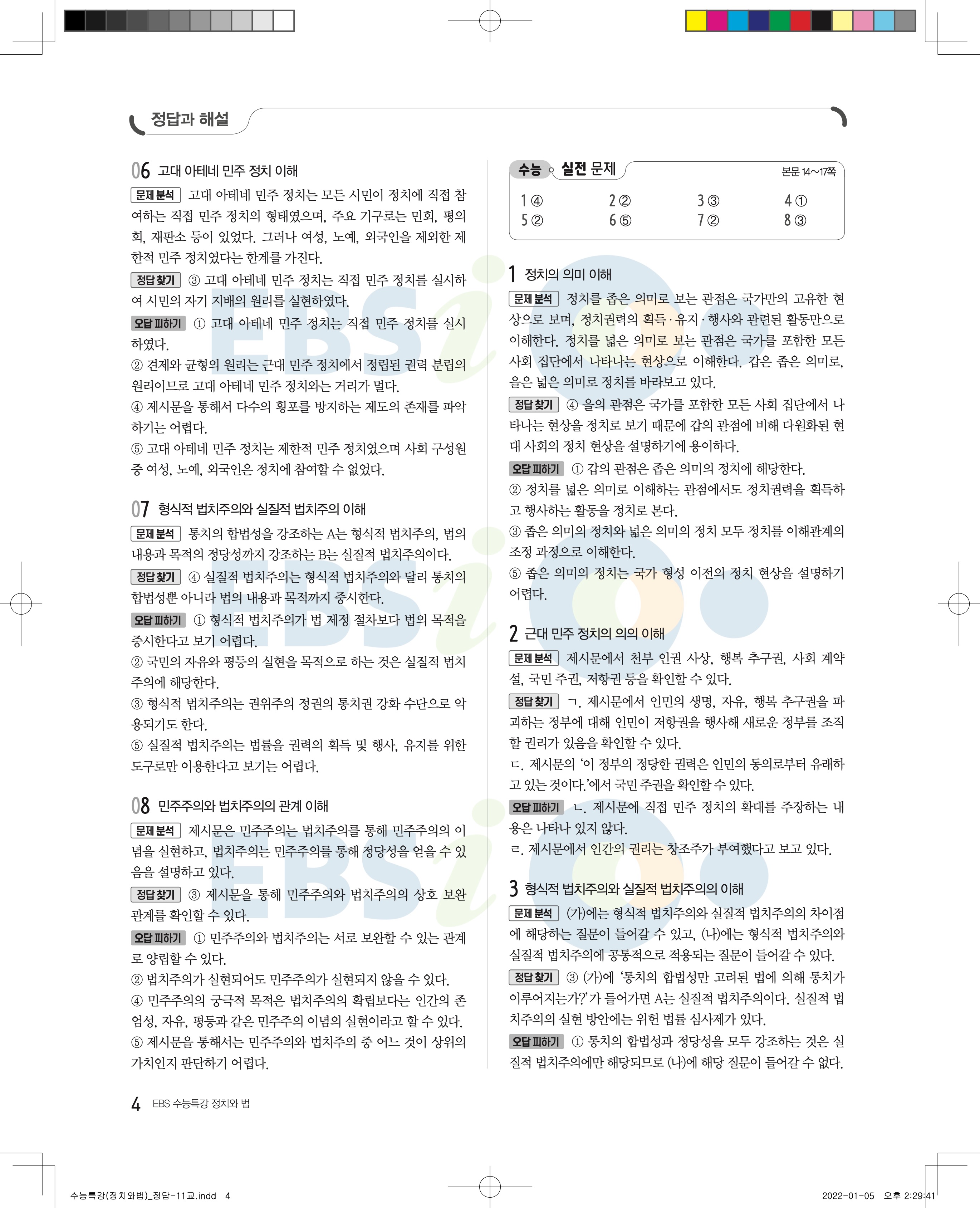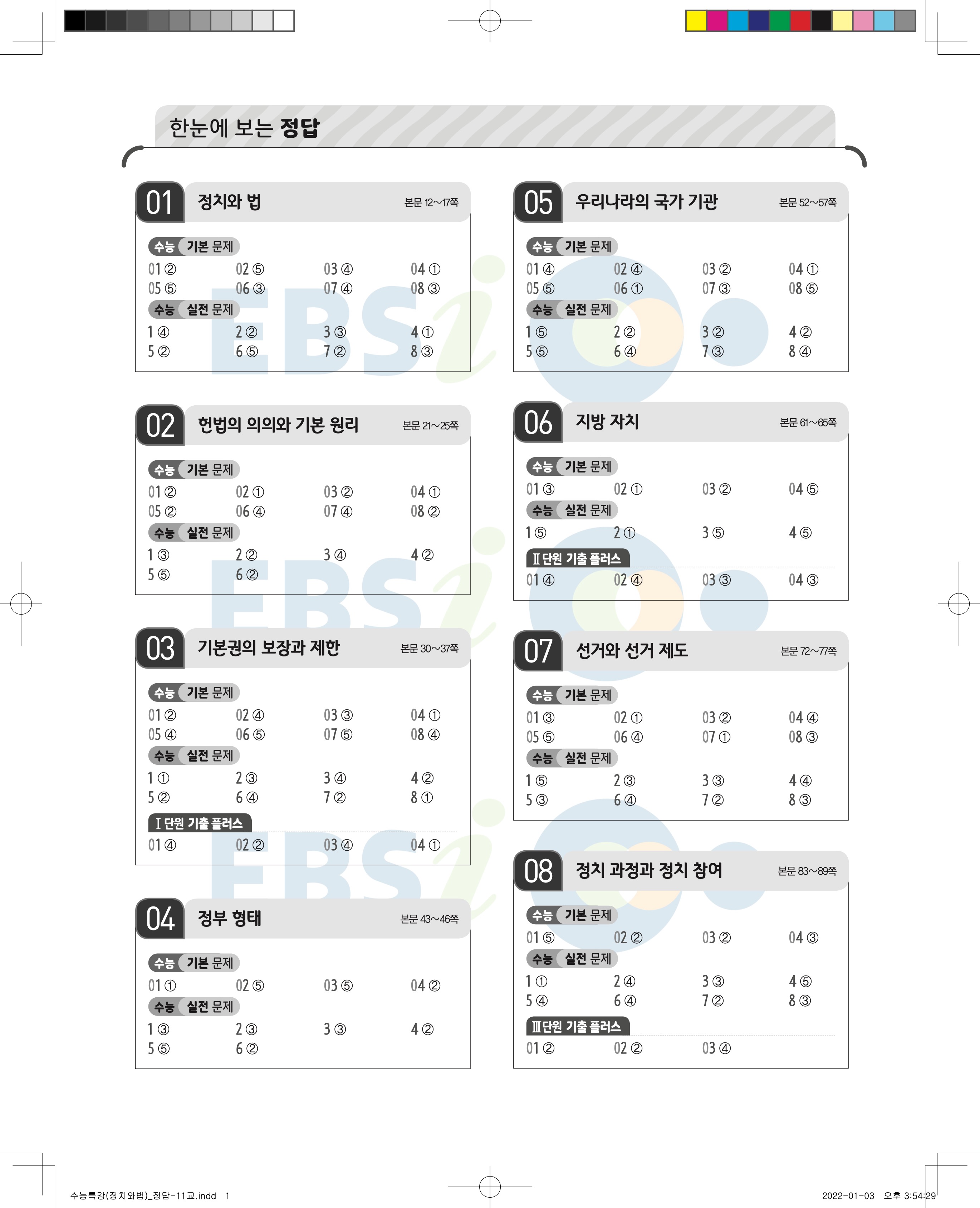 2023 수능특강 정치와법 답지 수특정법답지 바로보는 사진답지 모바일최적화