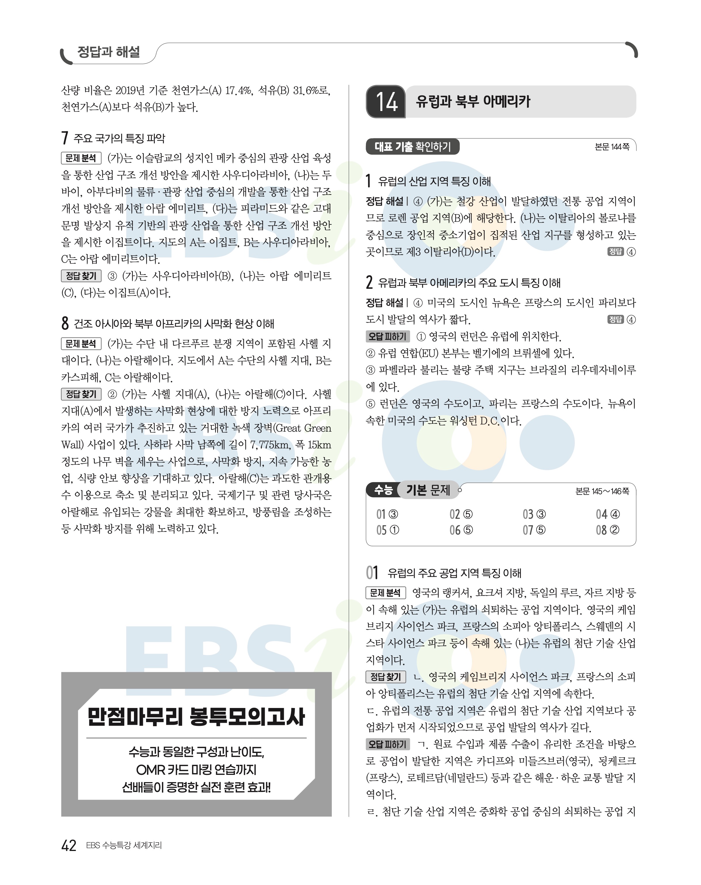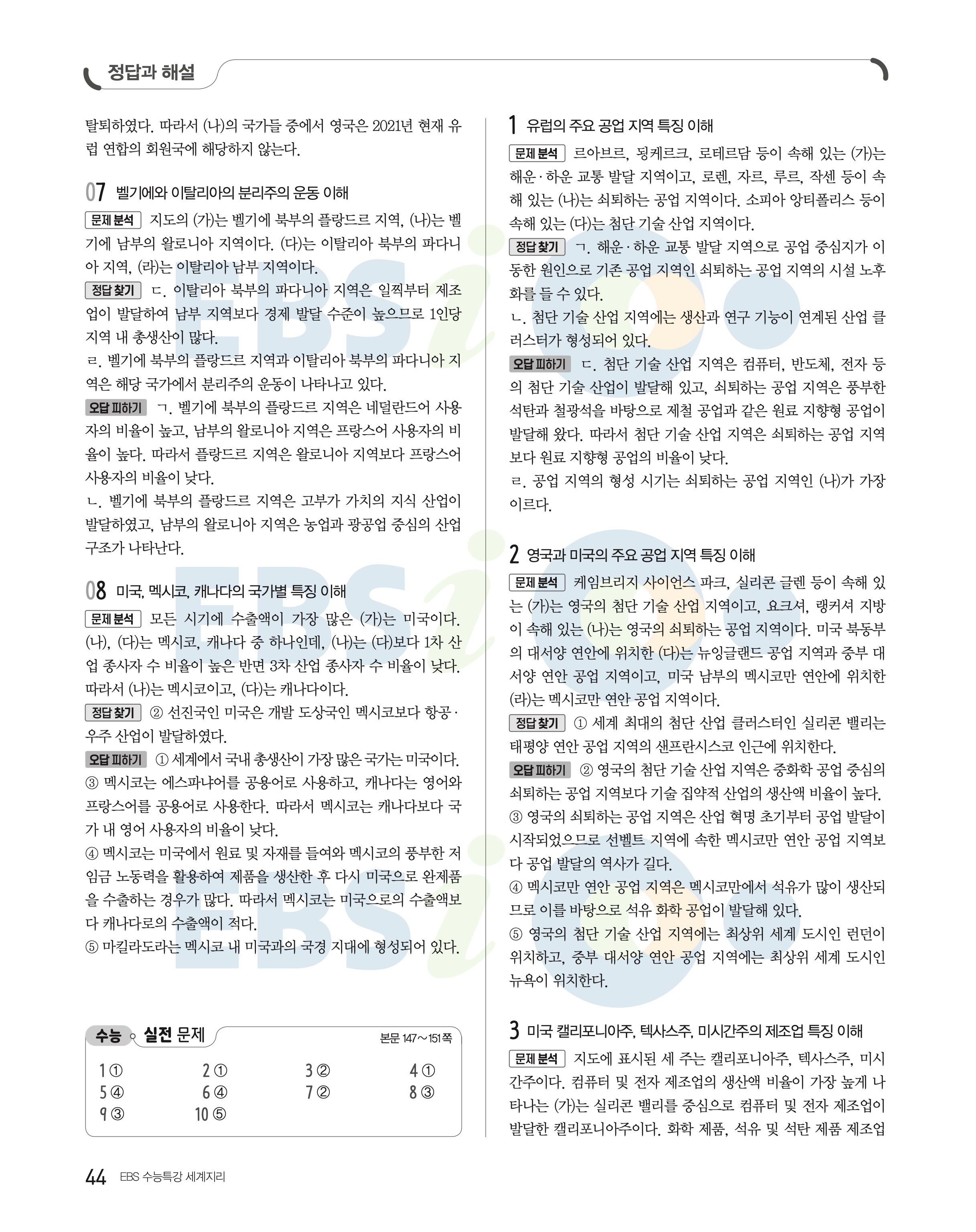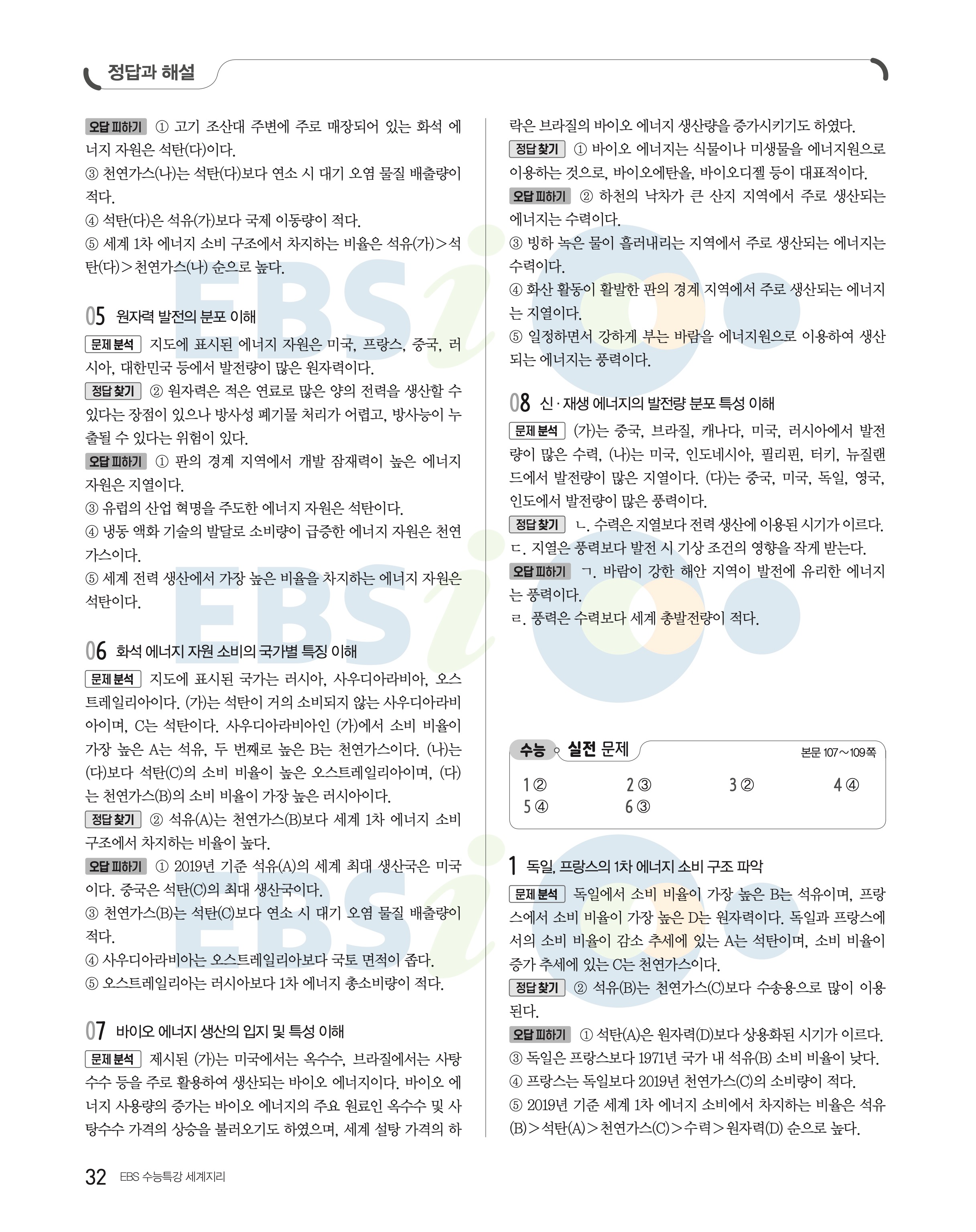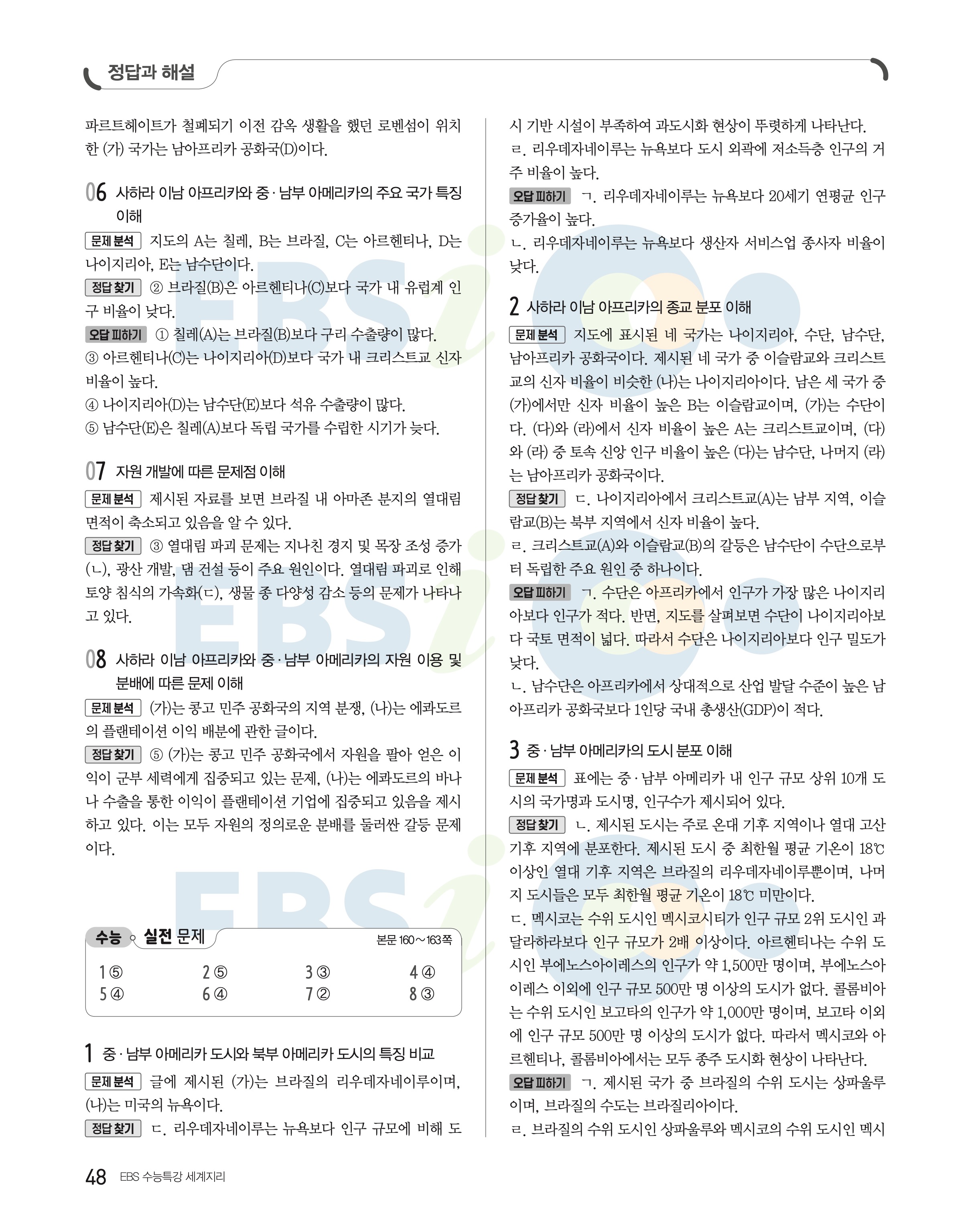 2023 수능특강 세계지리 답지 수특세지답지 바로보는 사진답지 모바일최적화