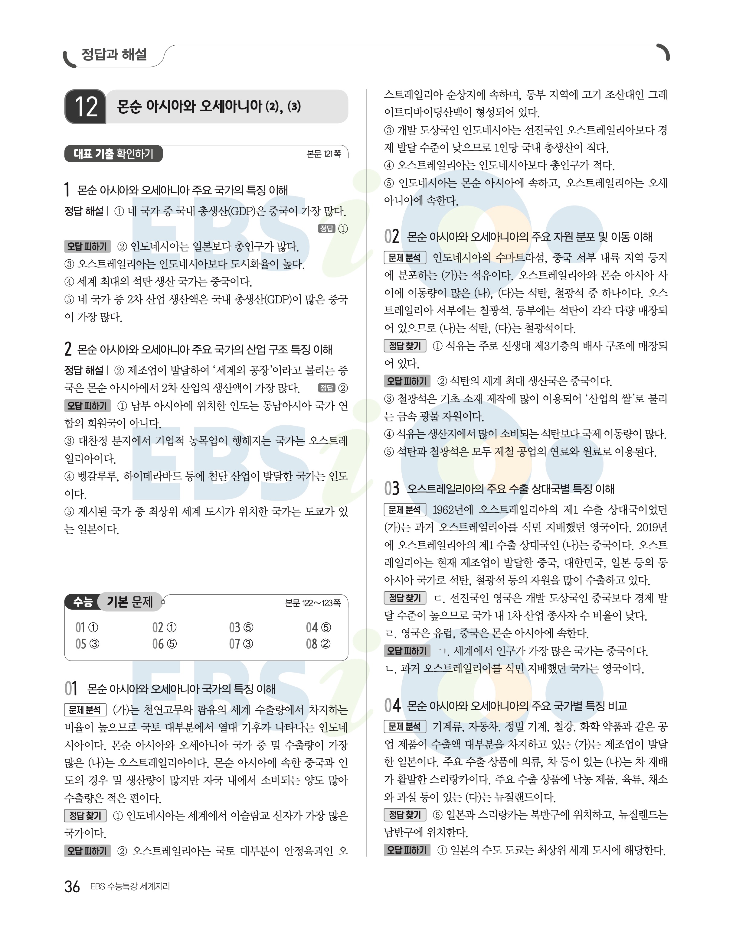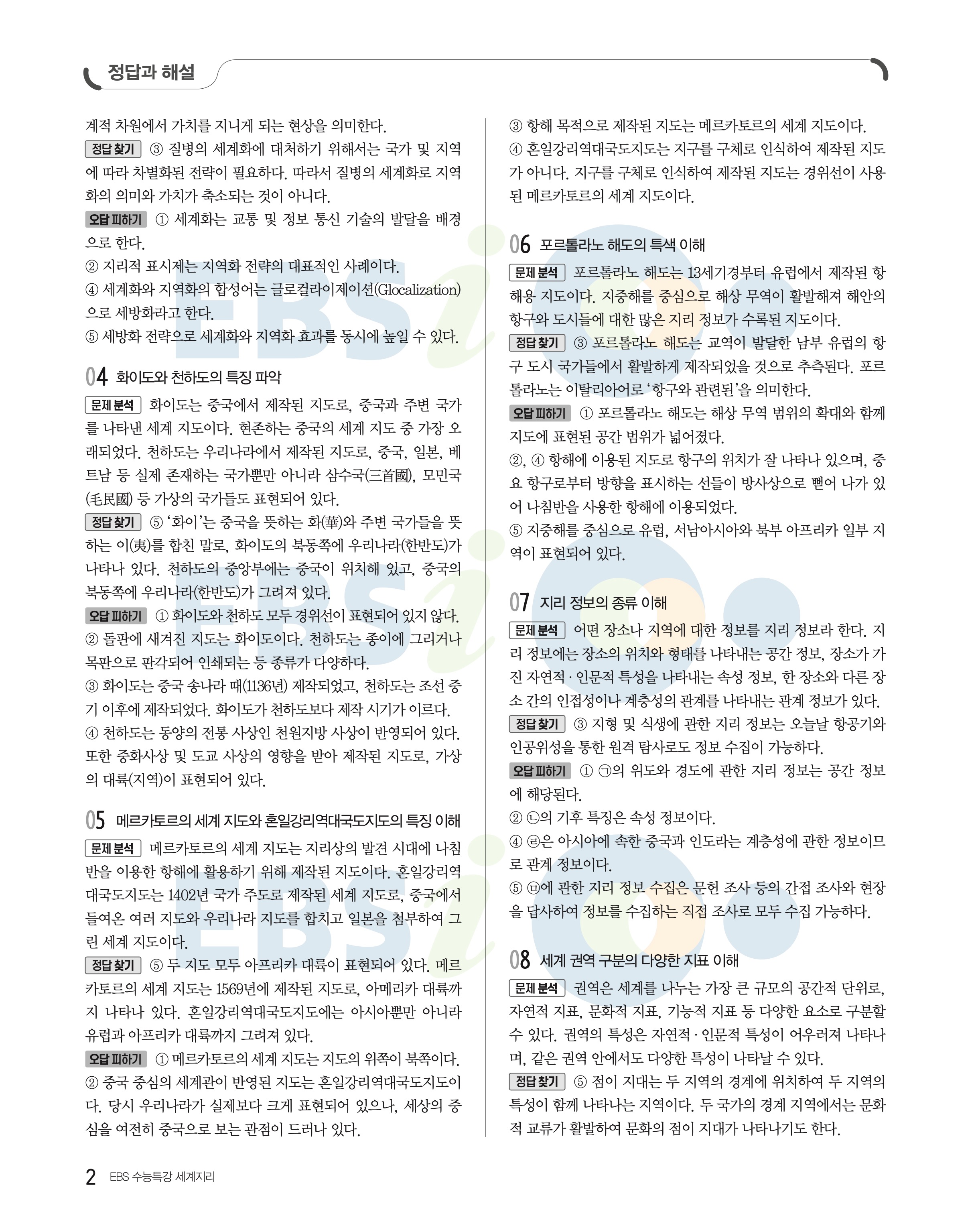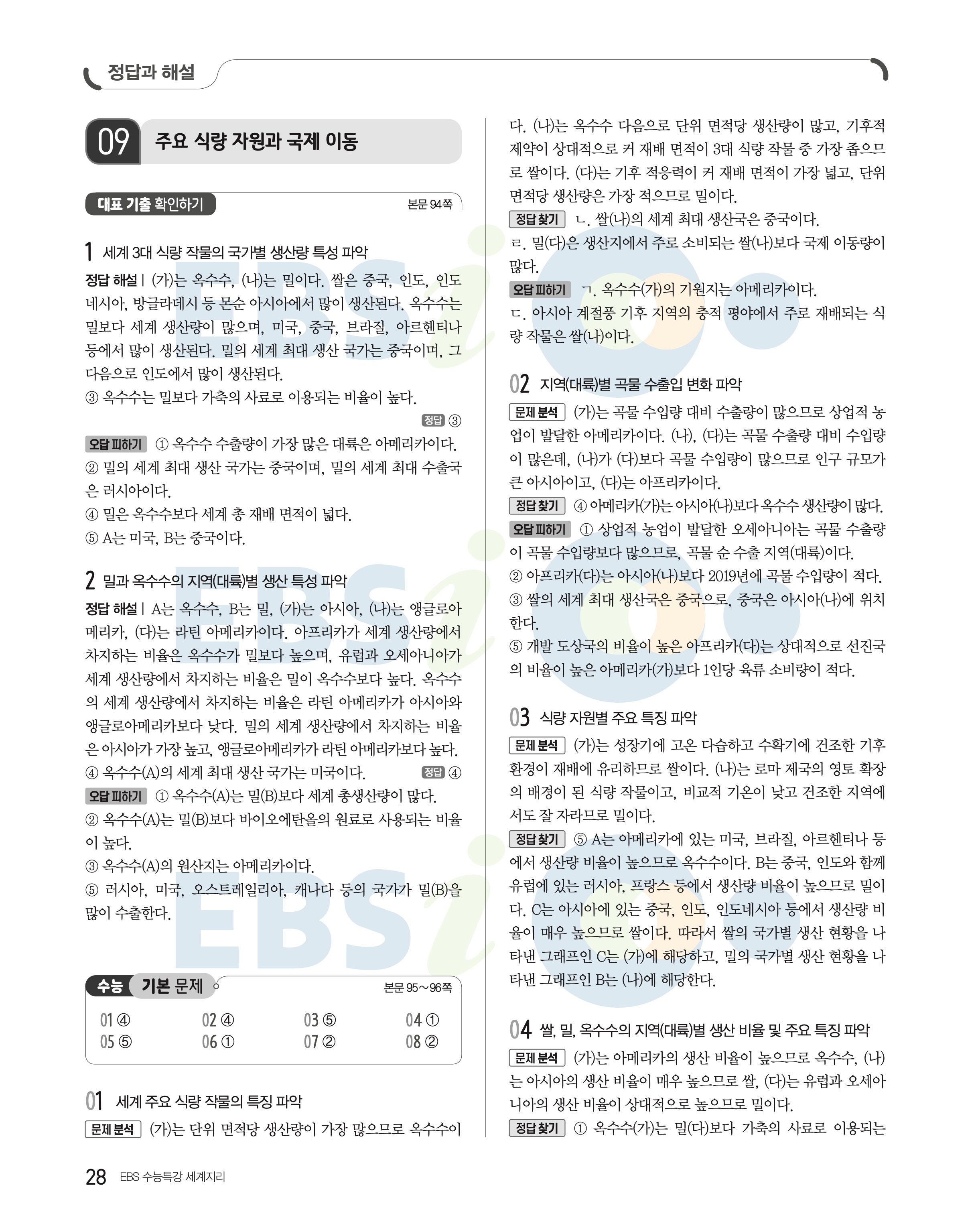 2023 수능특강 세계지리 답지 수특세지답지 바로보는 사진답지 모바일최적화
