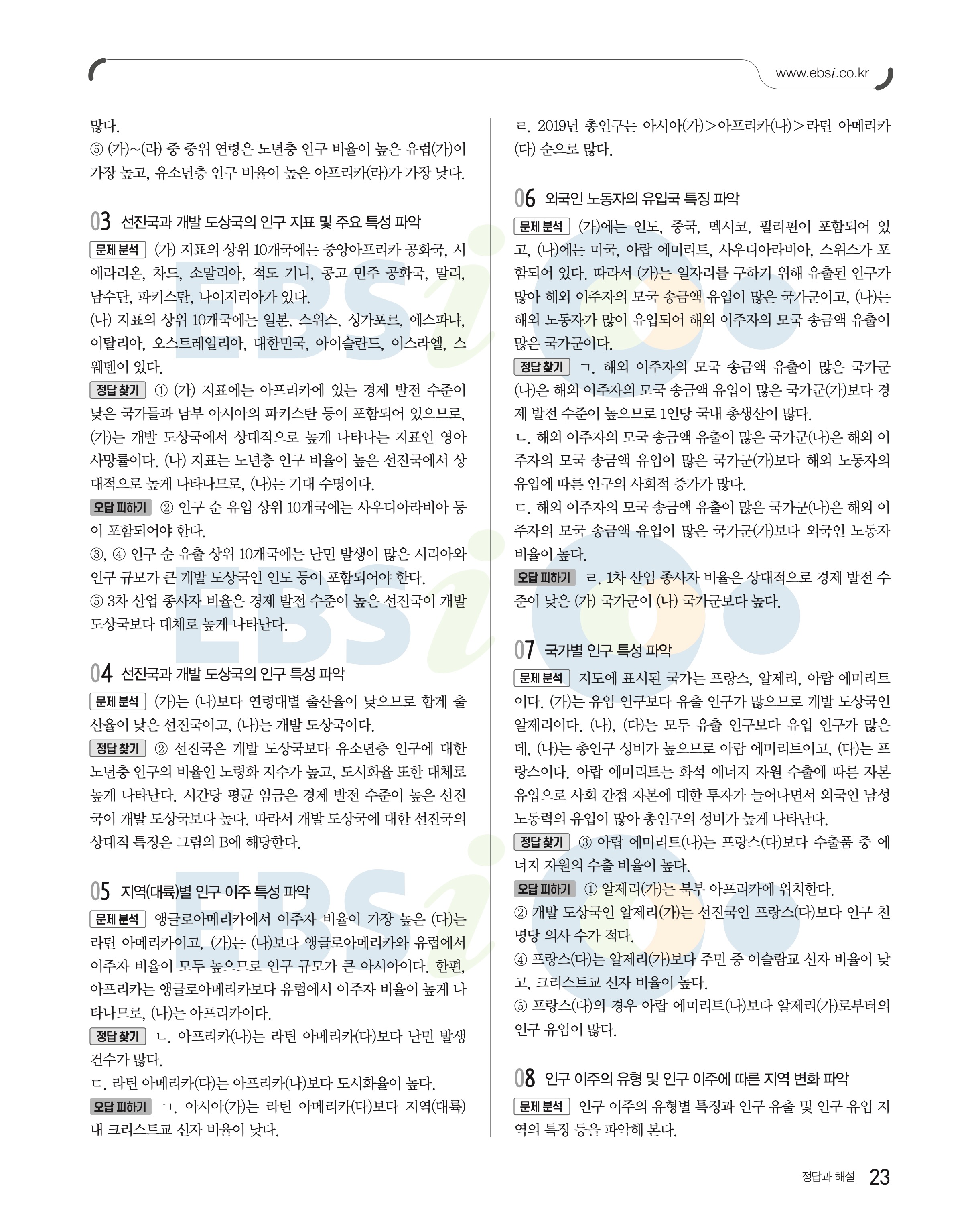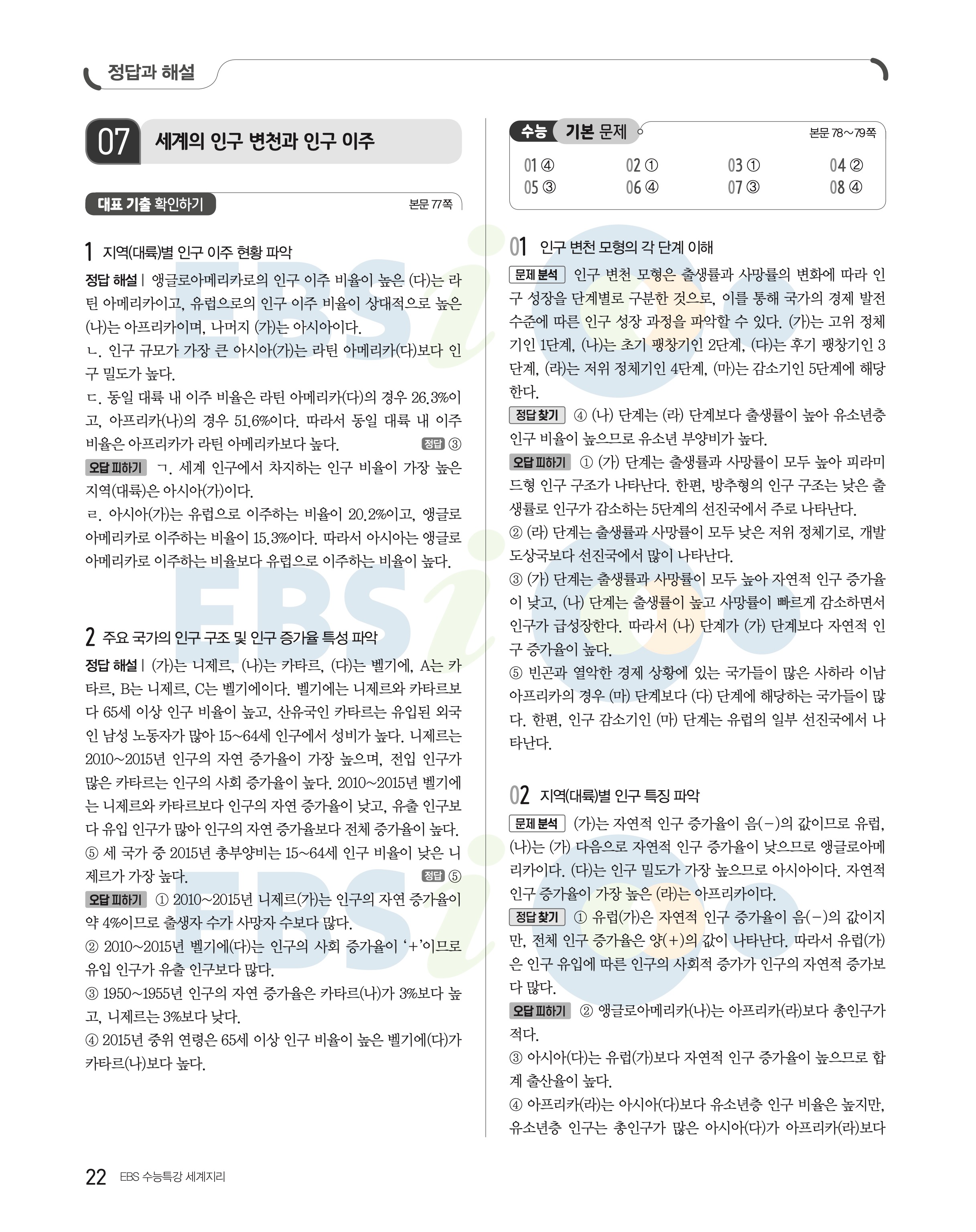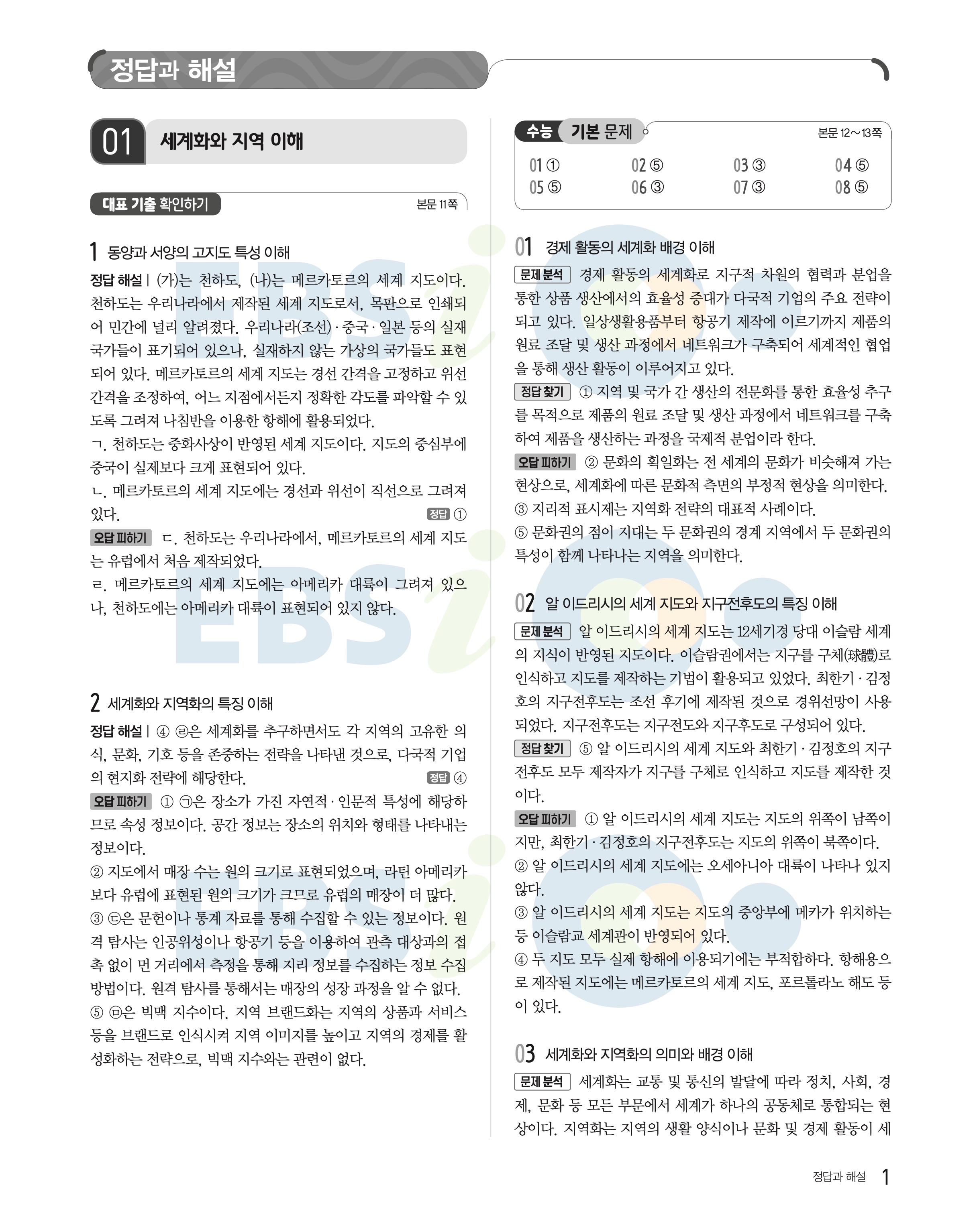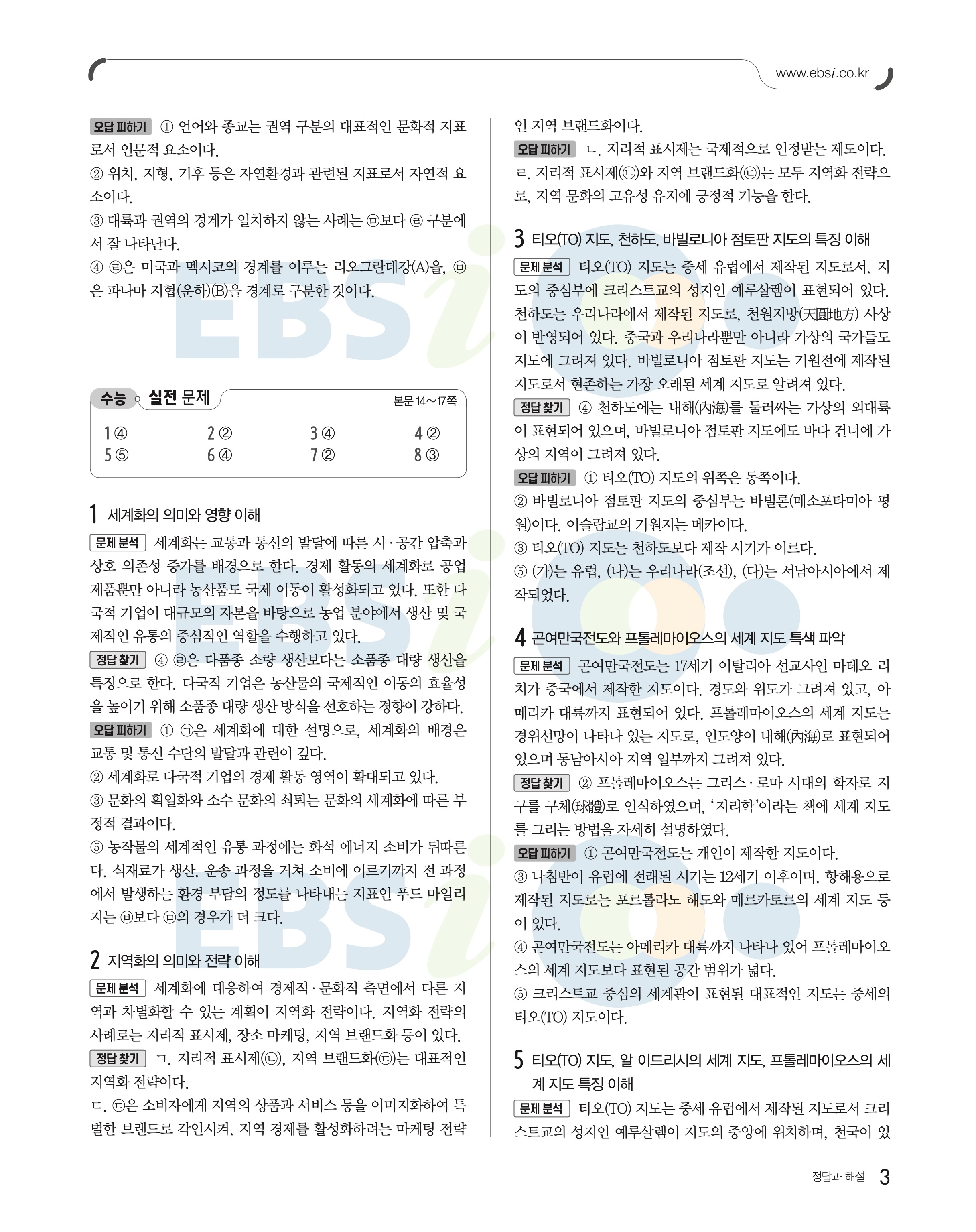 2023 수능특강 세계지리 답지 수특세지답지 바로보는 사진답지 모바일최적화