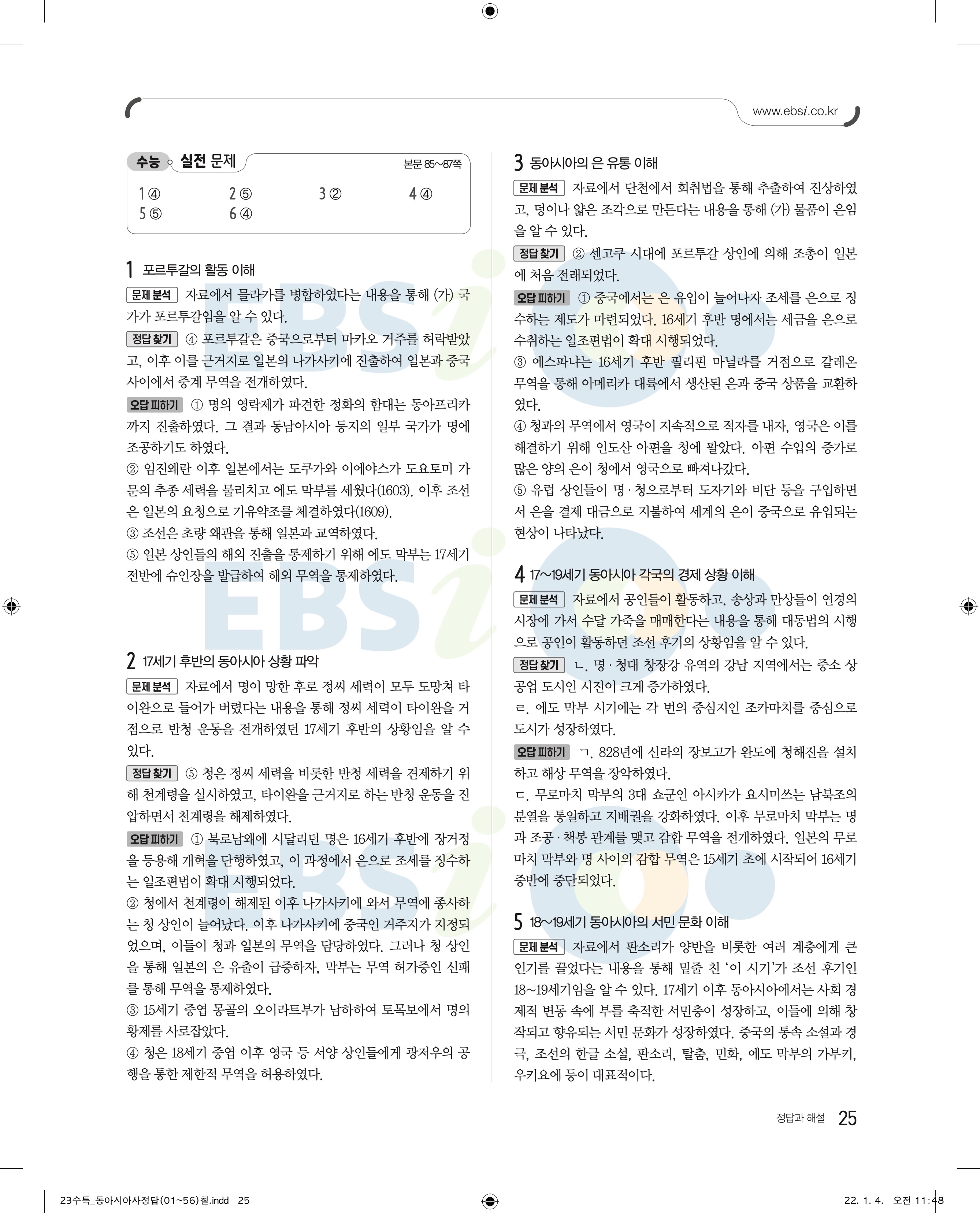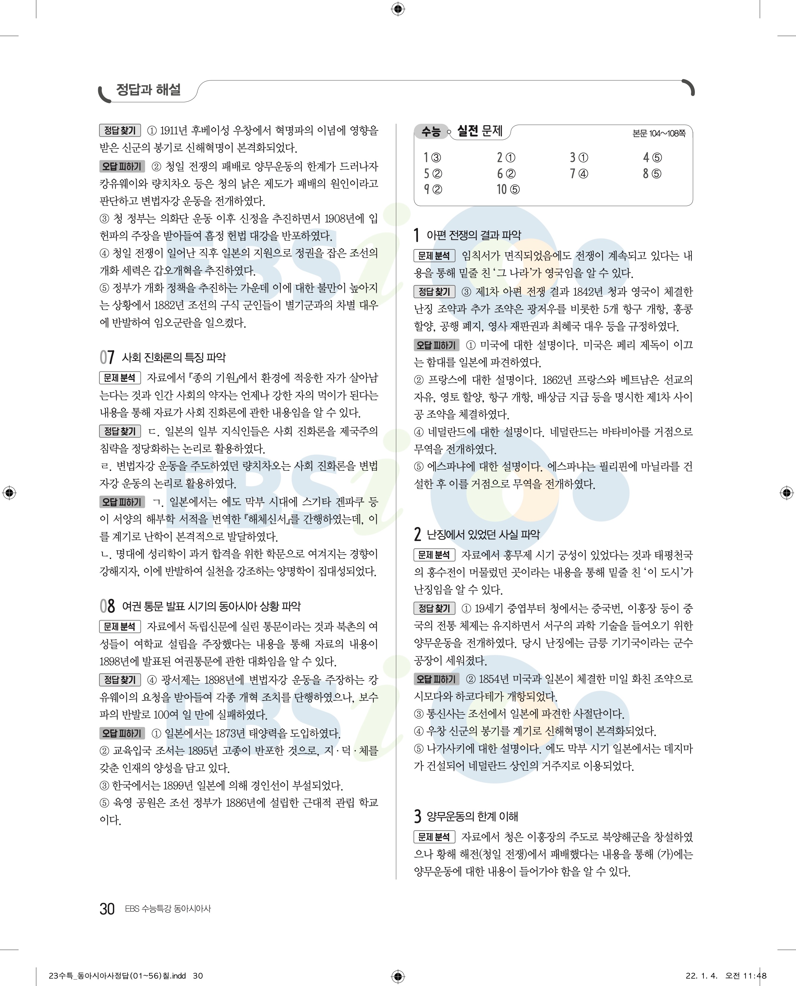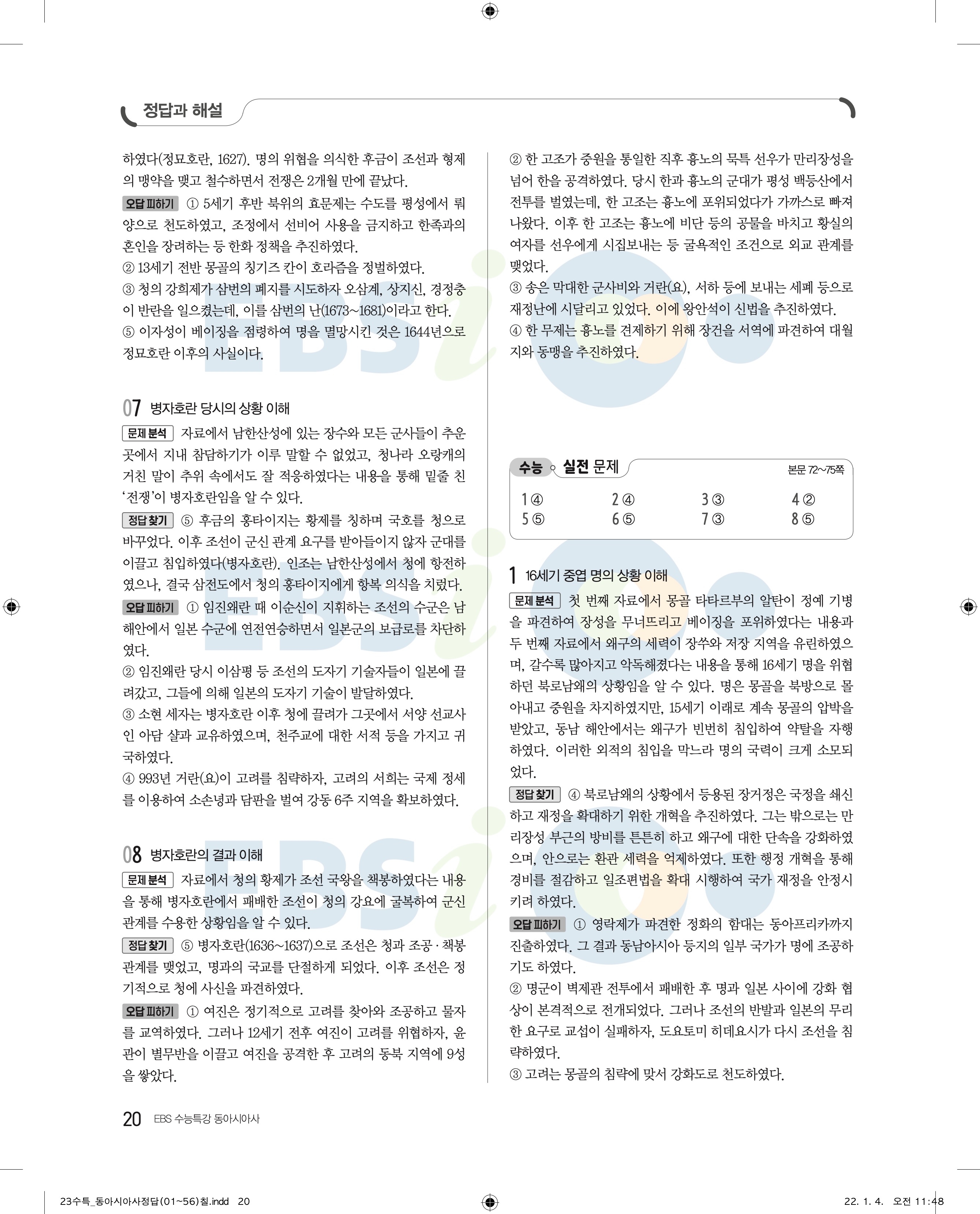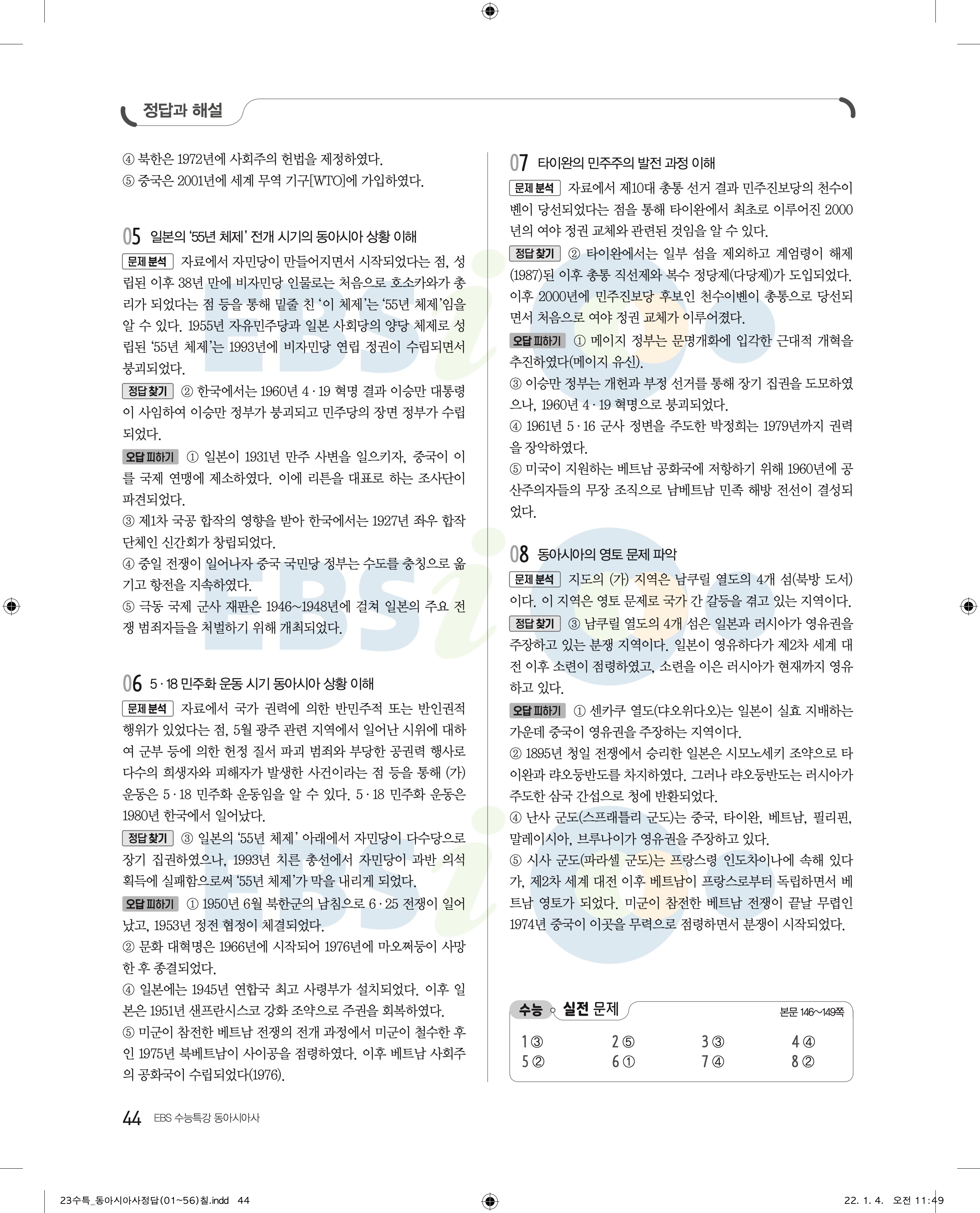 2023 수능특강 동아시아 답지 수특동아시아답지 바로보는 사진답지 모바일최적화