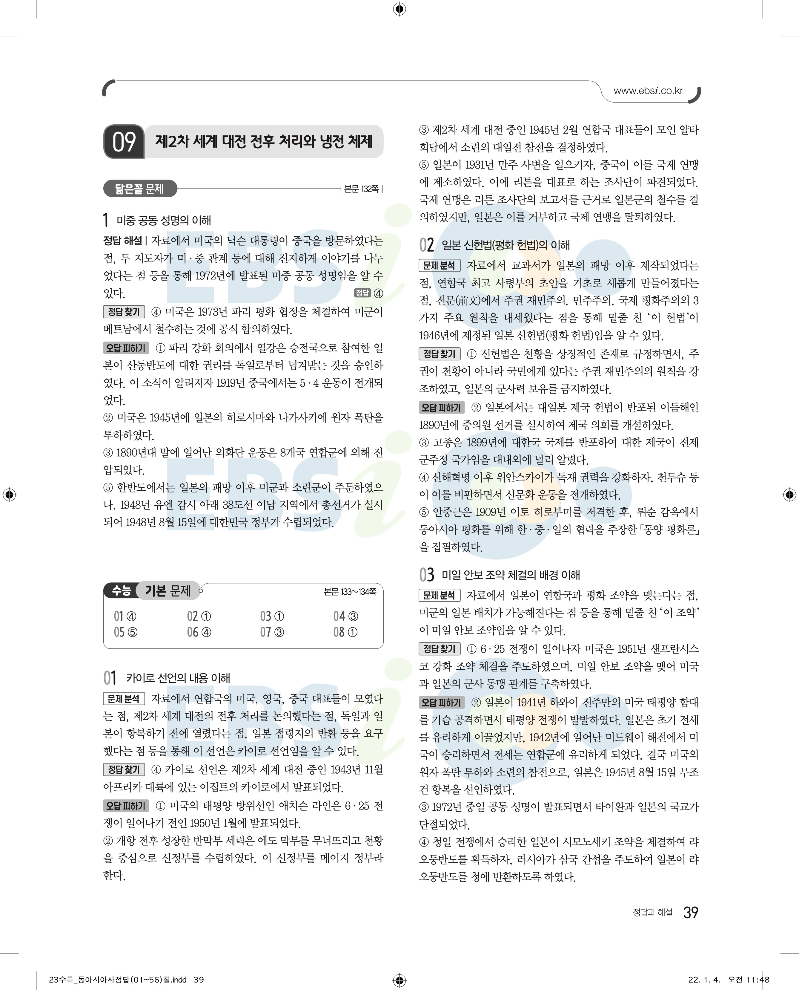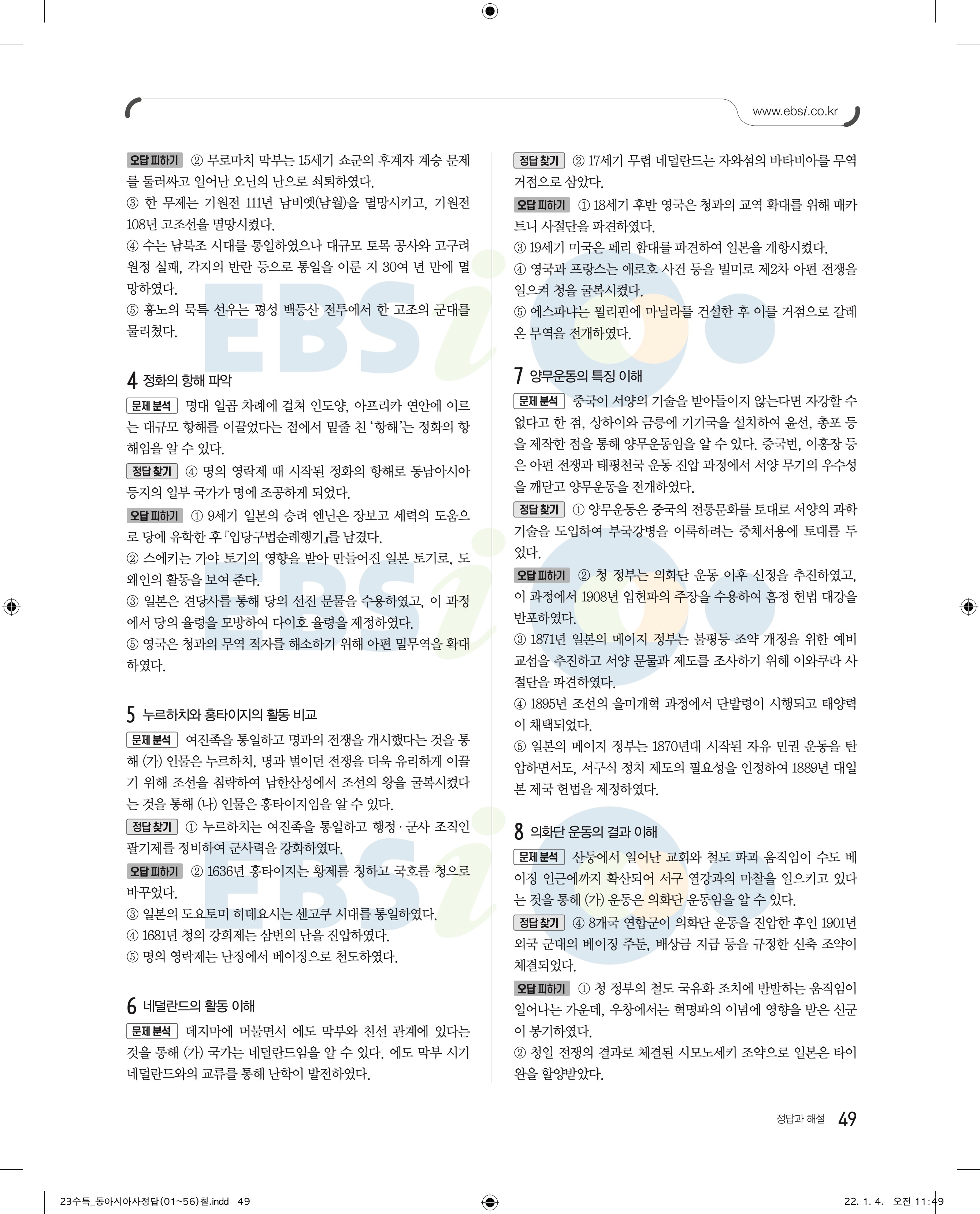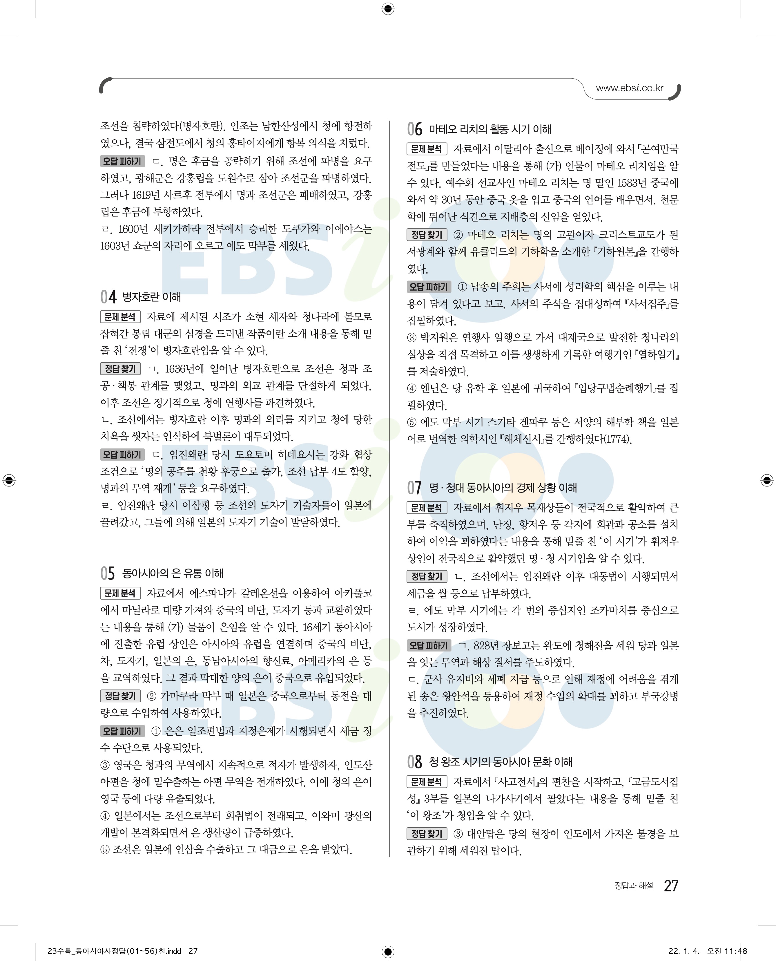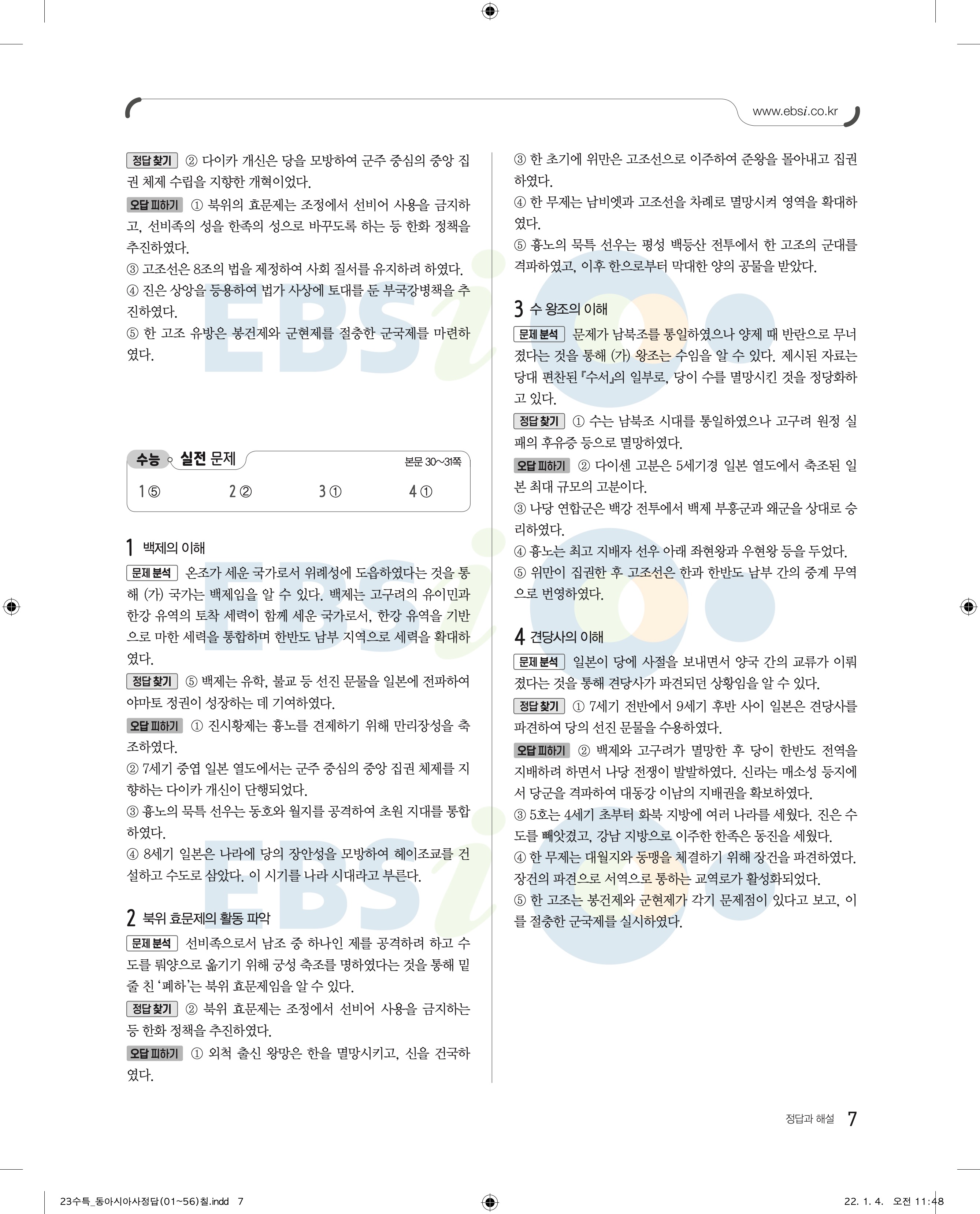 2023 수능특강 동아시아 답지 수특동아시아답지 바로보는 사진답지 모바일최적화