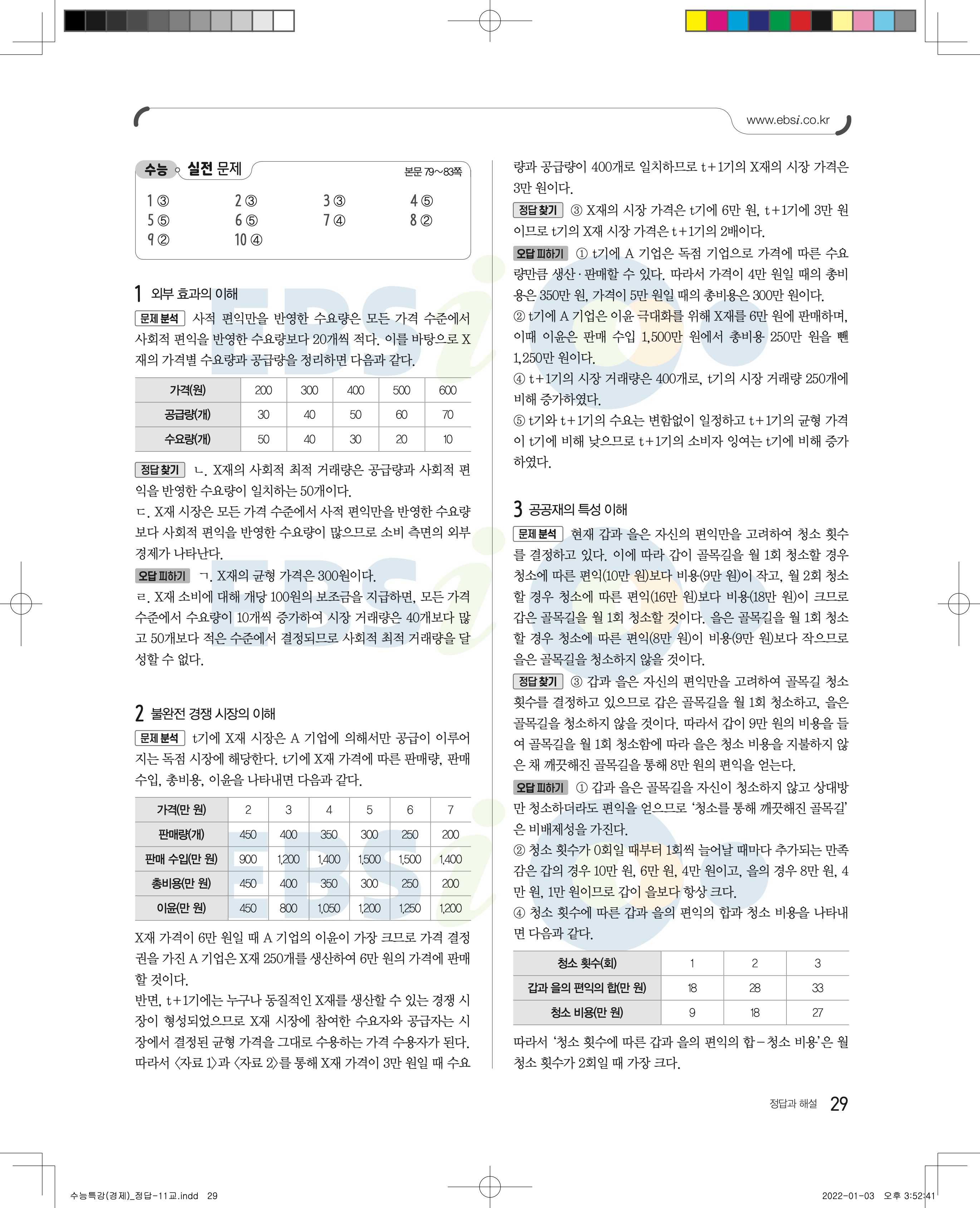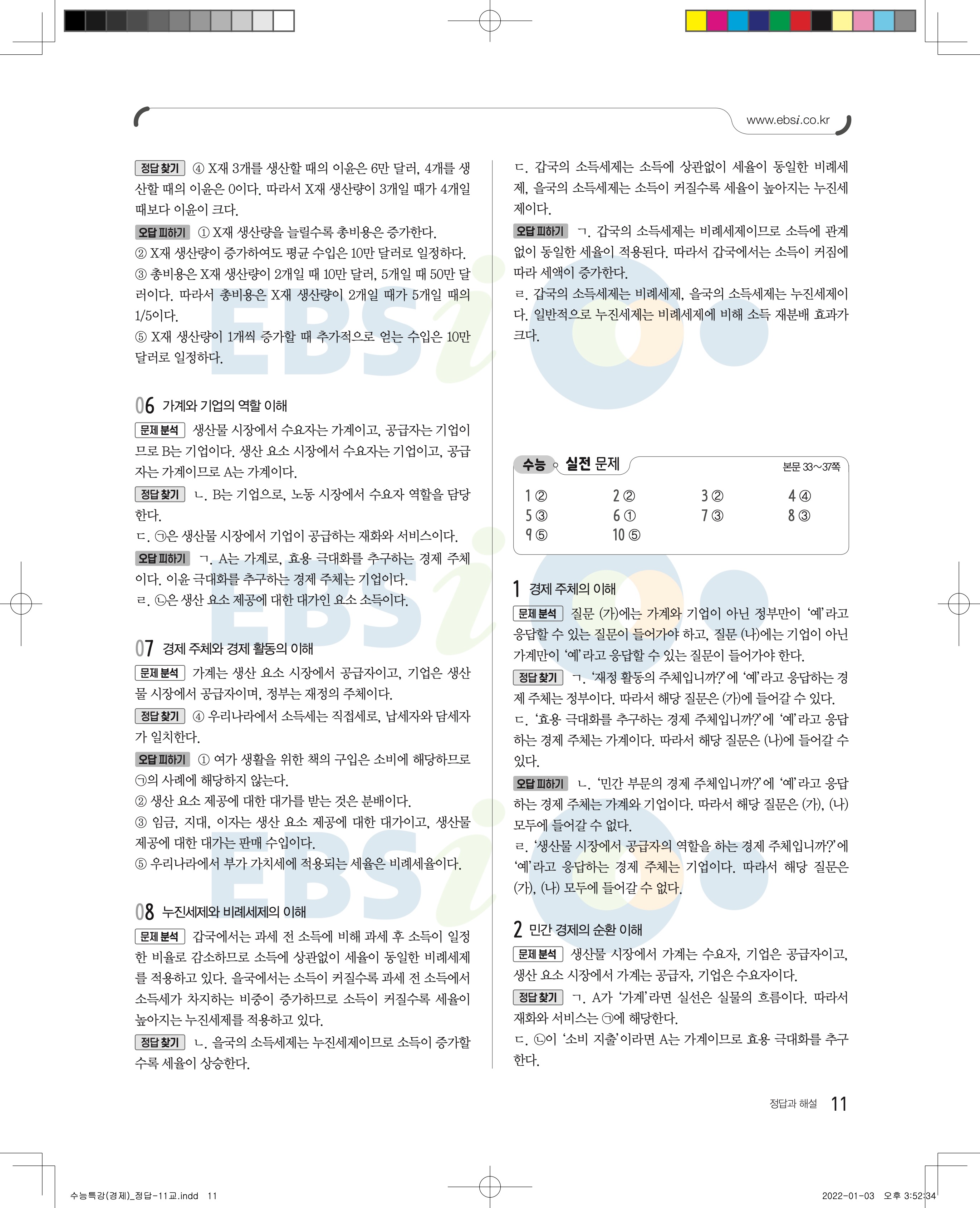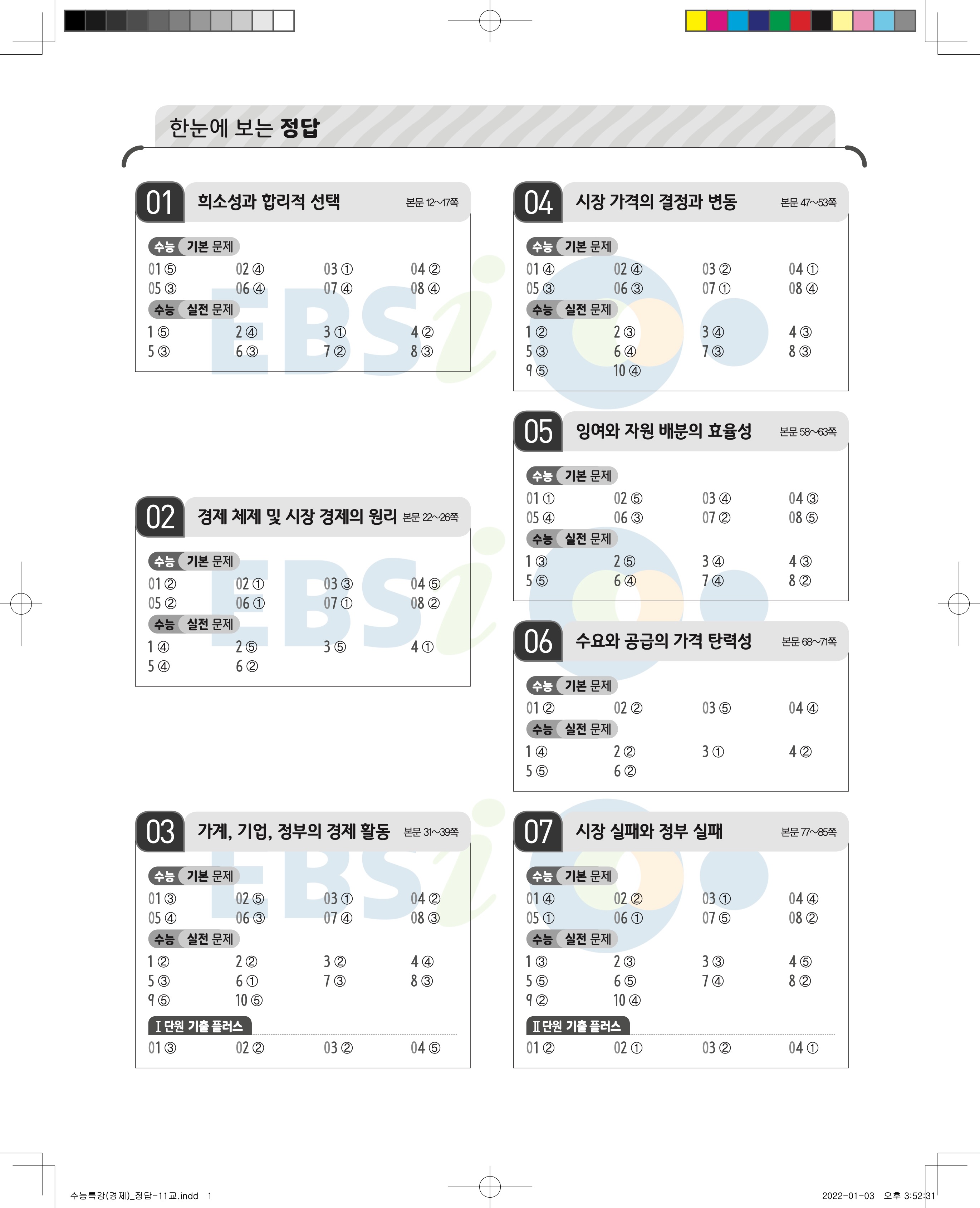 2023 수능특강 경제 답지 수특경제답지 바로보는 사진답지 모바일최적화