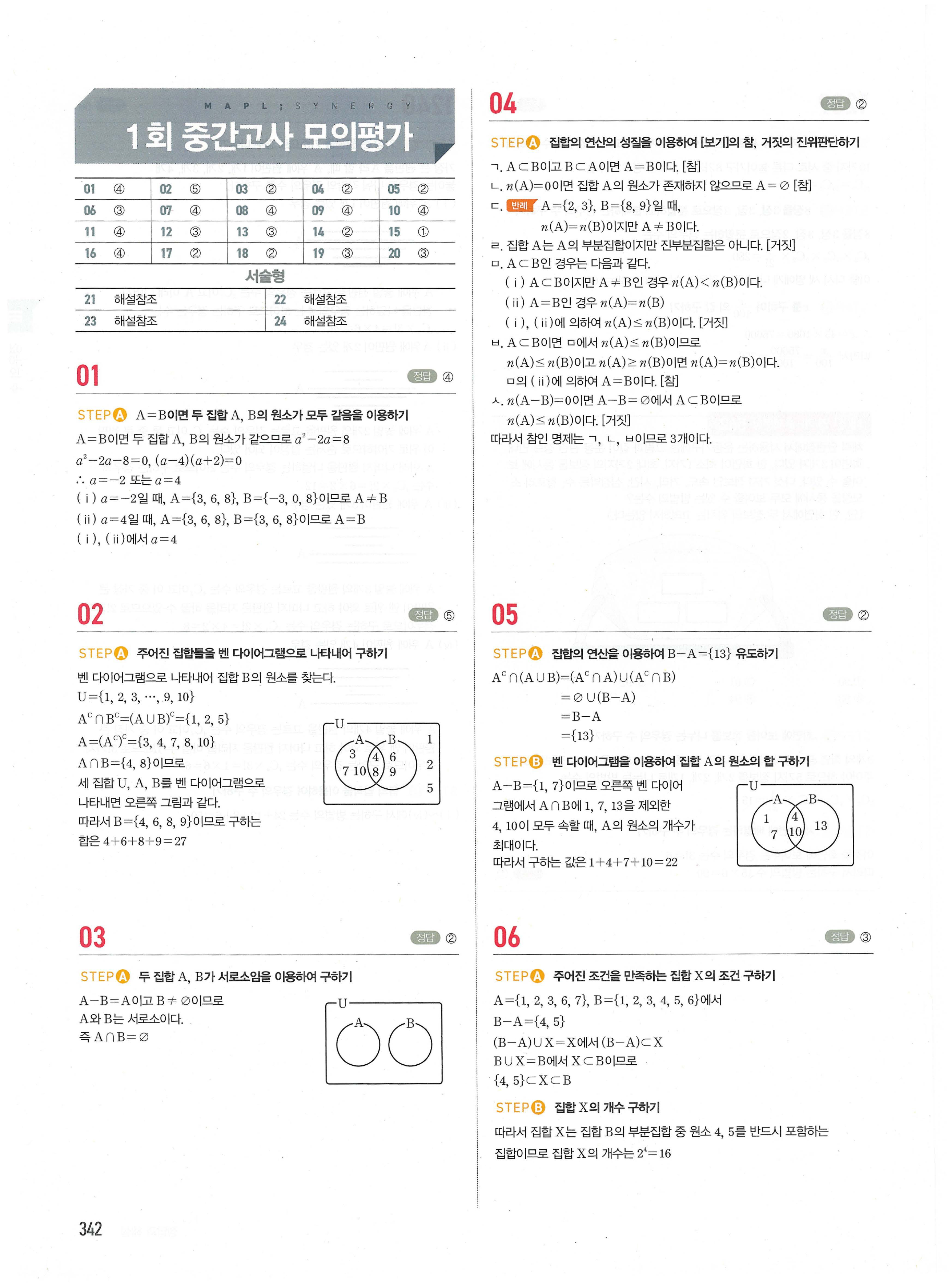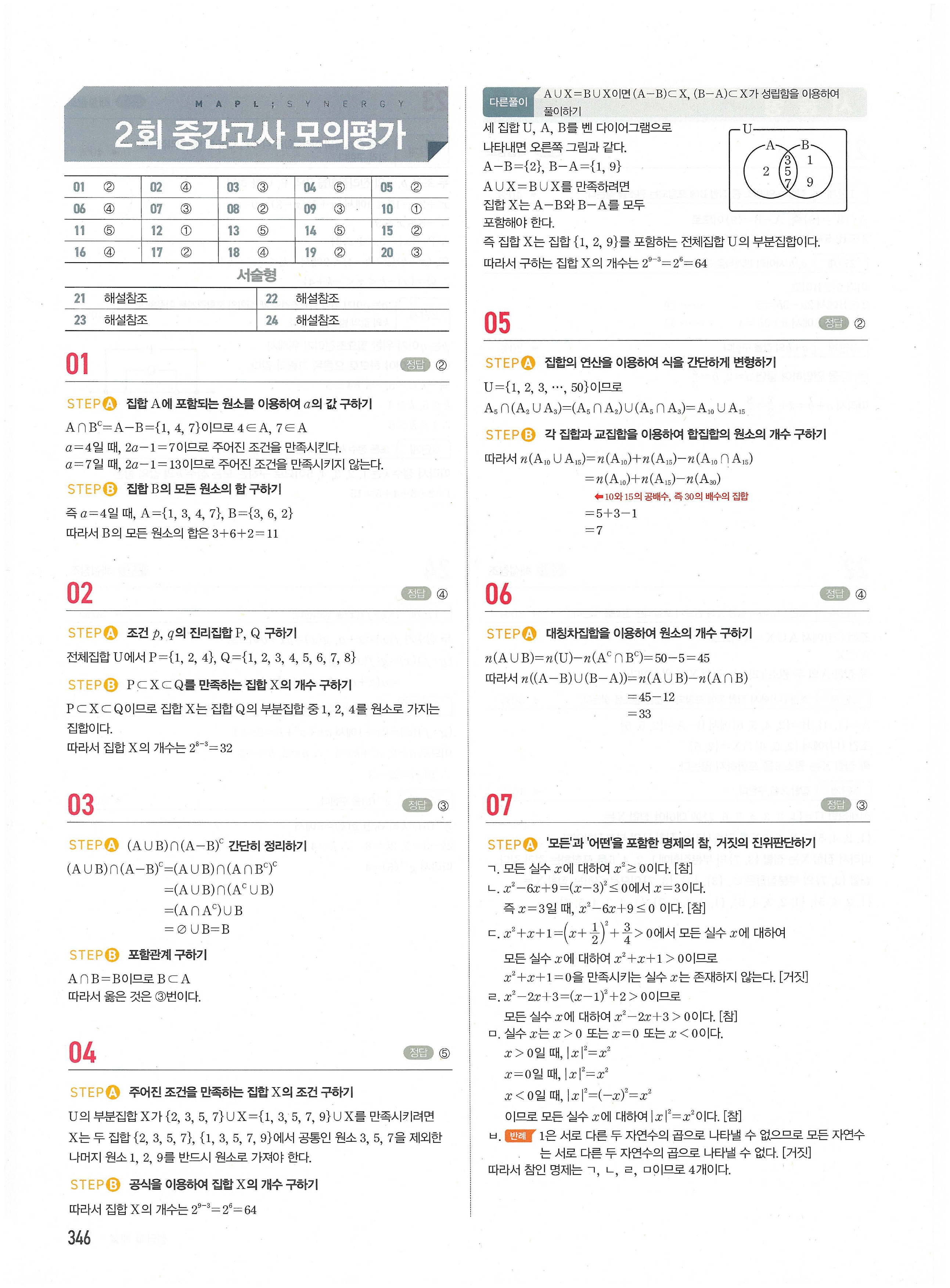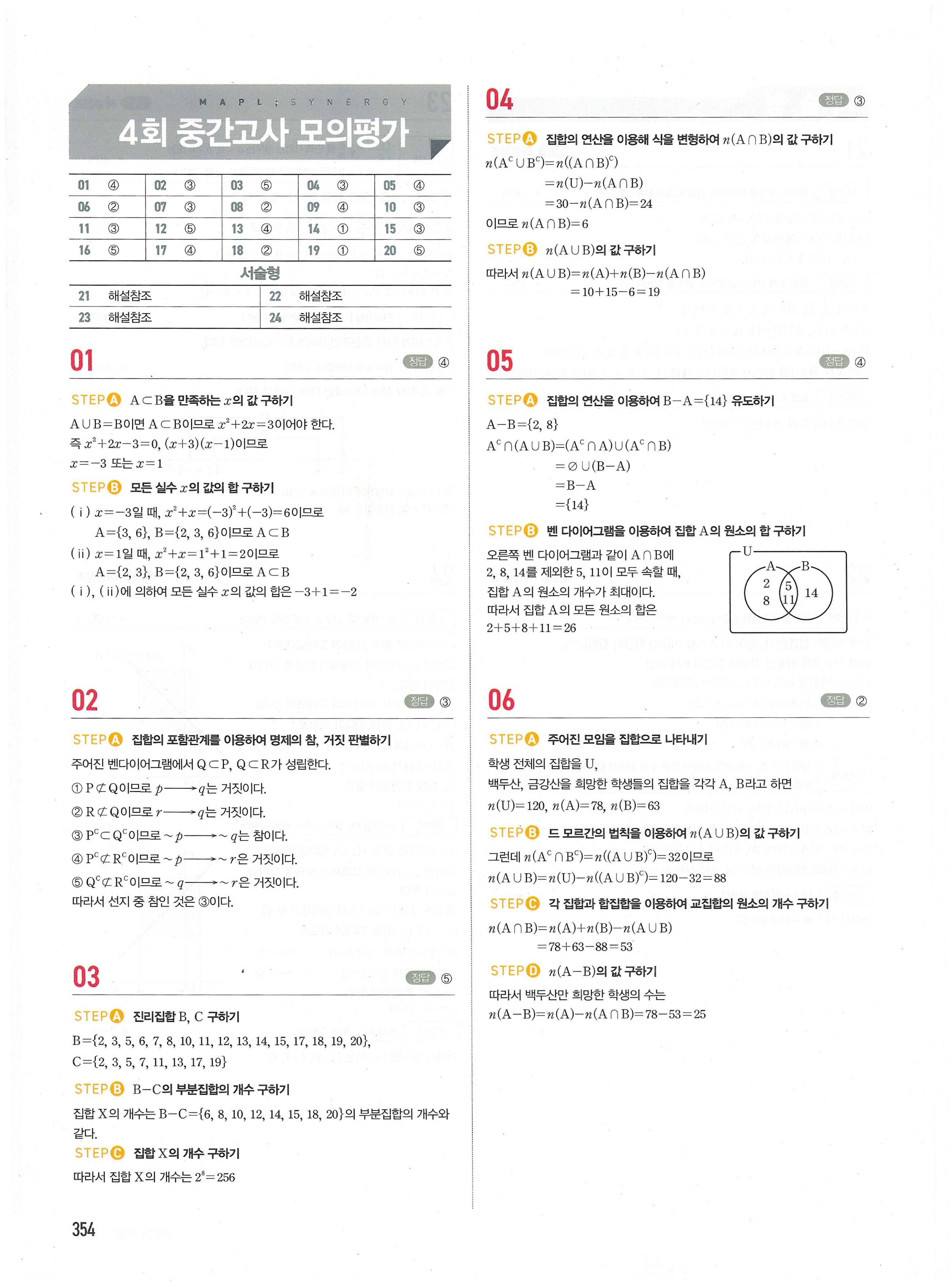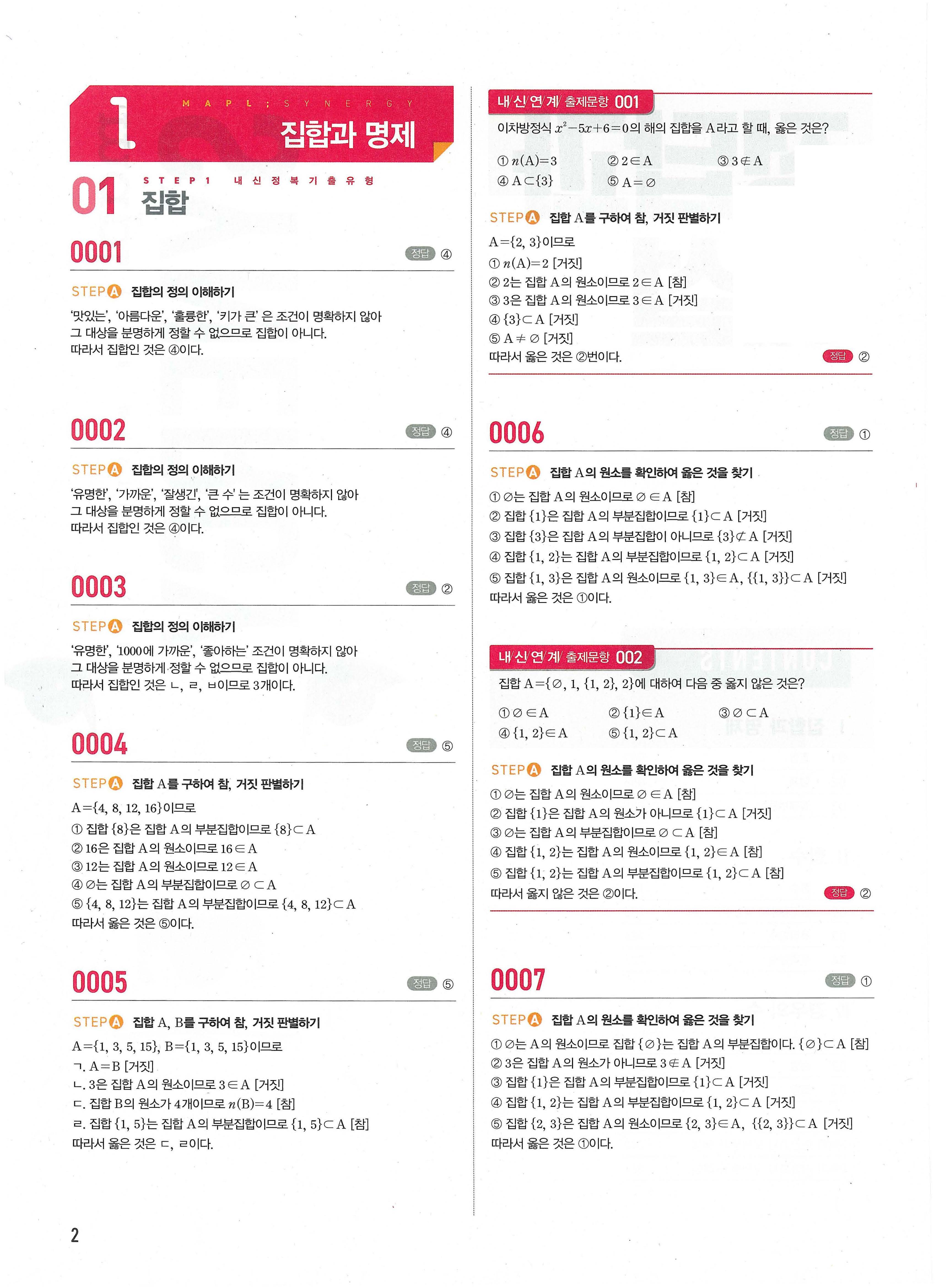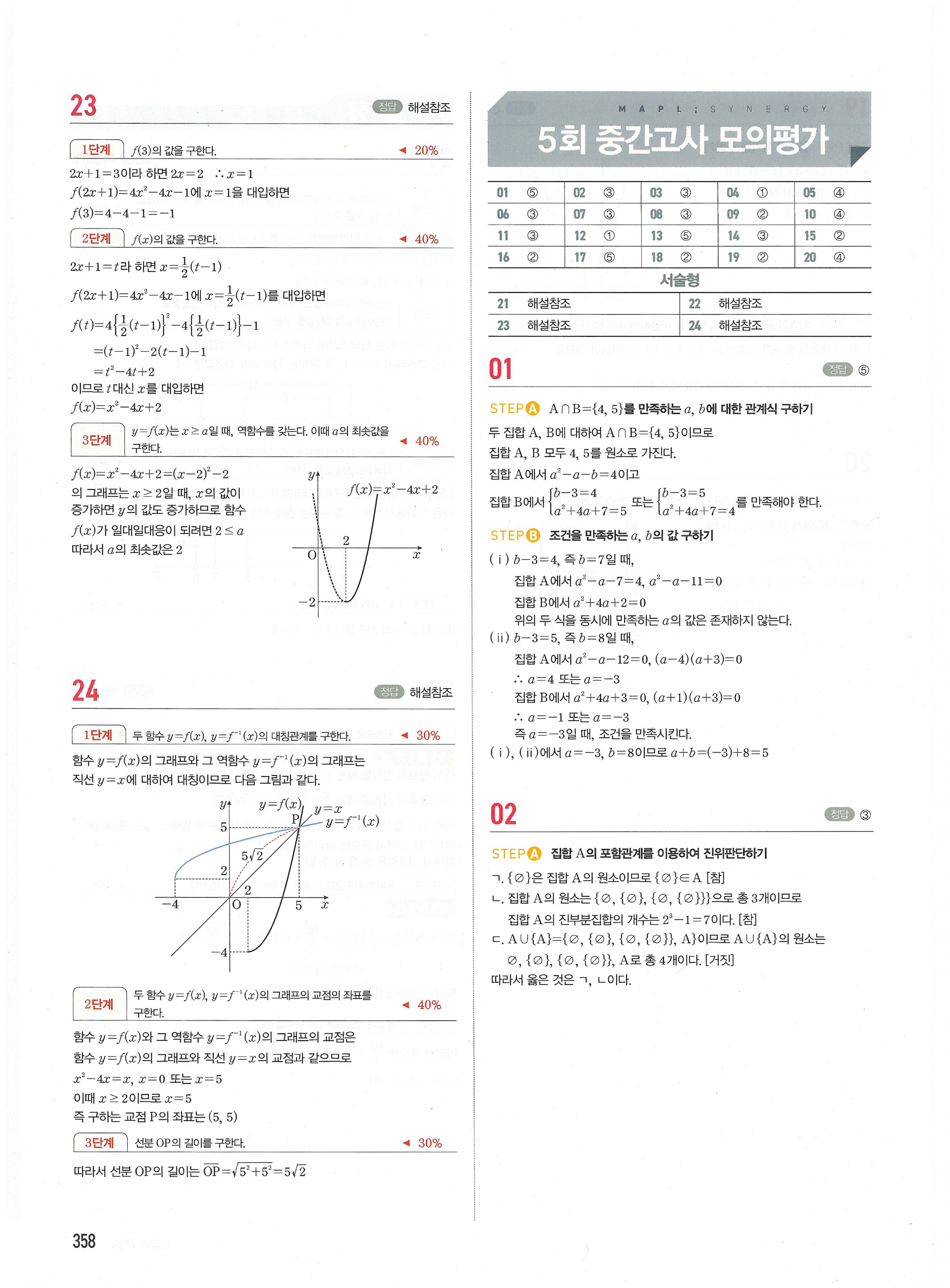 마플시너지 고등수학 전체 수상수하수1수2미적확통 빠른답지